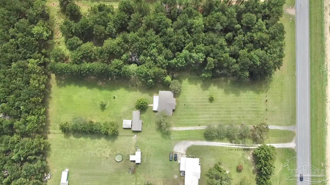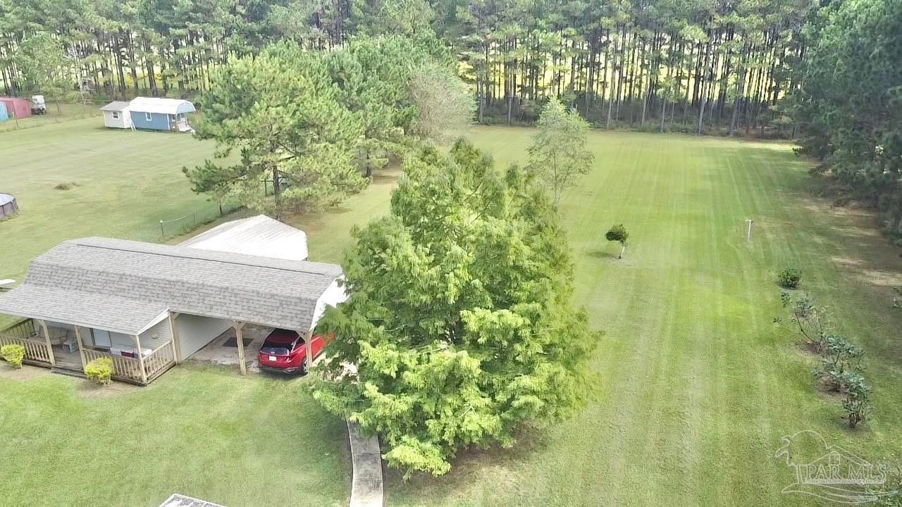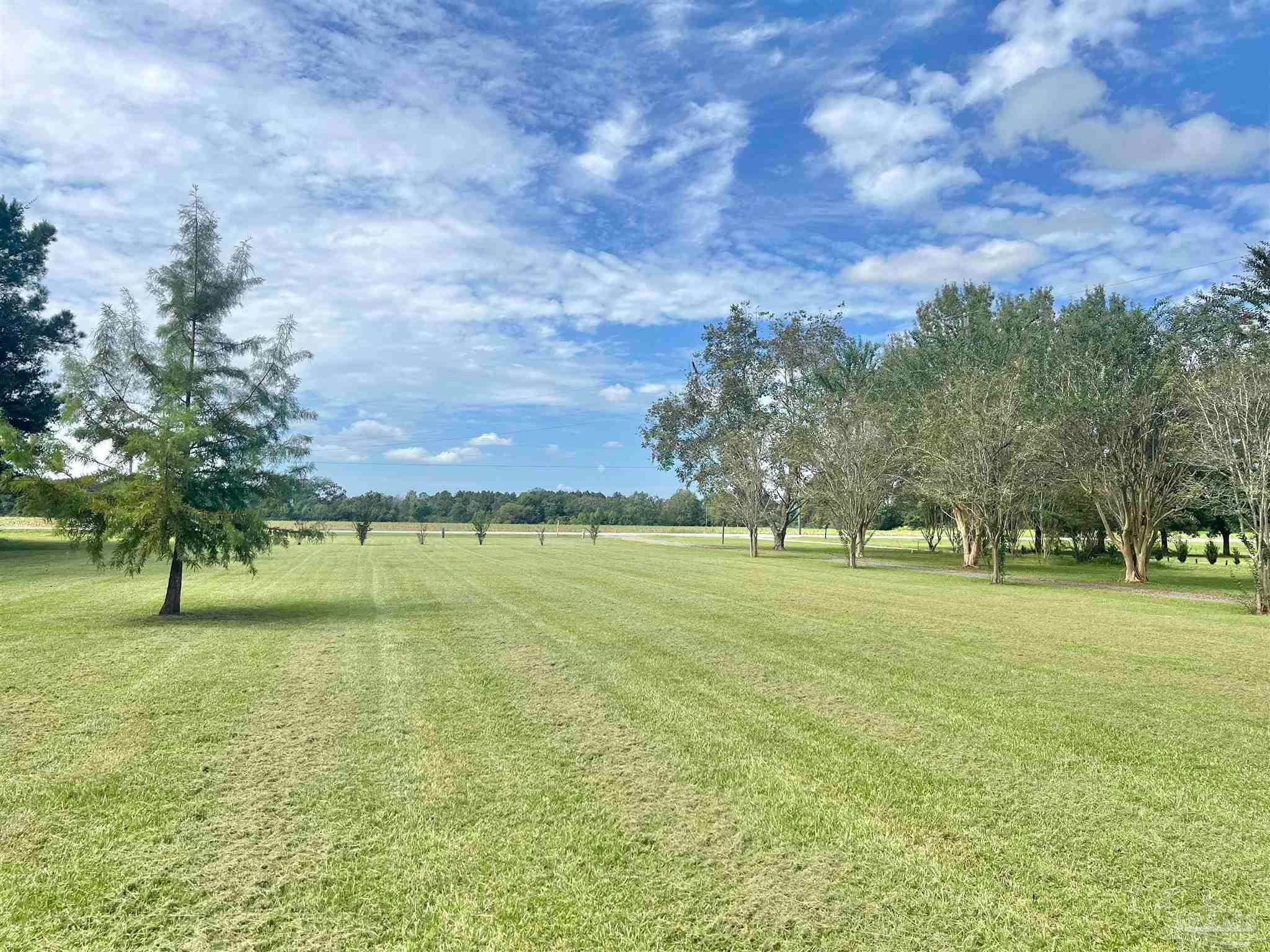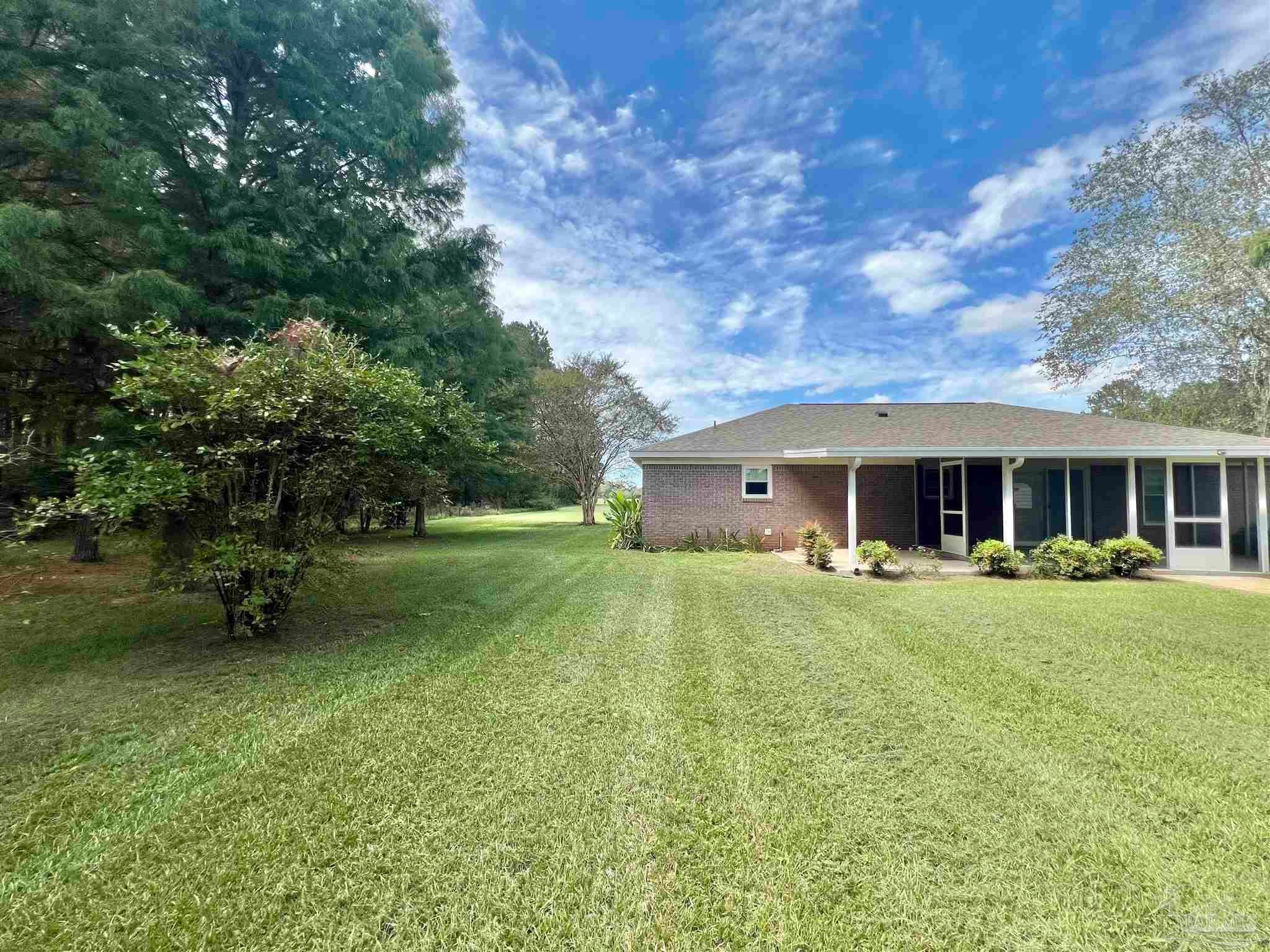 Discover the perfect blend of peaceful rural living and convenient access in this charming brick home situated on over 2 acres just 15 minutes from downtown Atmore, AL, and 30 minutes from Pensacola, FL. Enjoy breathtaking views of lush woodlands and well-maintained crop land from the spacious screened back porch, featuring a dedicated cookout nook perfect for outdoor gatherings. The open-concept floor plan thoughtfully separates the primary ensuite bedroom and private bath from two additional guest bedrooms and a full bathroom, offering privacy and comfort. Each bedroom boasts walk-in closets for ample storage, while the oversized laundry room and walk-in pantry complement the fully equipped kitchen. Additional highlights include a detached 24' x 16' storage building with an attached double carport and a rear yard equipment shed—ideal for all your storage needs. Don’t miss this exceptional opportunity to own a meticulously maintained home in a serene setting! ALL SQ. FOOTAGE AND DIMENSIONS ARE APPROXIMATE AND IS THE BUYER'S RESPONSIBILITY TO VERIFY.