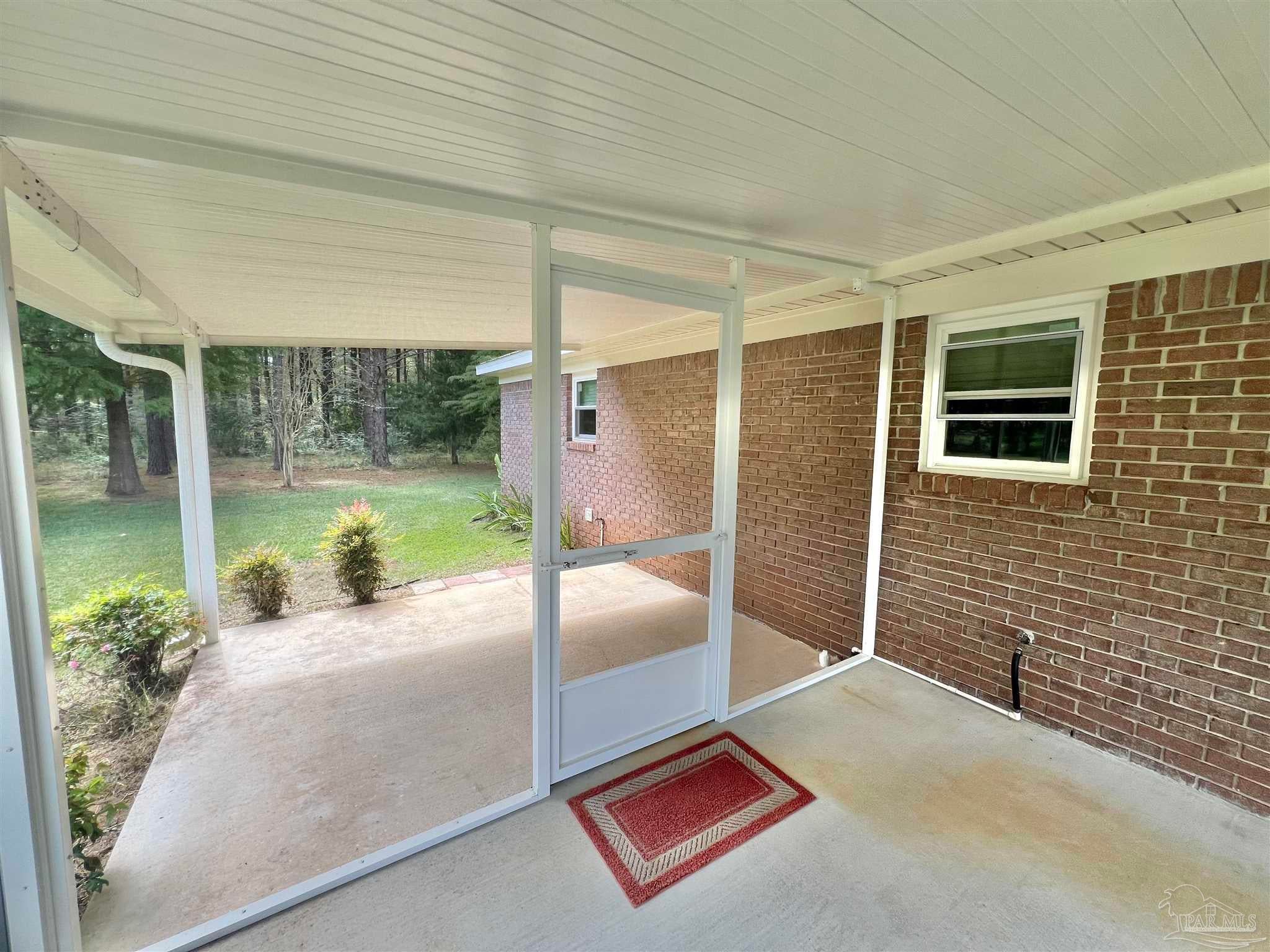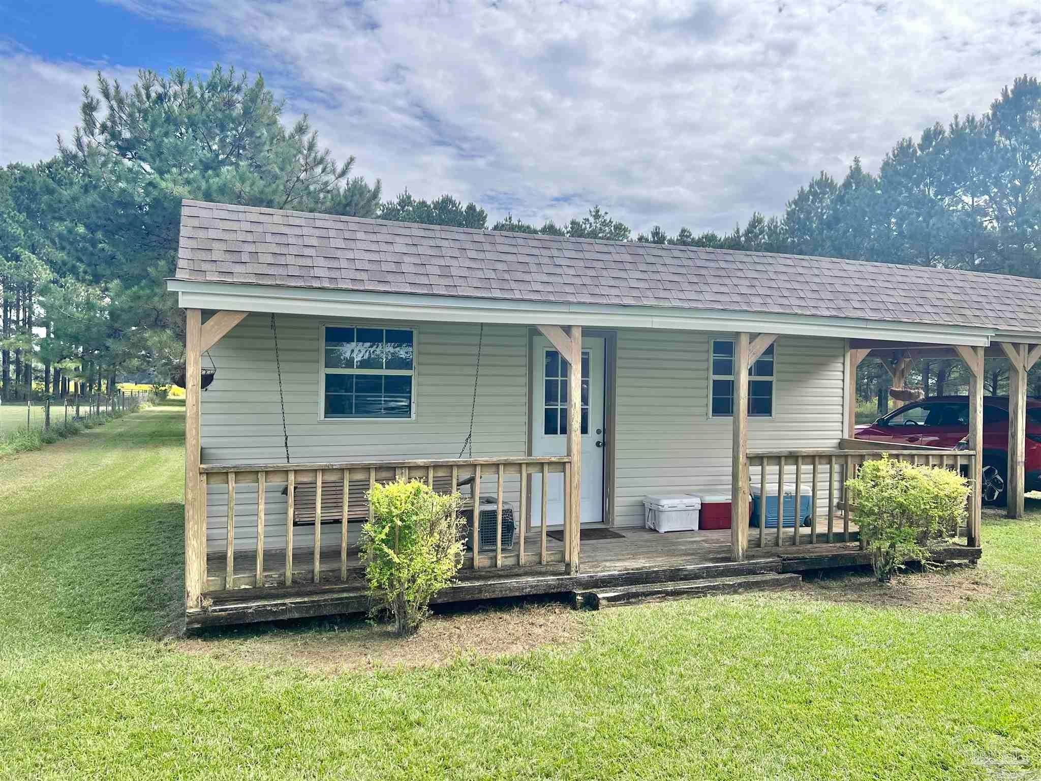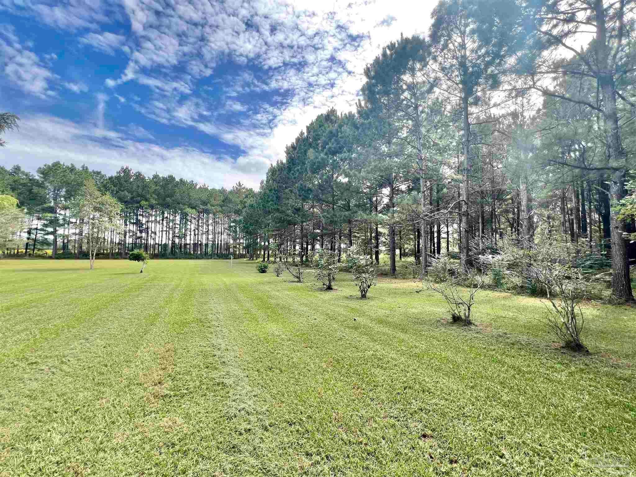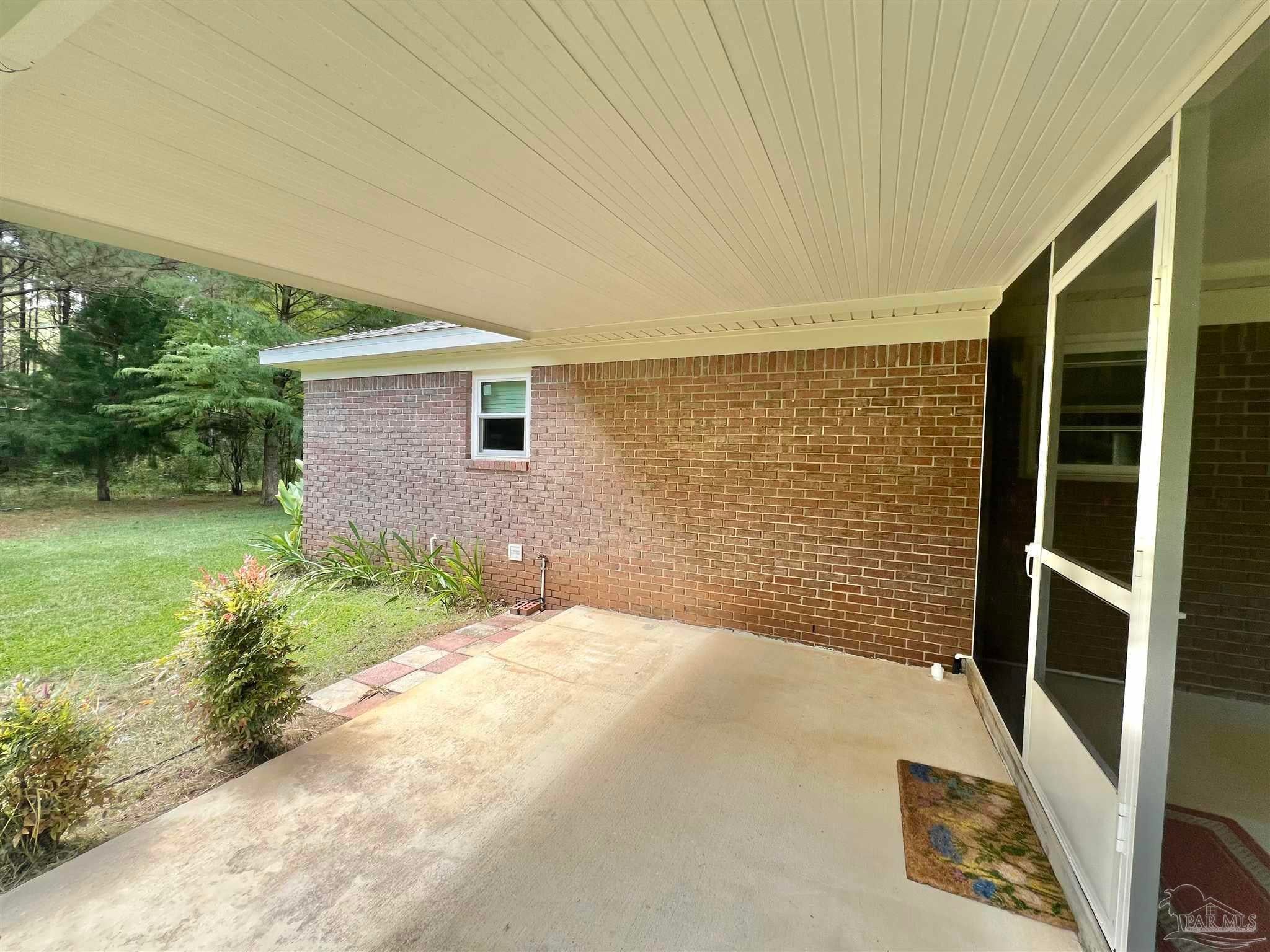 Discover the perfect blend of peaceful rural living and convenient access in this charming brick home situated on over 2 acres just 15 minutes from downtown Atmore, AL, and 30 minutes from Pensacola, FL. Enjoy breathtaking views of lush woodlands and well-maintained crop land from the spacious screened back porch, featuring a dedicated cookout nook perfect for outdoor gatherings. The open-concept floor plan thoughtfully separates the primary ensuite bedroom and private bath from two additional guest bedrooms and a full bathroom, offering privacy and comfort. Each bedroom boasts walk-in closets for ample storage, while the oversized laundry room and walk-in pantry complement the fully equipped kitchen. Additional highlights include a detached 24' x 16' storage building with an attached double carport and a rear yard equipment shed—ideal for all your storage needs. Don’t miss this exceptional opportunity to own a meticulously maintained home in a serene setting! ALL SQ. FOOTAGE AND DIMENSIONS ARE APPROXIMATE AND IS THE BUYER'S RESPONSIBILITY TO VERIFY.