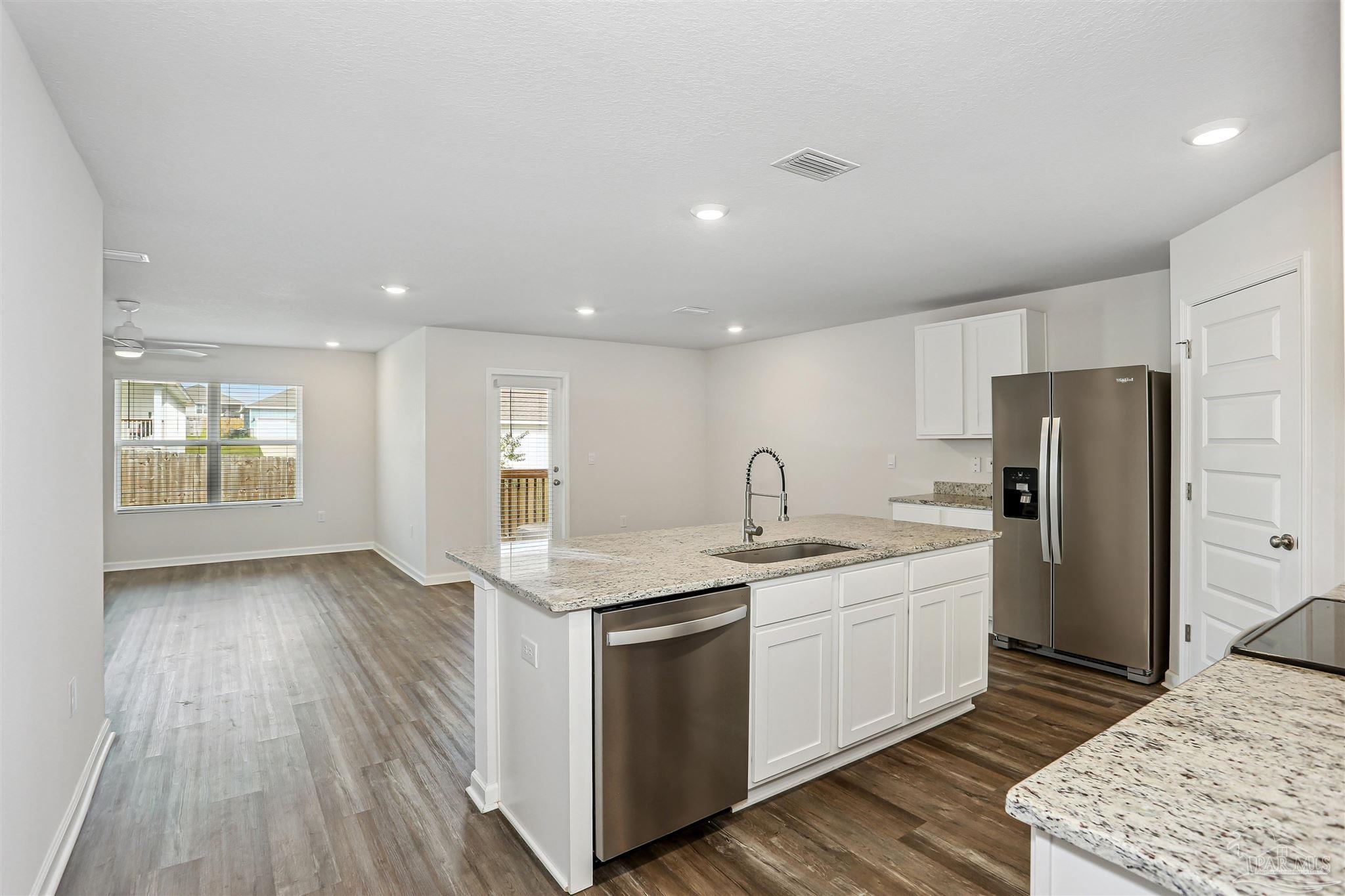 Discover the Cali — a beautifully designed 4-bedroom, 2-bath home offering 1,787 square feet of comfortable living space with a spacious two-car garage. Step through the foyer into an open-concept layout where the modern kitchen flows seamlessly into the dining and living areas. The kitchen features a large island, walk-in pantry, and a perfect view of the covered back porch — ideal for relaxing or entertaining outdoors. Also, a backyard fence for pets or privacy. The primary suite is filled with natural light and provides a peaceful retreat with a double-sink vanity, walk-in shower, and an oversized closet. Three additional bedrooms and a full guest bath offer plenty of room for family or visitors, with a thoughtful split design for added privacy. Smart Home Technology comes standard, including a KwikSet keyless entry system, SkyBell video doorbell, and Echo Dot to help you stay connected and secure. Set within the quiet community of Deer Run, residents enjoy access to a sparkling pool and clubhouse — the perfect blend of comfort, convenience, and community living.