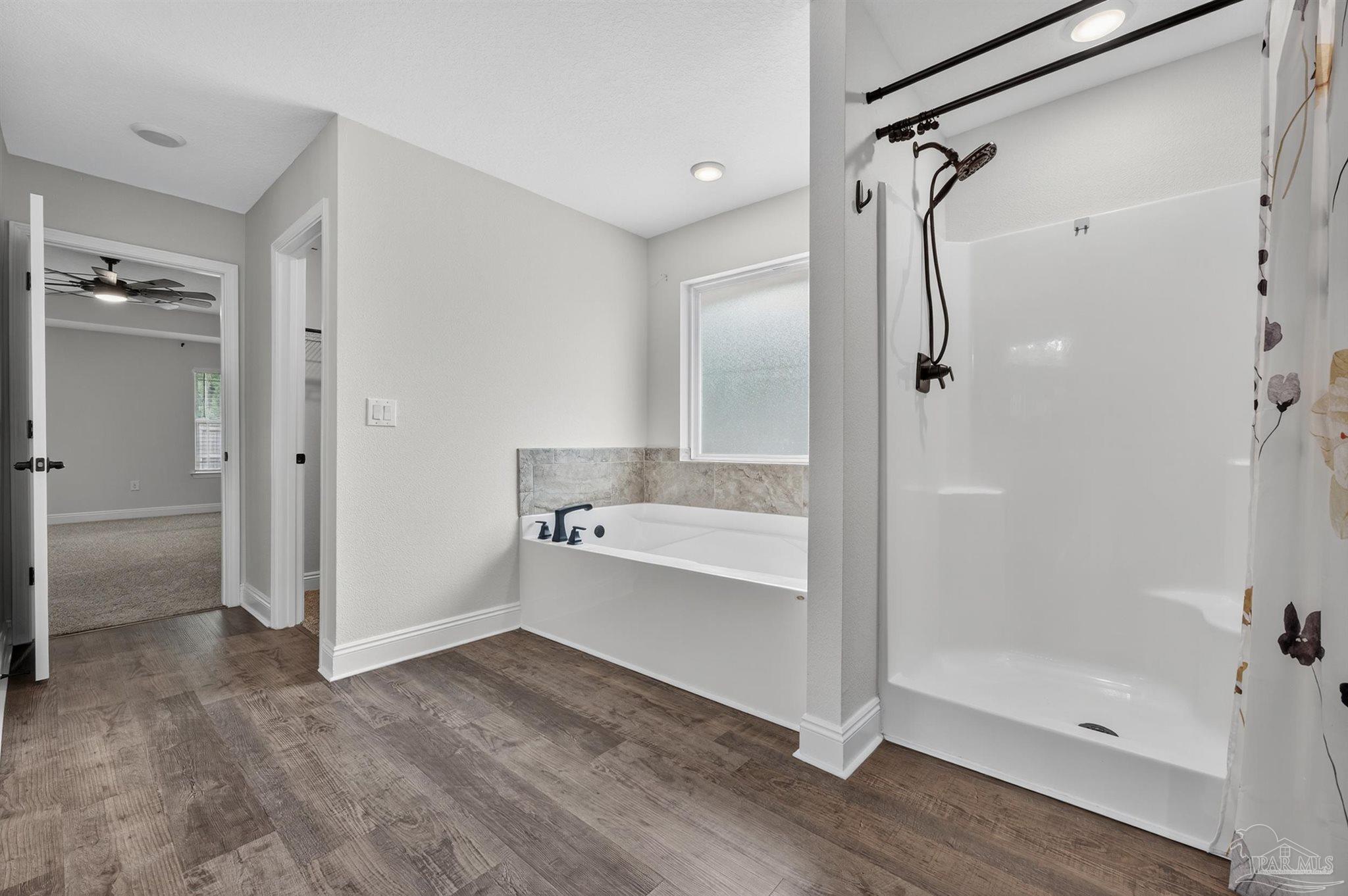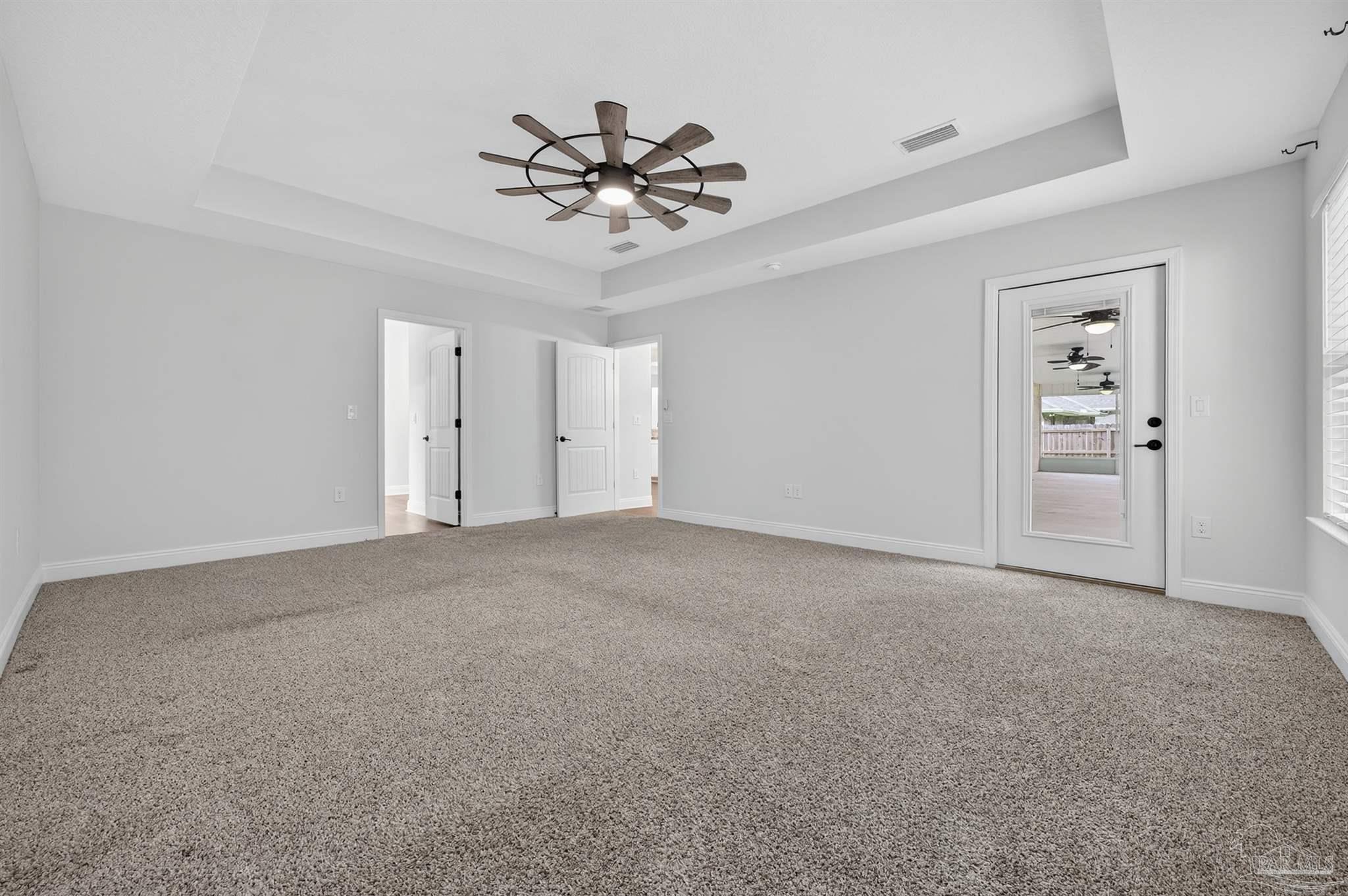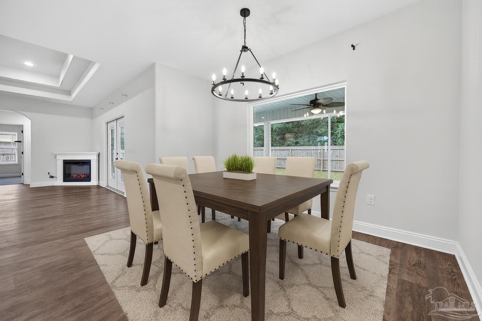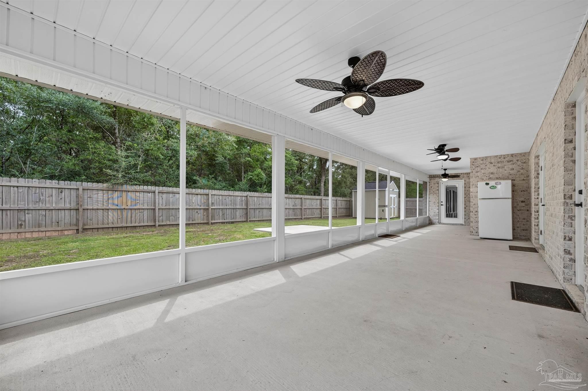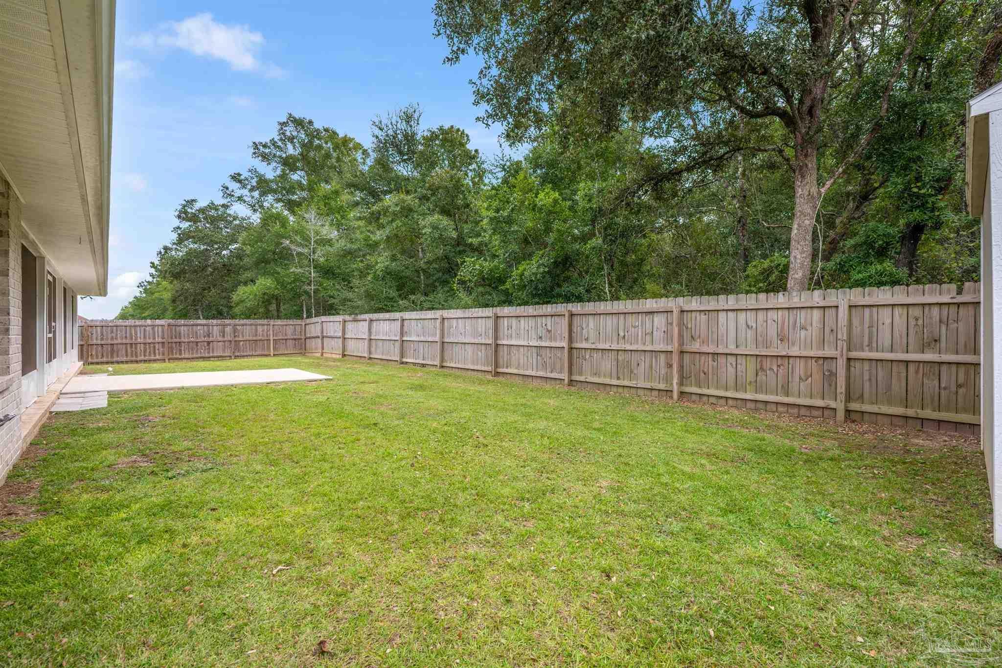 Welcome to this stunning 2021 brick home, thoughtfully crafted with elegant details throughout! Local Builder! Nestled in the well kept neighborhood of Plantation Woods, enjoy the freedom of no HOA along with an extended driveway, perfect for parking a boat or RV with ease. With a four-year-old roof, water heater, and HVAC, you can enjoy peace of mind knowing the major systems are up to date. Inside, neutral paint and LVP flooring create a seamless, inviting atmosphere across the open floor plan. The kitchen is a beauty, offering granite countertops, an island, a spacious pantry, and stainless steel appliances. Elegant tray ceilings and graceful archways add architectural charm, while the expansive 11x45 screened porch just off the living room extends your relaxation outdoors and offers the perfect place to unwind! The split primary suite features carpet, a tray ceiling and private screened in porch access. The en suite bathroom offers dual vanities, two expansive closets, a soaking tub, separate shower, and a water closet. For laundry made easy, there is direct access from one of the two closets to the laundry room. On the opposite side of the home, you’ll find 2 hallways leading to two full bathrooms and three additional bedrooms, providing privacy for family members or guests. Each bedroom features carpet, a ceiling fan and ample closet space. The fifth bedroom is located just off the kitchen, offering versatile use to suit your lifestyle. With durable LVP flooring it’s ideal as a bedroom, home office, gym, or even playroom. Outside, the peaceful backyard is enclosed with a privacy fence and surrounded by beautiful mature trees. The front yard does have irrigation. The property also includes an 11x11 shed for extra storage and a two-car garage with a workbench. This home is located near the interstate for an easy commute and just 25 minutes from Navarre Beach and Pensacola. Move in ready and well cared for, this property is prepared to welcome its next family!