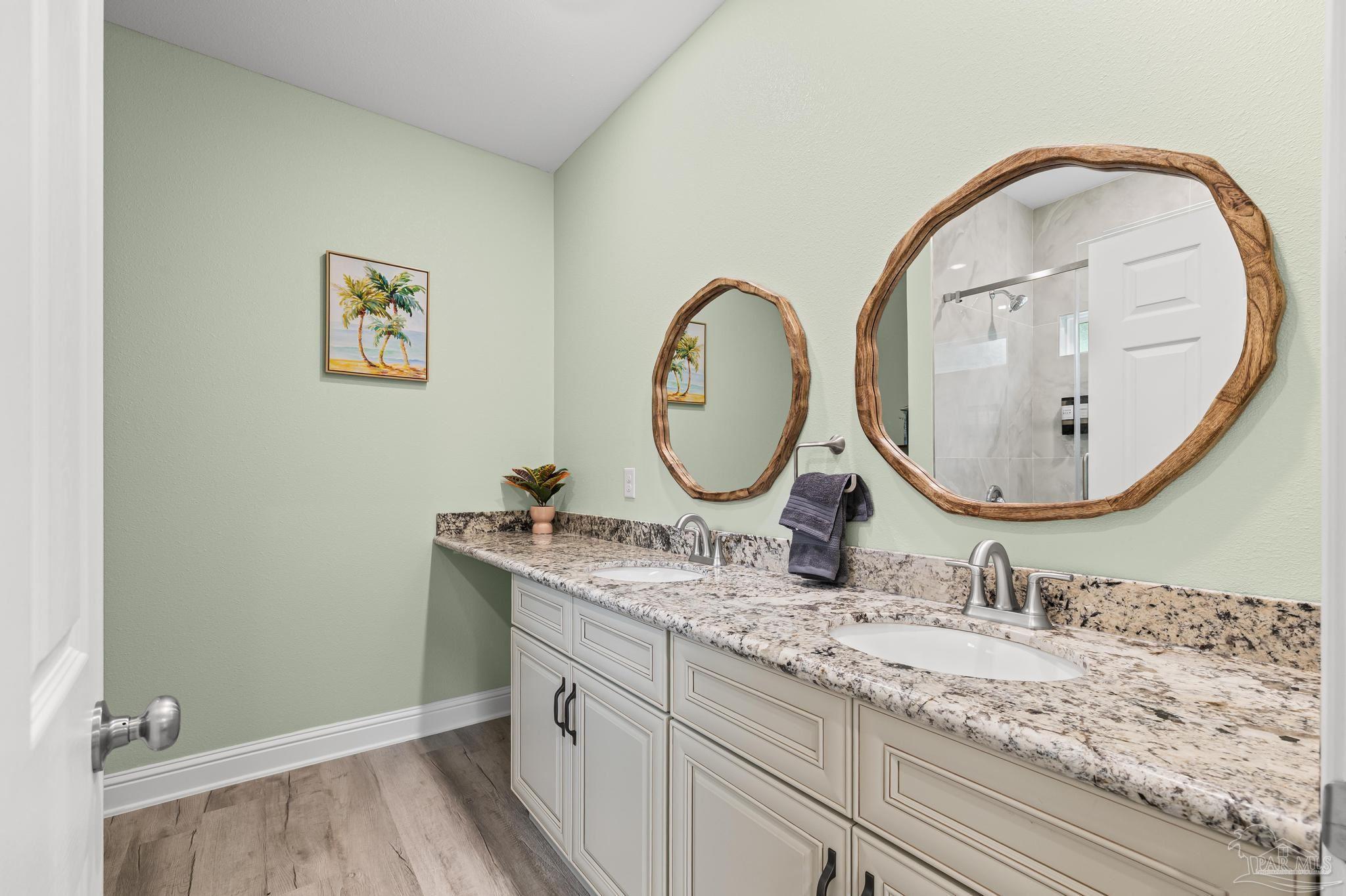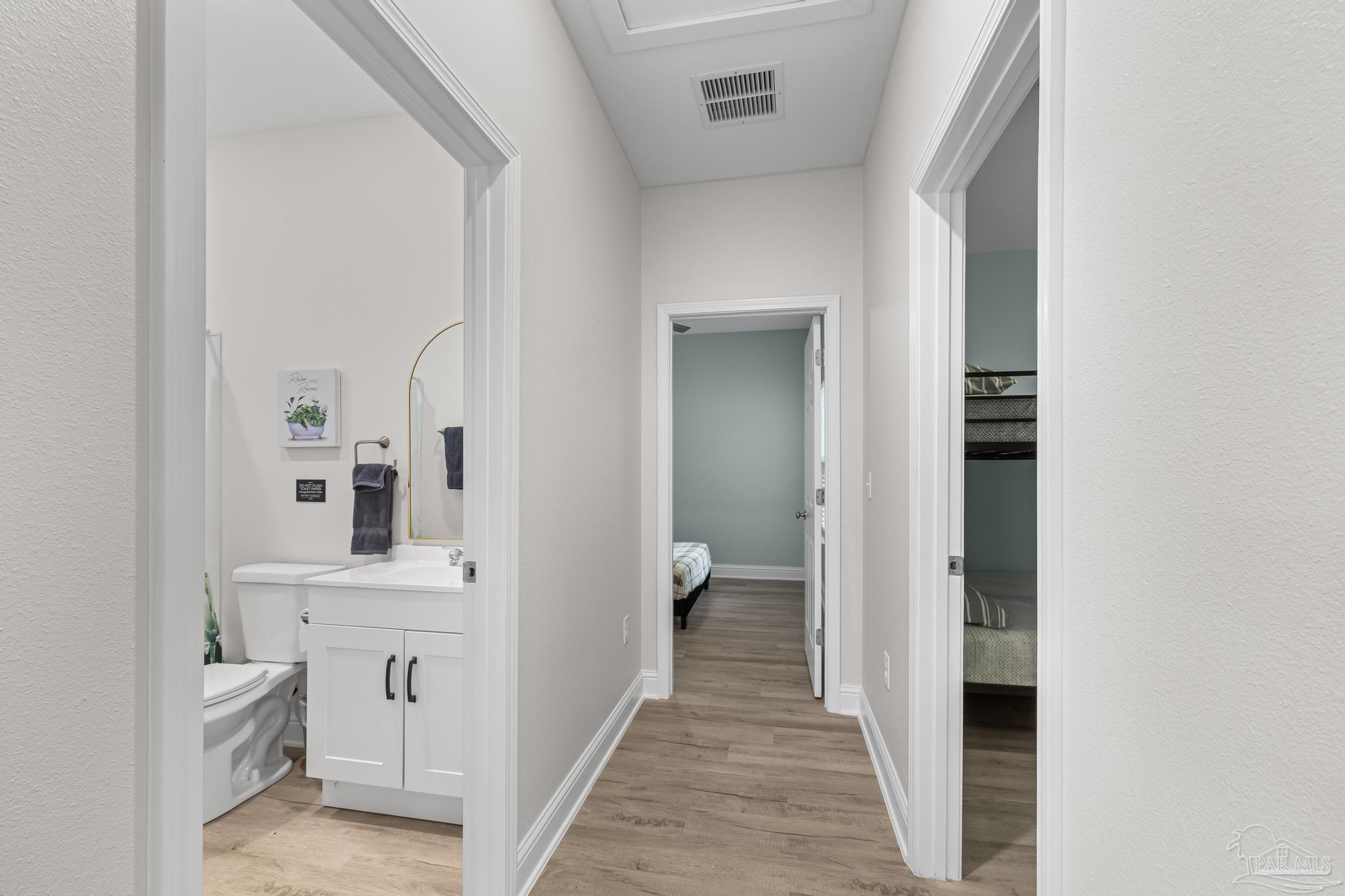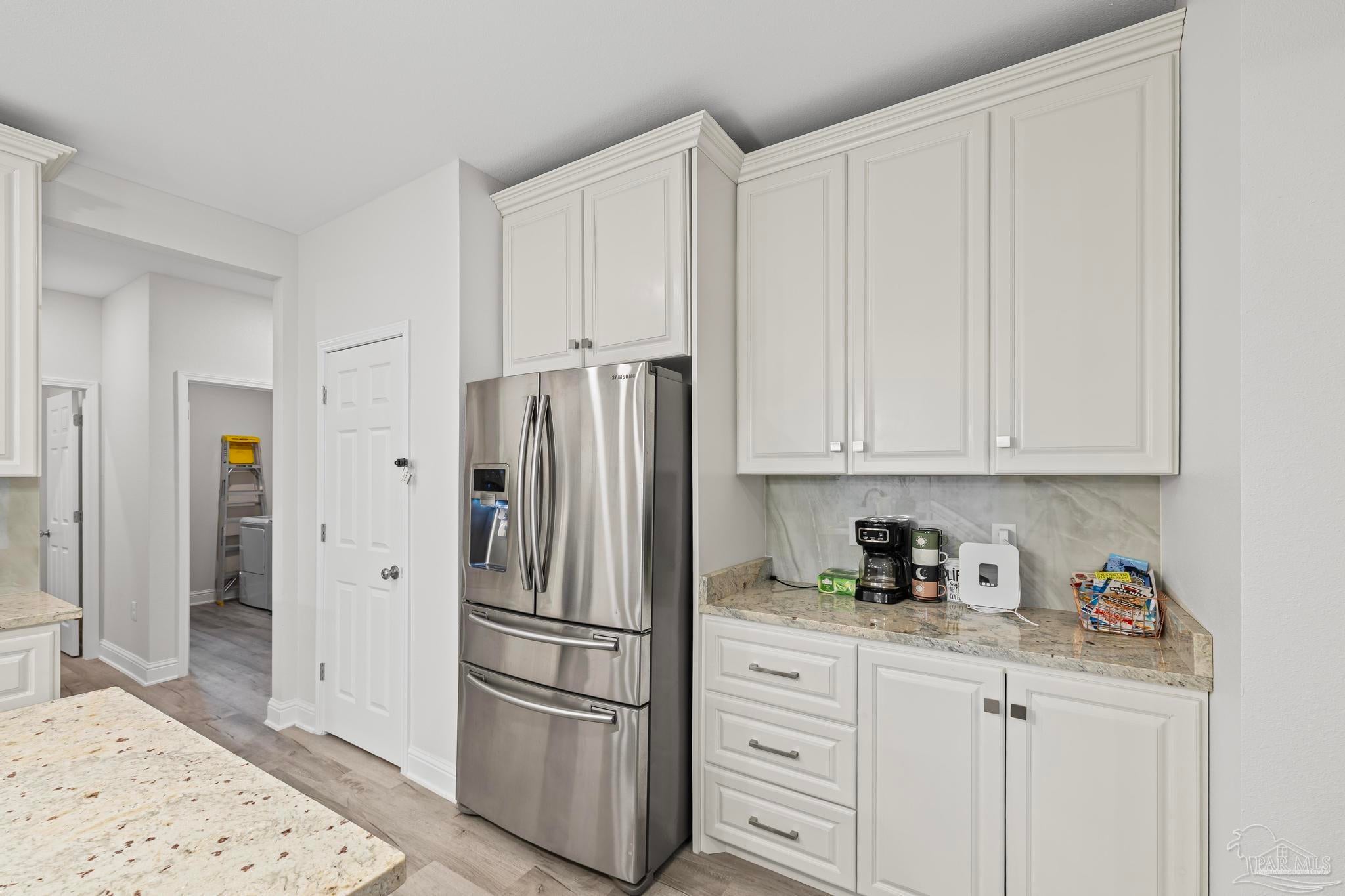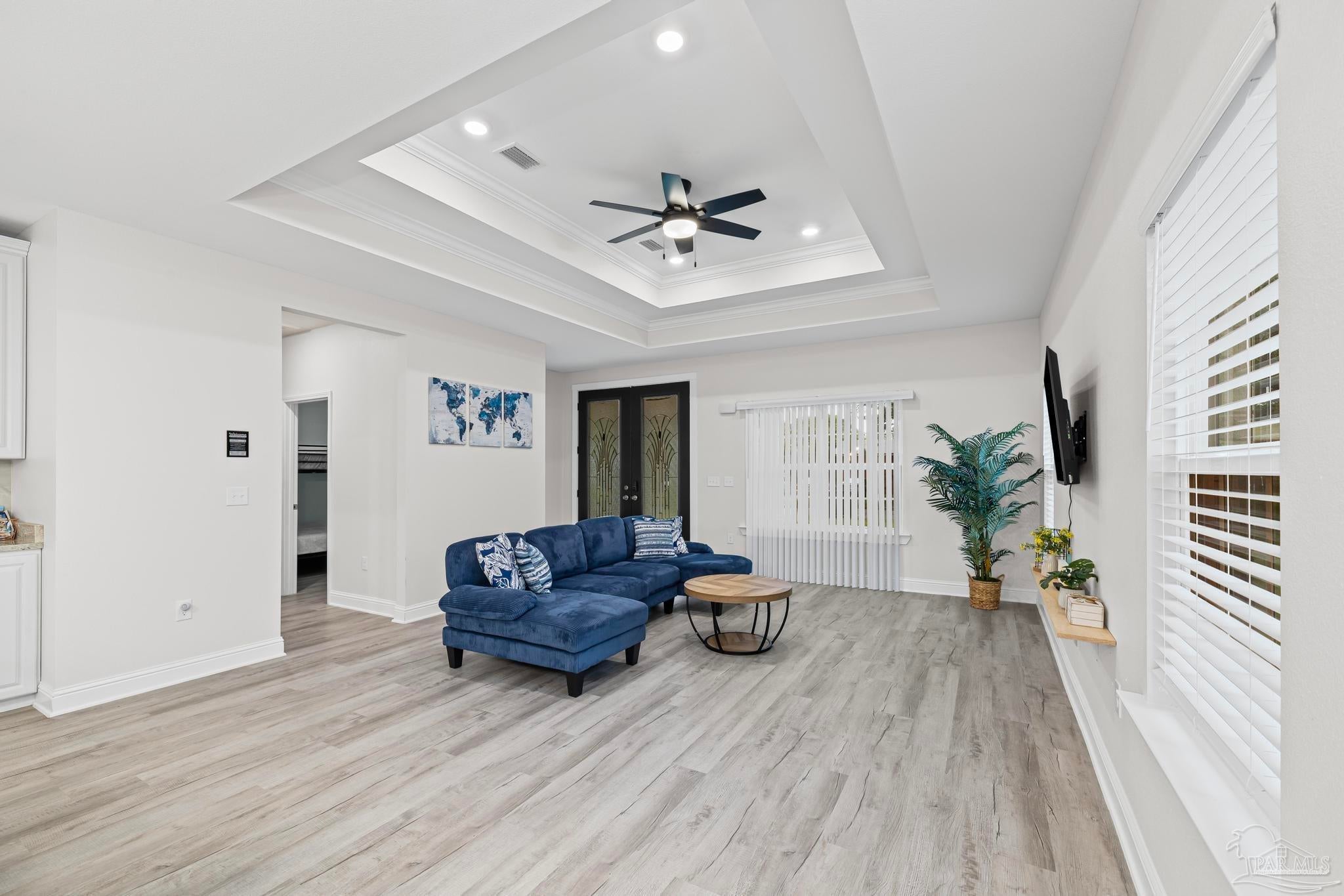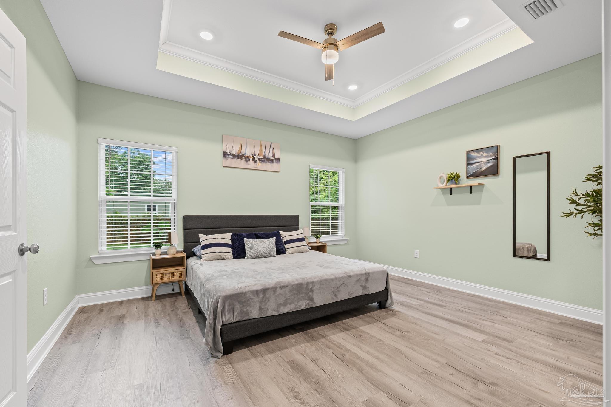Discover this stunning 2024-built brick Craftsman home, featuring 3 bedrooms, 2.5 bathrooms, and a detached 1-car garage on a .21-acre lot with no HOA—perfect for homeowners or investors. Just minutes from downtown Pensacola, enjoy easy access to restaurants, shopping, and local attractions. This home is being sold turn-key and fully furnished, making it a perfect move-in ready opportunity or investment rental. Step onto the large covered front porch and admire the well-manicured lawn. Inside, wide-plank LVP flooring, bright neutral paint, and abundant natural light create a welcoming and modern atmosphere. The living room boasts a tray ceiling, enhancing the open and airy feel. The open-concept kitchen features stainless steel appliances, modern fixtures, a large island with sink and breakfast bar, and an eat-in dining area—ideal for everyday meals or entertaining. Retreat to the primary suite, complete with a tray ceiling, modern lighting, a large walk-in closet, and a luxurious primary bathroom with granite countertops, double sinks, and a glass-enclosed walk-in tile shower. Both guest bedrooms include walk-in closets for added storage. Convenient indoor laundry adds practicality. Relax in the lush backyard with a covered patio, perfect for outdoor living or entertaining. Additional features include a transferrable roof warranty, making this move-in ready home both stylish and low-maintenance. This brick Craftsman home near downtown Pensacola offers modern living, charm, and strong investment potential—all in one beautifully furnished, turnkey package.