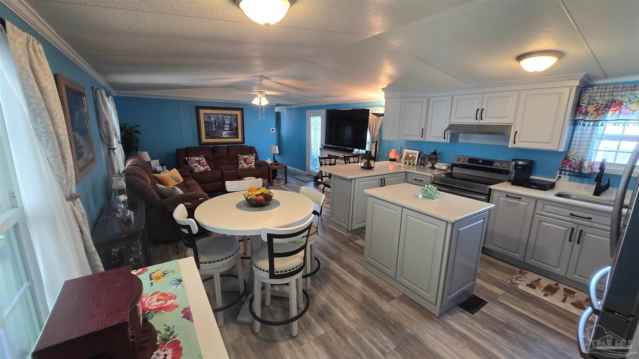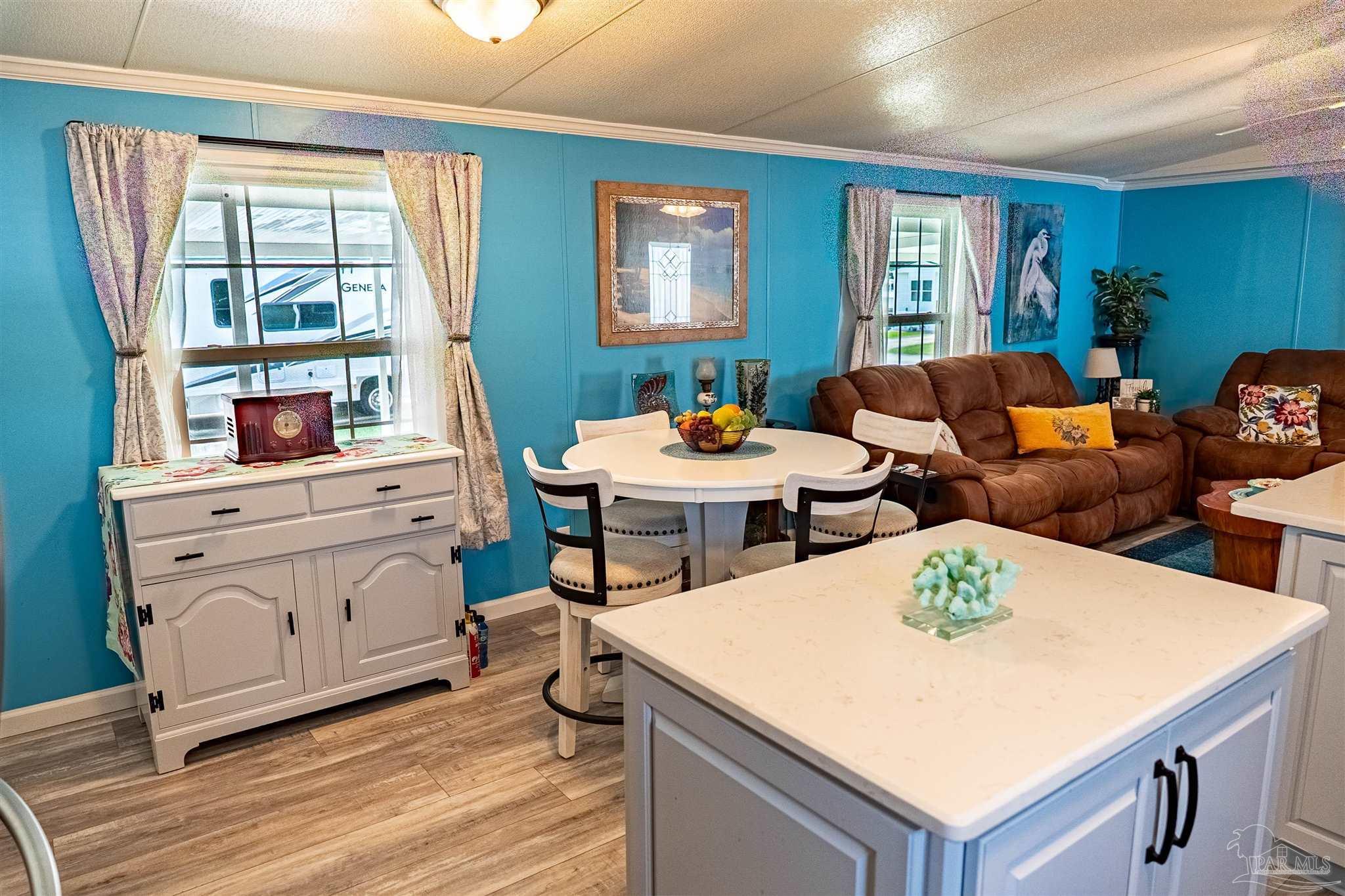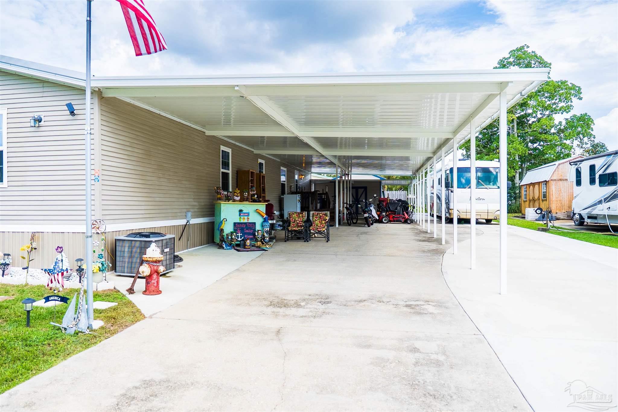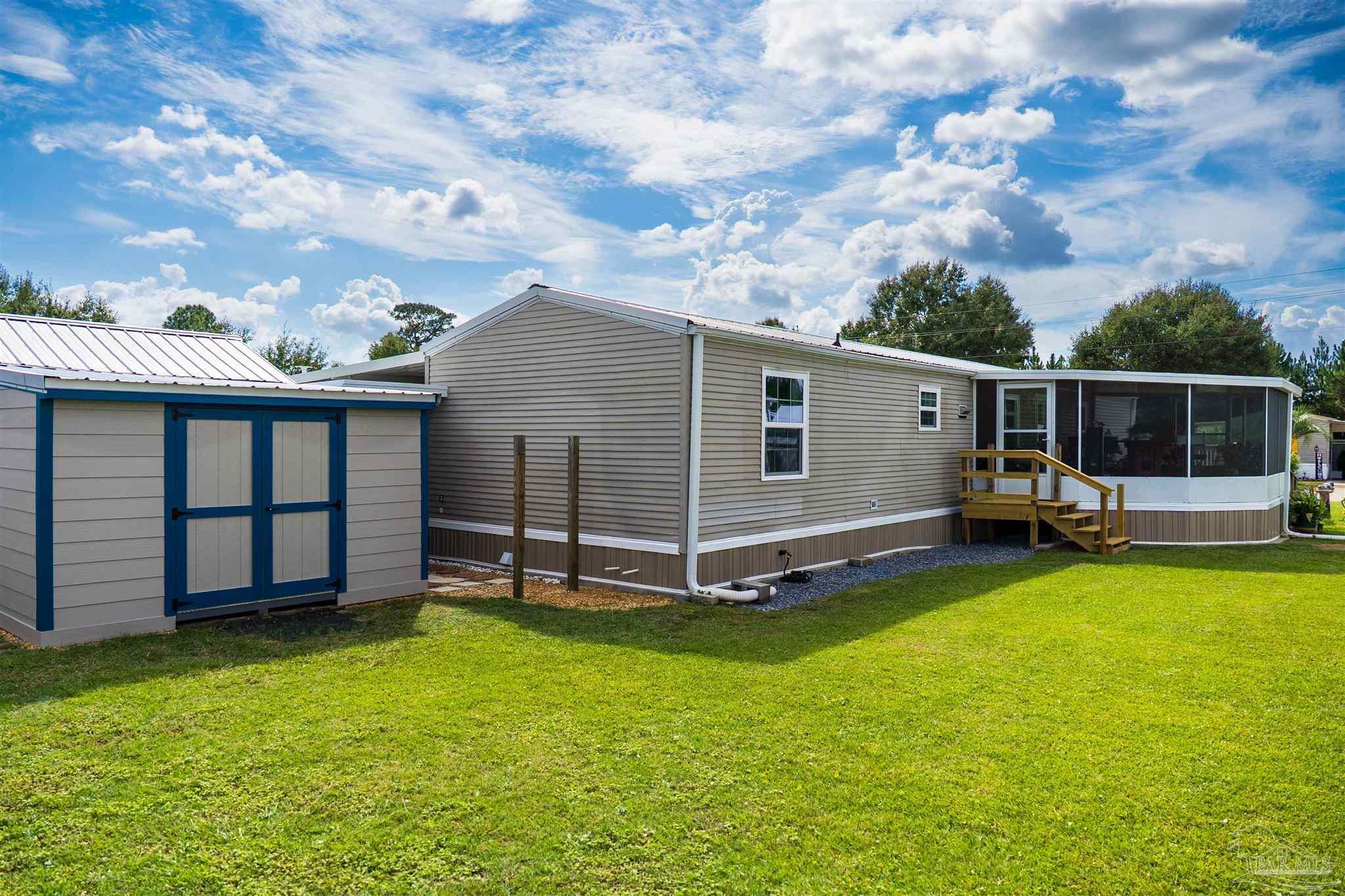 Prepare to be dazzled by this magnificently remodeled 3BR/2-bath beauty, nestled in the highly sought-after Spanish Cove subdivision! The heart of this home is the gorgeous, custom-designed kitchen, featuring new cabinetry, gleaming quartz countertops, state-of-the-art stainless-steel appliances & a center island which provides the ideal space for both food prep & gatherings! The spacious primary suite is complete with an ensuite bath with a walk-in shower. Every detail has been meticulously crafted, from the New double pane-windows, to the freshly painted walls & crown molding, to the beautiful, resilient new LVP flooring throughout,all of which add elegance & warmth to the home. You'll say "WOW!" the moment you walk in the door! Outside, the excitement continues with a serene, screened porch ideal for relaxing & unwinding while the large shed has plenty of room for all your storage needs. But that's not all – discover an extra massive concrete slab, ideal for parking multiple vehicles, RVs, or recreational vehicles, and it even includes an RV hookup! This isn't just a home; it's a true masterpiece, meticulously prepared & waiting for you to simply move in and start living your best life! If you enjoy many activities right at your fingertips, then the Spanish Cove subdivision is for you! This friendly Golf Cart community offers many amenities such as, 24 Hour Security, an outdoor pool that overlooks Perdido Bay & is seasonally covered & heated, as well as a Club house, Bay access, a fishing pier, playground, beach area, and a tennis/pickleball court! WOW! Additionally, this home is located just minutes from a public boat launch, the beautiful beaches of the Gulf of America, as well as, shopping, dining & amusement parks & many activities living at the Gulf Coast has to offer! Don't miss out on this Turn Key Coastal Retreat in a Great Location! Call and schedule your private tour TODAY! Buyer to verify all information during due diligence.