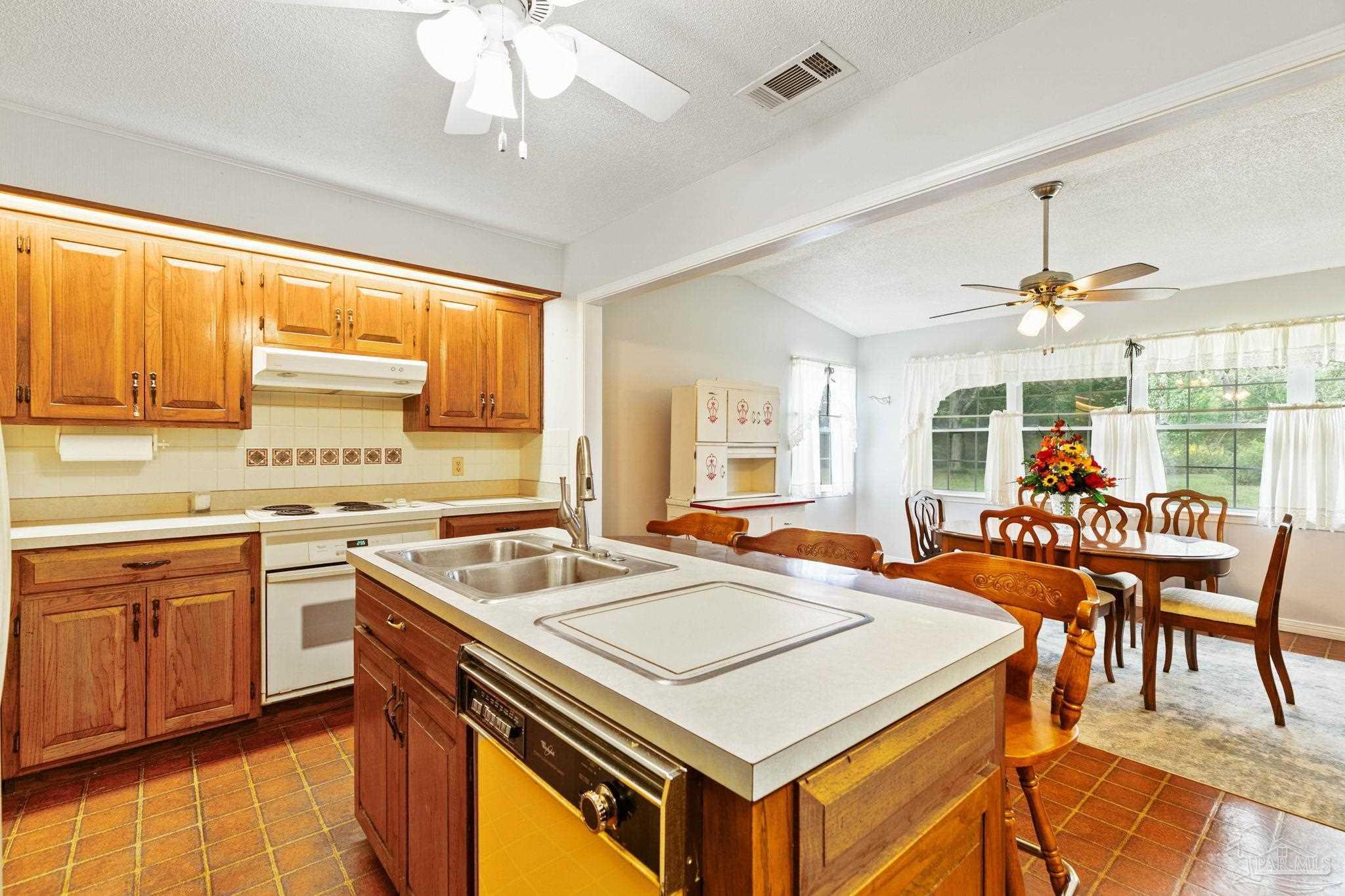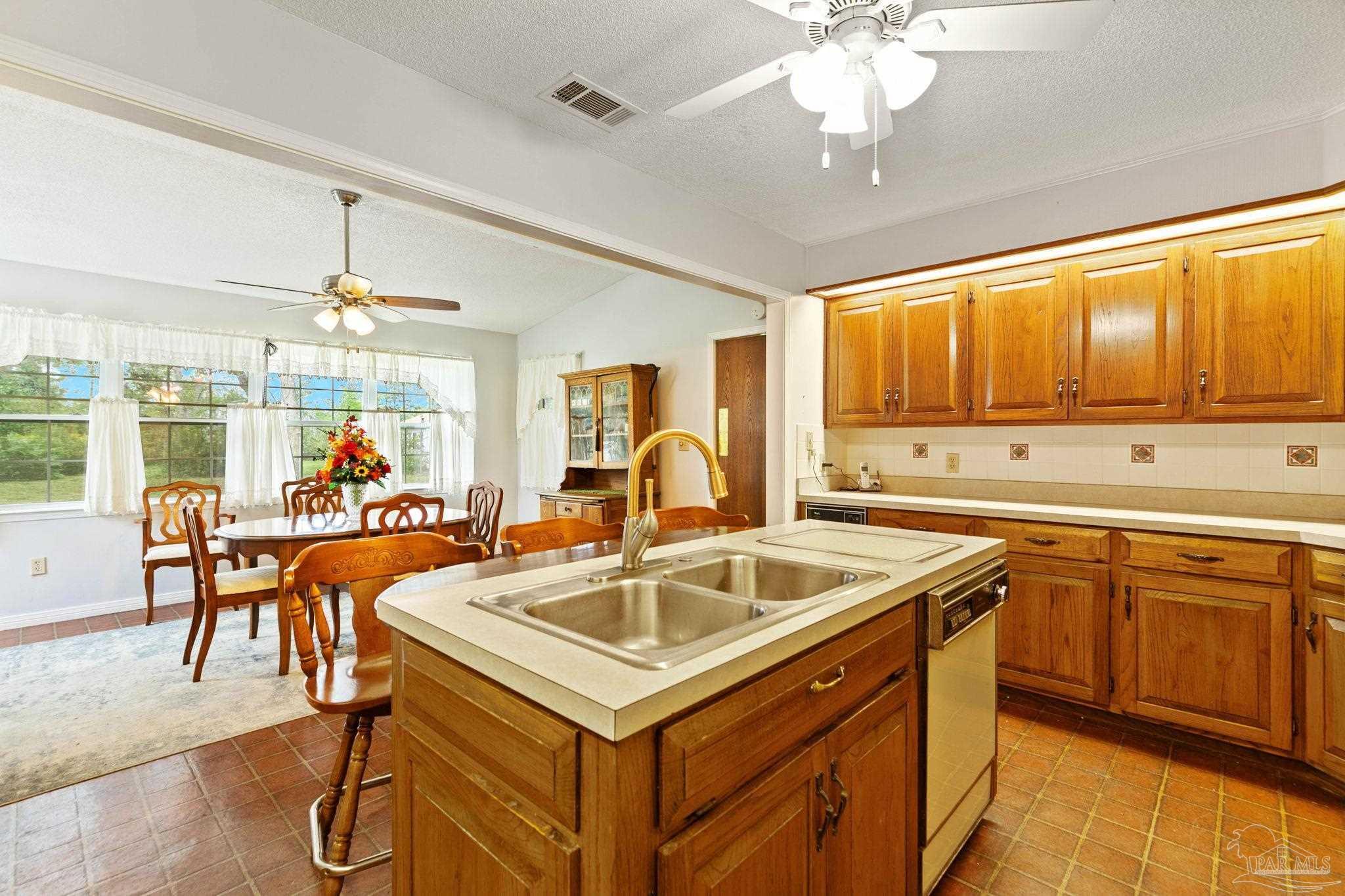 Walnut Hill, FL - NEW PRICE! Spacious two-story home on acreage with fenced pasture, stables, and more. Located in the sought-after Walnut Hill community, with a McDavid address, this property is designed for comfort and functionality inside and out. Key Features: *Fenced pasture & stable. *5 Bedrooms / 2,549 sq. ft. with cathedral & vaulted ceilings. *Living Room: Cozy fireplace as the centerpiece. *Kitchen: Oak cabinets, breakfast bar, tile backsplash, lighted cabinets, walk-in pantry, all appliances + trash compactor. *Primary Suite (Downstairs): Oversized closet, double vanity, dressing area. *Two Upstairs Bedrooms: Each with private bonus rooms for office, playroom, or converting into an upstairs bathroom. *Laundry: Washer & dryer included - truly move in ready. BRAND NEW WATER HEATER INSTALLED 10-28-2025 *Garage: Attached 2-car garage for convenience. *Outdoor Living: Patio, versatile 24x16 greenhouse, 48x38 barn with stables, established figs & muscadines. This property blends functionality with natural beauty, offering space for family, hobbies, and animals alike. Whether you’re looking for a horse-ready property, a small homestead, or simply room to spread out, this Walnut Hill home has it all. Don’t wait—schedule your showing today and see how this property can fit your lifestyle.
