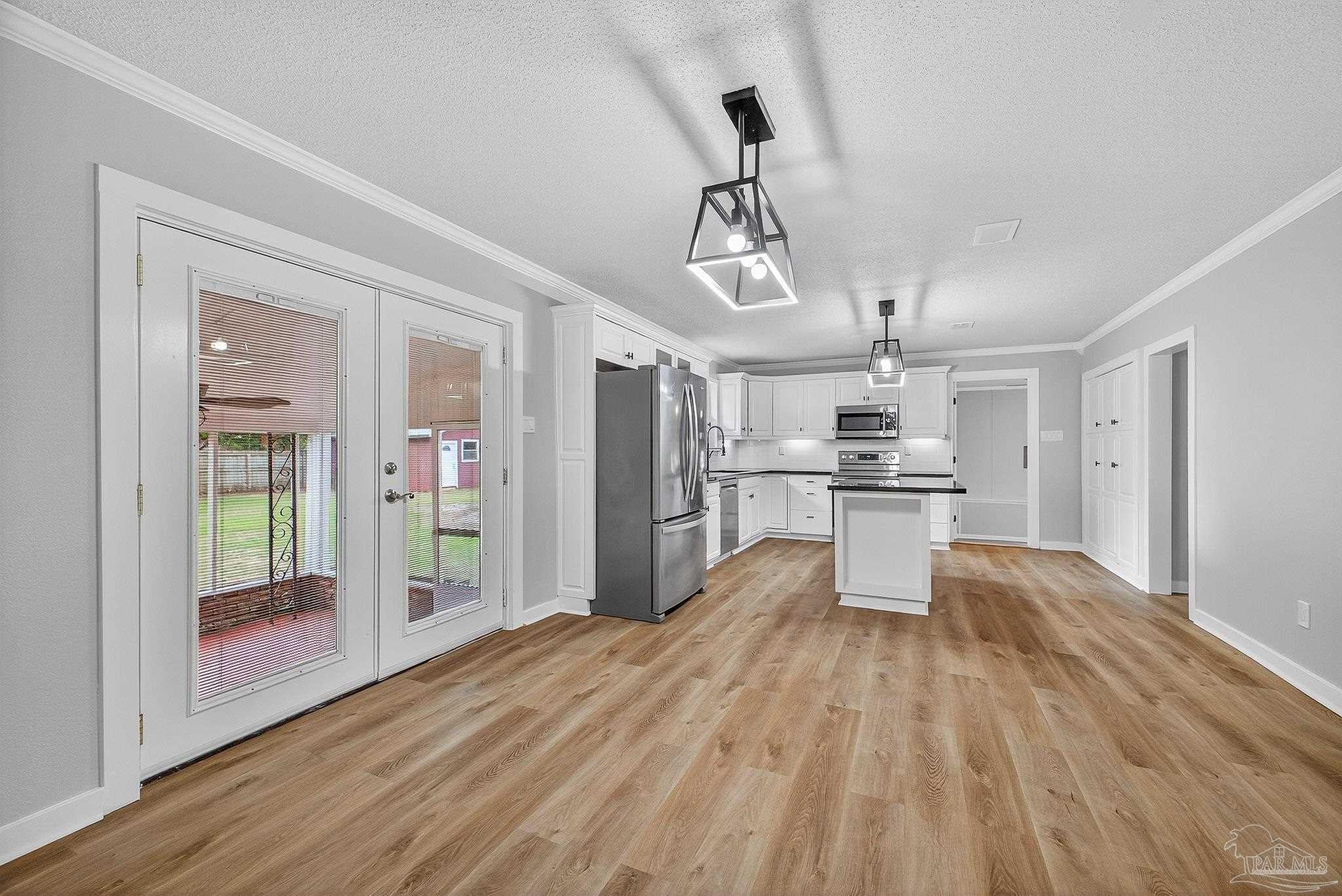 Welcome to this charming ranch-style home that's been thoughtfully updated and is ready for you to move in. Inside, you'll find fresh paint throughout, brand-new luxury vinyl plank (LVP) flooring, updated lighting and ceiling fans, and fully renovated bathrooms featuring new toilets, vanities, and a modern shower stall. The kitchen also has newly painted walls and cabinets, new crown molding, lighting, granite counter tops, subway tile backsplash, new sink with Kohler faucet, and LVP flooring. Major upgrades also include a new water heater and roof, and the HVAC was just serviced, offering peace of mind and long-term value. Out back, there's a detached garage and a workshop—ideal for hobbies, storage, or extra workspace. The home is perfectly located just minutes from Pensacola State College and provides quick access to the interstate. You're only 30 minutes from downtown Pensacola and 40 minutes from the white-sand beaches of Navarre and Pensacola Beach. Enjoy the convenience of being situated between the shopping and dining hubs of Milton and Pace. Military families will appreciate the close proximity to NAS Pensacola, Spencer Field, and Whiting Field. For nature lovers, the Arcadia Mill Nature Trail and creek are within walking distance, while the scenic Blackwater River is just a short drive away—perfect for outdoor adventures like kayaking, hiking, and picnicking. Don’t miss your chance to own a beautifully updated home in a location that truly has it all—comfort, convenience, and natural beauty.