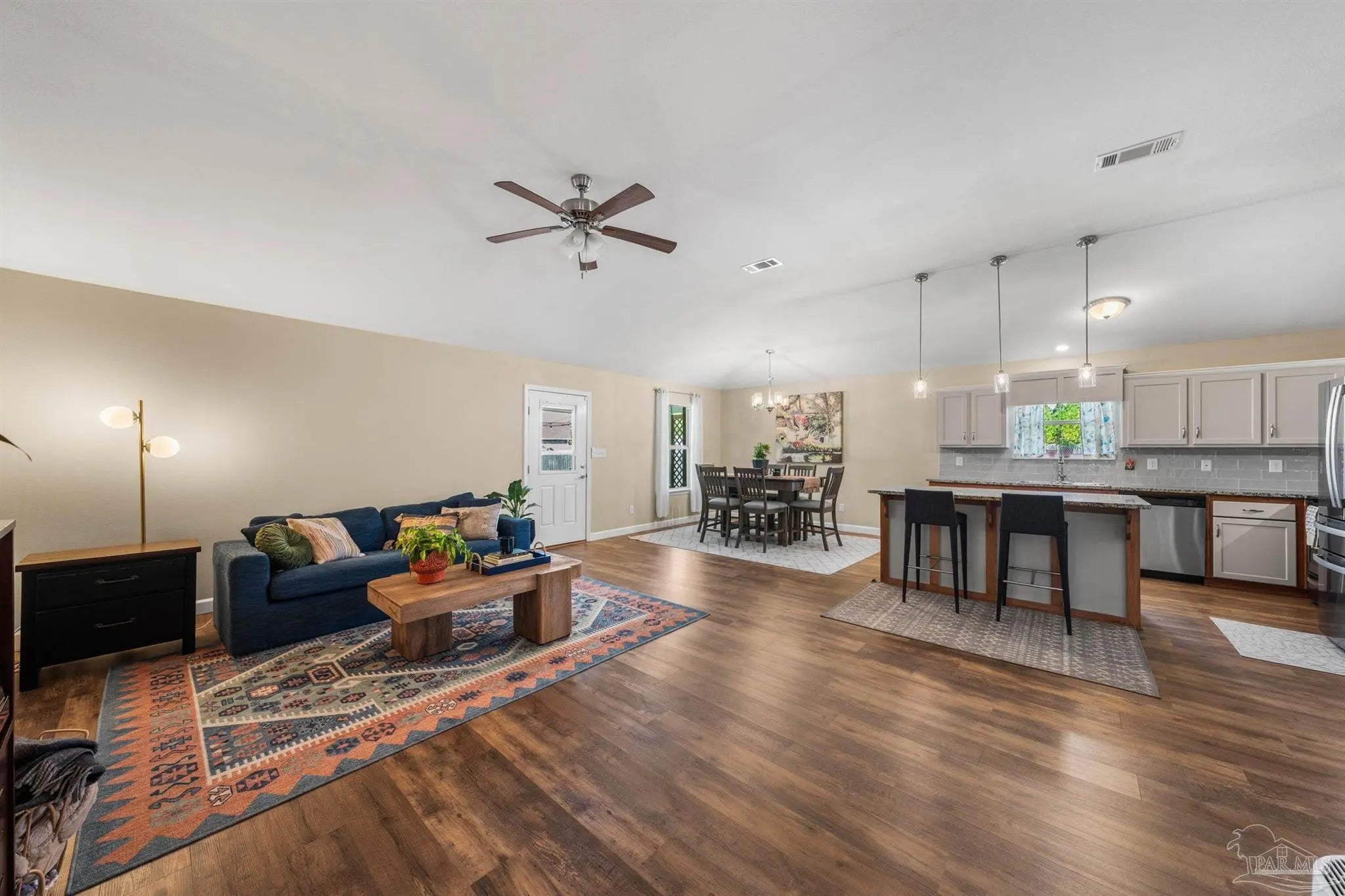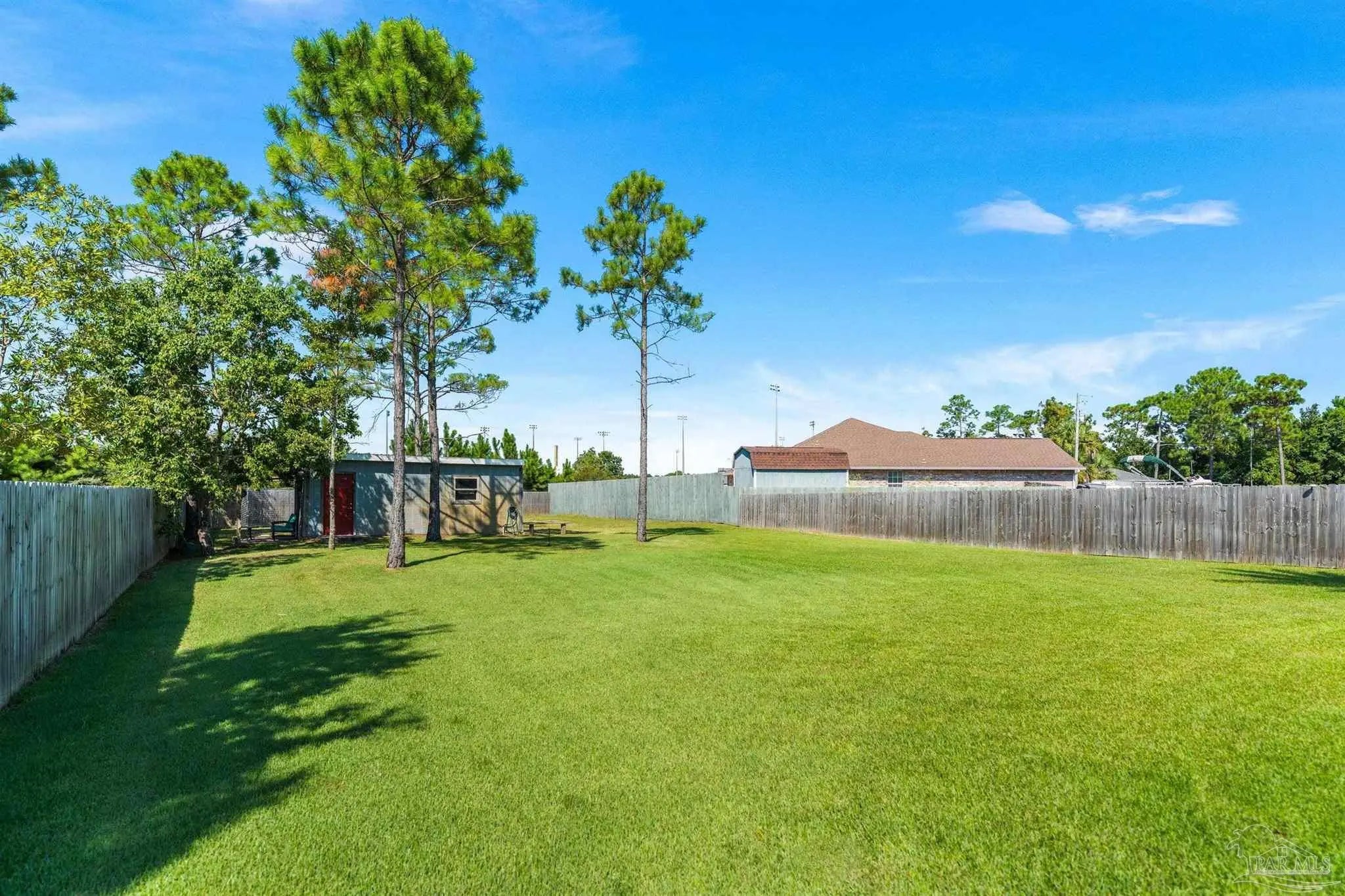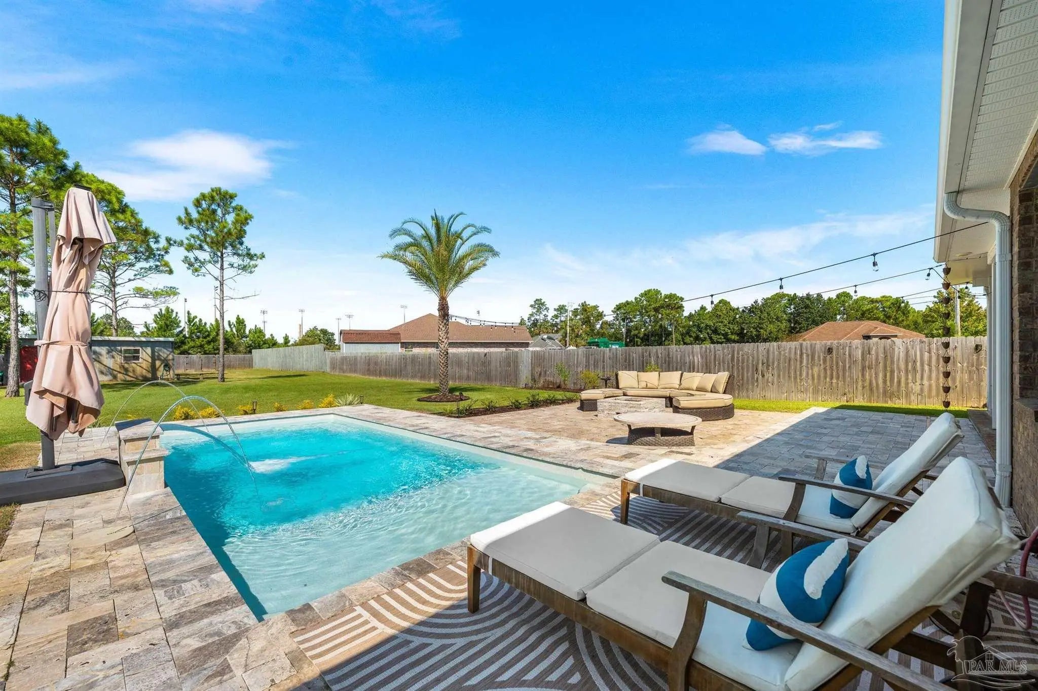 Weekends feel like a getaway in this resort-inspired backyard, where $130,000 in enhancements created a heated fiberglass pool that shimmers beside elegant decking, a firepit for evening gatherings, and an extended covered patio for shaded afternoons. Towering palms and manicured landscaping complete the scene, offering a private escape without ever leaving home. Inside, the four-bed, two-bath home, built in 2020 by Lonnie King Construction, flows with ease thanks to an open floor plan designed for connection, whether it's entertaining friends or enjoying a quiet family dinner. Natural light fills each room, creating a warm, welcoming atmosphere that complements the home's thoughtful design. On nearly half an acre with no HOA, the property offers freedom and functionality. A fully fenced yard with a 17-foot gate allows RV or boat storage, while an oversized workshop with water and electricity expands possibilities for hobbies or projects. With an irrigation system to keep the grounds lush and a location close to schools, shopping, and dining, this home combines everyday convenience with a lifestyle that feels like a retreat.