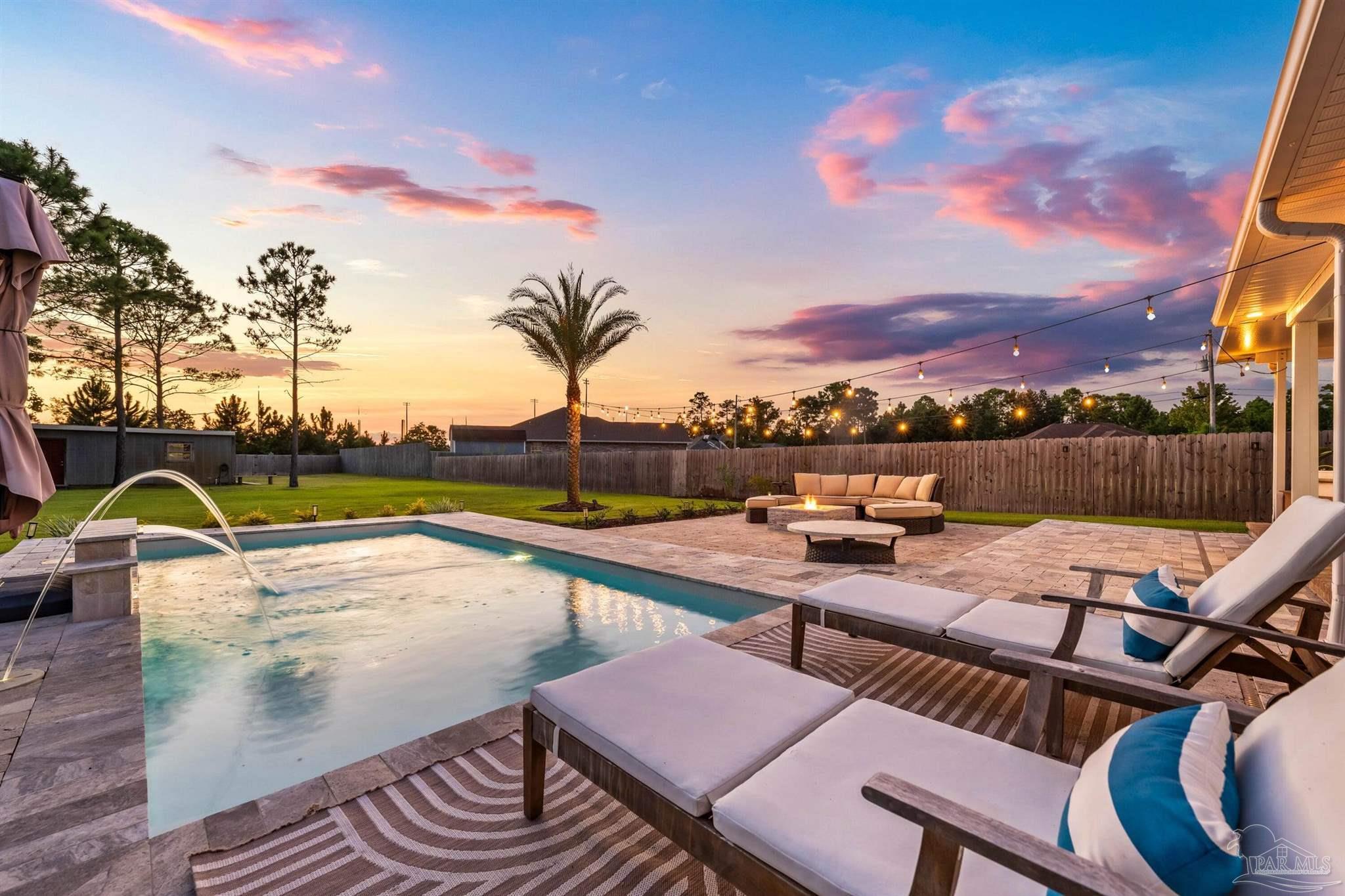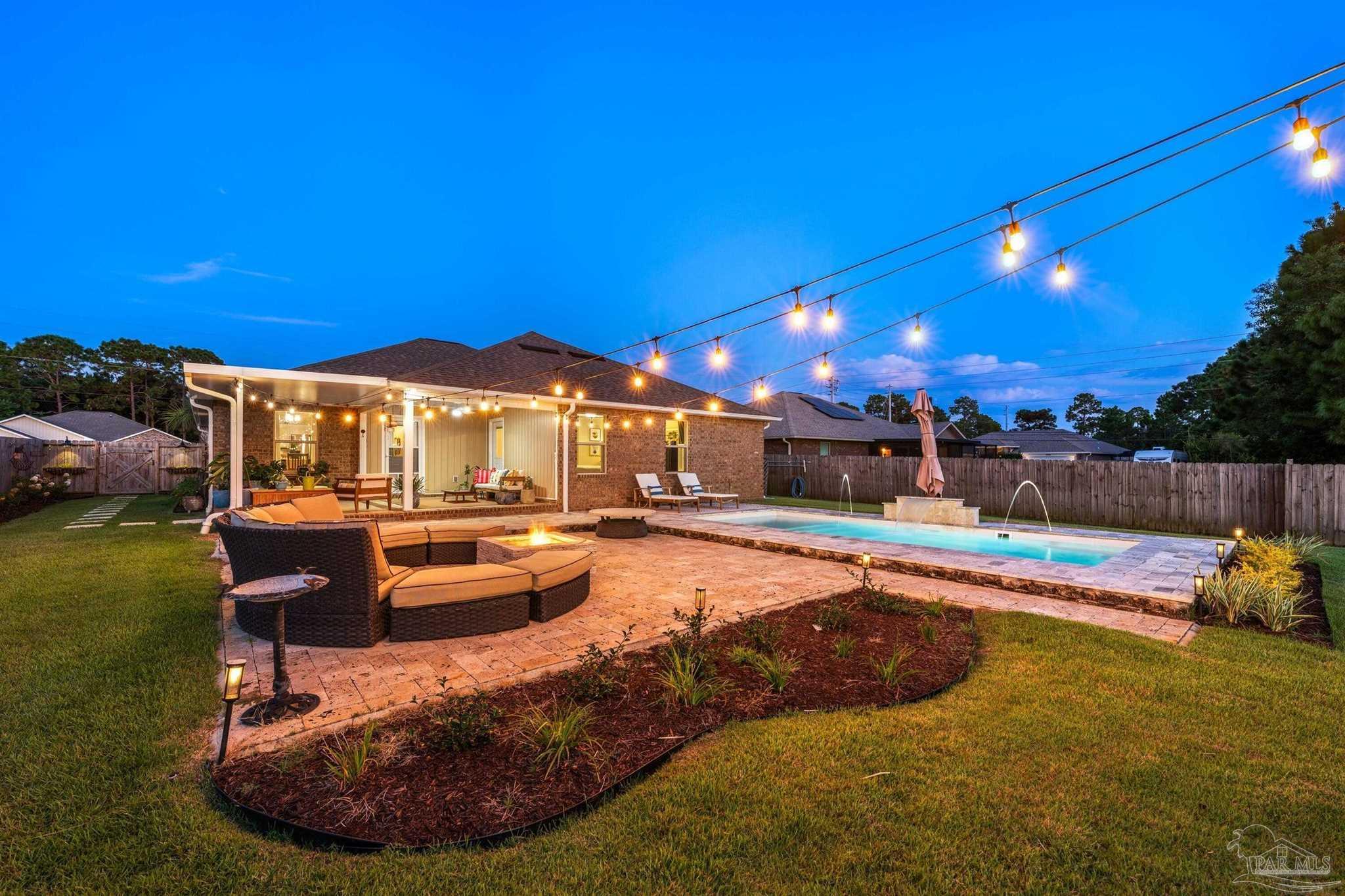 Weekends feel like a getaway in this resort-inspired backyard, where $130,000 in enhancements created a heated fiberglass pool that shimmers beside elegant decking, a firepit for evening gatherings, and an extended covered patio for shaded afternoons. Towering palms and manicured landscaping complete the scene, offering a private escape without ever leaving home. Inside, the four-bed, two-bath home, built in 2020 by Lonnie King Construction, flows with ease thanks to an open floor plan designed for connection, whether it's entertaining friends or enjoying a quiet family dinner. Natural light fills each room, creating a warm, welcoming atmosphere that complements the home's thoughtful design. On nearly half an acre with no HOA, the property offers freedom and functionality. A fully fenced yard with a 17-foot gate allows RV or boat storage, while an oversized workshop with water and electricity expands possibilities for hobbies or projects. With an irrigation system to keep the grounds lush and a location close to schools, shopping, and dining, this home combines everyday convenience with a lifestyle that feels like a retreat.