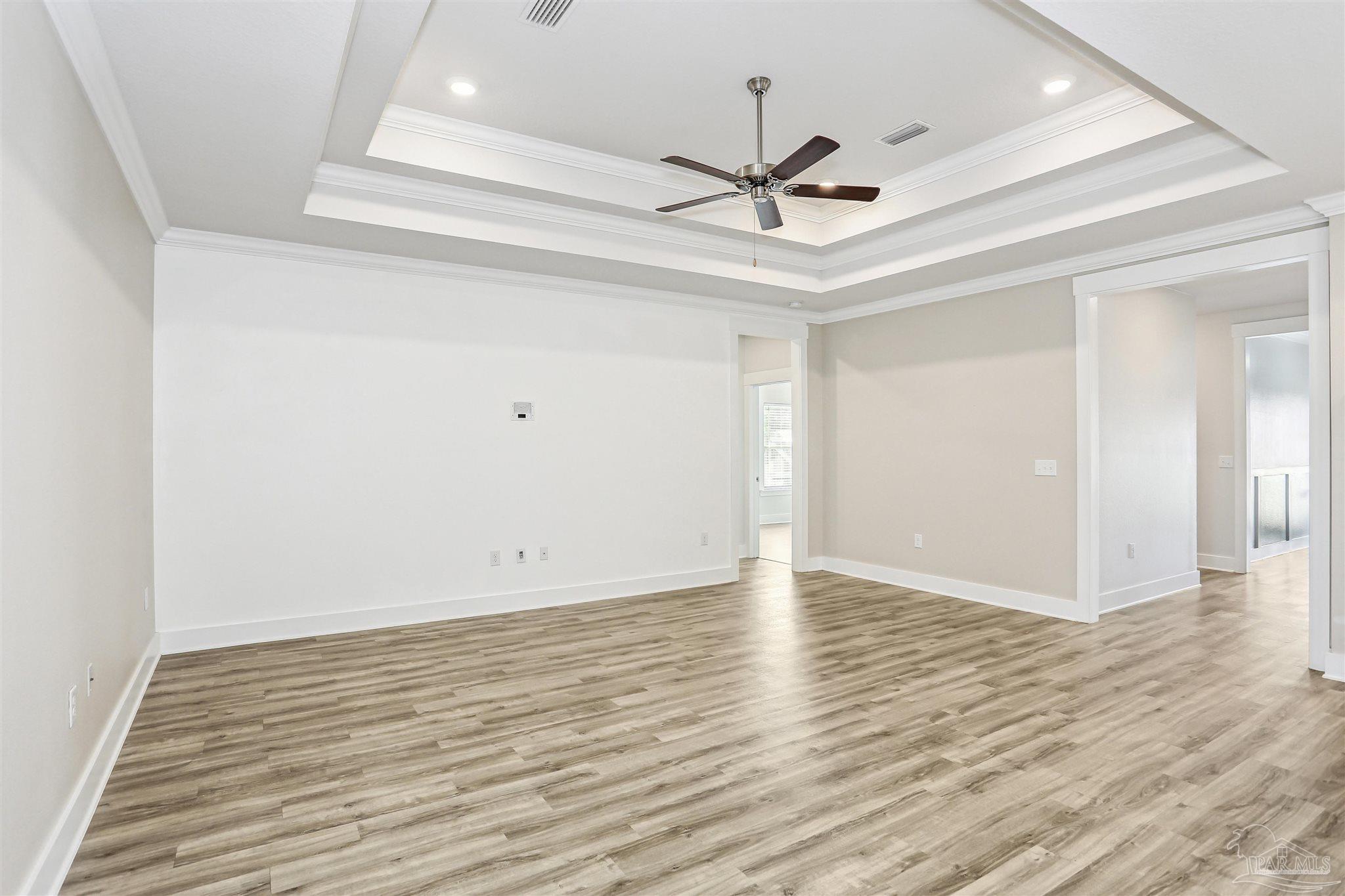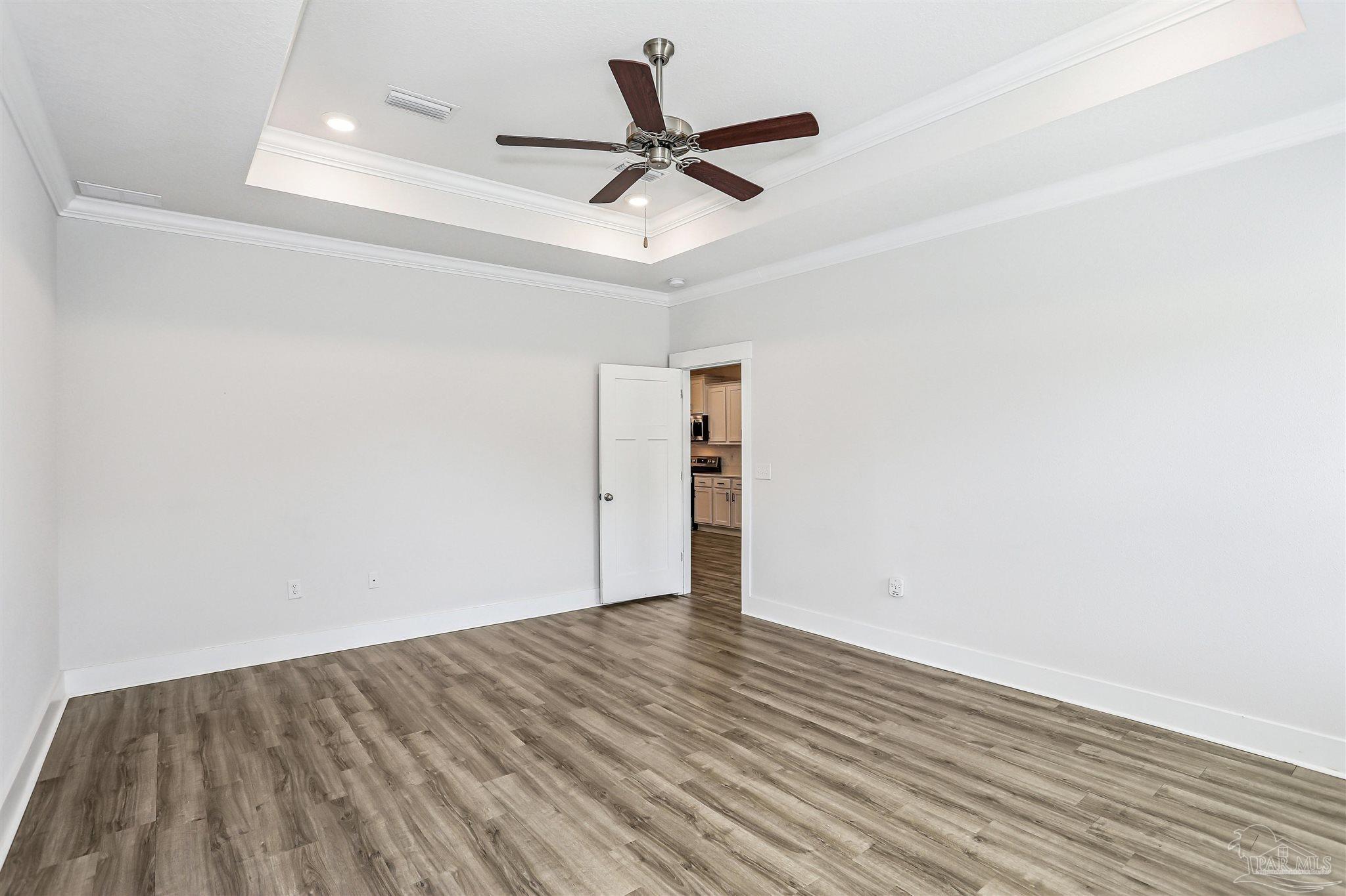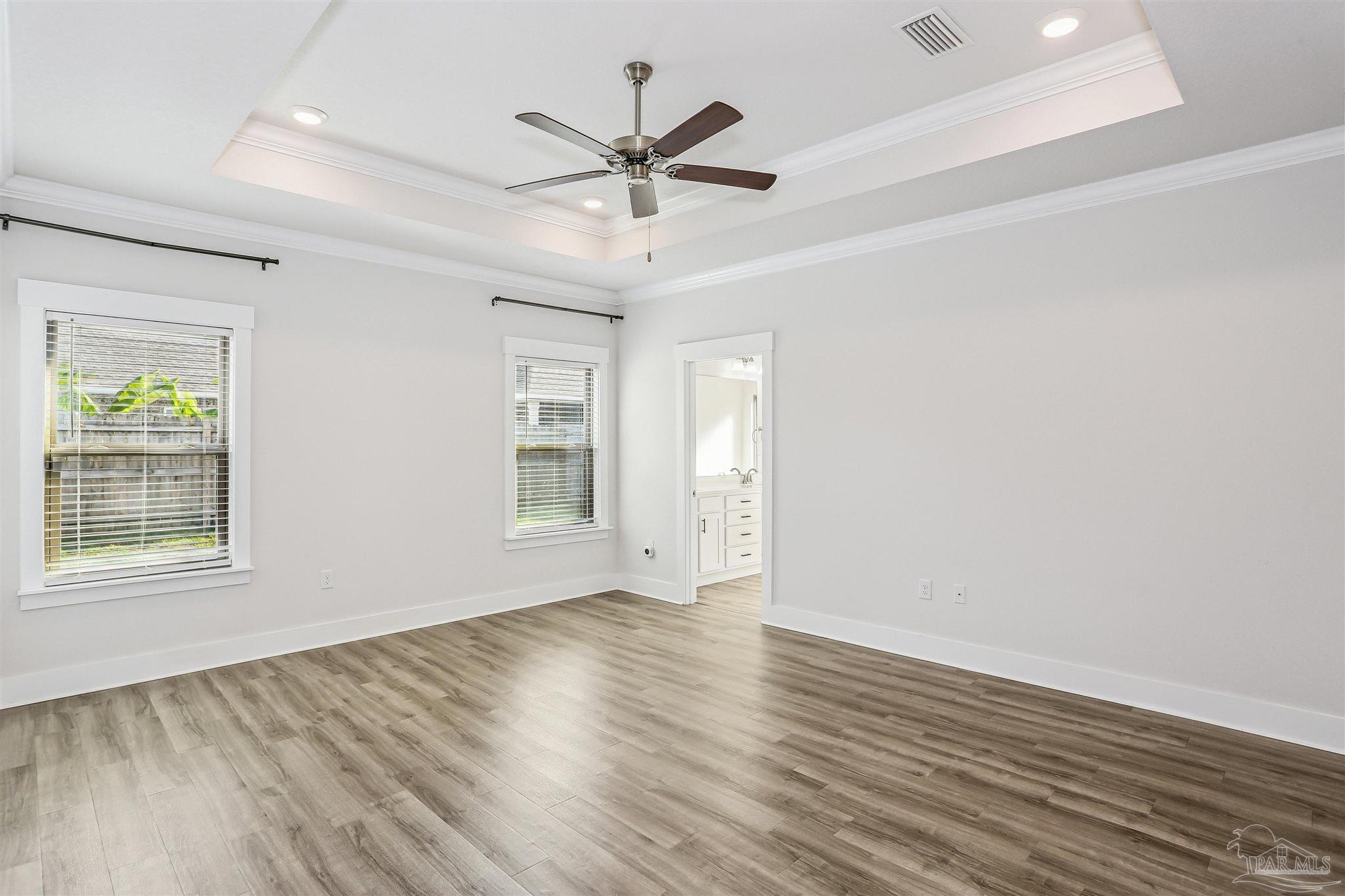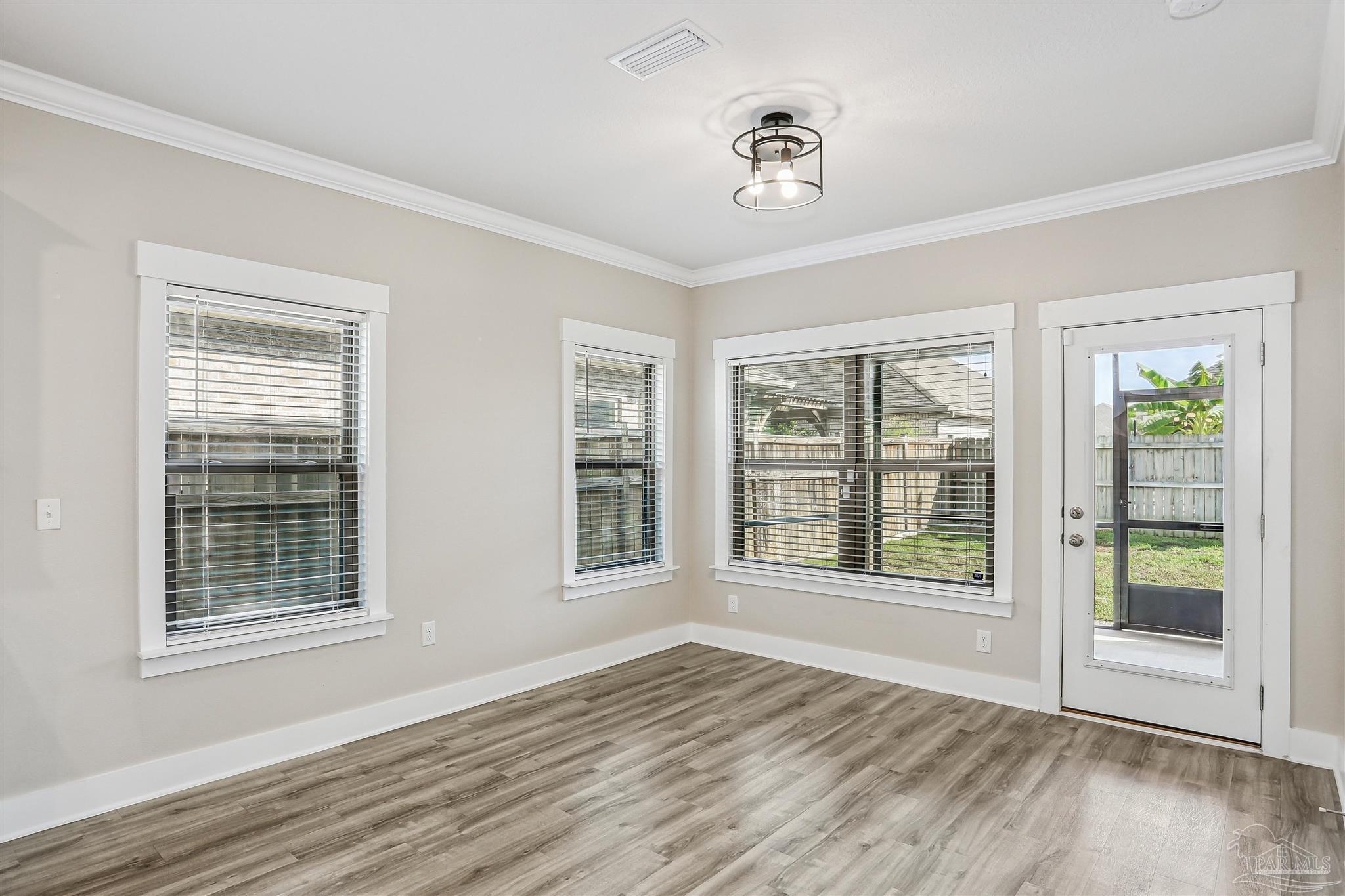 Welcome to your dream home in the highly sought-after Cambridge Park neighborhood! This stunning 4-bed, 3-full-bath home is nestled on a peaceful cul-de-sac, and has a BRAND NEW Generac whole house generator (Sept 2025). Step inside through a foyer which leads to the open-concept layout. The kitchen is a standout with its oversized island, quartz countertops, abundant cabinetry, generous counter space, a spacious walk-in pantry, and premium stainless-steel appliances, complete with a brand-new refrigerator. Enjoy the ease of luxury vinyl flooring throughout the entire home. The primary suite is privately positioned at the back of the house for ultimate privacy and is complete with a lavish 5-piece en-suite bathroom that features a double-sink vanity, quartz counters, a garden tub, a separate glass-enclosed shower, and an oversized walk-in closet. Up front, the second bedroom offers its own ensuite bath and walk-in closet for added privacy. The remaining two bedrooms, conveniently located off the living room, share a full third bathroom—ensuring comfort for family, guests, or a home office setup. Outside you'll find a covered and screened back patio, gutters, a storm door, and a fully fenced backyard! Enjoy the neighborhood conveniences of underground utilities, sidewalks, streetlights and the close proximity to Hurlburt Field, Eglin AFB, NAS Pensacola, shopping & restaurants, Pensacola International Airport, and the beautiful beaches of the Gulf!