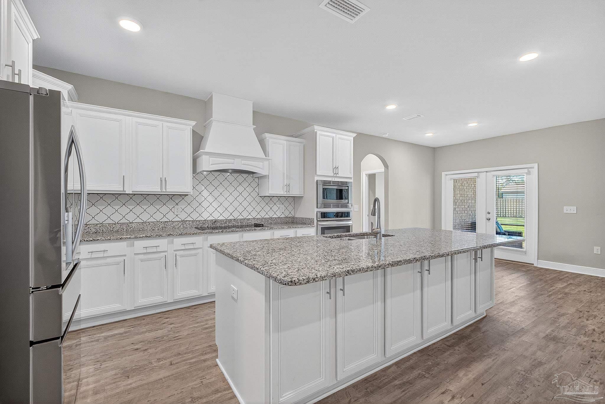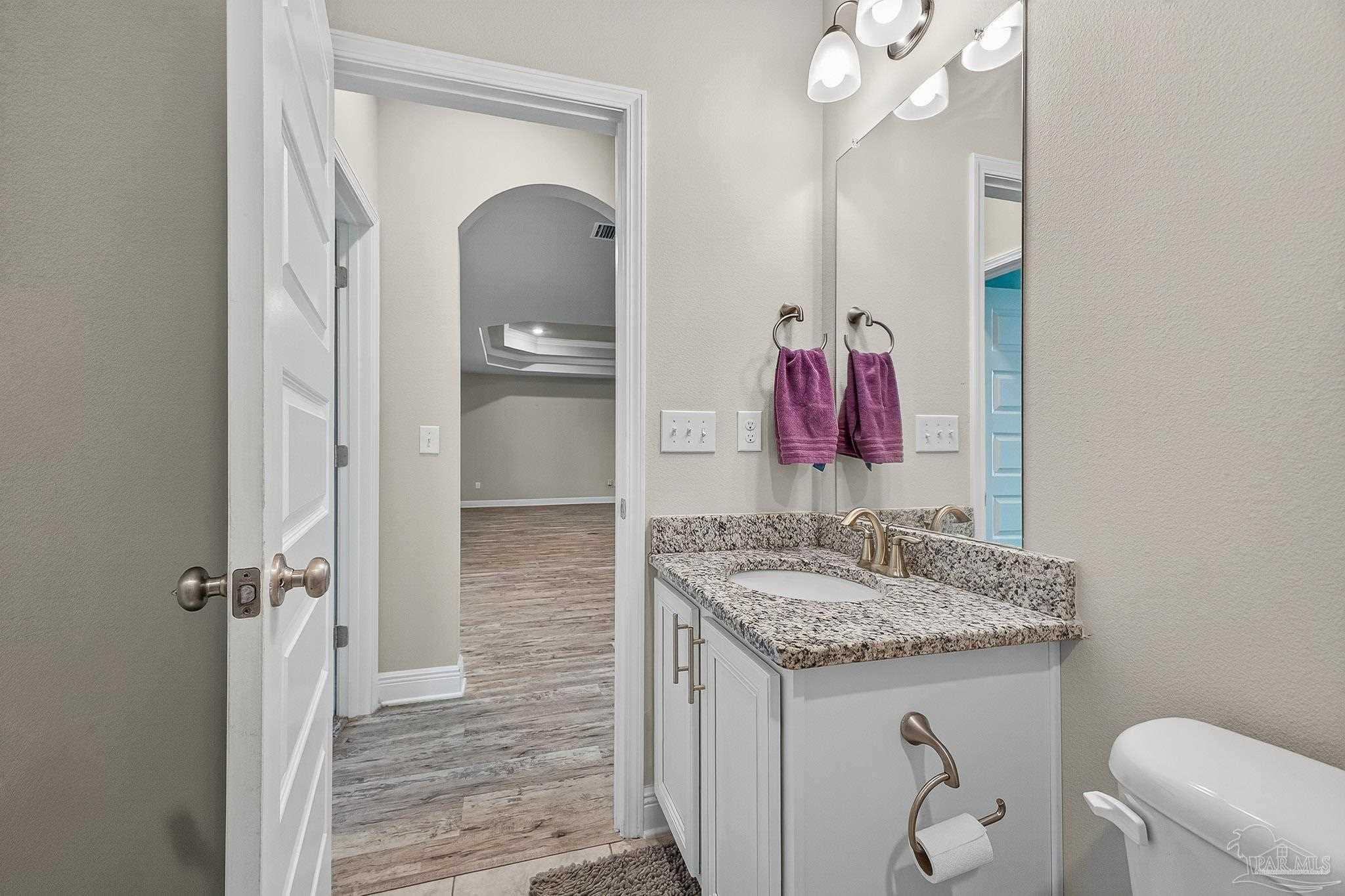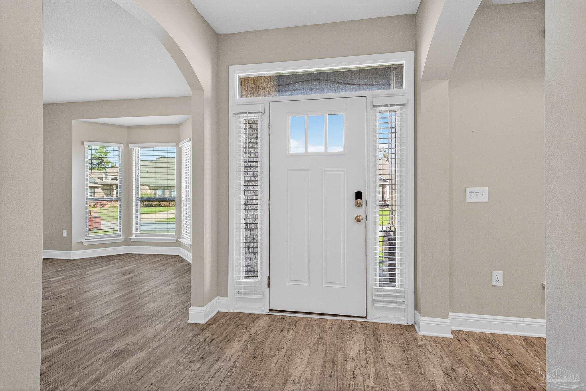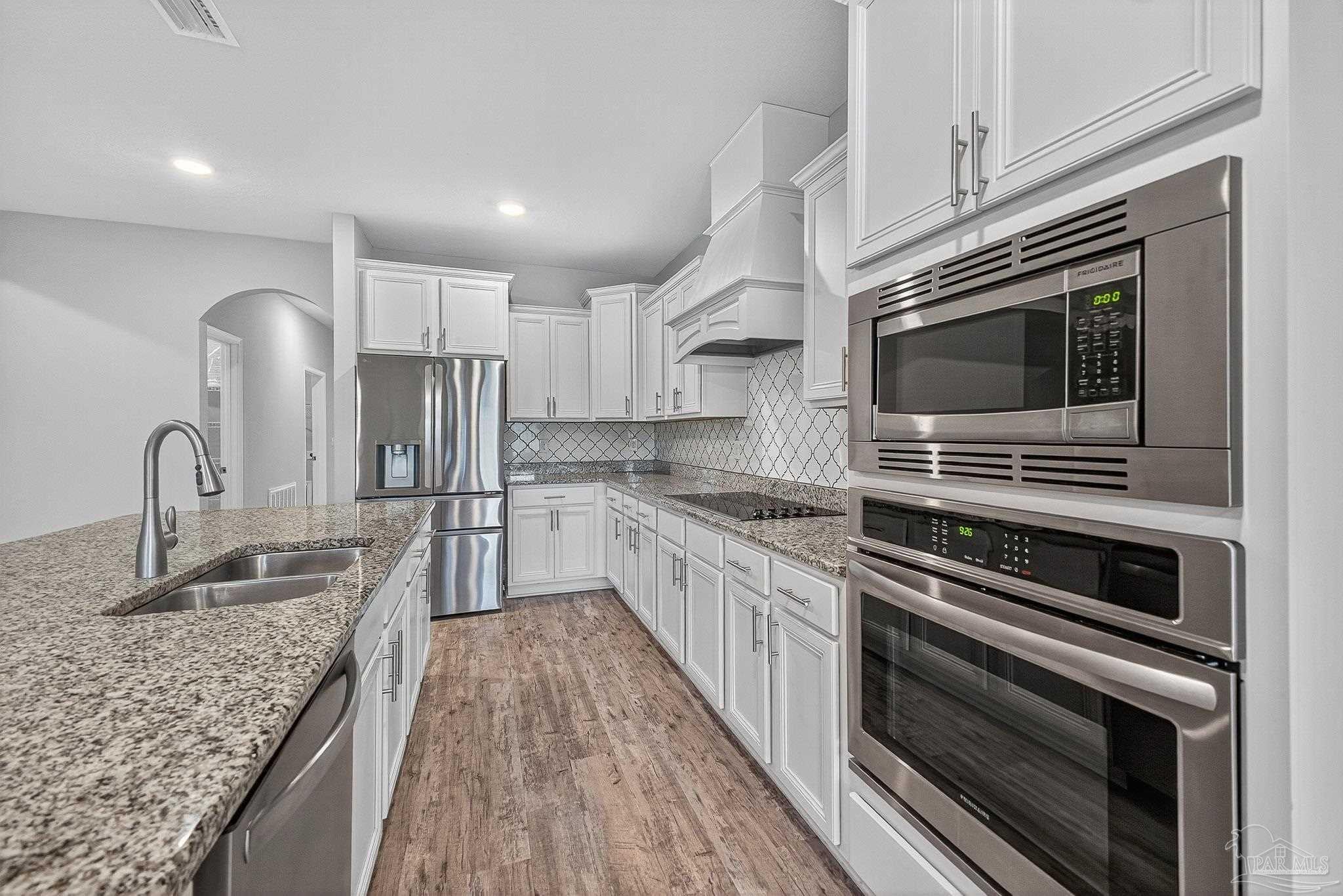 Welcome to the highly desired neighborhood of Ashley Plantation! This stunning 5-bedroom, 3-bath home offers over 3,400 square feet of thoughtfully designed living space that perfectly blends comfort, style, and functionality. A bright formal dining room welcomes natural light, while a versatile flex room at the front of the home provides an ideal space for an office or playroom. The heart of the home is the beautifully appointed kitchen, featuring pristine white cabinetry, a custom range hood, and ample counter space for all your culinary needs. The spacious primary suite is a true retreat with a double vanity, soaking tub, walk-in shower, and large closet. The split floor plan ensures privacy, with two bedrooms and a full bath at the front, the primary suite off the main living area, and two additional bedrooms with another full bath near the eat-in dining space. Upstairs, a generous bonus room offers endless possibilities for a media room, game area, or hobby space. With abundant storage and a three-car garage, you’ll have plenty of room for all your needs. The screened-in porch provides a relaxing outdoor retreat, and the oversized backyard offers ample space for a future pool or outdoor oasis. Don’t miss the opportunity to make this exceptional Ashley Plantation home yours!