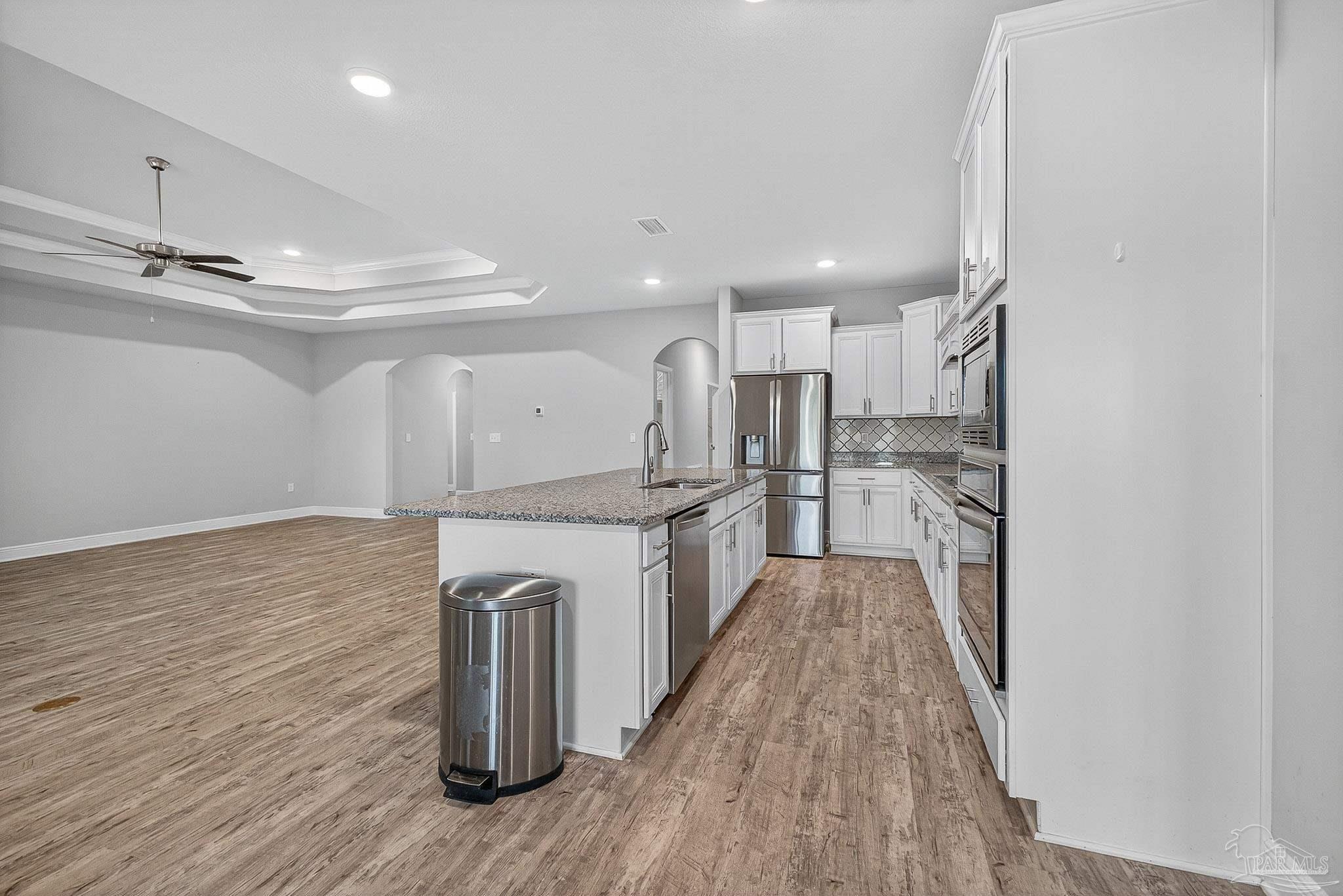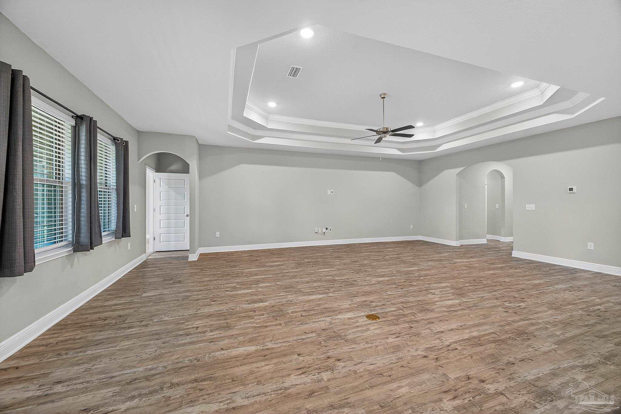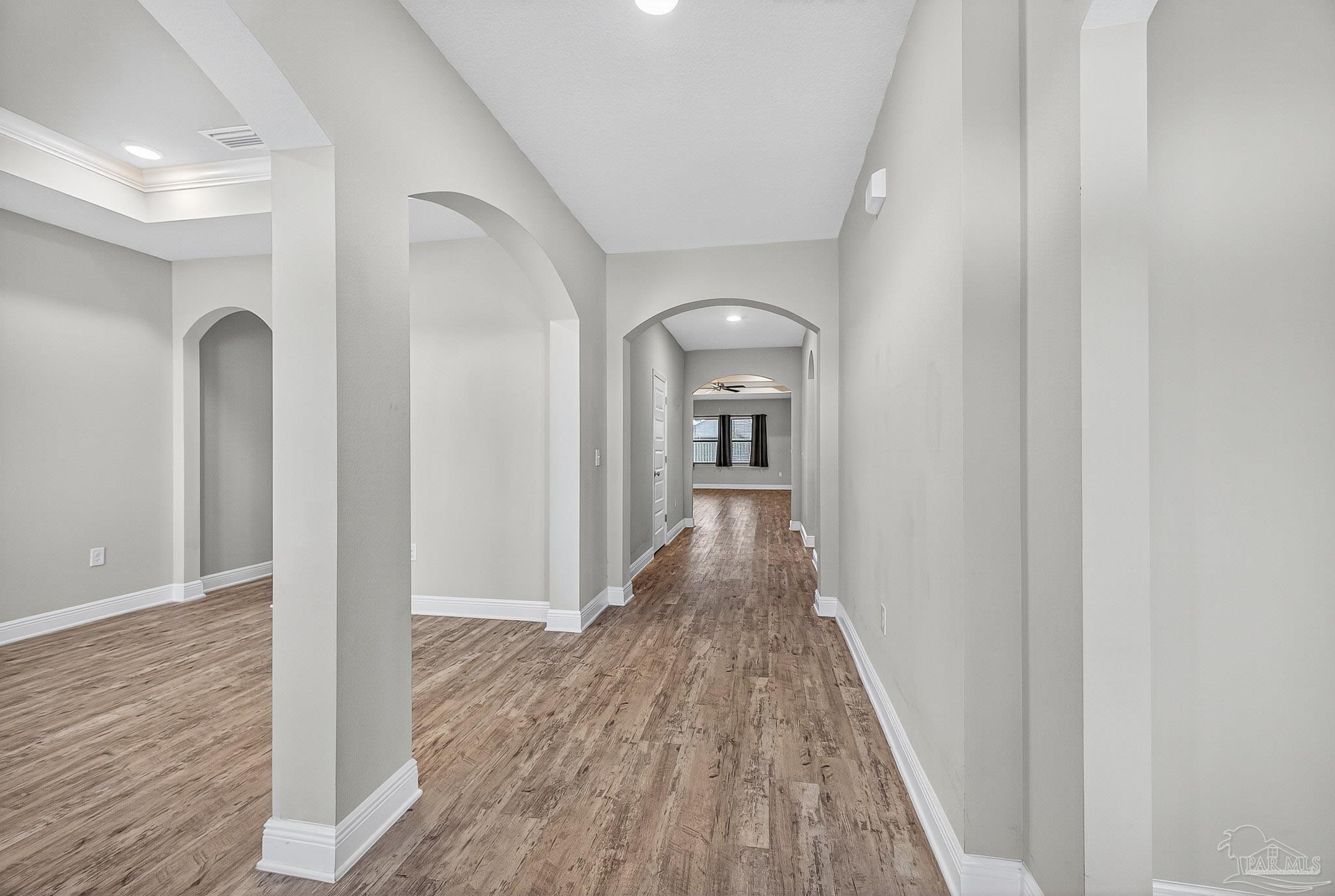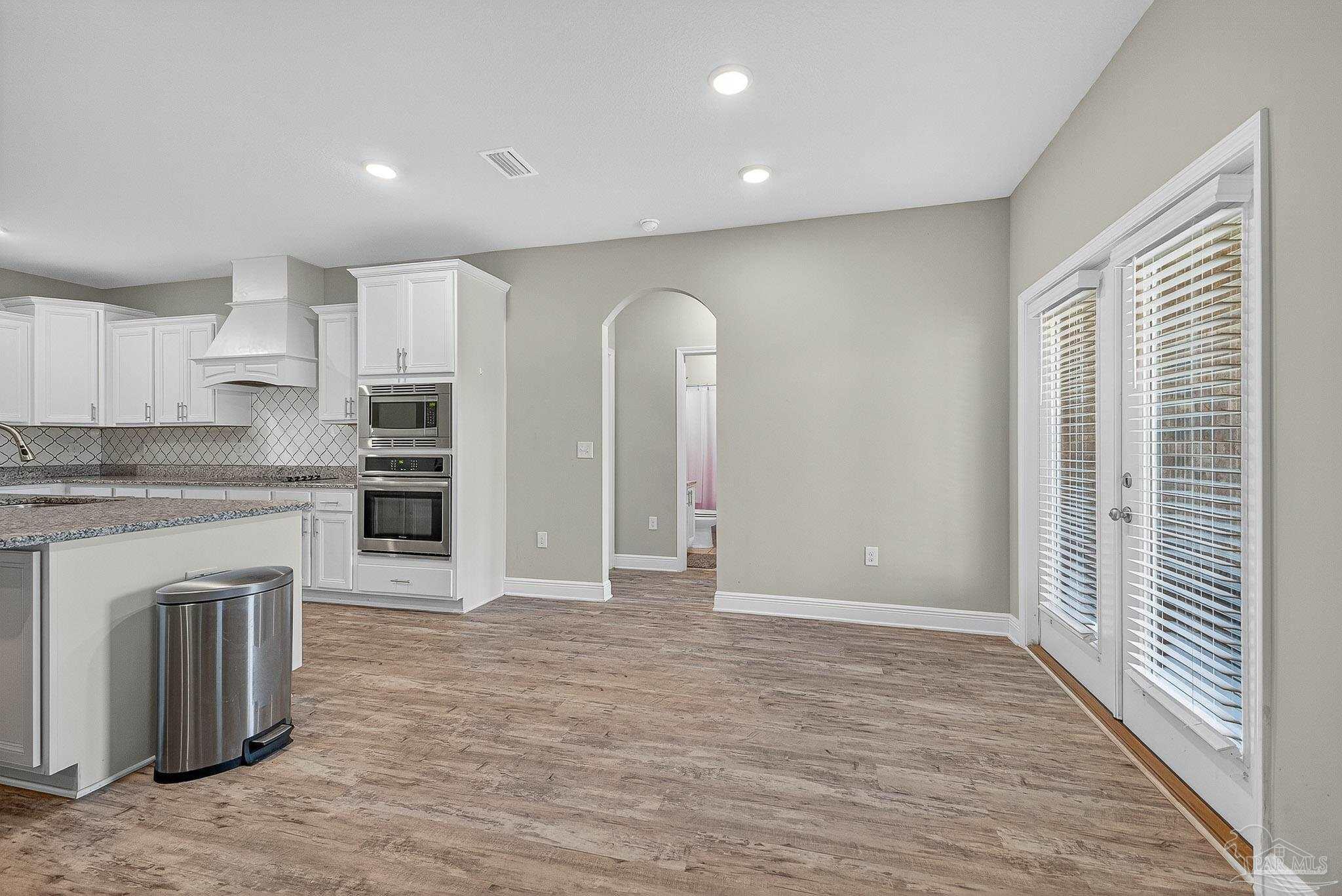 Welcome to the highly desired neighborhood of Ashley Plantation! This stunning 5-bedroom, 3-bath home offers over 3,400 square feet of thoughtfully designed living space that perfectly blends comfort, style, and functionality. A bright formal dining room welcomes natural light, while a versatile flex room at the front of the home provides an ideal space for an office or playroom. The heart of the home is the beautifully appointed kitchen, featuring pristine white cabinetry, a custom range hood, and ample counter space for all your culinary needs. The spacious primary suite is a true retreat with a double vanity, soaking tub, walk-in shower, and large closet. The split floor plan ensures privacy, with two bedrooms and a full bath at the front, the primary suite off the main living area, and two additional bedrooms with another full bath near the eat-in dining space. Upstairs, a generous bonus room offers endless possibilities for a media room, game area, or hobby space. With abundant storage and a three-car garage, you’ll have plenty of room for all your needs. The screened-in porch provides a relaxing outdoor retreat, and the oversized backyard offers ample space for a future pool or outdoor oasis. Don’t miss the opportunity to make this exceptional Ashley Plantation home yours!