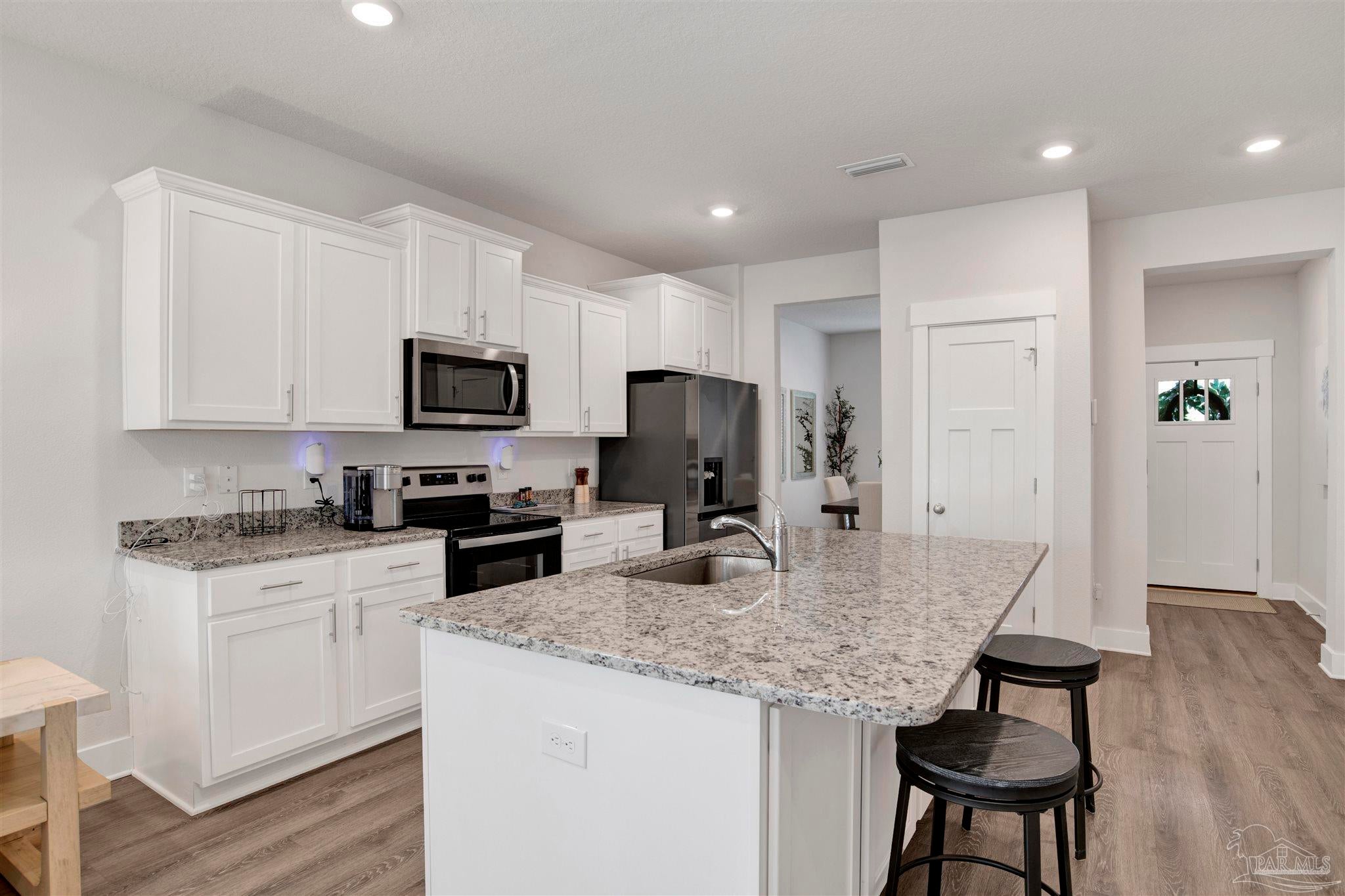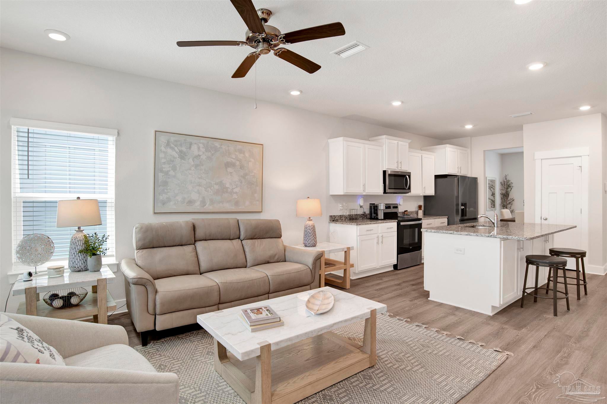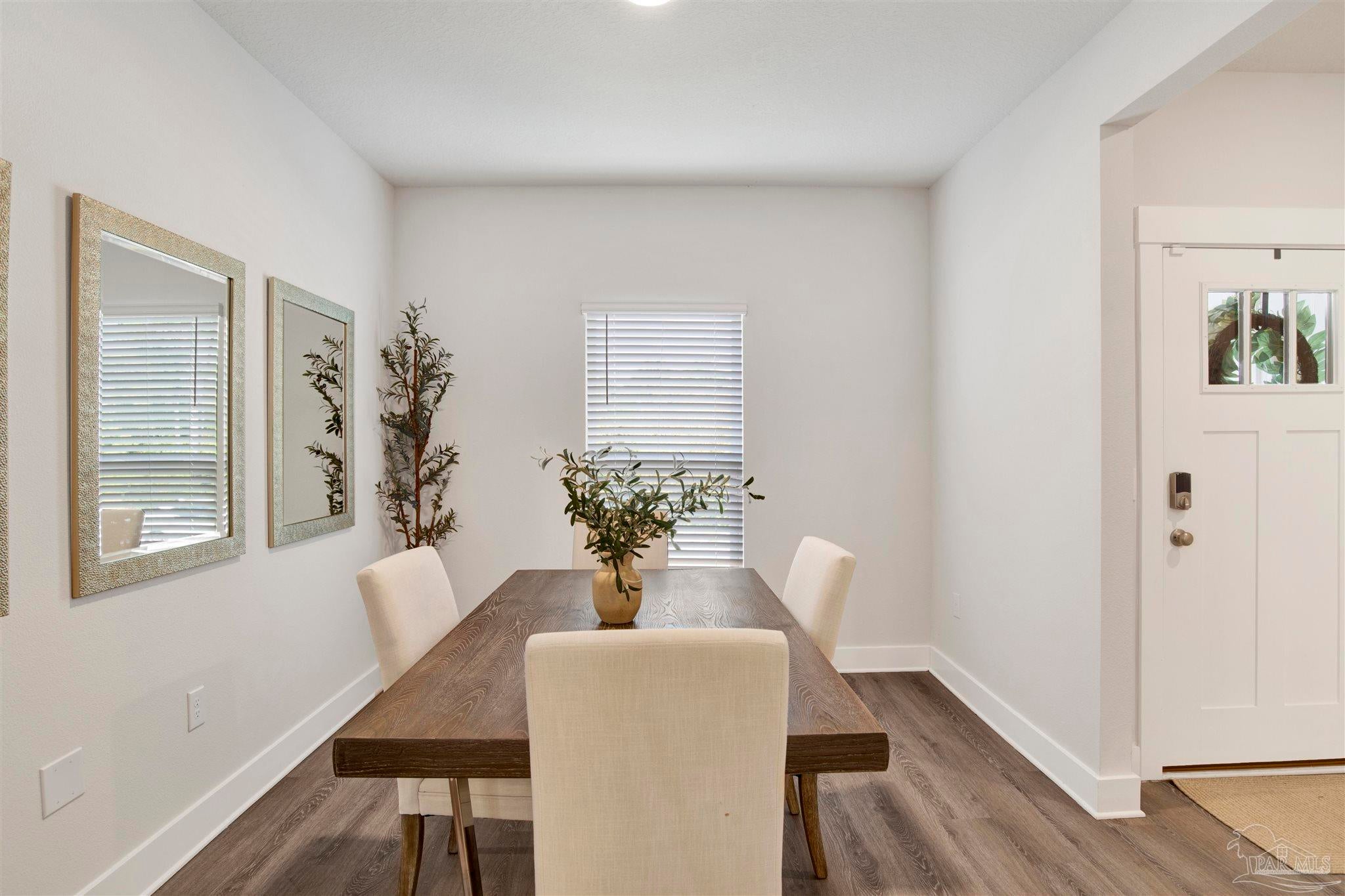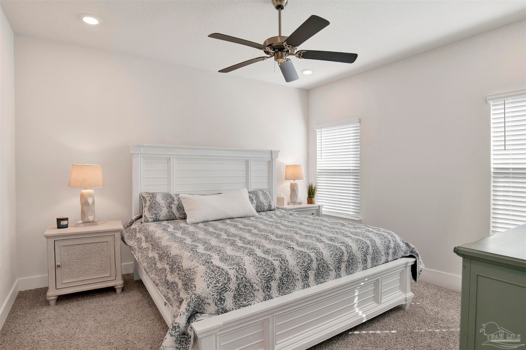 SERENITY AWAITS! FULLY FURNISHED LUXURY HOME ON A PREMIUM NATURE VIEW LOT IN PERDIDO KEY! This stunning, 4 bedroom, 3.5 bath residence offers over 2,200 sq ft of sophisticated living, complete with coastal modern furnishings for a true turn-key experience. Situated on a Premium Nature View Lot, privacy is paramount. Step onto your covered back patio directly off the living room to witness tranquil nature preserves and magnificent sunsets, often featuring local wildlife and osprey. Designed for comfort and flexibility, this residence features TWO Primary Suites (one on the first floor for convenience). The main floor has an open concept design with gourmet kitchen featuring an island breakfast bar, granite countertops, and premium appliances - all flowing seamlessly into an elegant dining room and living area. The upper level includes a second common living area which can be used for a game room, den, or media room, ensuring ample space for everyone. Located a short distance to a kayak launch, dog park, and public beach access, this home is ideal as a second home, investment property, or primary residence. This prime location is also convenient to Lost Key Golf Club, NAS Pensacola, and Downtown Pensacola. Don’t miss this opportunity – schedule your private tour today!
