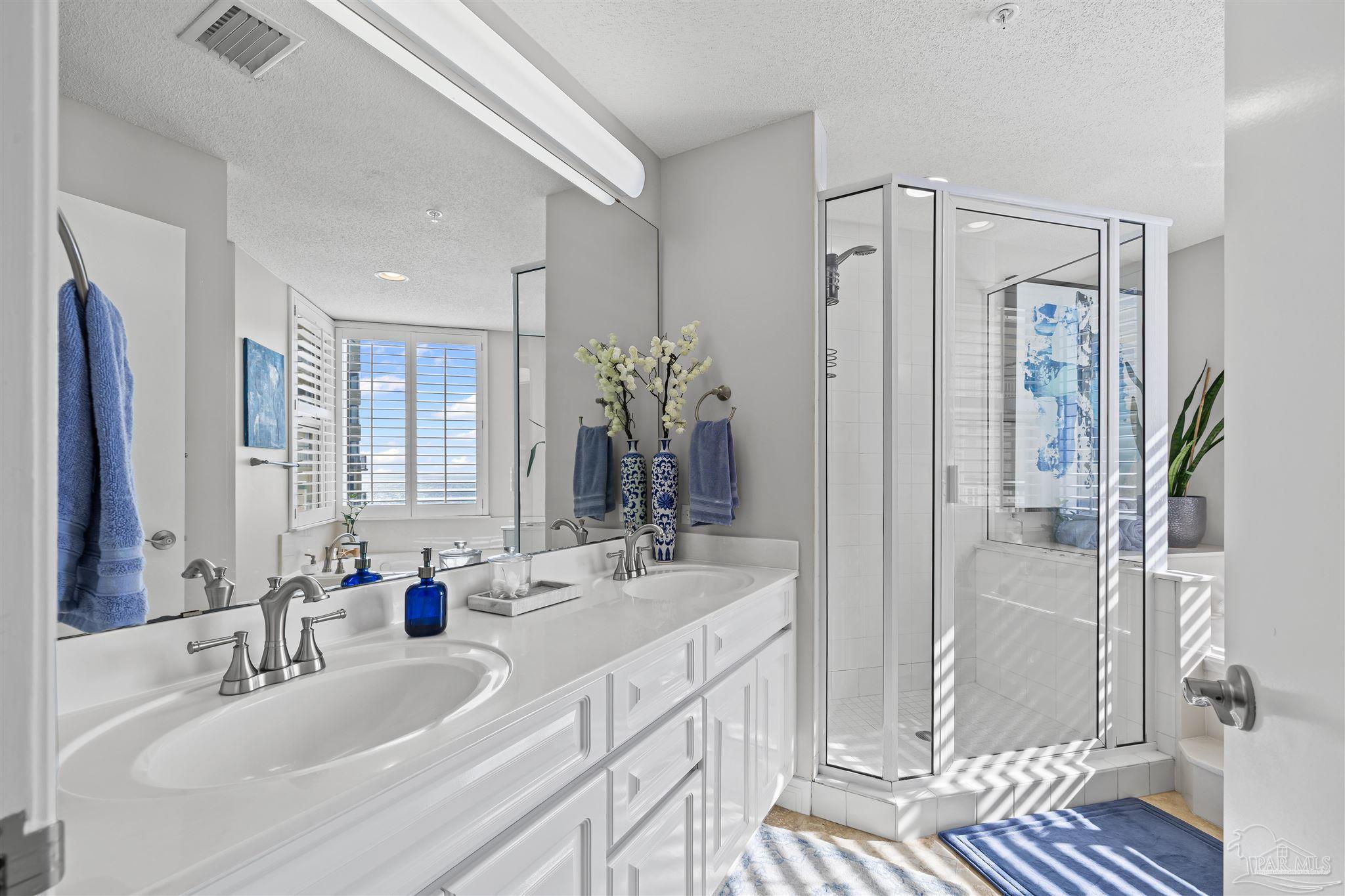 Experience coastal living at its finest in this stunning 3-bedroom, 3-bathroom penthouse perched on the 16th floor of Beach Colony East. With panoramic Gulf views and over 1,900 square feet of elegantly appointed space, this residence offers the perfect blend of luxury and tranquility. Step into a light-filled open-concept living area with floor-to-ceiling glass doors that lead to an expansive beachfront balcony—ideal for morning coffee or sunset cocktails. The gourmet kitchen features quartzite countertops, stainless steel appliances, and a breakfast bar that flows seamlessly into the dining and living spaces. Each bedroom is a private retreat, with the Gulf front primary suite boasting direct balcony access, a spa-like ensuite bath with a jetted tub, separate shower, and dual vanities. The two guest bedrooms are generously sized, each with its own full bath, perfect for hosting family and friends. Beach Colony offers resort-style amenities including gated entry, indoor and outdoor pools, fitness center, tennis and pickle ball courts, and direct beach access. Located minutes from dining, shopping, and the natural beauty of the Gulf Islands National Seashore, this penthouse is your gateway to the ultimate Perdido Key lifestyle. Don’t miss this rare opportunity to own one of the largest penthouse units at Beach Colony with unmatched views and amenities.