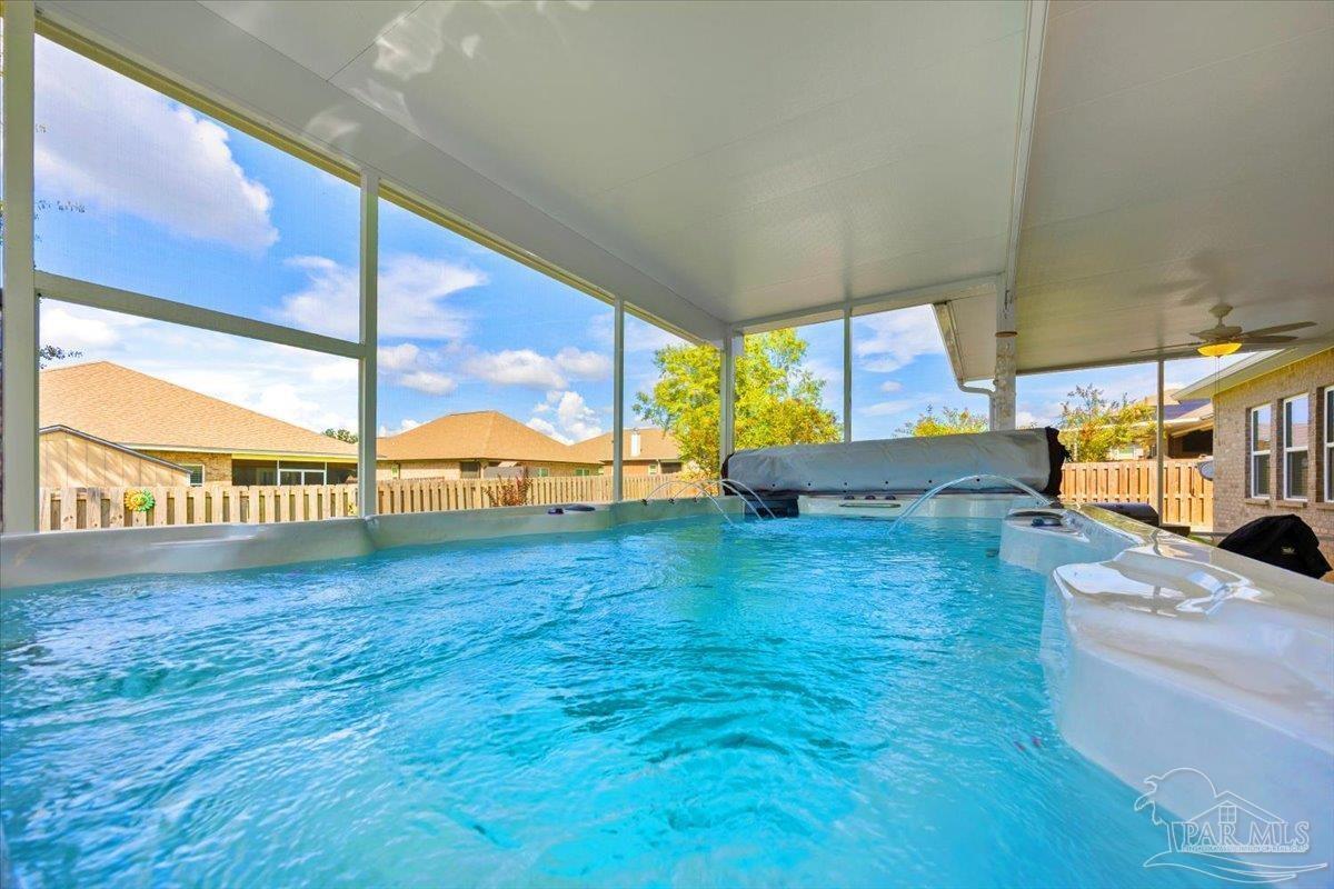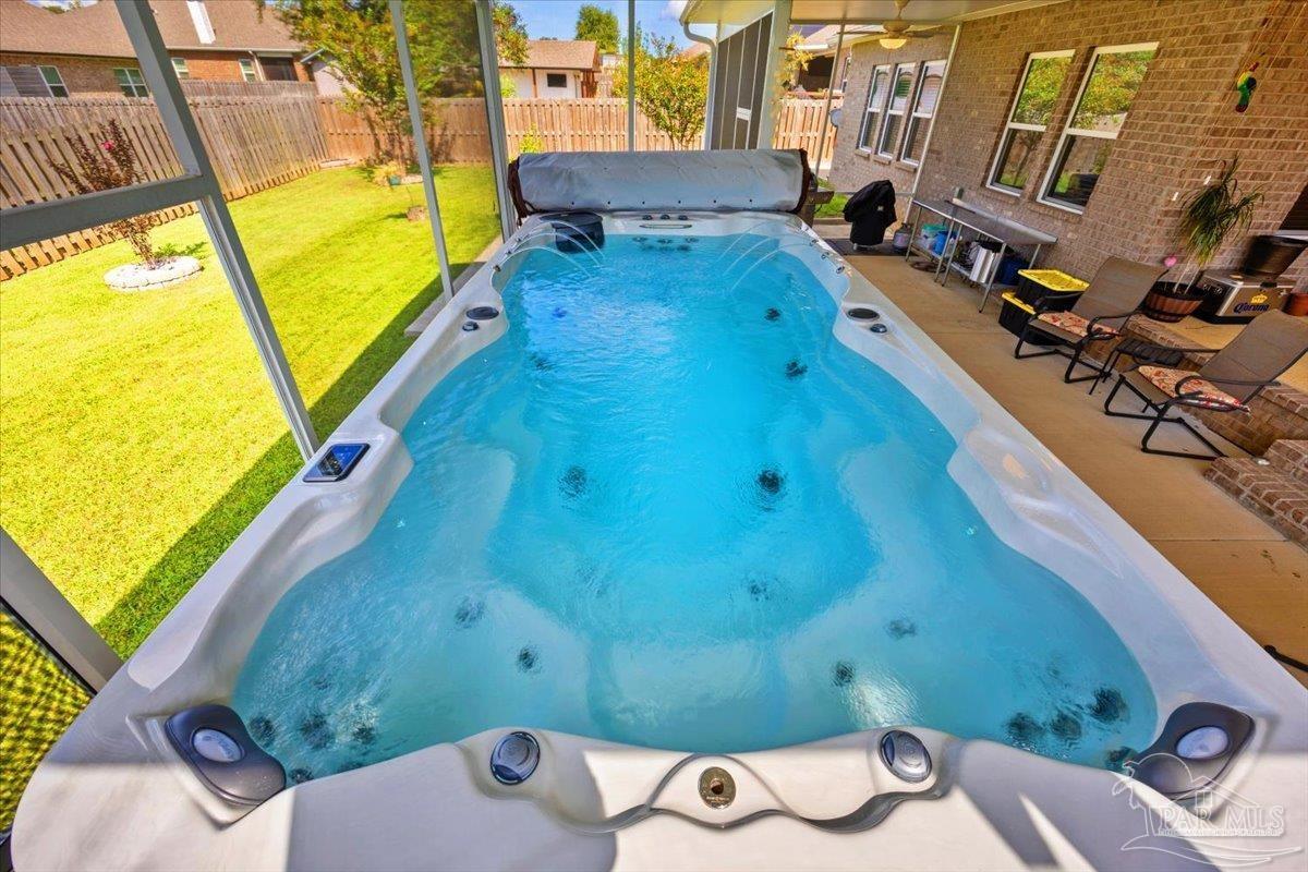 0ver 2,800 sq/ft 4 bedroom 3.5 bath home including a versatile Mother-In-Law Suite/gaming room/ teenage quarters...endless possibilities! This impeccably maintained and upgraded open concept home with abundant light is perfectly appointed with separate bedrooms from the primary for ultimate privacy. The spacious layout is ideal for entertaining while the modern kitchen is a chef's delight, featuring under mount lighting, with an expansive island and double sided cabinets offering unlimited storage. The generously sized Florida room boasts a 2,000 gallon endless lighted swim spa, a built-in cabinet for storage and a television for the ultimate alfresco entertaining experience. Just outside the Florida room is an additional patio and a sundeck. The home features a 3 car garage with additional driveway space that extends to the back of the house for RV/boat storage. Solar panels have been paid and the monthly utilities average $38...amazing annual savings! The home has CAT 5 wiring, has been blown with extra insulation and the garage has a separate AC unit for additional year round comfort. Located in a serene setting, this remarkable home offers the perfect blend of tranquility, convenience, and sustainability, with schools, shops, parks, and a boat ramp nearby.