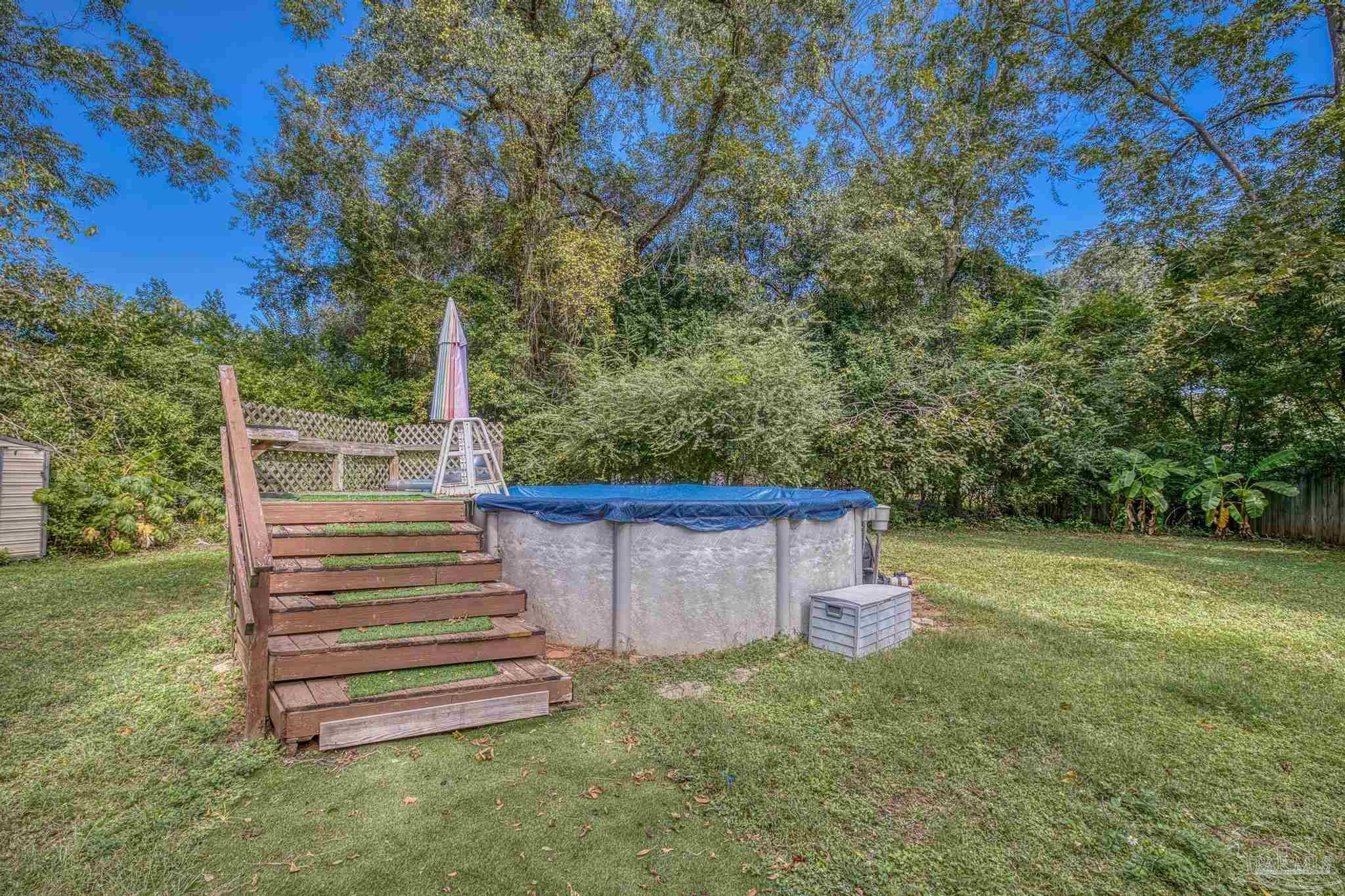 Home is located on a large fenced corner Lot! Cozy Front Porch and Single-Car Carport. Inside you will find a Complete 3 bedrooms, 2 full baths, living room/dining, nice updated kitchen & baths, appliances convey, nice laundry room extra storage, additional carport, storage building and above ground pool. Breakers, wiring and plumbing have closed permits.