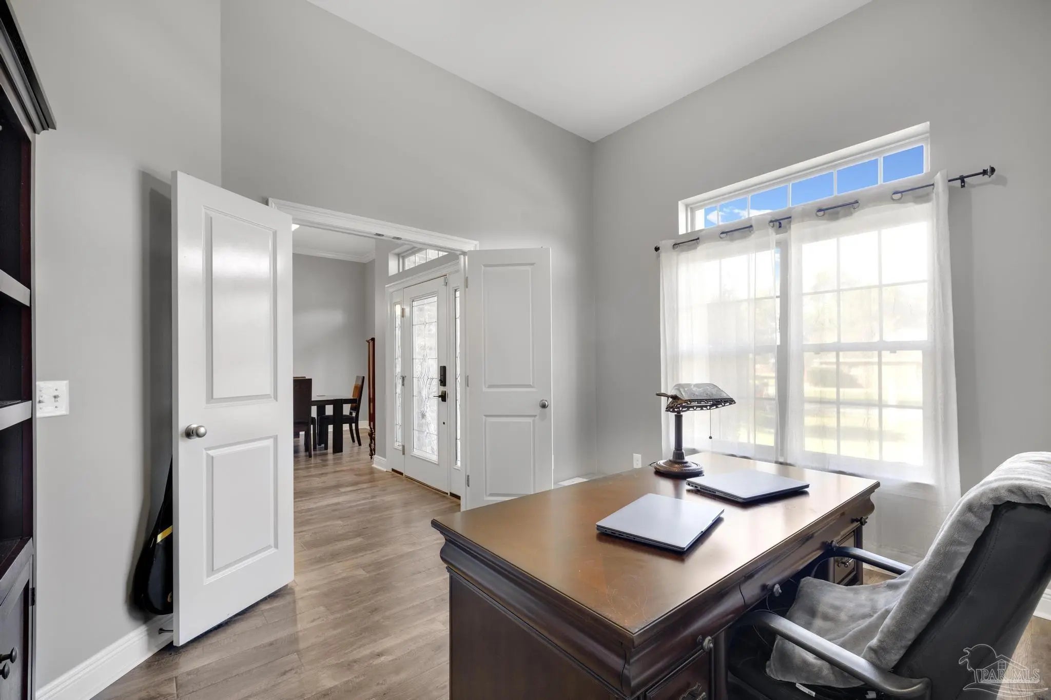 - Baseboards, Ceiling Fan(s), High Ceilings, Recessed Lighting, Vaulted Ceiling(s), Office/Study