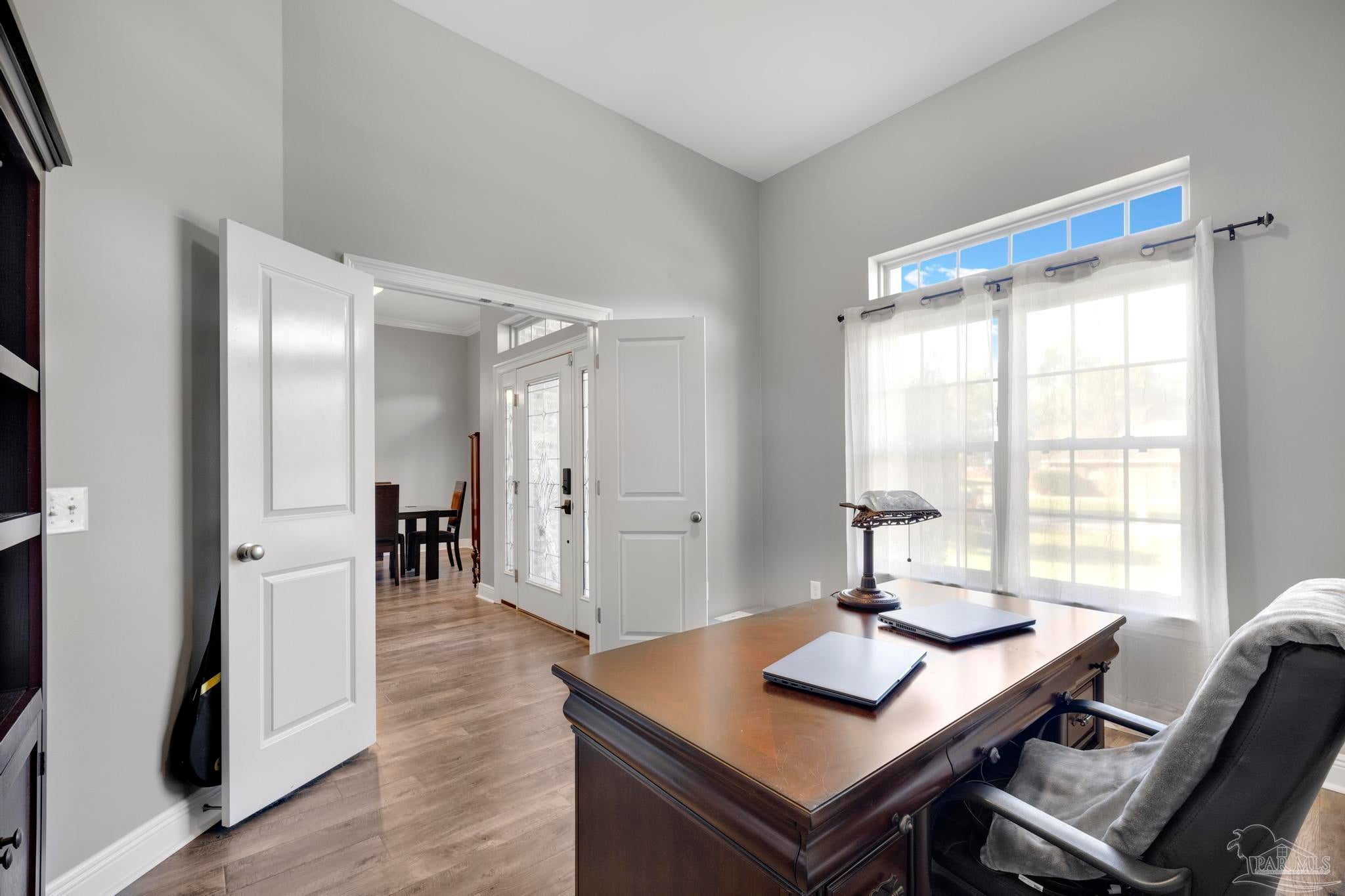 - Baseboards, Ceiling Fan(s), High Ceilings, Recessed Lighting, Vaulted Ceiling(s), Office/Study