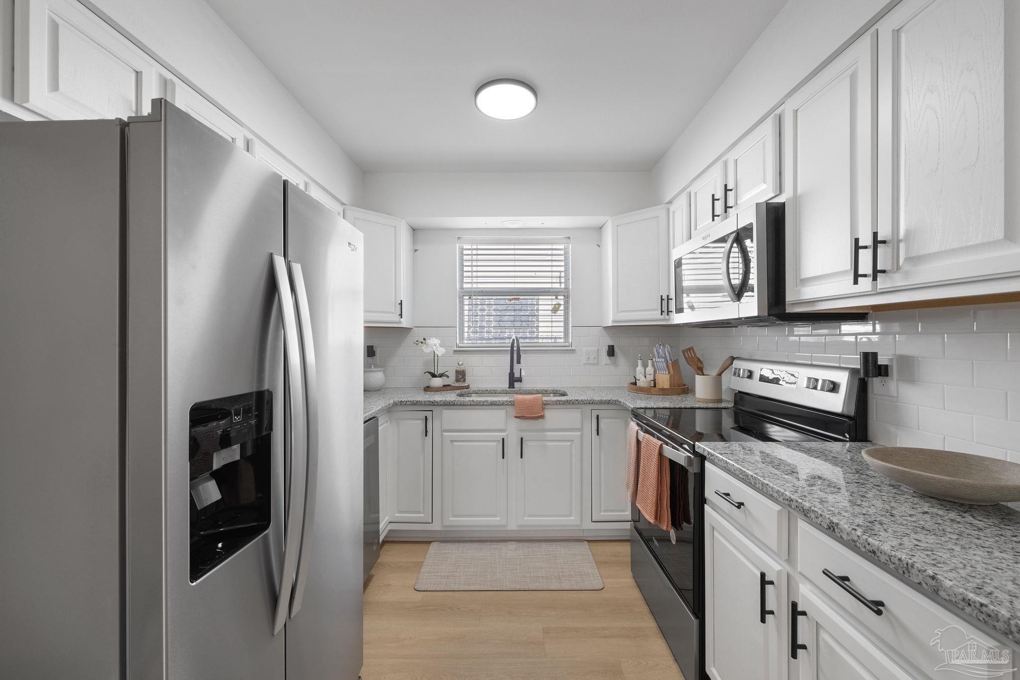 Turnkey Investment or Effortless First Home! This freshly remodeled 2BD/2BA cottage is a proven Airbnb performer — already generating steady income and 5-star reviews. Fully updated and designed for low-maintenance living (no HOA!), it’s ideal for investors or first-time buyers wanting a move-in-ready home just minutes from downtown Pensacola. Step inside to an airy, open-concept layout with luxury vinyl plank floors and a sleek chef’s kitchen featuring quartz counters, stainless steel appliances, and modern fixtures. Both bedrooms feel like private retreats, paired with spa-style baths for a touch of everyday luxury. Out back, enjoy a private fenced yard with a storage shed and convenient rear-gate access — perfect for guests, pets, or extra storage. Bonus: first-time buyers can move in immediately after closing — no waiting, no projects, just unpack and enjoy. Ask to see the Airbnb financials — this one’s already making money! Schedule your tour today.