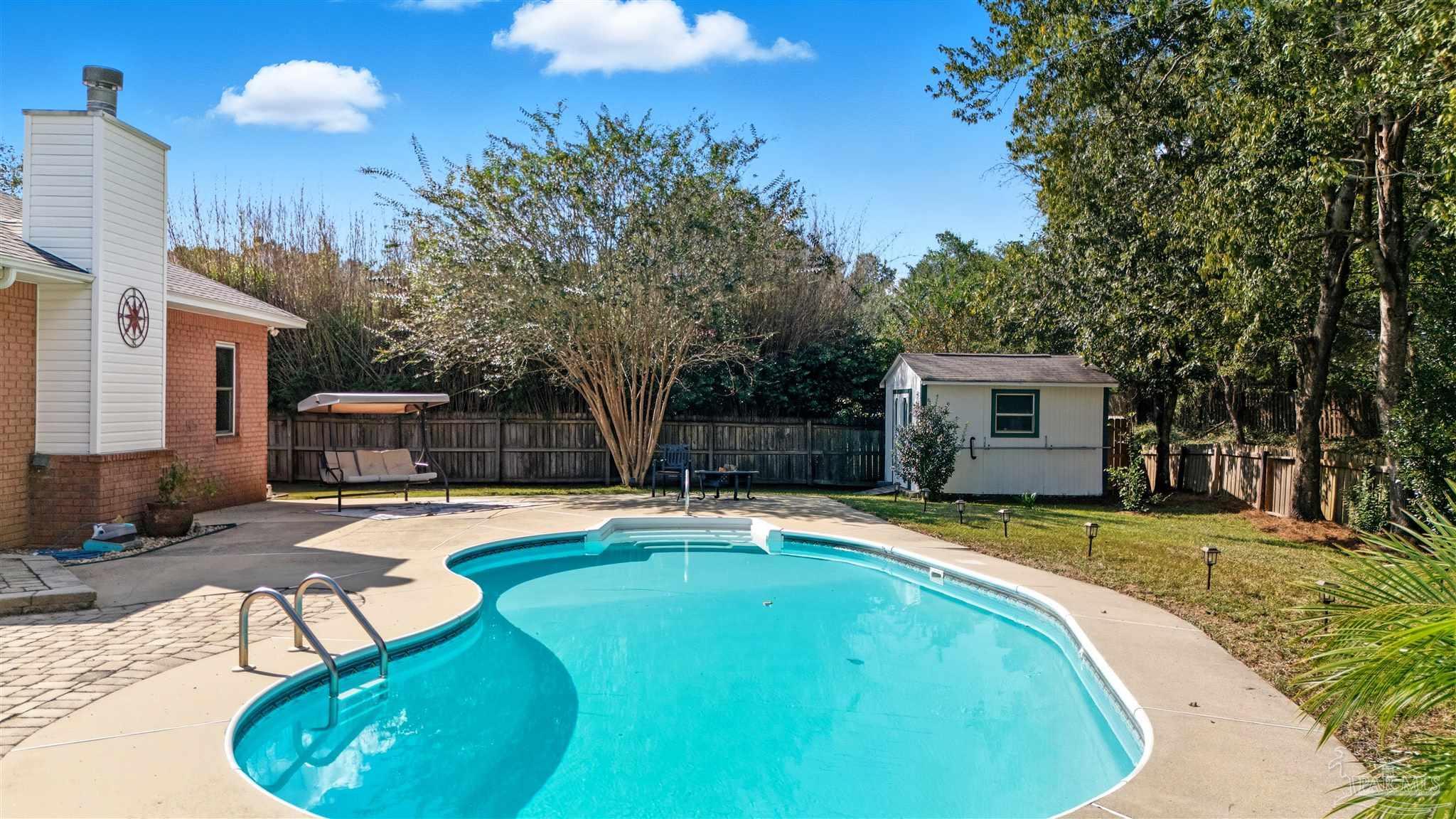 New Price ~ Located in the desirable Woodbine Springs community ~ home to a beautiful 52-acre lake perfect for fishing, kayaking, and peaceful views ~ this stunning home blends comfort, function, and style. You will have peace of mind with a NEWER ROOF (2020) & a 5 Ton HVAC inside & out (2025)! Step inside to a spacious living and dining area featuring real hardwood floors, a vaulted ceiling, and NEW updated light fixtures. Through an elegant archway is a large family room with a wood-burning fireplace. The kitchen offers a large breakfast bar, NEW Stainless Steel LG fridge (2025), tile flooring, and a deep single-bowl sink. The laundry room includes upper cabinets, hanging space, and a utility sink. The primary suite features sliding doors to the Florida room, while the primary bath includes dual sinks, updated lighting, a separate shower, a large soaking tub, and a walk-in closet. The Florida room is surrounded by large windows overlooking the pool and patio, with two NEW ceiling fans w/ remotes ~ a perfect spot to relax. On the opposite side of the home there are 2 additional bedrooms and a full bath. Enjoy your private backyard oasis with a 6’ privacy fence on 2 sides, 4’ fence along the back, 15 x 31 kidney-shaped pool, paver, and concrete patio areas & large shed/workshop. The front yard is beautifully landscaped with colorful flower beds, paver edging, a circular driveway, and two mature shade trees. This home truly offers style, comfort, and a welcoming lifestyle in one of the area’s most sought-after neighborhoods. Enjoy new lighting and fans throughout, fresh paint in select rooms, NEW updated landscaping, portable generator hookup, hurricane-proof front windows (2021), water heater (2021), pool liner (2020), plus gutters and security lighting. Sonya Street is located at the rear of the neighborhood, situated on a quiet cul-de-sac away from major roads. The circular driveway is another highlight. Schedule a private showing today.