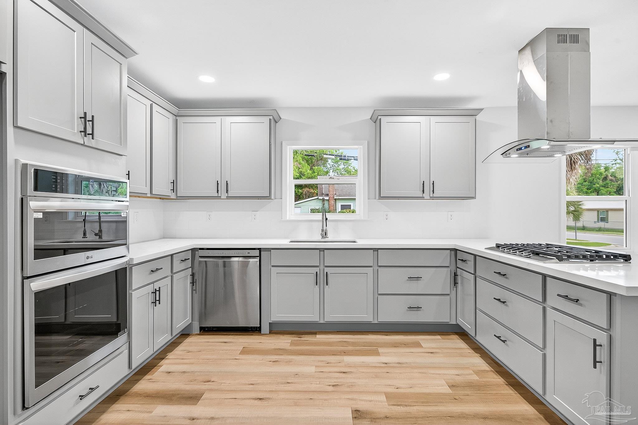 - Electric Water Heater, Built In Microwave, Dishwasher, Double Oven, Down Draft