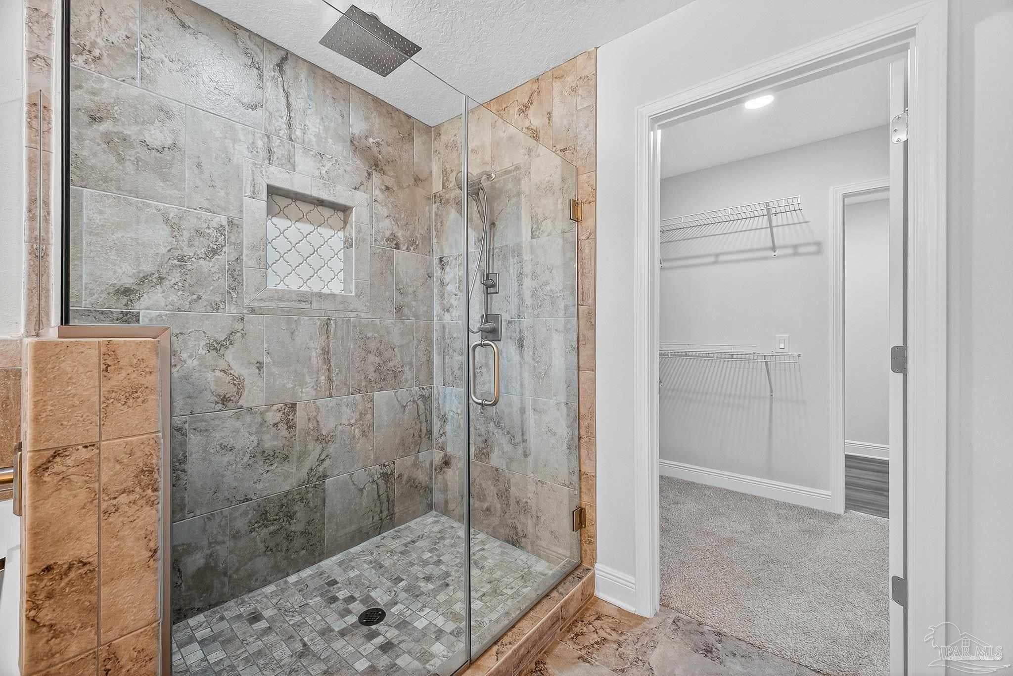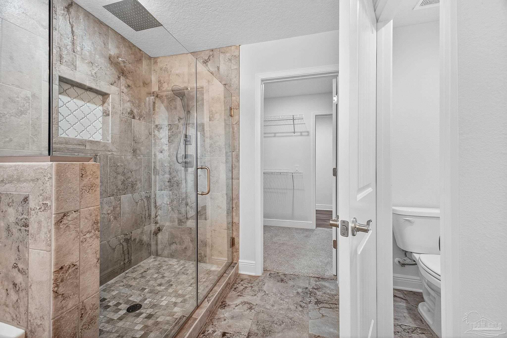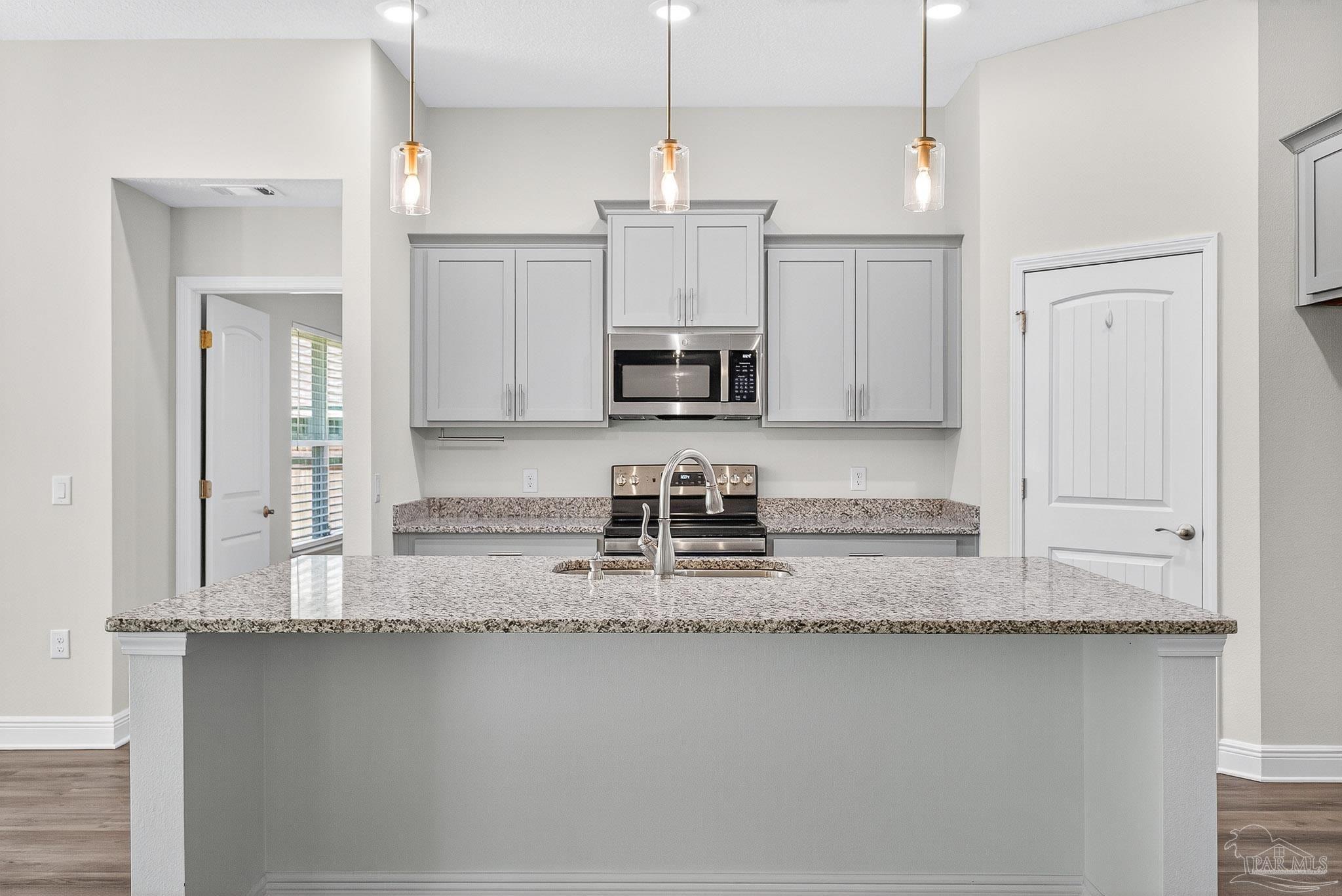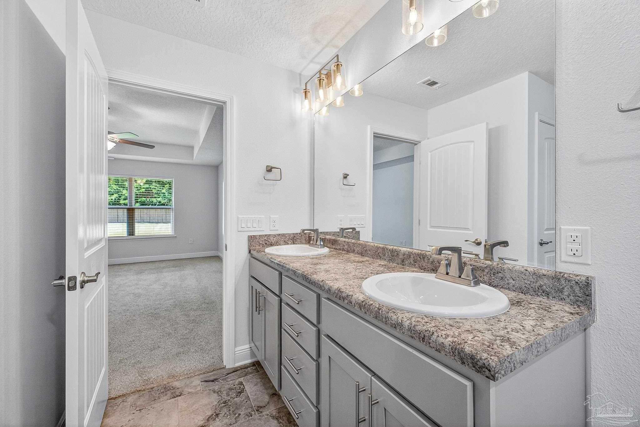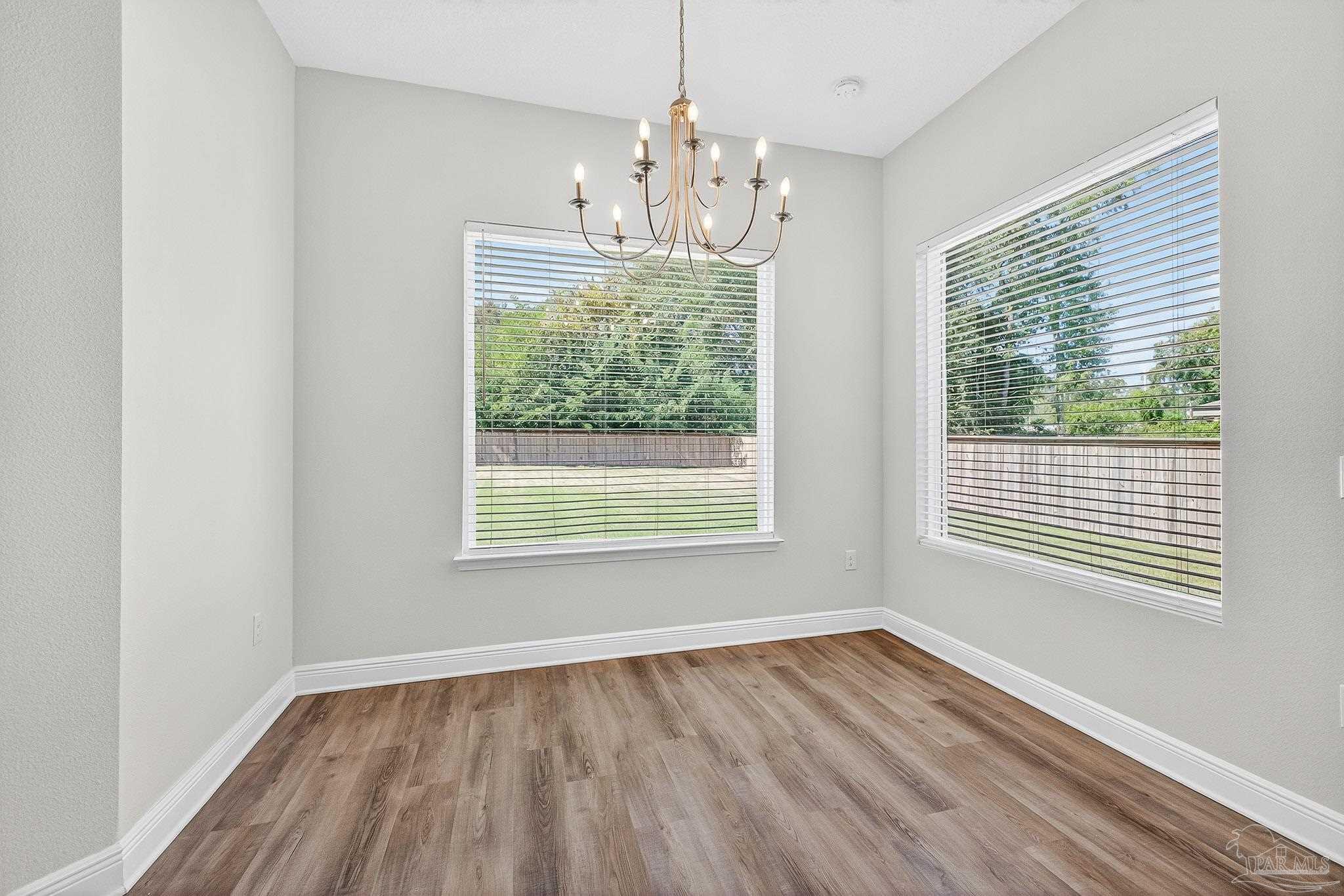 Welcome home! Step inside to discover an inviting open-concept living area featuring a stunning trey ceiling that flows effortlessly into the kitchen and cozy breakfast nook, beautifully lit by two large picture windows. The kitchen boasts elegant granite countertops, shaker-style soft-close cabinetry, a spacious walk-in pantry, and premium stainless steel appliances. Unwind on the covered wrap-around porch—perfect for relaxing or entertaining. The serene master suite offers a trey ceiling, ceiling fan, and double windows that fill the space with natural light, while the luxurious ensuite includes a double vanity, soaking garden tub, tiled walk-in shower with a rain head, and a walk-in closet connected to the laundry room for added convenience. Additional highlights include a finished two-car garage, NEST thermostat, hybrid water heater, LED lighting, irrigation system, Taexx pest control, Vivint security and doorbell system, underground backyard electrical, and hurricane fabric shield window protection—combining comfort, elegance, and peace of mind.