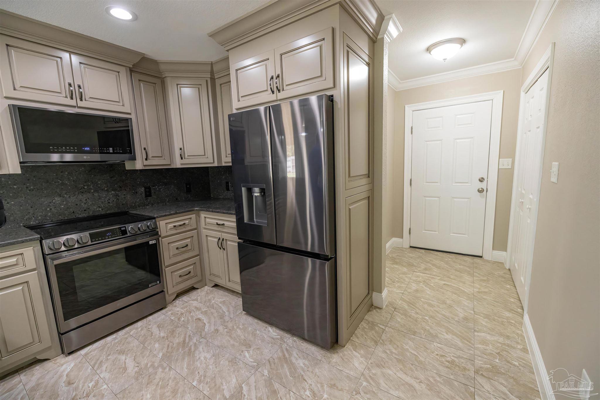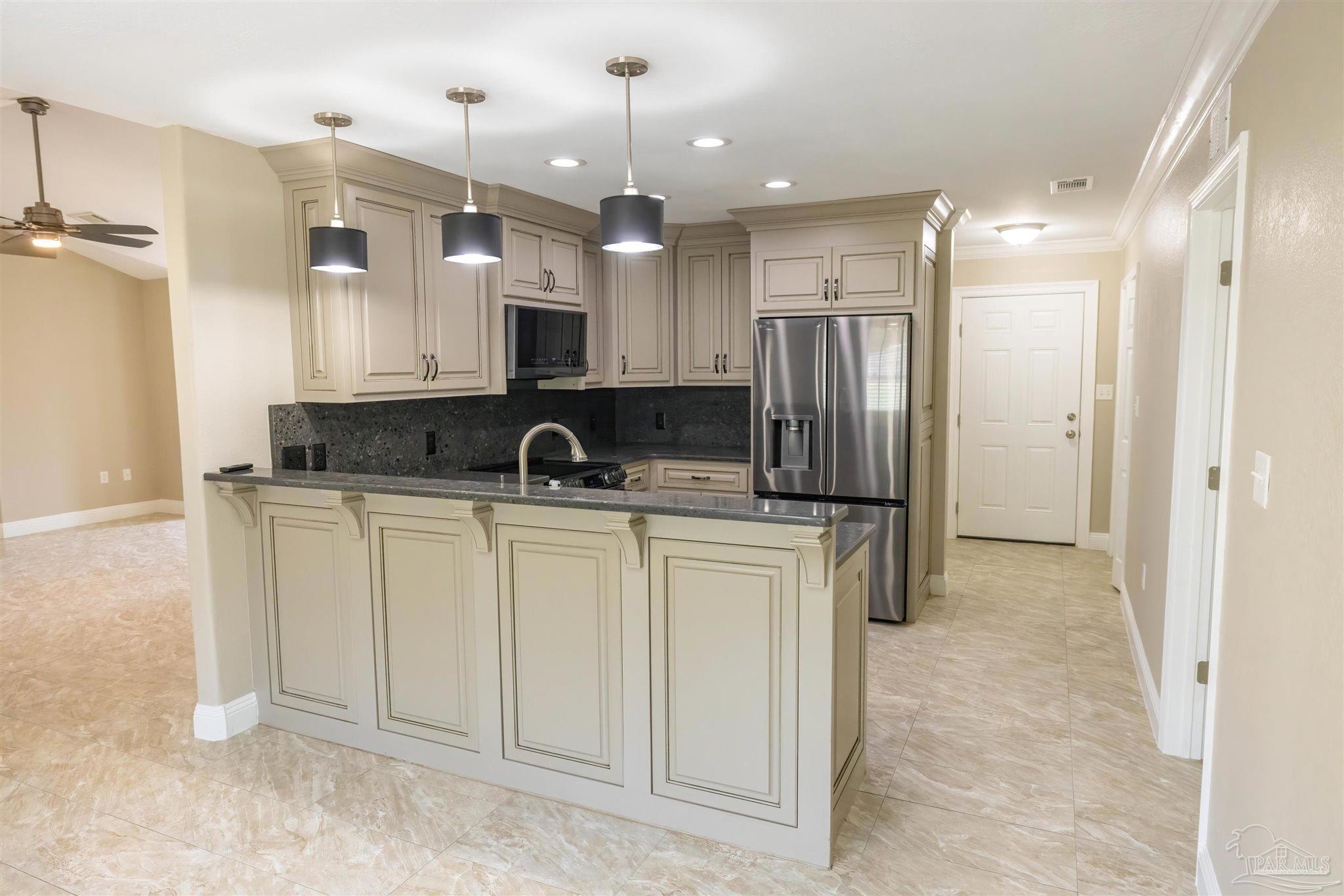 Welcome to your dream home! No detail was overlooked in this complete luxury renovation. This residence features all new impact-rated windows, doors, and garage door, offering peace of mind and energy efficiency. Step inside to discover brand-new flooring, elegant lighting fixtures, and beautifully designed bathrooms that exude sophistication and style. The kitchen boasts all-new custom cabinets and stainless-steel appliances, including a counter-depth refrigerator, and induction stove. New roof, HVAC system and tankless water heater ensure years of worry-free living. Safe, convenient neighborhood close to excellent schools, this home sits on a large lot with a privacy-fenced yard. Experience the ideal combination of luxury, comfort and practicality all in one incredible home.