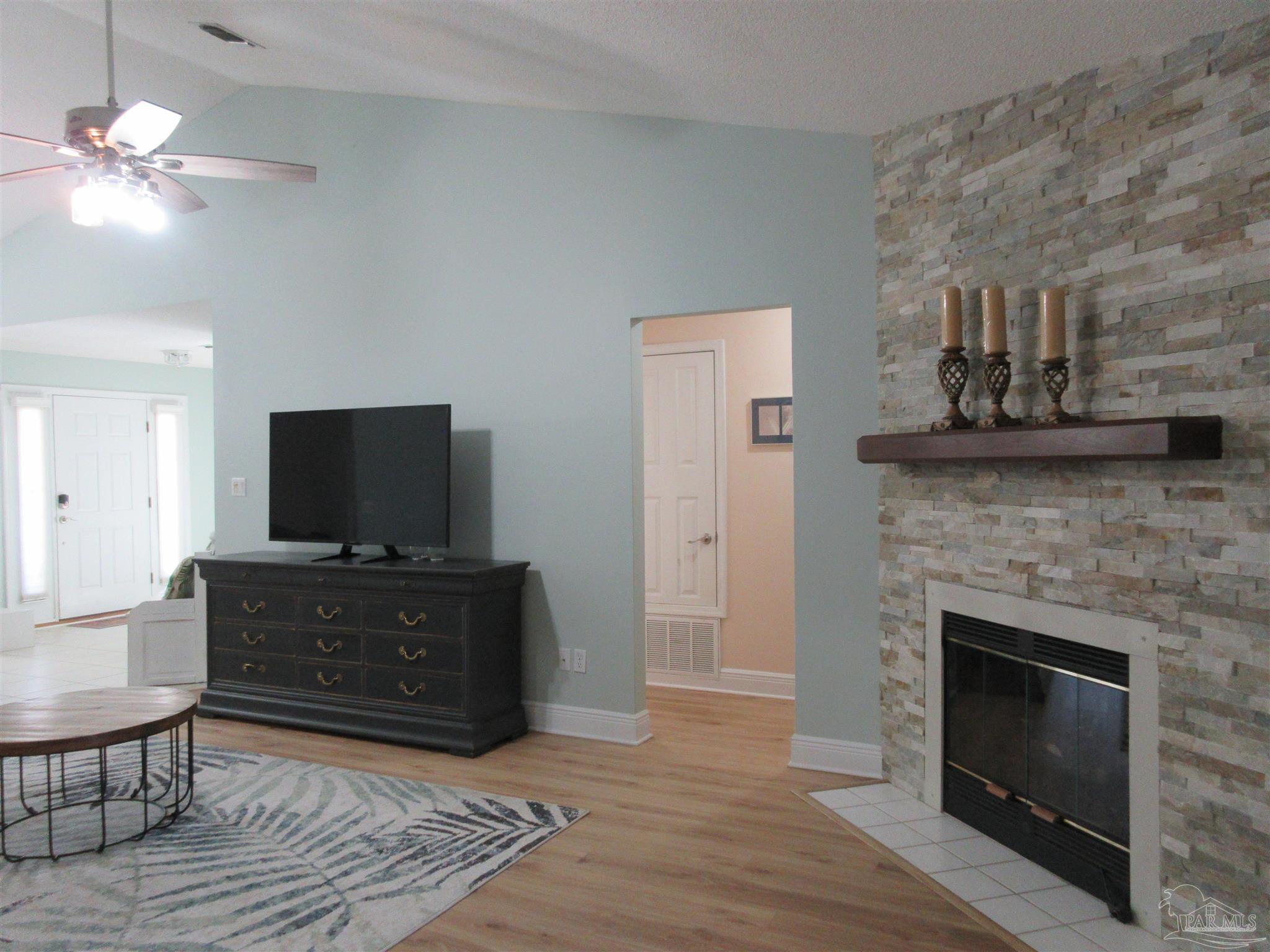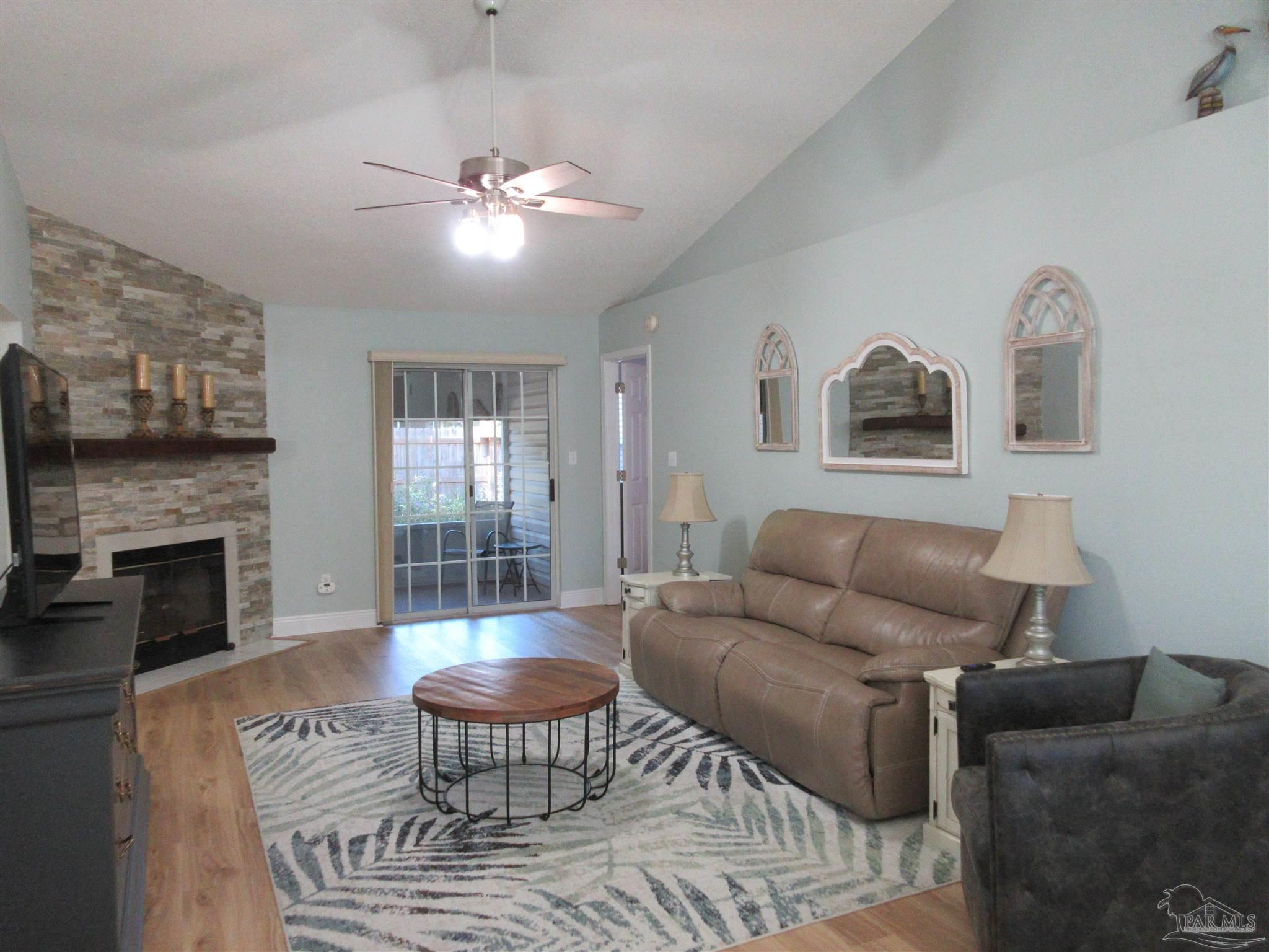 Owner is OCD to the Extreme. Everything has been improved, inspected & upgraded: Termite Bond, Lawn Care contract paid thur Aug 2026 & sprinkler system, Gutter Guards, Gas Fireplace Blower are just a few of the small improvements. Home has been Totally Remodeled with tons of Extras. Enter from the Covered Front Porch into an open floor plan with a Grand entry w/ closet & sitting area. Great Room is a favorite spot with its stack stone gas fireplace, cathedral ceilings, plant ledge & newer hardwood floors. Dining Area can accommodate large gatherings & allows you to visit with the chef from a 5' Granite Bar. Gorgeous kitchen has cathedral ceilings, 20 refinished raised panel cabinets, newer stainless steel appliances, Beautiful granite counters & under cabinet lighting. Its next to the laundry with a pantry, 6 cabinets, & area extra storage area. Main Bedroom with a sitting area is a quiet oasis. Master bath is a dream with a huge walk in closet, linen closet, newer 7' vanity & walk in shower with glass doors. + Medicine Cabinet. Other two bedrooms have spacious closets & ceiling fans. Remodeled Hall bath has newer vanity, linen closet, window & crown molding. Screen Porch with an oversized patio and lush landscaped yard makes entertaining a pleasure. All this in a quiet area with underground utilities, street lights & picnic area-park close to everything Just a few of the extras include : Roof 2020,* Hurricane Shutters, * Plantation Shutters, * Wood Cased Windows, * HVAC 2022, * 2 car garage with a 13x6 extra storage area. * Easy Care Landscaped yard with flowers and french drains to make sure there is no standing water. Propane tank to supply Gas Grill & Fireplace. New Privacy Fence Gates w/ metal frame. Added Bonus All items in the home can be purchased if desired so you have no moving cost.