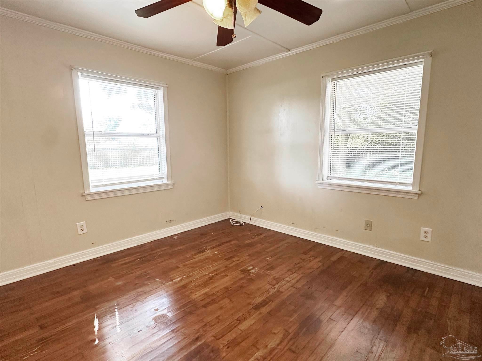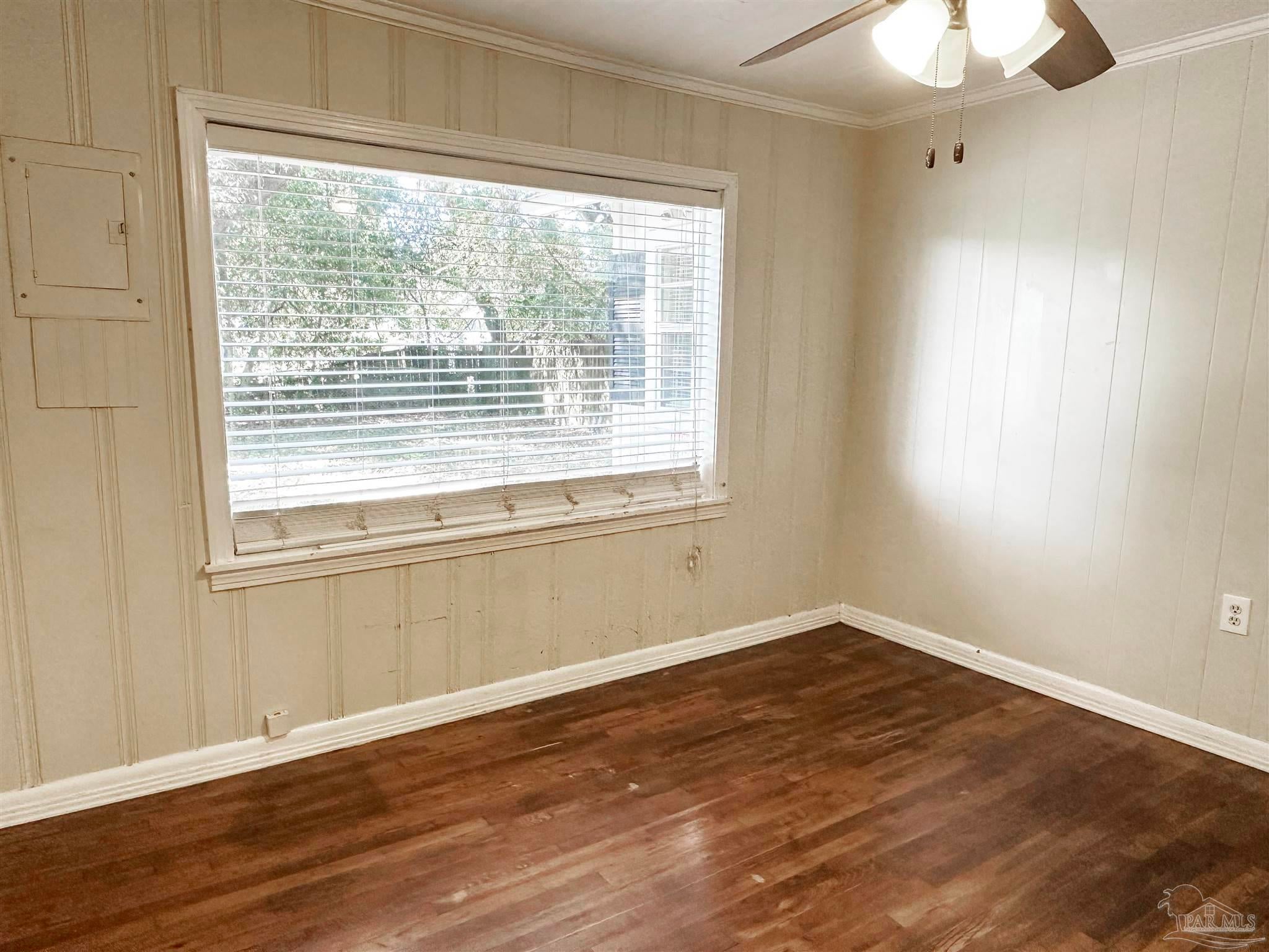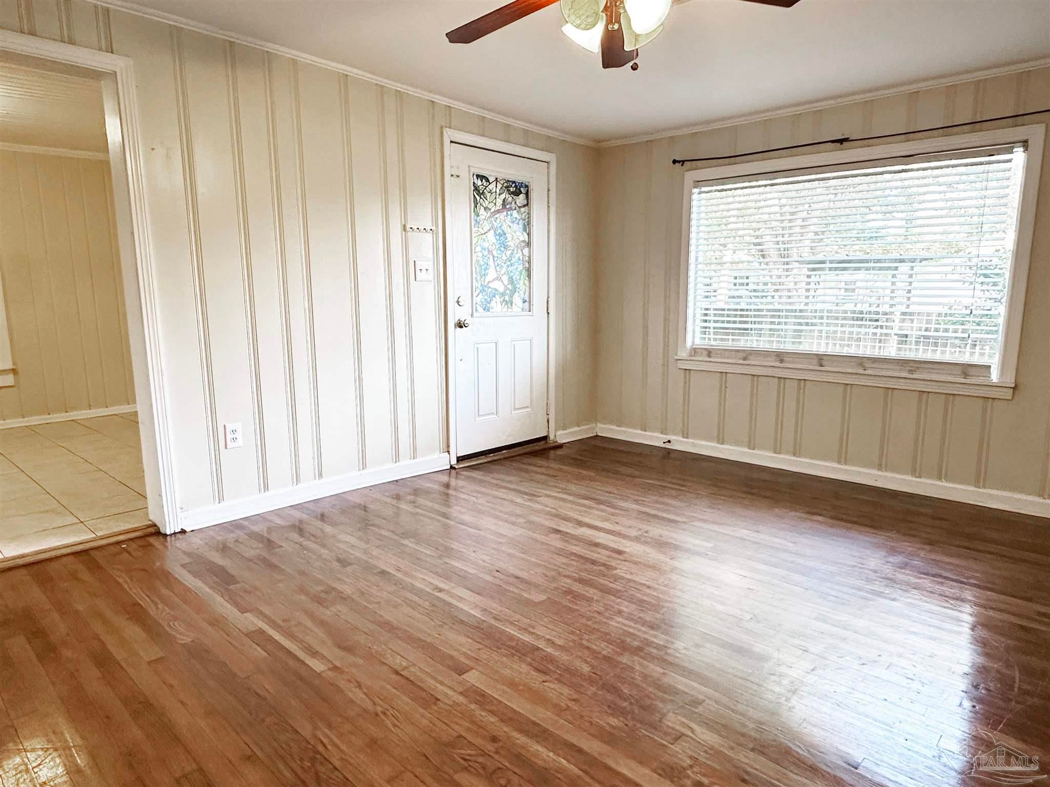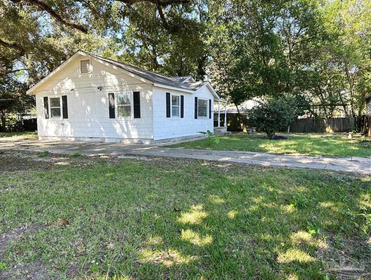 Charming 3-Bedroom Home on a Spacious Double Lot! Welcome home to this inviting 3-bedroom gem situated on a generous 0.33-acre double lot. A covered front porch sets the stage for the warmth inside, where you’ll find original hardwood floors, cozy built-ins, and wood plank ceilings in the kitchen and dining area—details that give this home exceptional character. The large kitchen opens seamlessly to the dining space, making it ideal for both everyday living and entertaining guests. A separate laundry room offers added convenience and leads to the expansive, fully fenced backyard. This property includes an additional parcel, offering endless possibilities: enjoy the oversized yard, build another home, or add a garage or carport on the existing concrete slab. The home and lot are already separated on city tax rolls, simplifying future building plans. Recent upgrades ensure peace of mind, including a new roof (2018), brand-new HVAC system (2025), and a newer water heater. Perfectly located just 10 minutes from downtown Pensacola and 20 minutes from NAS, you’ll be close to shopping, dining, and everyday conveniences. Whether you’re a first-time homebuyer or an investor seeking opportunity, this property offers comfort, character, and plenty of potential!