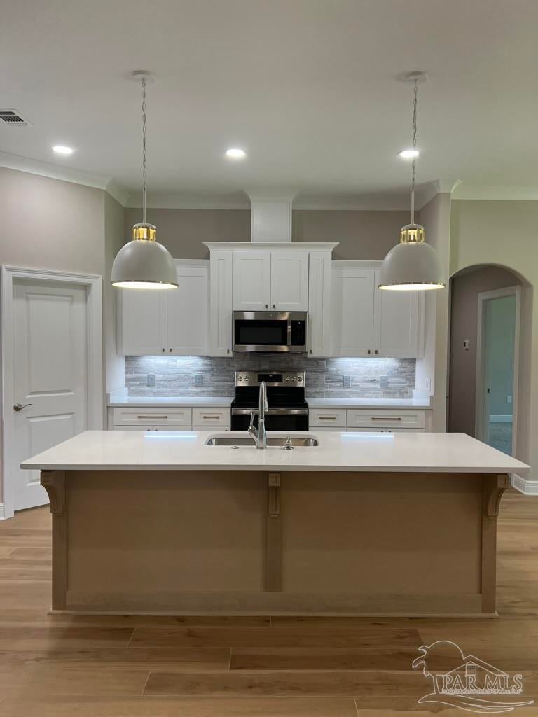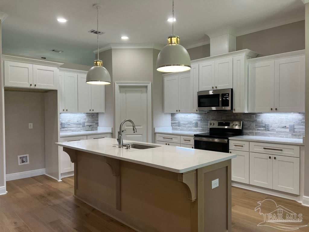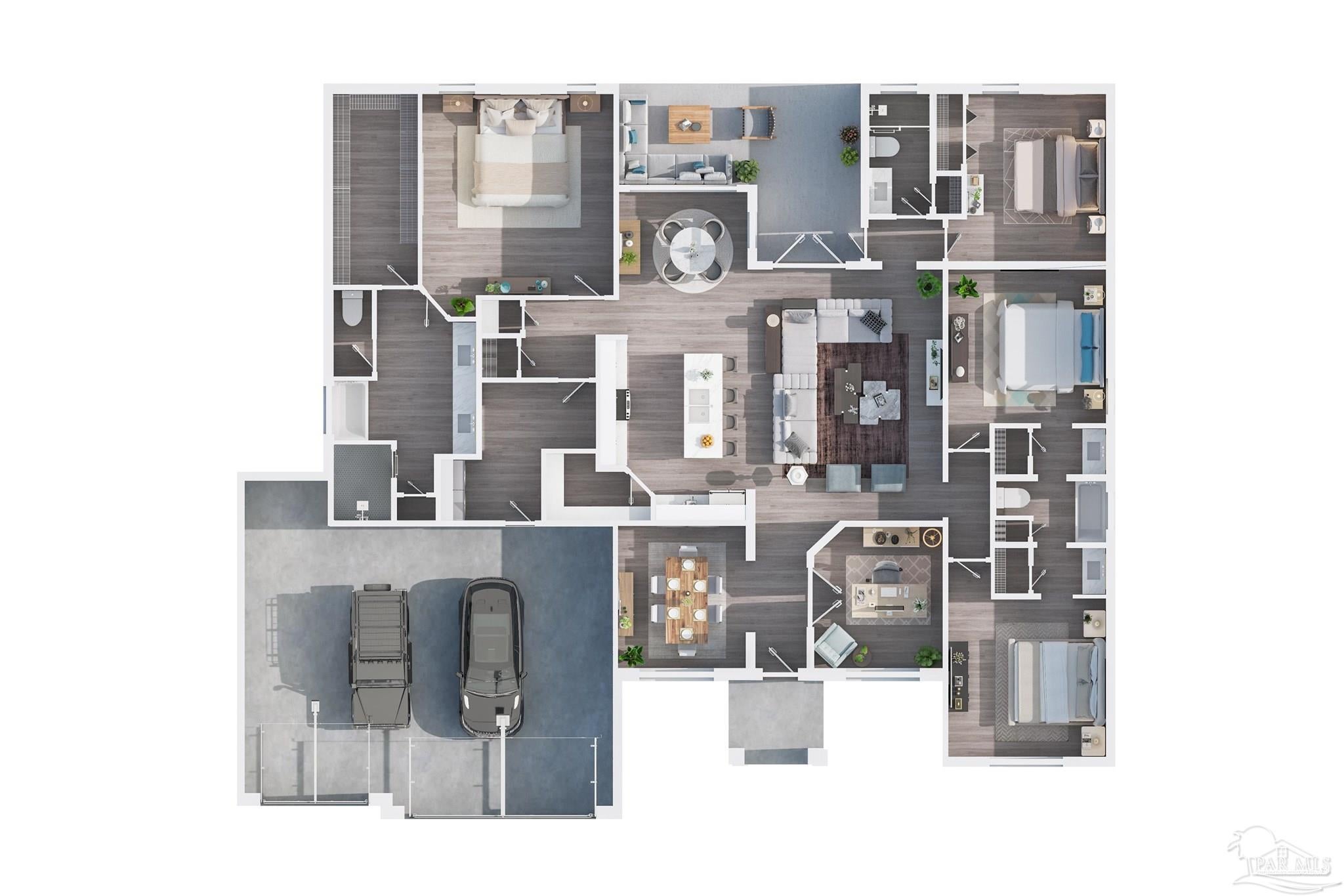 Stunning New Custom Home in Holley by the Sea – Estimated Completion February 2026 Experience luxury coastal living in this brand-new custom-built Robbins Builders home, ideally located on a quiet cul-de-sac in the sought-after Holley by the Sea community. Residents enjoy resort-style amenities including multiple pools, a fully equipped gym, tennis courts, a waterfront park, and deeded access to the Santa Rosa Sound. This 4-bedroom, 3-bathroom tri-split floor plan showcases timeless craftsmanship and modern design. The welcoming foyer opens to a formal dining room and private office with double glass doors, leading into an expansive open living area filled with natural light and refined finishes. The gourmet kitchen serves as the heart of the home—featuring shaker cabinetry with crown molding, quartz countertops, a tiled backsplash, stainless steel appliances, and a large center island flowing into the breakfast nook and family room. A walk-in pantry offers excellent storage, while wood-look staggered tile flooring enhances the home’s modern coastal appeal. The spacious primary suite offers a tranquil retreat with a trey ceiling, ceiling fan, and spa-inspired bath boasting a tiled walk-in shower, soaking tub, dual vanities with framed mirrors, and a large walk-in closet. Two guest bedrooms share a Jack & Jill bath, while a fourth bedroom features a private bath and access to the covered porch—perfect for guests or multigenerational living. Additional highlights include a laundry room, oversized 3-car garage ideal for trucks or outdoor toys, and a landscaped yard with irrigation system, lawn pump, and digital timer. Built for comfort and peace of mind, the home includes TAEXX in-wall pest control, Fabric Shield hurricane protection, a dimensional shingle roof, crown molding, recessed lighting, and more. Enjoy a short drive to Navarre Beach, local shopping, and Hwy 98 for easy access to Hurlburt Field AFB. Don’t miss this exceptional new home—call today for details