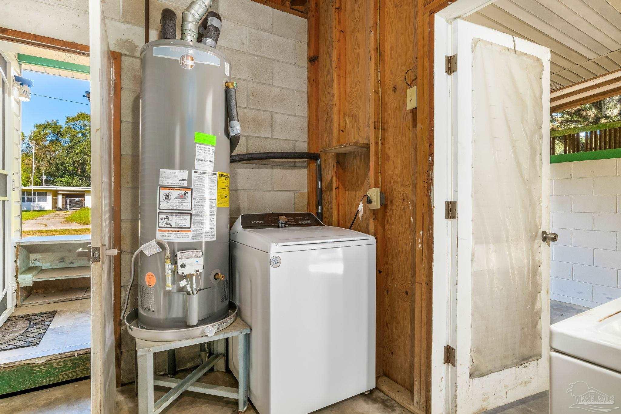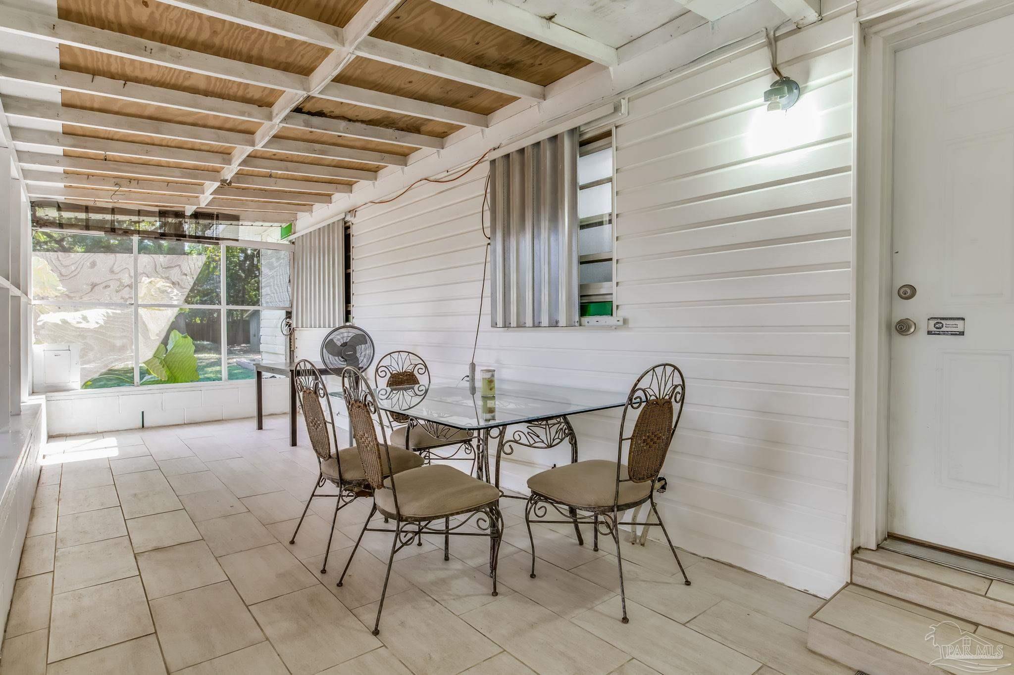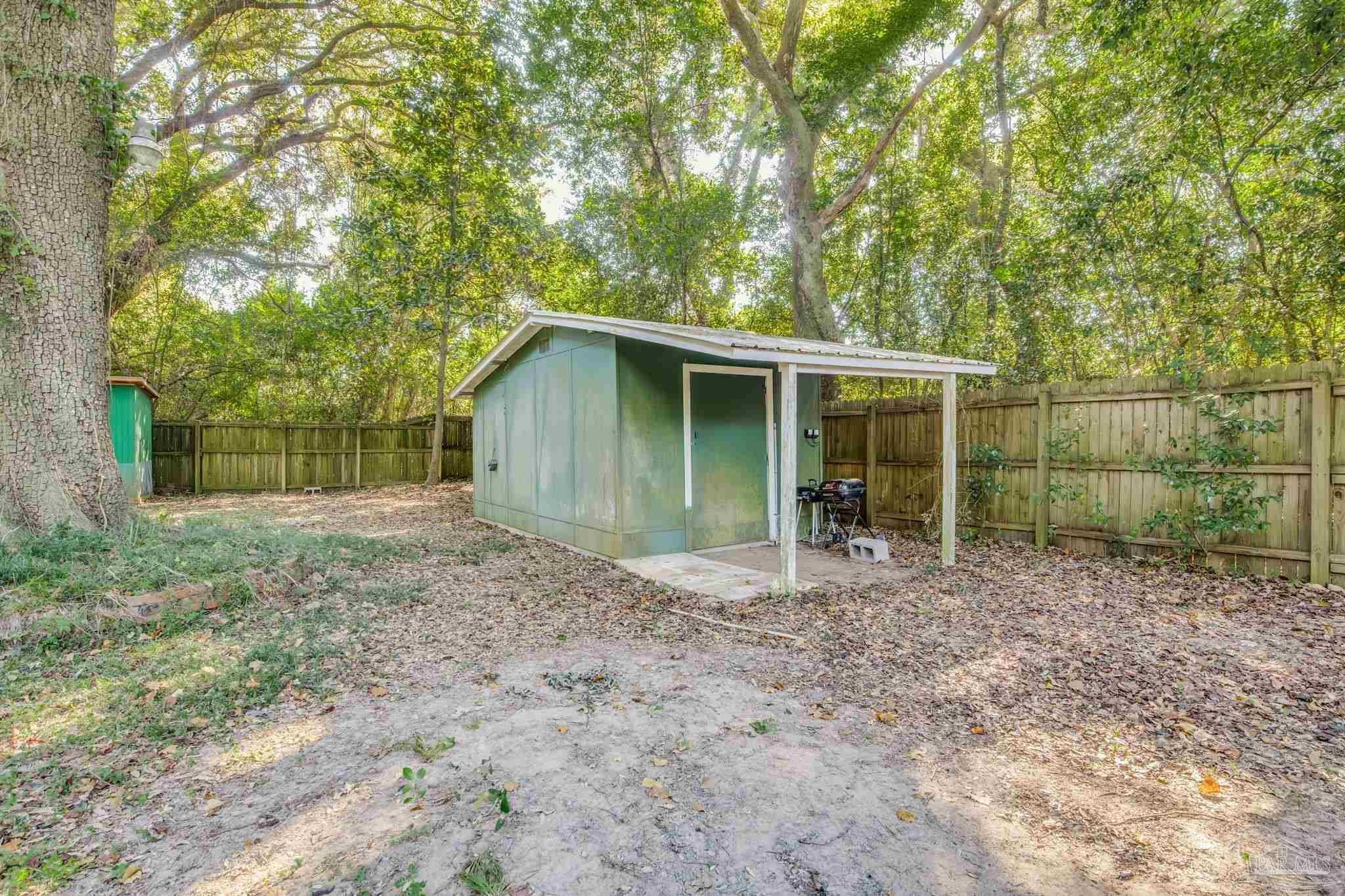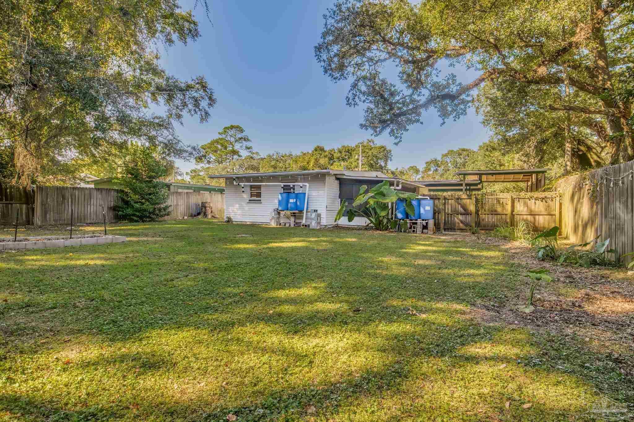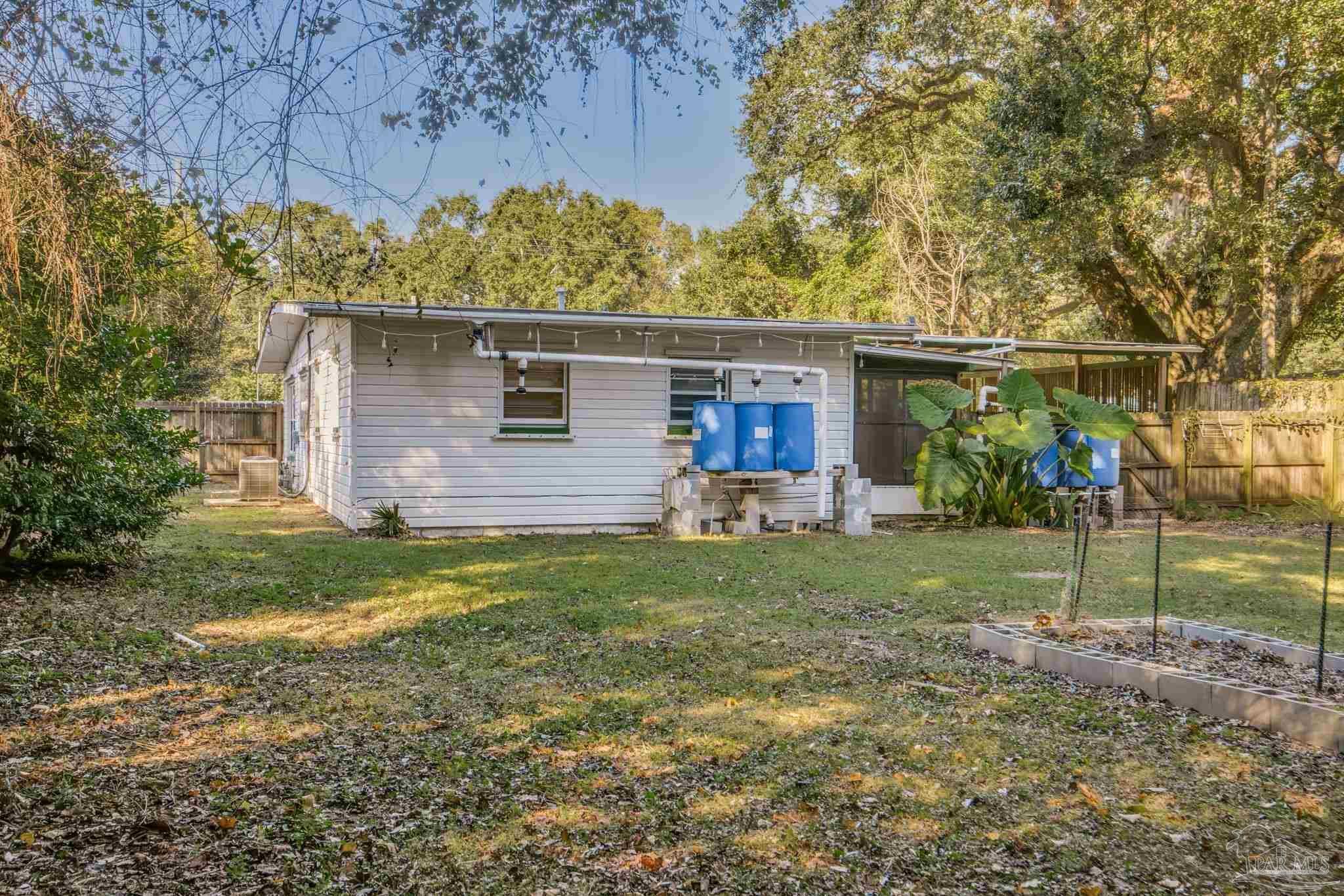 **VERY CLEAN**WELL MAINTAINED**NO CARPET**TILED SHOWERS** LARGE BACK YARD**GAS STOVE**PRETTY FURNISHINGS**READY FOR INSURANCE** This beautiful fully furnished home is move-in ready—perfect as a personal residence or short-term rental investment. The outside appearance has been preserved to blend in. Inside, neutral porcelain tile floors, updated LED lighting and fans, high-end blinds, and two upgraded bathrooms create a modern, comfortable feel. The kitchen features newer stainless appliances including a 5-burner gas cooktop with out-venting exhaust, refrigerator, and dishwasher. All furnishings convey, including flat-screen TVs, a stylish sectional with queen pull-out bed, three queen beds, desk, dressers, dining set, sunroom seating, and patio furniture. Built with solid cinder block construction and hurricane shutters, this home offers durability and affordable insurance. Key updates include a 2022 roof, 2025 gas water heater, 2014 AC, reverse osmosis drinking water system, and updated electrical with no aluminum wiring. Set on 0.35 acres, the property is prepped for homesteading and sustainable living. Highlights include a large powered chicken coop with automatic door, rainwater collection system with six 55-gallon barrels, an electrified storage/workshop shed, and a variety of fruit trees—mulberry, peach, kaffir lime, lime, lemon, guava, fig, and orange. The fully fenced backyard, landscaped patio, and quiet setting offer privacy and peace while still being minutes from major shopping, beaches, the airport, and NAS. Whether you’re beginning your prepper or sustainable living journey or seeking a move-in ready home, this property delivers. (If preferred, seller will gladly remove rain collecting system prior to close. Extra pavers left in yard for buyer. (If preferred, seller will remove).