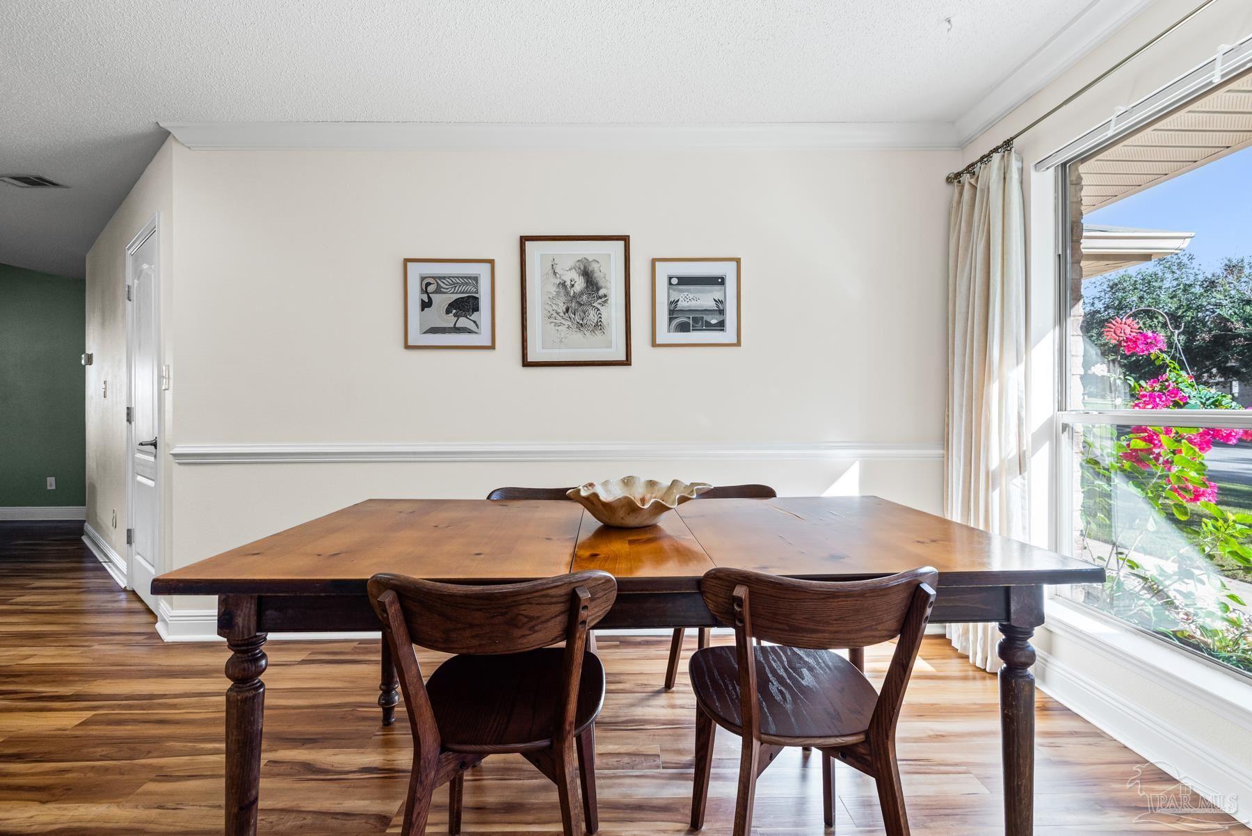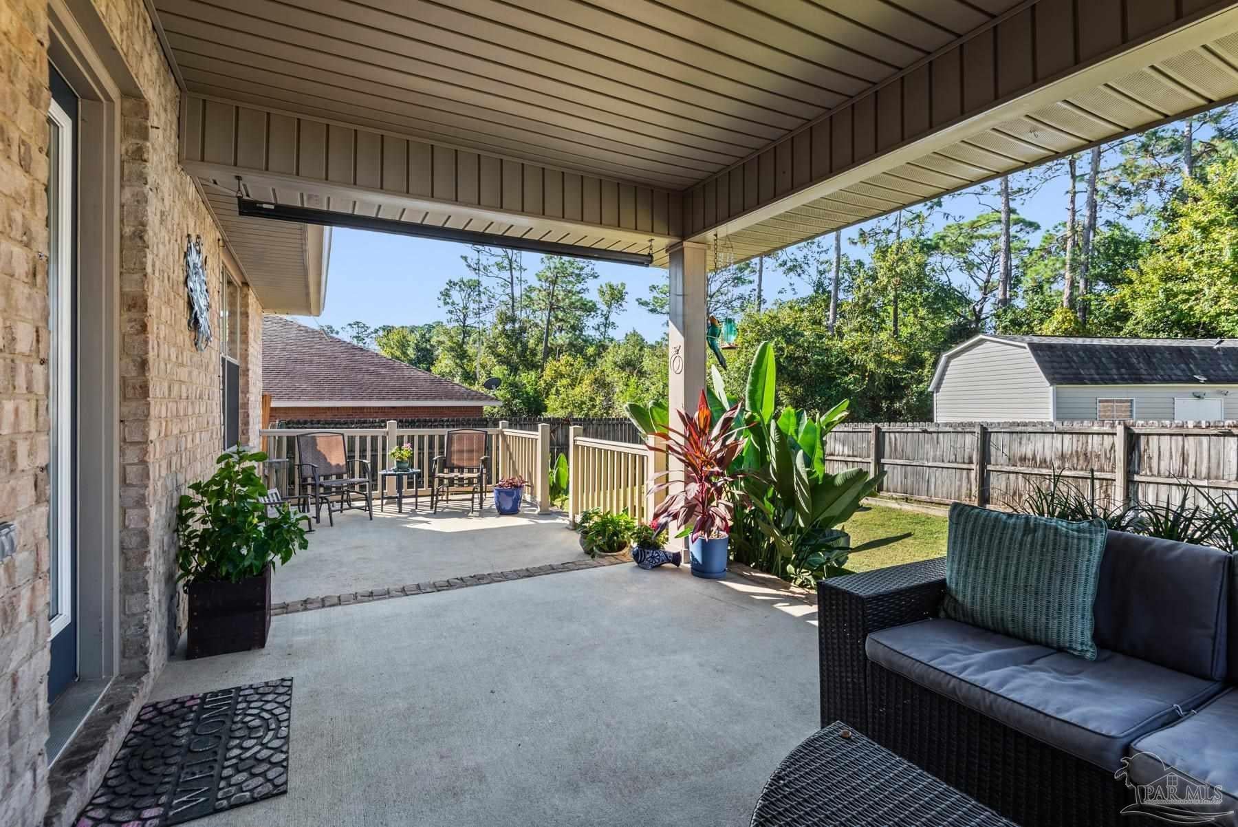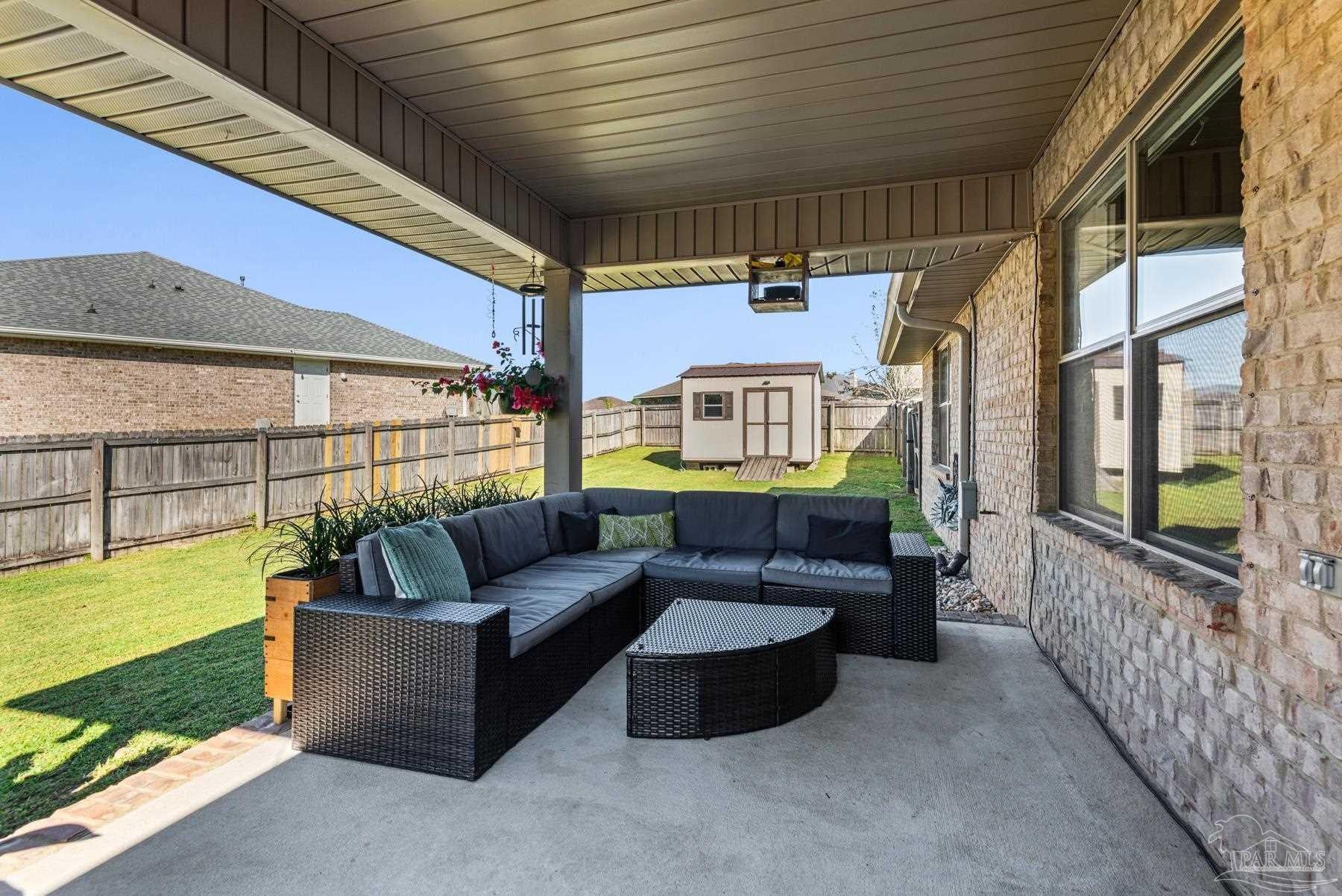 Discover this beautifully maintained 4-bedroom, 2-bath home in the desirable Robin’s Ridge Subdivision. Conveniently located near Davis Hwy and I-10 yet tucked away from the hustle and bustle, this move-in-ready home offers the perfect blend of comfort and convenience. Inside, you’ll find gorgeous Corotek vinyl flooring in the main living areas and porcelain tile in the baths. The spacious primary suite features an oversized porcelain shower with a frameless glass door, creating a spa-like retreat. The home’s neutral décor and meticulous cleanliness showcase true pride of ownership. Recent updates include a new roof with transferrable warranty (2025), A/C replaced in 2022, new garage door springs with warranty (2025), new patio space (2023), new toilets (2023), new garbage disposal (2024), fresh paint (2025), and a transferrable, prepaid HVAC/AC service appointment scheduled for Spring 2026. This home also includes a transferrable pest control bond through Knox Pest Control. Outside, enjoy a beautifully landscaped yard with a separate irrigation system, plus a covered patio to unwind on after a long day. A newer tool shed offers convenient storage for all your outdoor equipment. This two-owner home has been lovingly cared for and thoughtfully updated, offering a clean, comfortable, and truly move-in-ready space you’ll be proud to call your own. Don’t miss your chance to see this beautiful home!
