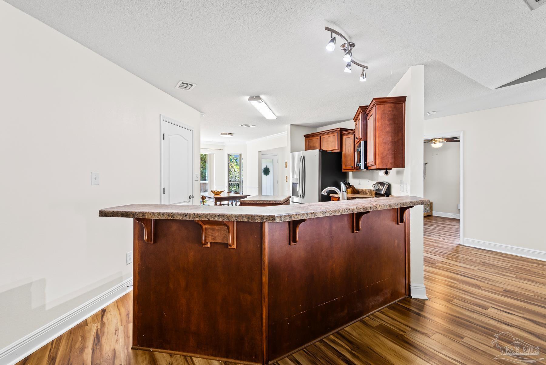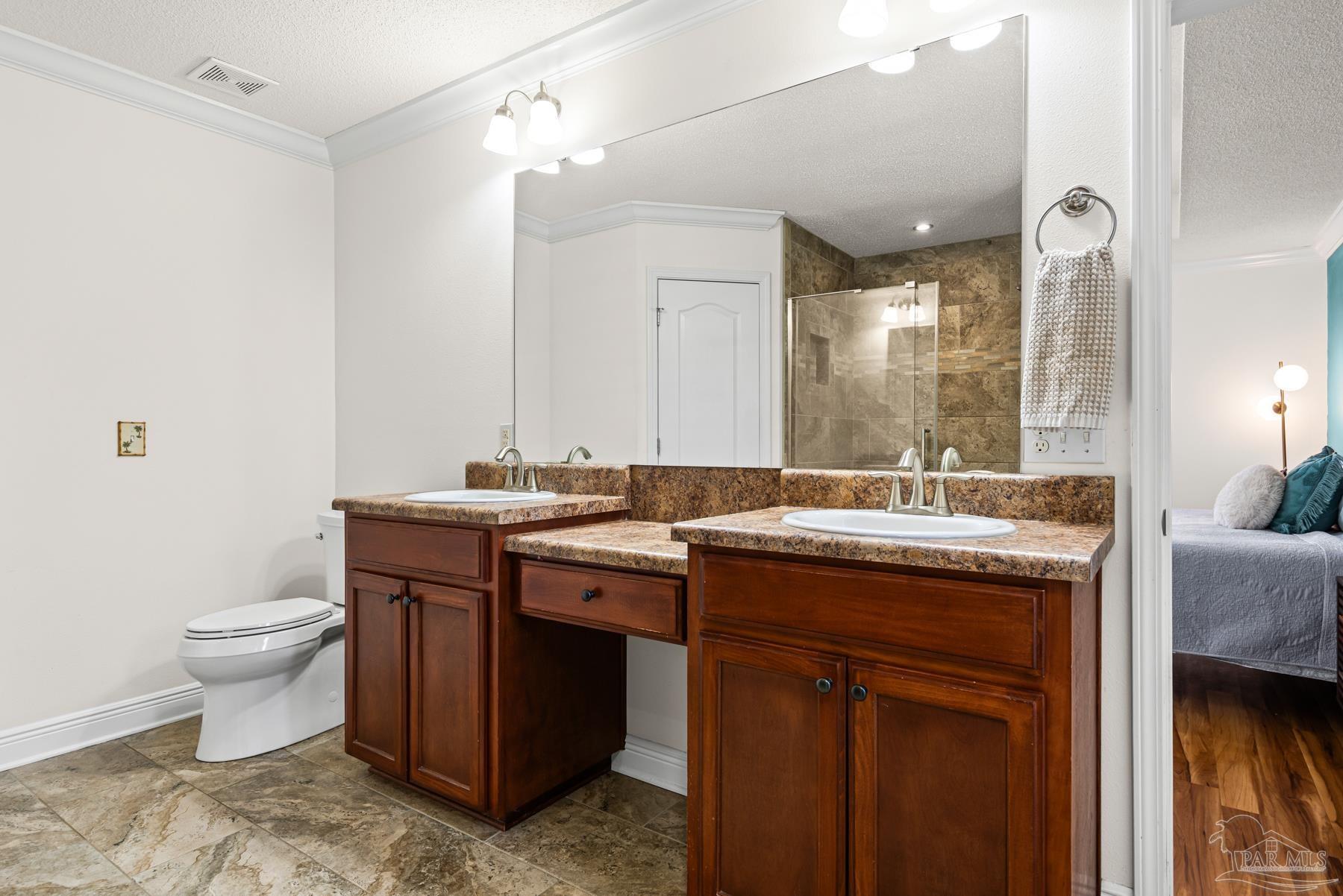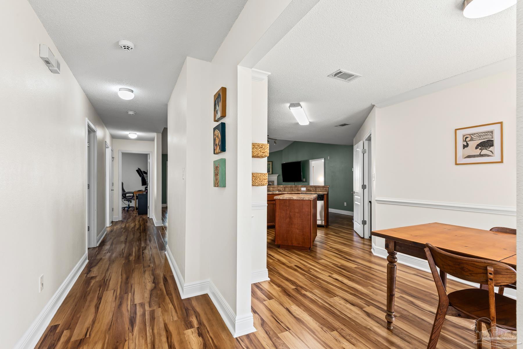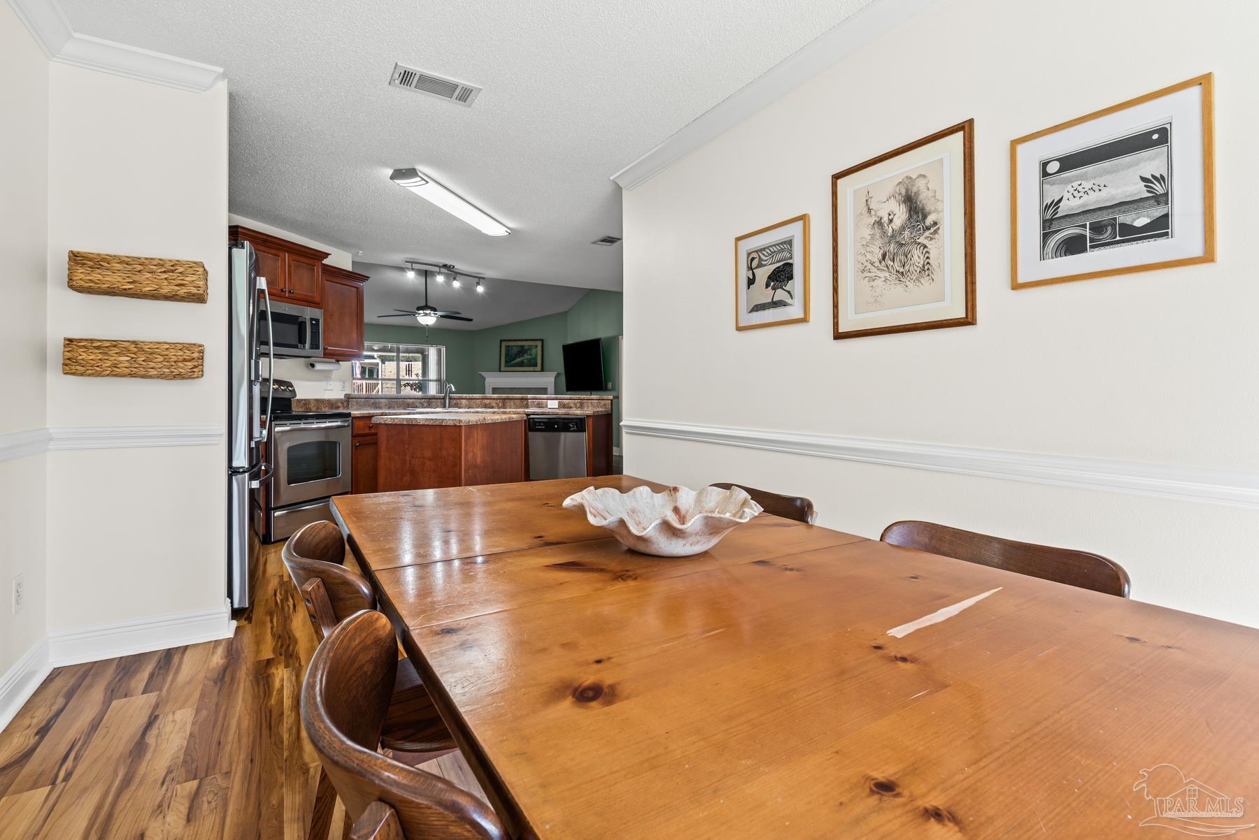 Discover this beautifully maintained 4-bedroom, 2-bath home in the desirable Robin’s Ridge Subdivision. Conveniently located near Davis Hwy and I-10 yet tucked away from the hustle and bustle, this move-in-ready home offers the perfect blend of comfort and convenience. Inside, you’ll find gorgeous Corotek vinyl flooring in the main living areas and porcelain tile in the baths. The spacious primary suite features an oversized porcelain shower with a frameless glass door, creating a spa-like retreat. The home’s neutral décor and meticulous cleanliness showcase true pride of ownership. Recent updates include a new roof with transferrable warranty (2025), A/C replaced in 2022, new garage door springs with warranty (2025), new patio space (2023), new toilets (2023), new garbage disposal (2024), fresh paint (2025), and a transferrable, prepaid HVAC/AC service appointment scheduled for Spring 2026. This home also includes a transferrable pest control bond through Knox Pest Control. Outside, enjoy a beautifully landscaped yard with a separate irrigation system, plus a covered patio to unwind on after a long day. A newer tool shed offers convenient storage for all your outdoor equipment. This two-owner home has been lovingly cared for and thoughtfully updated, offering a clean, comfortable, and truly move-in-ready space you’ll be proud to call your own. Don’t miss your chance to see this beautiful home!