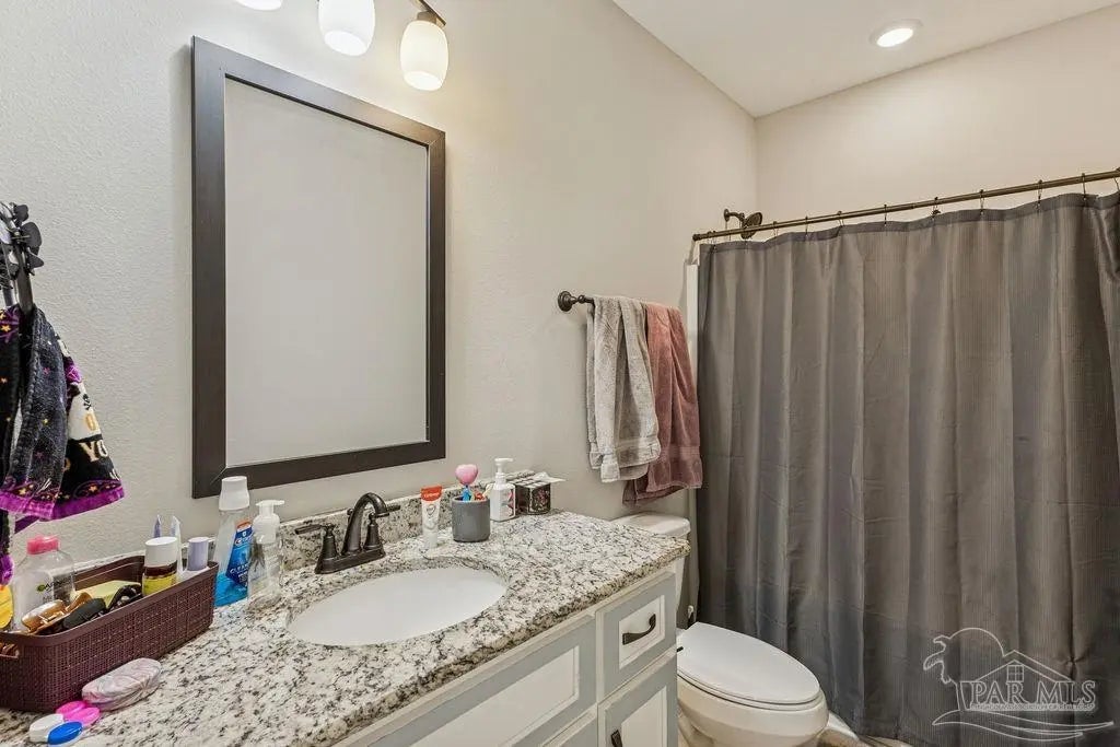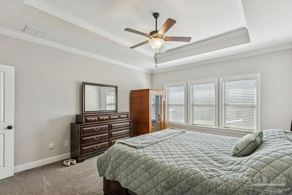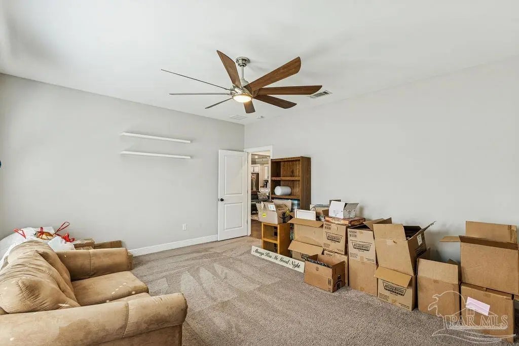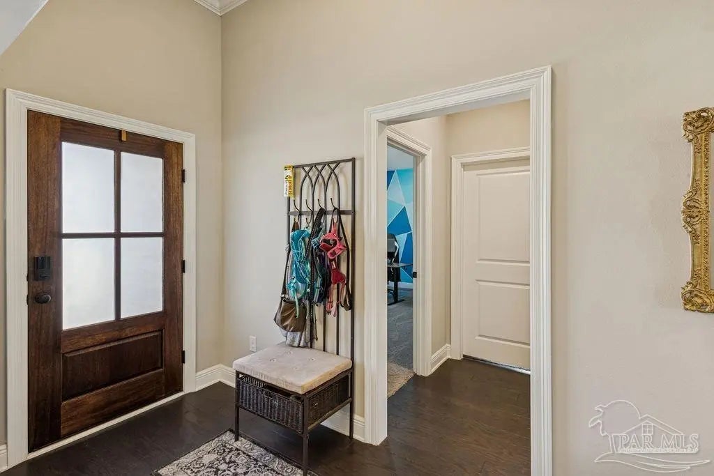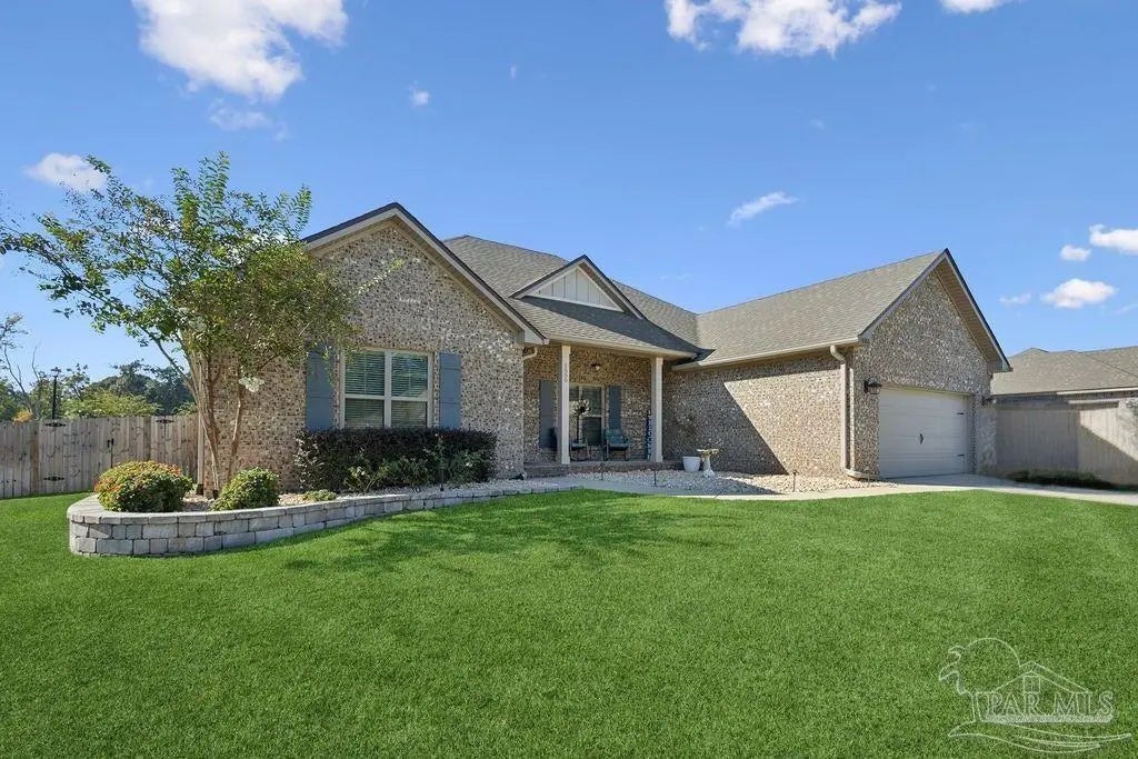 Welcome to Harmony Estates, one of Cantonment’s most desirable neighborhoods known for its quality craftsmanship, safety, and pride of ownership. This beautiful all-brick home has been maintained by one family and offers 4 bedrooms, 3 bathrooms, a bonus room, and 2,824 square feet of living space (4,018 sqft under roof) on a spacious 0.28-acre corner lot. From the moment you arrive, the curb appeal stands out—custom front and backyard landscaping, accent lighting, and a wide driveway leading to an oversized 2-car garage. Inside, you’ll find tall ceilings, crown molding, and an open layout that flows effortlessly from the foyer into the formal dining area and large living room. The kitchen is a dream, featuring quartz countertops, a 5-burner gas range, Samsung appliances, a farmhouse sink, and both a breakfast nook and bar seating area—perfect for entertaining or family gatherings. The primary suite is a peaceful retreat with tray ceilings, natural light from large windows, and a luxurious bathroom complete with a custom tile shower featuring rain, standard, and handheld shower heads, a double vanity, a private bathroom, generous linen storage, and a walk-in closet that feels like its own room! Additional highlights include a tankless gas hot water heater, LVP flooring throughout with tile in the bathrooms and carpet in the bedrooms, and cased windows and doors throughout for a refined finish. Step outside to enjoy the screened-in back porch that opens onto a custom paver patio, perfect for morning coffee or grilling in the evenings. The fully fenced backyard includes a storage shed, full irrigation system, double and single gates, and whole-house gutters. The garage entry area is as functional as it is beautiful, featuring a built-in hall tree and mudroom, a custom desk nook, and an oversized laundry room with ample storage. This home truly has it all—space, quality, and peace of mind knowing no more homes will be built in this well-established subdivision.