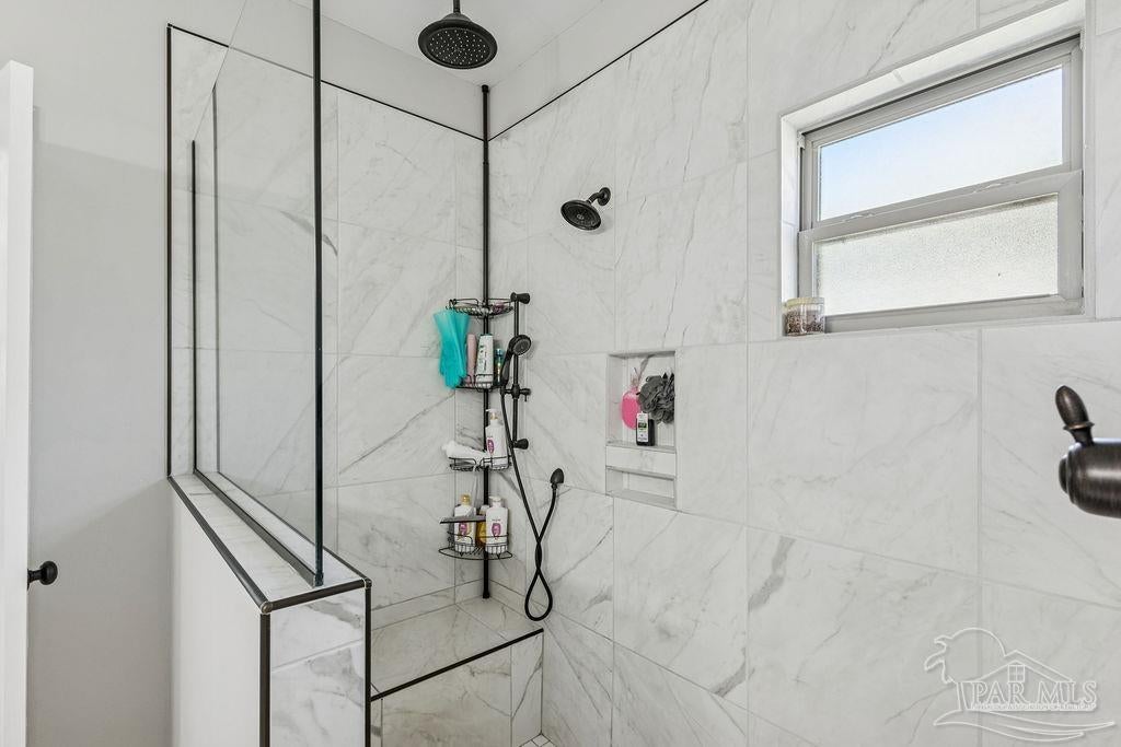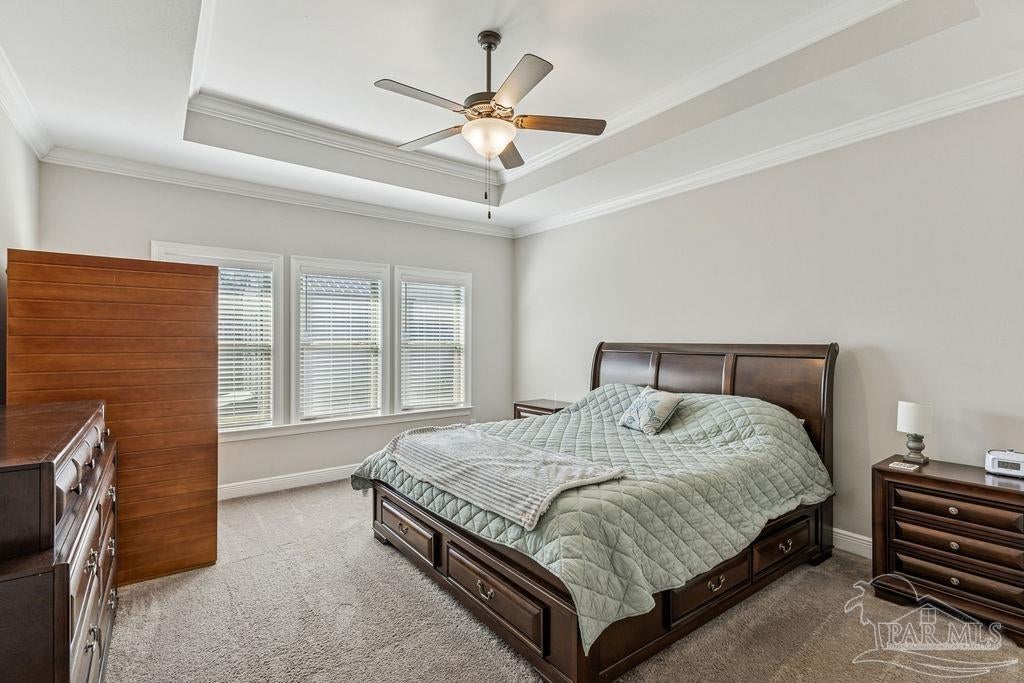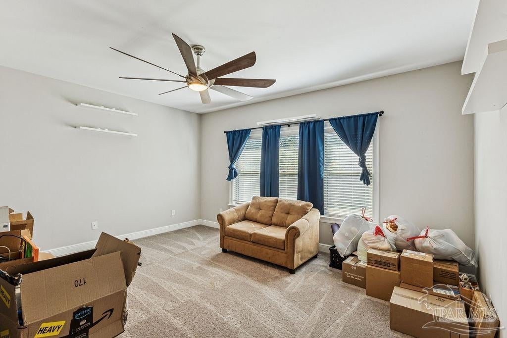 Welcome to Harmony Estates, one of Cantonment’s most desirable neighborhoods known for its quality craftsmanship, safety, and pride of ownership. This beautiful all-brick home has been maintained by one family and offers 4 bedrooms, 3 bathrooms, a bonus room, and 2,824 square feet of living space (4,018 sqft under roof) on a spacious 0.28-acre corner lot. From the moment you arrive, the curb appeal stands out—custom front and backyard landscaping, accent lighting, and a wide driveway leading to an oversized 2-car garage. Inside, you’ll find tall ceilings, crown molding, and an open layout that flows effortlessly from the foyer into the formal dining area and large living room. The kitchen is a dream, featuring quartz countertops, a 5-burner gas range, Samsung appliances, a farmhouse sink, and both a breakfast nook and bar seating area—perfect for entertaining or family gatherings. The primary suite is a peaceful retreat with tray ceilings, natural light from large windows, and a luxurious bathroom complete with a custom tile shower featuring rain, standard, and handheld shower heads, a double vanity, a private bathroom, generous linen storage, and a walk-in closet that feels like its own room! Additional highlights include a tankless gas hot water heater, LVP flooring throughout with tile in the bathrooms and carpet in the bedrooms, and cased windows and doors throughout for a refined finish. Step outside to enjoy the screened-in back porch that opens onto a custom paver patio, perfect for morning coffee or grilling in the evenings. The fully fenced backyard includes a storage shed, full irrigation system, double and single gates, and whole-house gutters. The garage entry area is as functional as it is beautiful, featuring a built-in hall tree and mudroom, a custom desk nook, and an oversized laundry room with ample storage. This home truly has it all—space, quality, and peace of mind knowing no more homes will be built in this well-established subdivision.