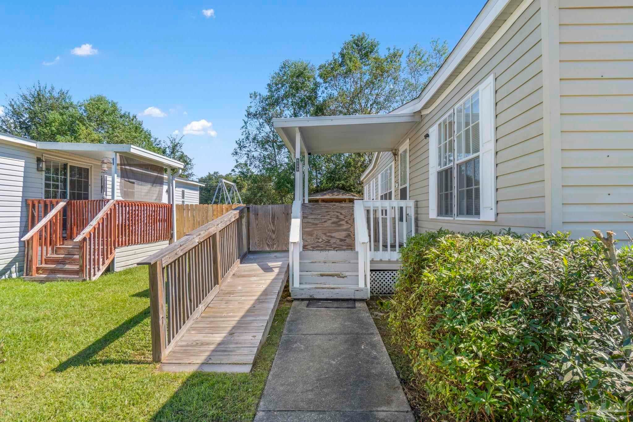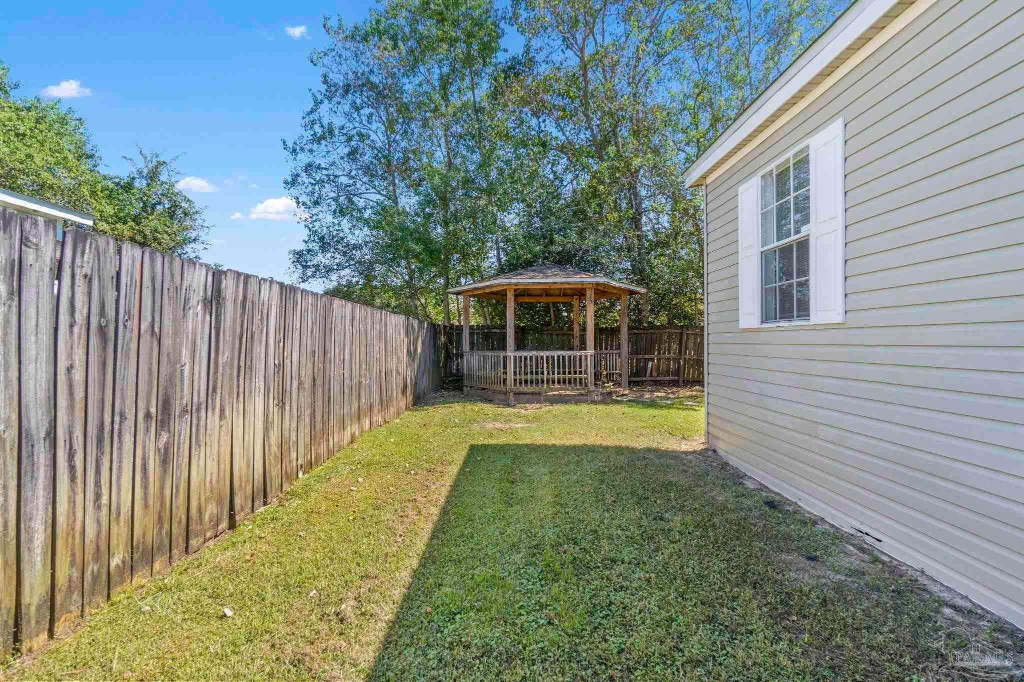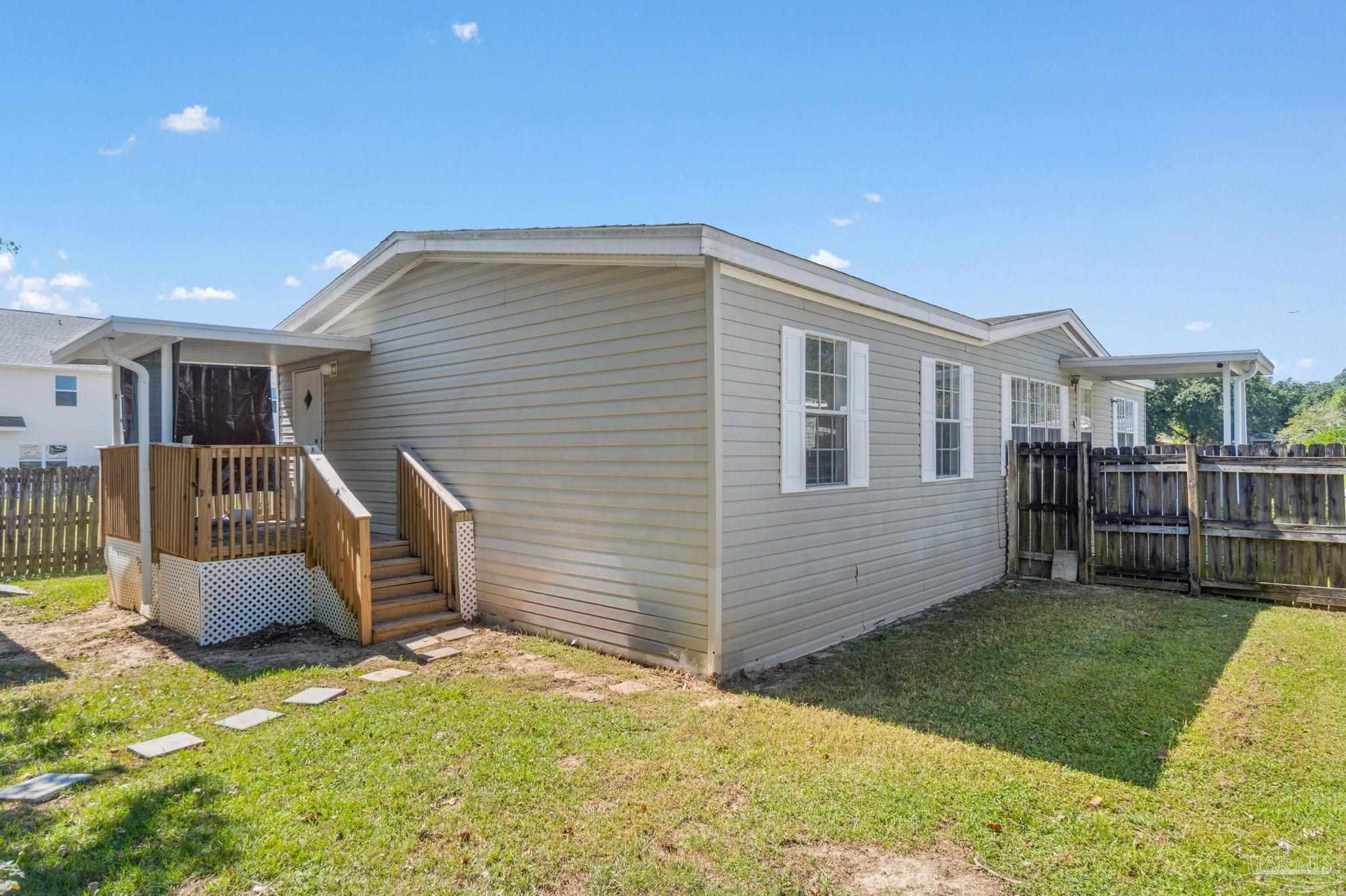 Welcome to this Charming Corner Lot Mobile Home. Offering comfort and convenience with 3-bedrooms and 2 bathrooms. Inside, you'll find spacious split floor plan with plenty of closet space throughout. The primary suite features a large garden tub and a separate shower, creating a relaxing retreat. Step outside to a wonderful backyard with a gazebo, storage shed, and a plenty of yard space; Perfect for entertaining, gardening, or simply enjoying the outdoors. Located in a desirable area close to Publix, Target, Wal-Mart, and Aldi. This home has easy access to Perdido Beaches and even close to the Navy air museum. Making this home an ideal place to live.
