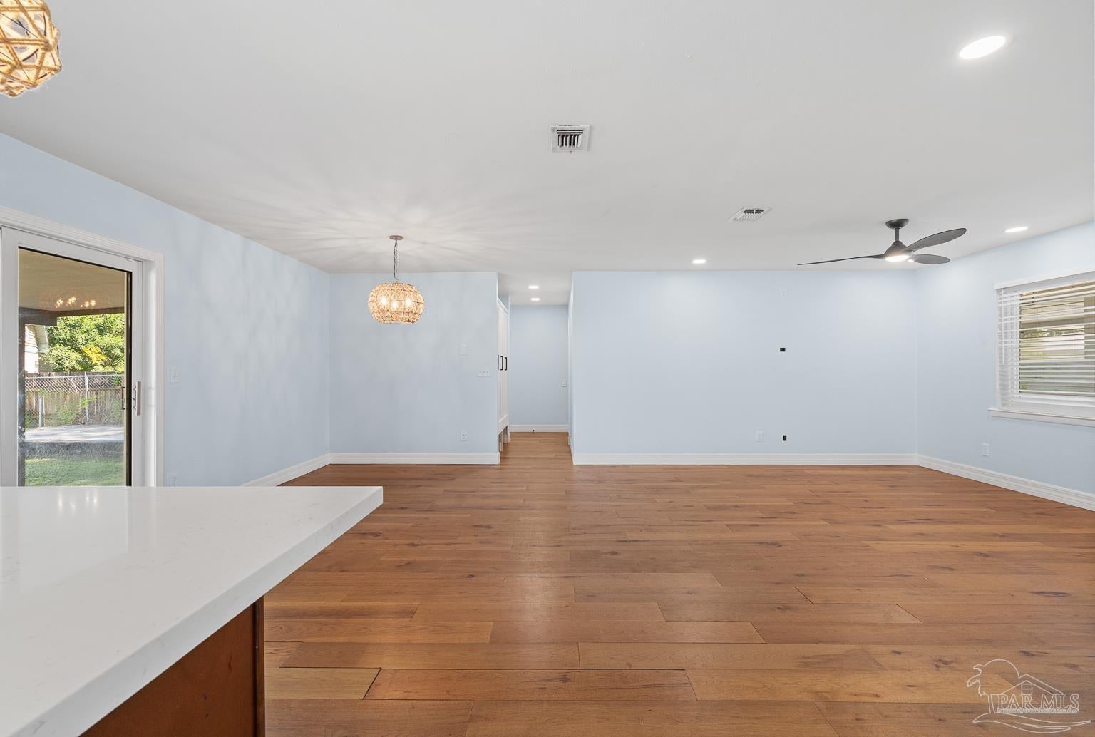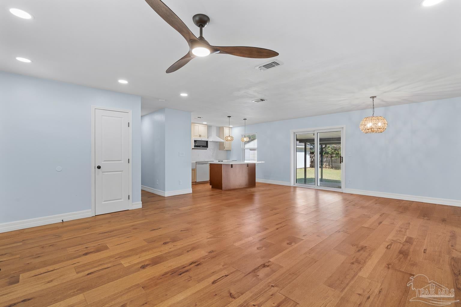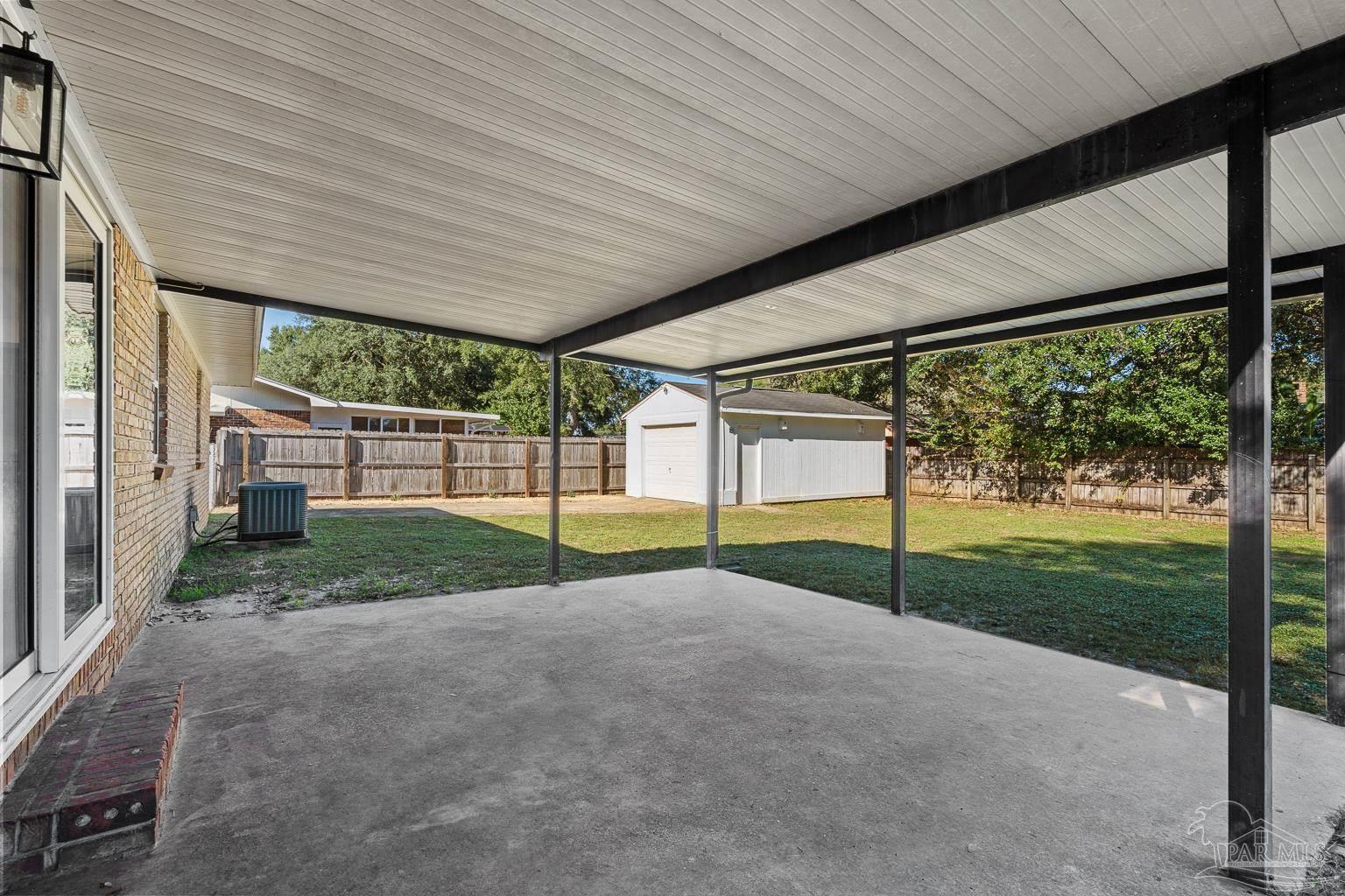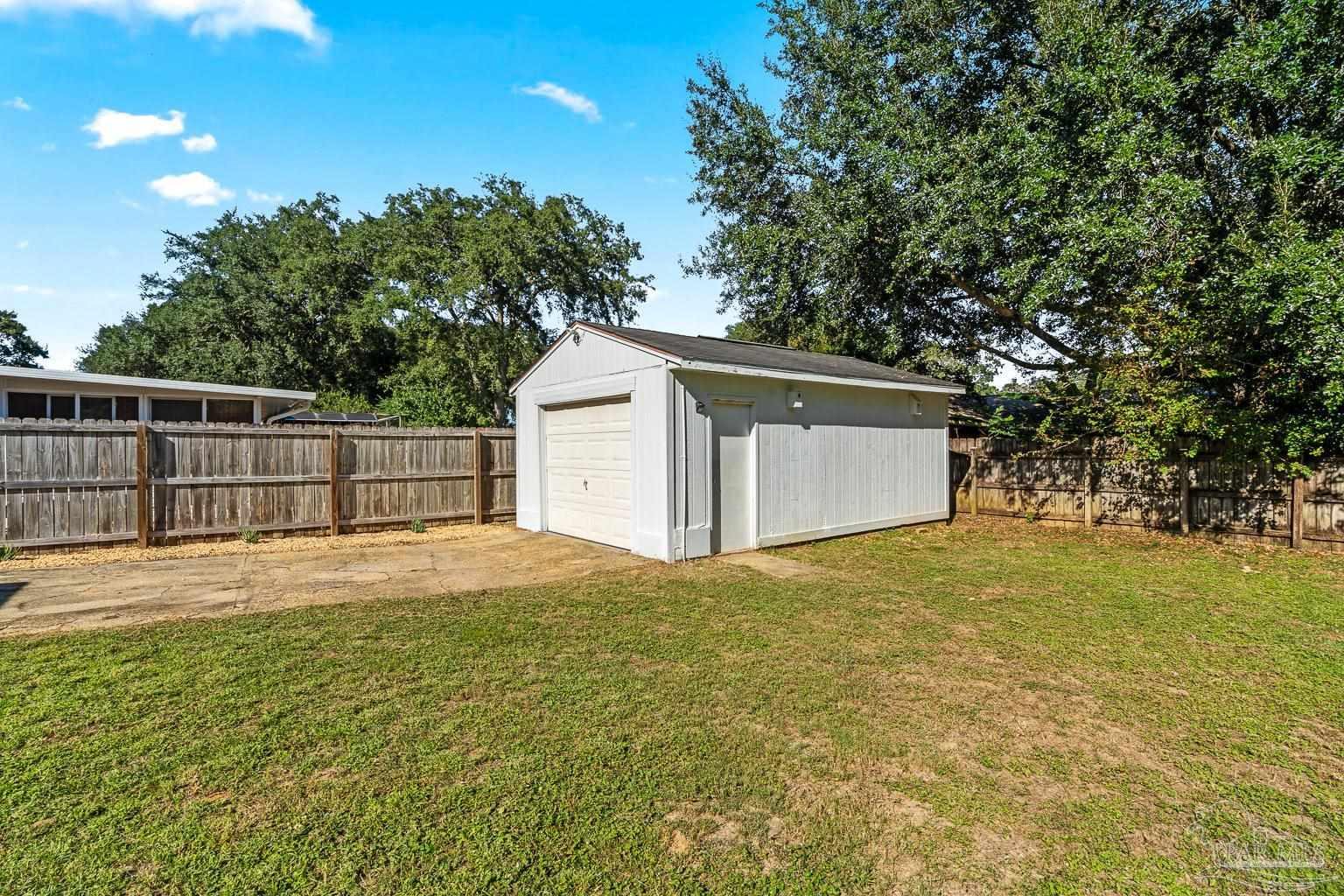 Step into this charming 3-bedroom, 2-bath home that perfectly blends comfort, style, and convenience! Inside, you’ll find engineered hardwood flooring throughout, fresh interior paint, and an inviting open layout centered around a kitchen that shines with granite countertops, a large island, and ample cabinet space. Both bathrooms feature beautiful tile showers, adding a touch of modern elegance. This home offers plenty of storage throughout, plus two detached storage sheds perfect for tools, hobbies, or extra belongings. Enjoy the savings and sustainability of paid-off solar panels, along with the convenience of a single-car garage and covered carport for extra parking or outdoor projects. The property includes two detached storage buildings — a 12x16 shed for tools or gardening equipment, and a 14x22 garage/workshop with power, perfect for hobbies or projects. There’s also a 32’ x 15’ concrete pad ready for your boat or RV. in a quiet neighborhood, the home is centrally located to everything Pensacola has to offer. Just minutes from shopping, dining, parks, and more. A wonderful mix of efficiency, comfort, and location!