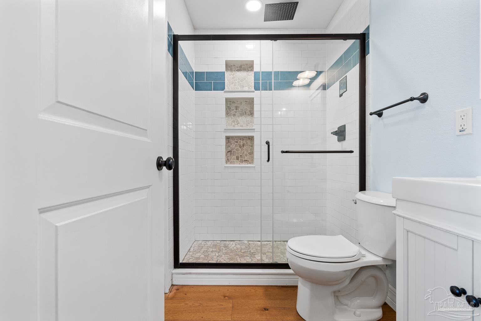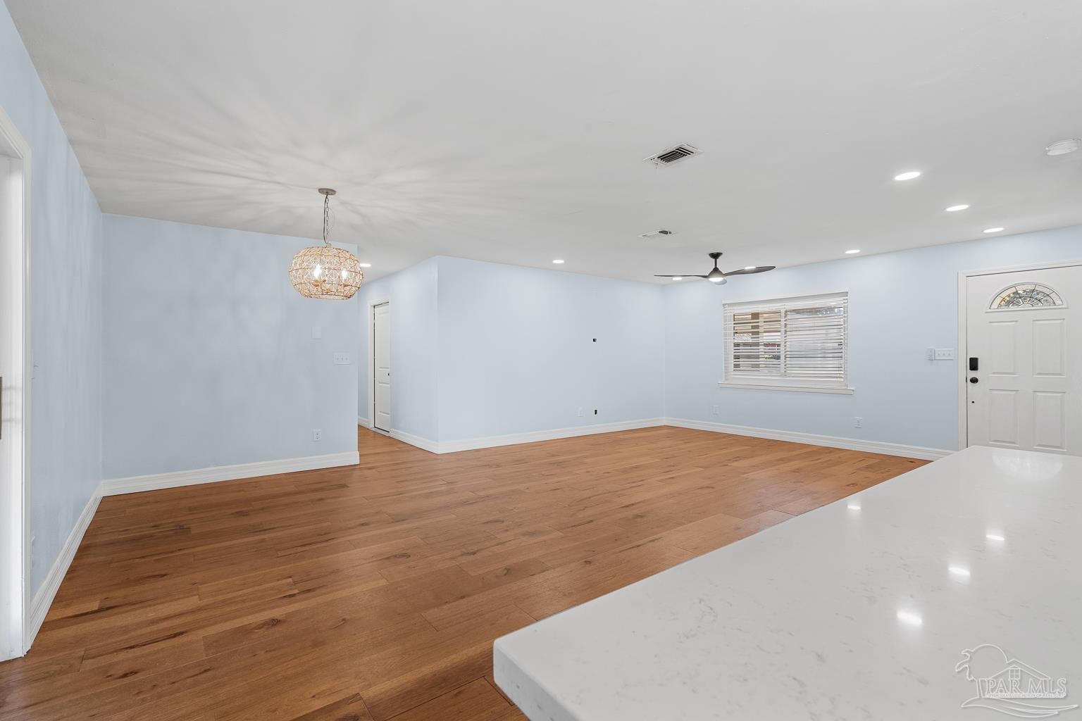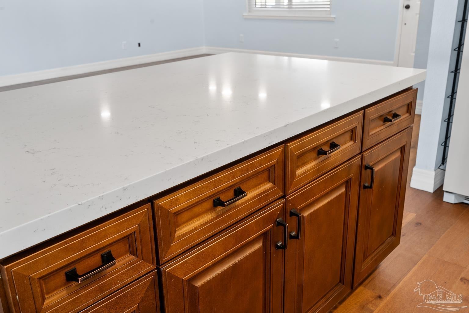 Step into this charming 3-bedroom, 2-bath home that perfectly blends comfort, style, and convenience! Inside, you’ll find engineered hardwood flooring throughout, fresh interior paint, and an inviting open layout centered around a kitchen that shines with granite countertops, a large island, and ample cabinet space. Both bathrooms feature beautiful tile showers, adding a touch of modern elegance. This home offers plenty of storage throughout, plus two detached storage sheds perfect for tools, hobbies, or extra belongings. Enjoy the savings and sustainability of paid-off solar panels, along with the convenience of a single-car garage and covered carport for extra parking or outdoor projects. The property includes two detached storage buildings — a 12x16 shed for tools or gardening equipment, and a 14x22 garage/workshop with power, perfect for hobbies or projects. There’s also a 32’ x 15’ concrete pad ready for your boat or RV. in a quiet neighborhood, the home is centrally located to everything Pensacola has to offer. Just minutes from shopping, dining, parks, and more. A wonderful mix of efficiency, comfort, and location!