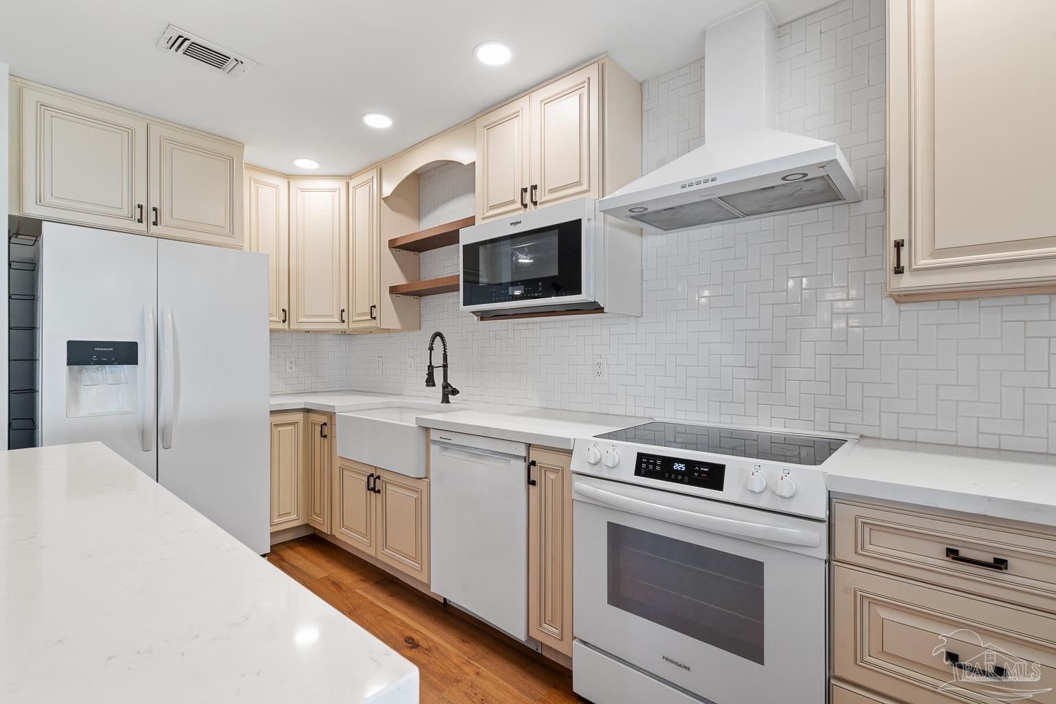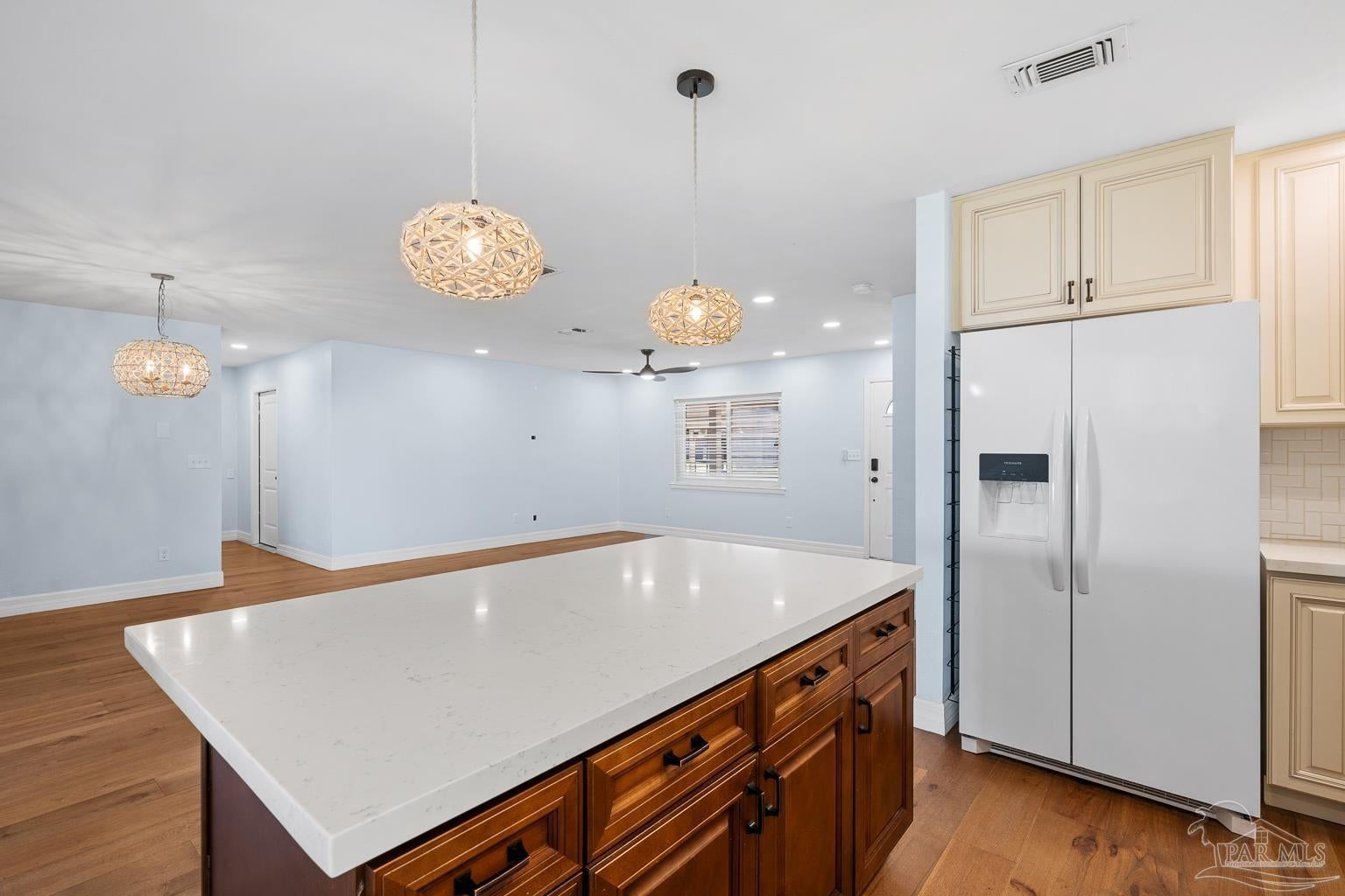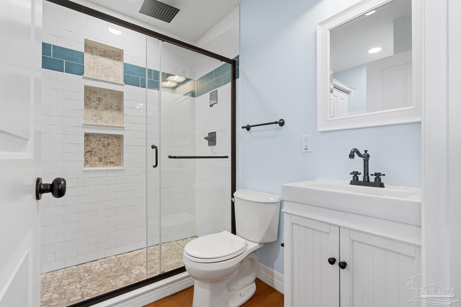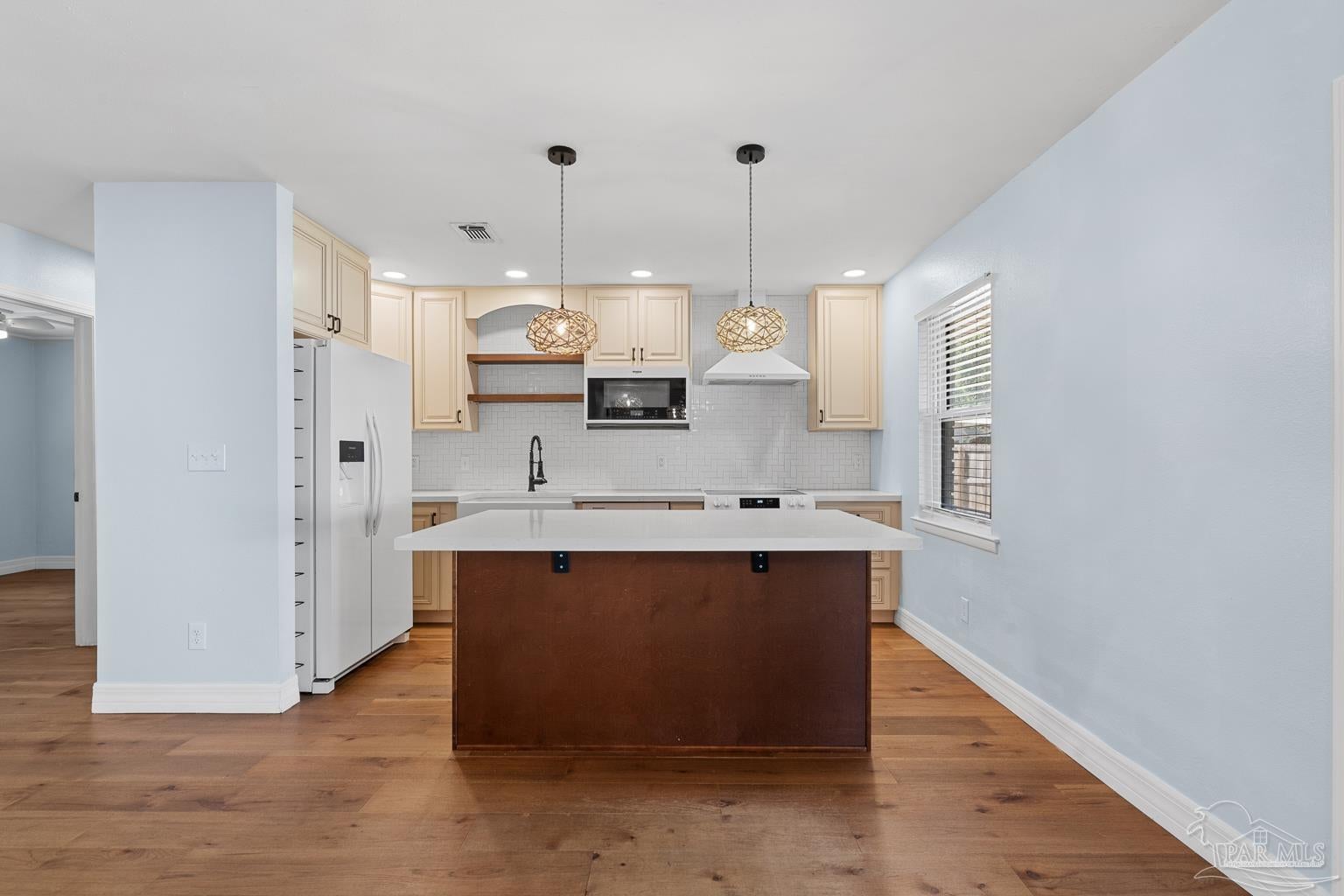 Step into this charming 3-bedroom, 2-bath home that perfectly blends comfort, style, and convenience! Inside, you’ll find engineered hardwood flooring throughout, fresh interior paint, and an inviting open layout centered around a kitchen that shines with granite countertops, a large island, and ample cabinet space. Both bathrooms feature beautiful tile showers, adding a touch of modern elegance. This home offers plenty of storage throughout, plus two detached storage sheds perfect for tools, hobbies, or extra belongings. Enjoy the savings and sustainability of paid-off solar panels, along with the convenience of a single-car garage and covered carport for extra parking or outdoor projects. The property includes two detached storage buildings — a 12x16 shed for tools or gardening equipment, and a 14x22 garage/workshop with power, perfect for hobbies or projects. There’s also a 32’ x 15’ concrete pad ready for your boat or RV. in a quiet neighborhood, the home is centrally located to everything Pensacola has to offer. Just minutes from shopping, dining, parks, and more. A wonderful mix of efficiency, comfort, and location!