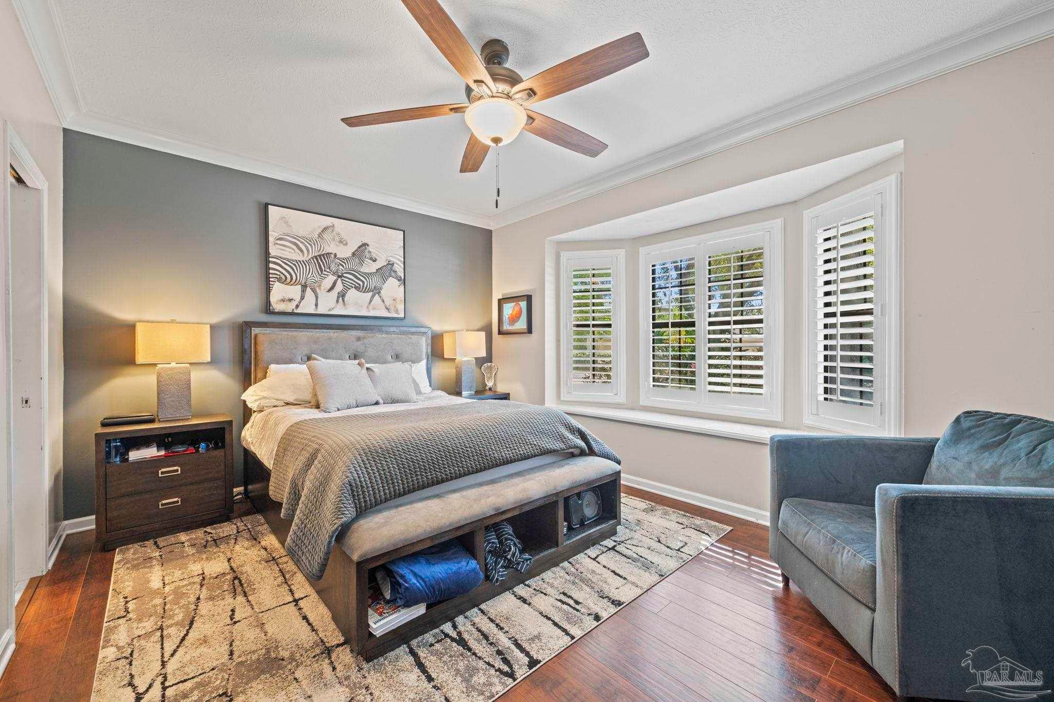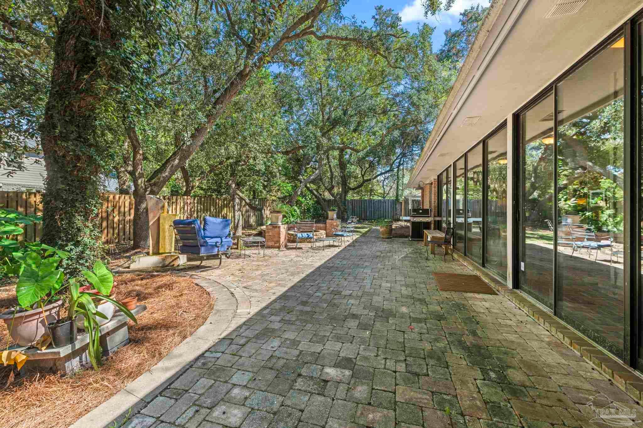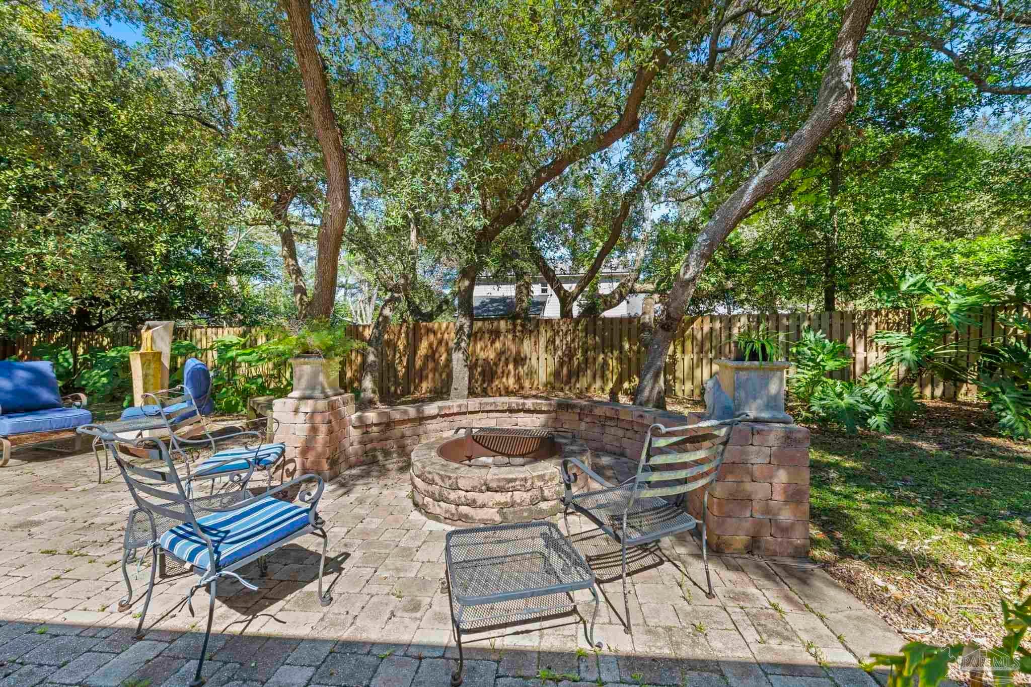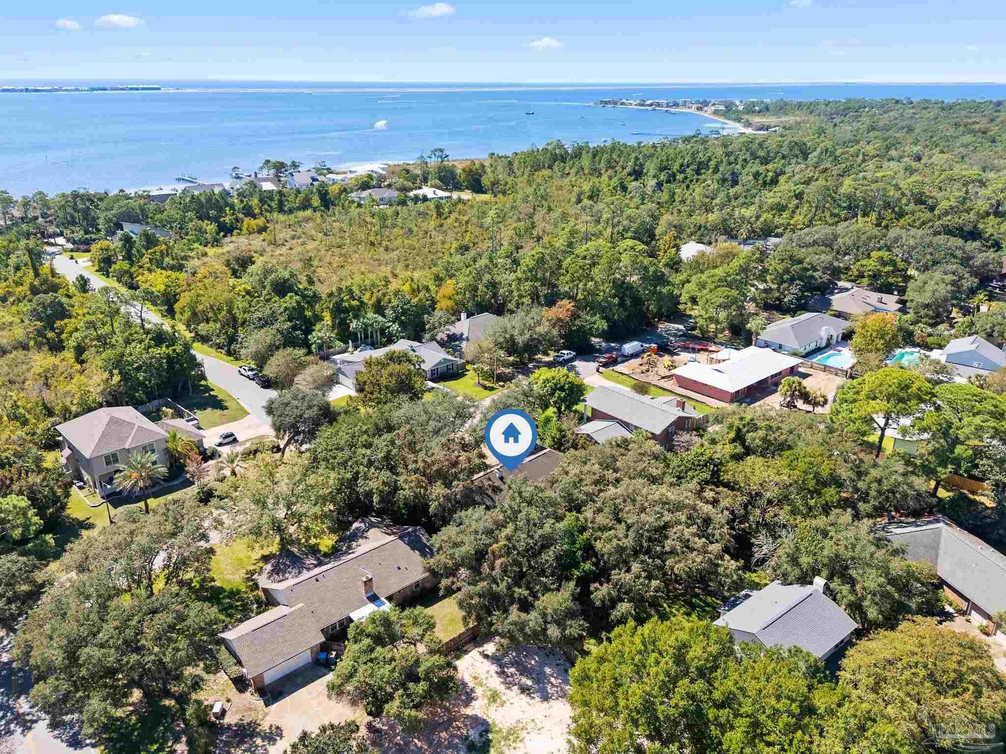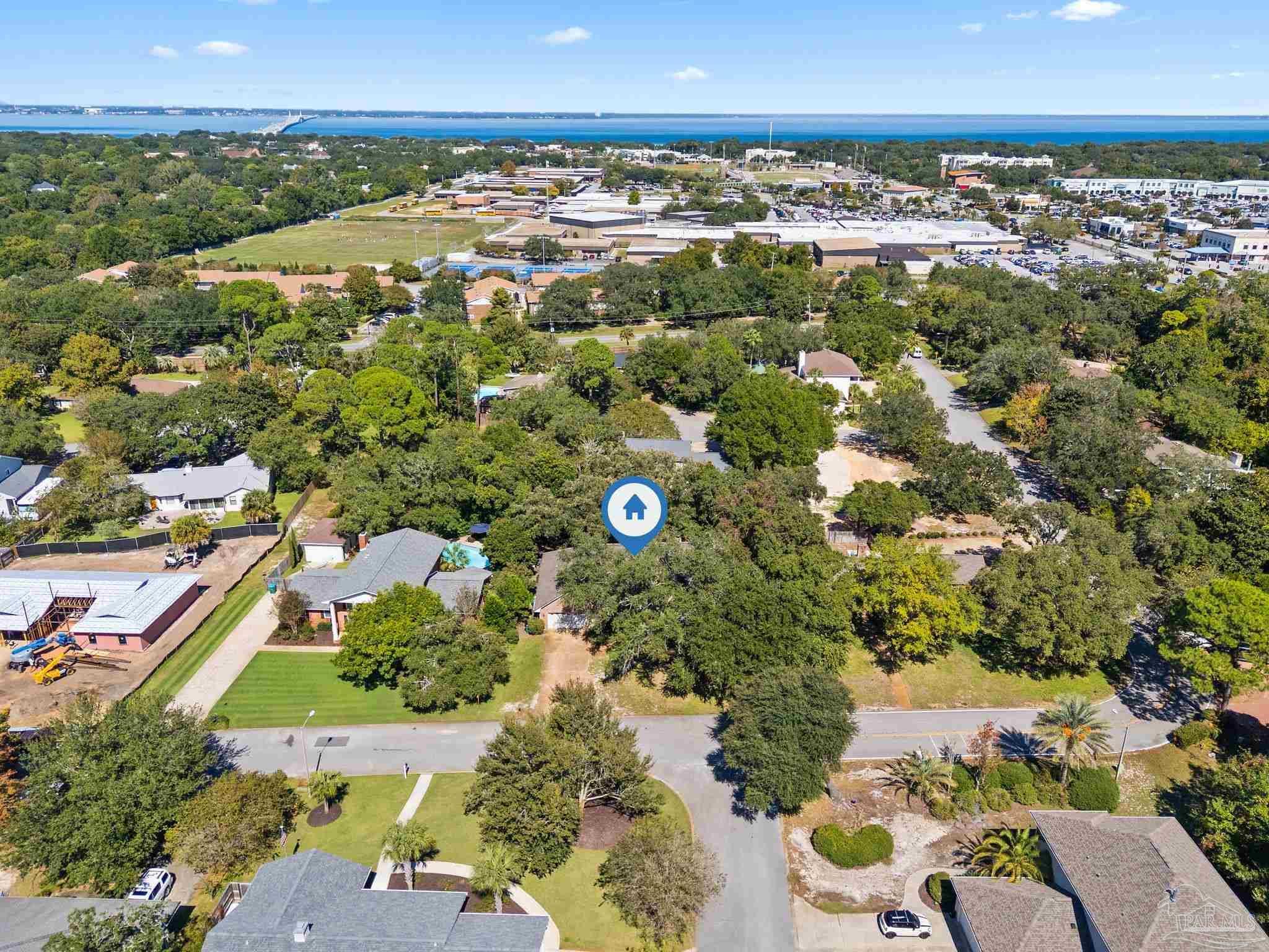 Welcome to this beautiful brick home in highly sought-after Gulf Breeze Proper, offering strong curb appeal with its prominent roof pitch, classic brick siding, and inviting architectural lines. Step inside to an impressive great room highlighted by high ceilings, a cozy wood-burning fireplace, built-in bookshelves, and French doors that open to a lovely sunroom—creating the perfect blend of warmth and elegance. This thoughtfully designed split floor plan features a spacious primary suite, a guest suite with private access, and two additional bedrooms that share a full bath—ideal for family and guests alike. Multiple living areas and 9-foot ceilings throughout enhance the home’s open, comfortable feel. The sunroom with charming brick flooring overlooks a beautiful backyard entertaining area with a fire pit, perfect for gatherings or quiet evenings outdoors. Interior highlights include plantation shutters on select windows and engineered wood-look flooring that flows through most of the home, offering both style and easy maintenance. The centrally located kitchen boasts abundant cabinetry, stainless-steel front appliances that include a wall-mounted oven and microwave with convection option, and versatile dining spaces including a breakfast bar, breakfast nook, and formal dining room. Located within walking distance of Gulf Breeze’s top-rated schools and nearby parks with water access, this home also offers quick access to world-class beaches, Historic Downtown Pensacola, premier shopping, dining, and Pensacola International Airport—making it one of the most desirable addresses on the Gulf Coast. Additional features include a two-car garage with floored storage space above, providing ample room for organization and convenience. Classic curb appeal, timeless design, and an unbeatable location—this Gulf Breeze Proper home offers the ideal blend of comfort, style, and coastal convenience.