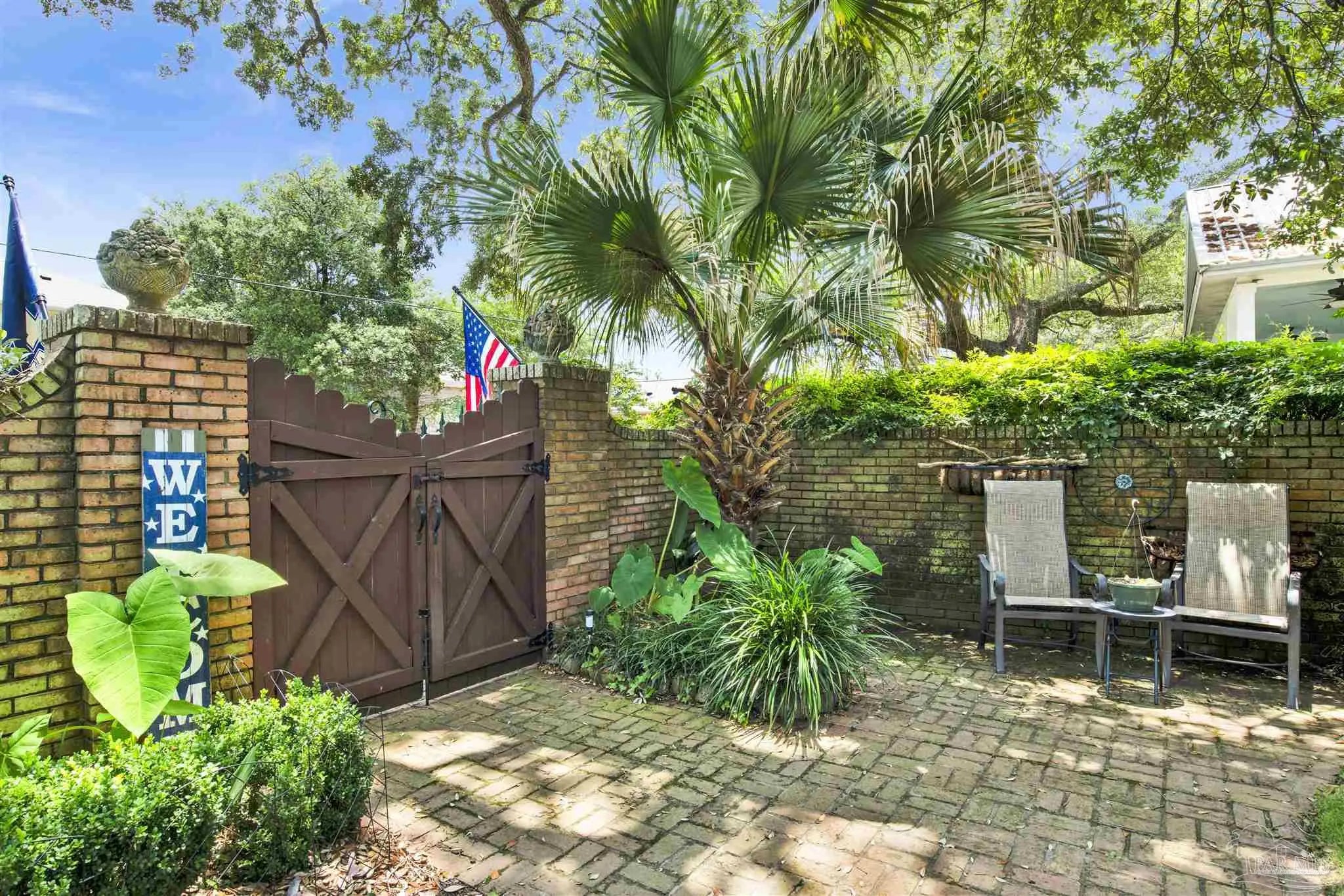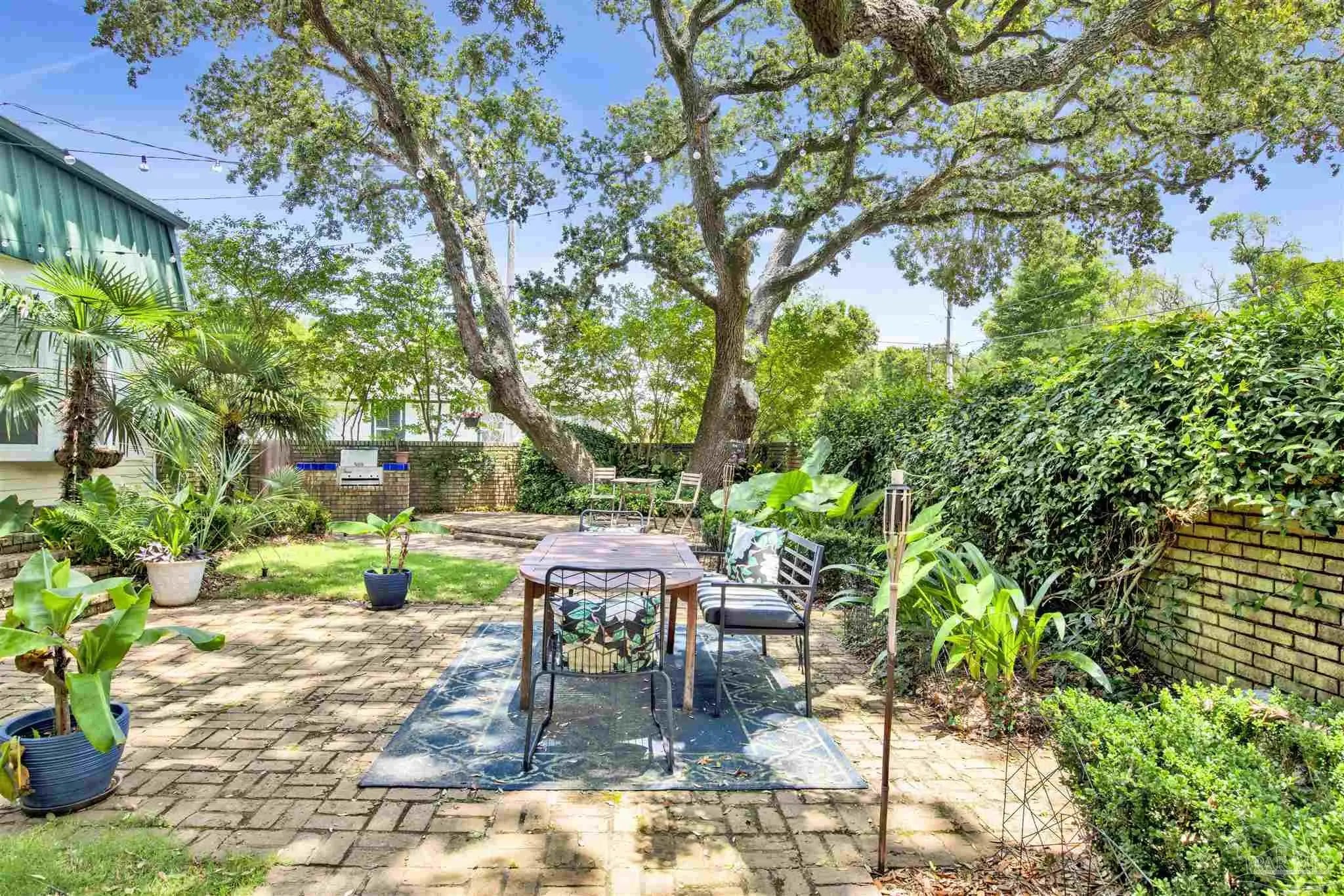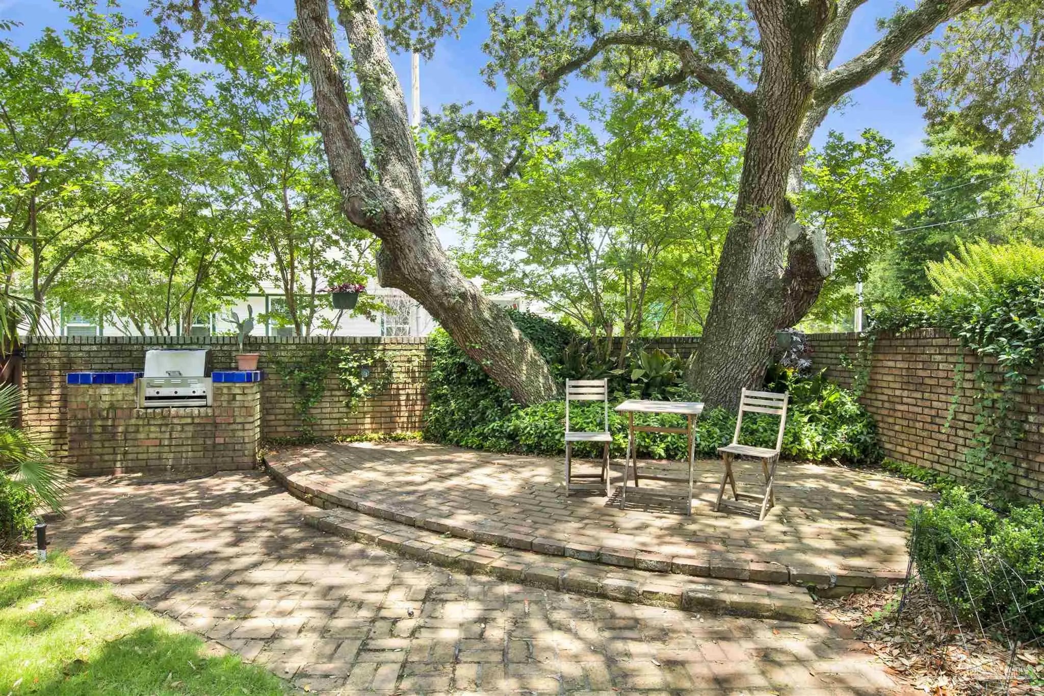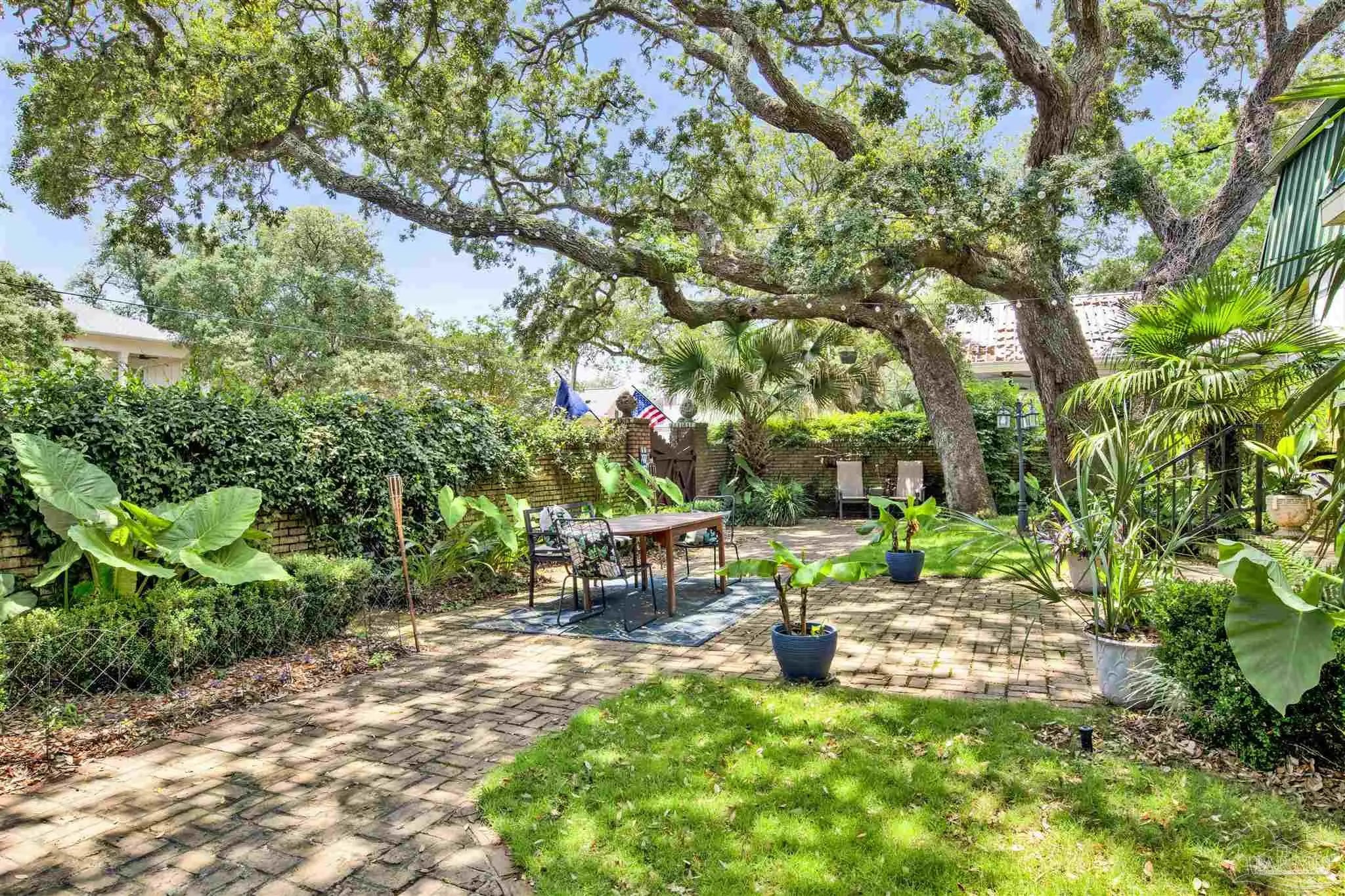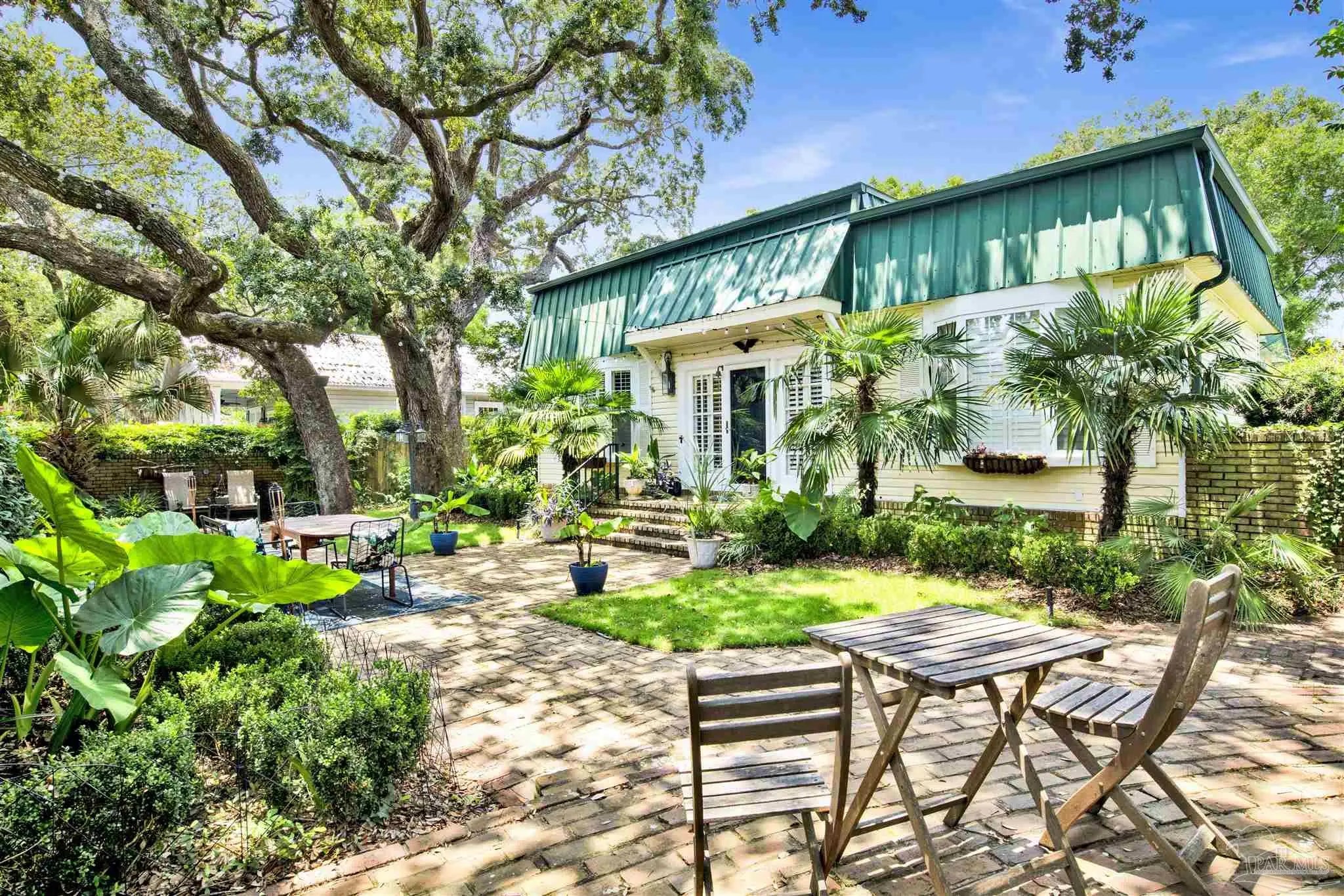 Welcome to this charming Bayshore bungalow, where timeless character meets modern comfort. Behind a private brick courtyard shaded by majestic oaks, you’ll find an inviting outdoor retreat perfect for entertaining or quiet evenings. Inside, a warm brick foyer opens to gleaming Brazilian hardwood floors and spacious living areas, including one with a cozy gas log fireplace. The office features built-in bookshelves, adding both functionality and a sophisticated touch, while modern wallpaper accents bring pops of personality throughout the home. The chef’s kitchen stands out with a Viking range, refrigerator, warming drawer, Bosch dishwasher, custom cabinetry, and a built-in espresso/coffee machine. A formal dining room just off the kitchen is perfect for hosting family and friends. The rear bedroom has been fully renovated with an updated bathroom and French doors leading to a private patio, an ideal spot for morning coffee or catching glimpses of the Blue Angels in practice. Additional features include impact windows, a one-car garage, carport, and detached storage building. Living on Bayshore Drive offers a unique blend of charm and convenience. Take daily walks along Bayshore, where water views provide a peaceful start or finish to your day. Hop on a golf cart and ride less than a mile to the Pensacola Country Club, or take advantage of nearby marinas and the Pensacola Yacht Club, only 1.5 miles away. This home can be sold furnished, making it truly move-in ready. With its flexible layout (including a private 1 bed / 1 bath suite) it also offers rare potential for two Airbnb rentals in one property. Located close to downtown, NAS Pensacola, hospitals, and just a short drive to Pensacola Beach (11 miles) and Perdido Key (14 miles), this home delivers the perfect balance of convenience and Gulf Coast lifestyle.