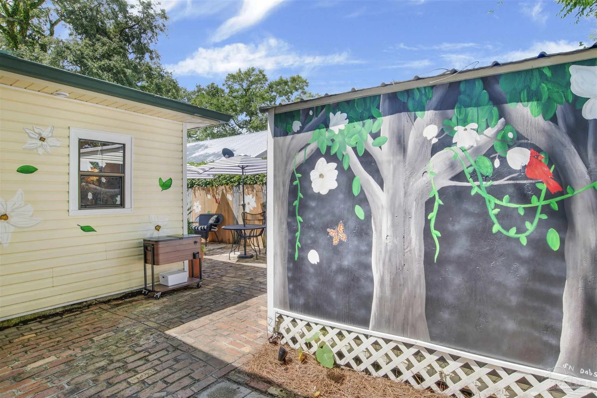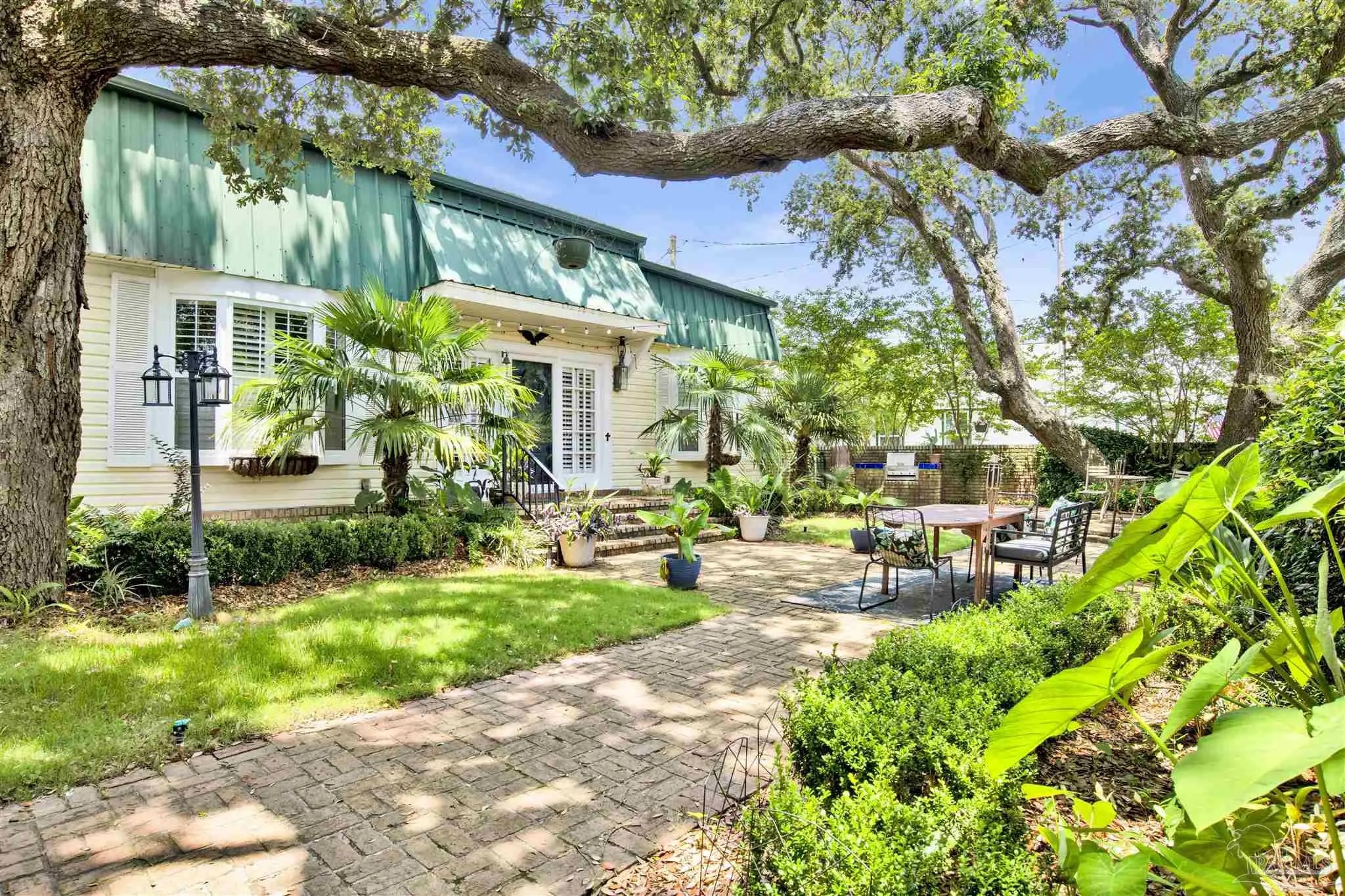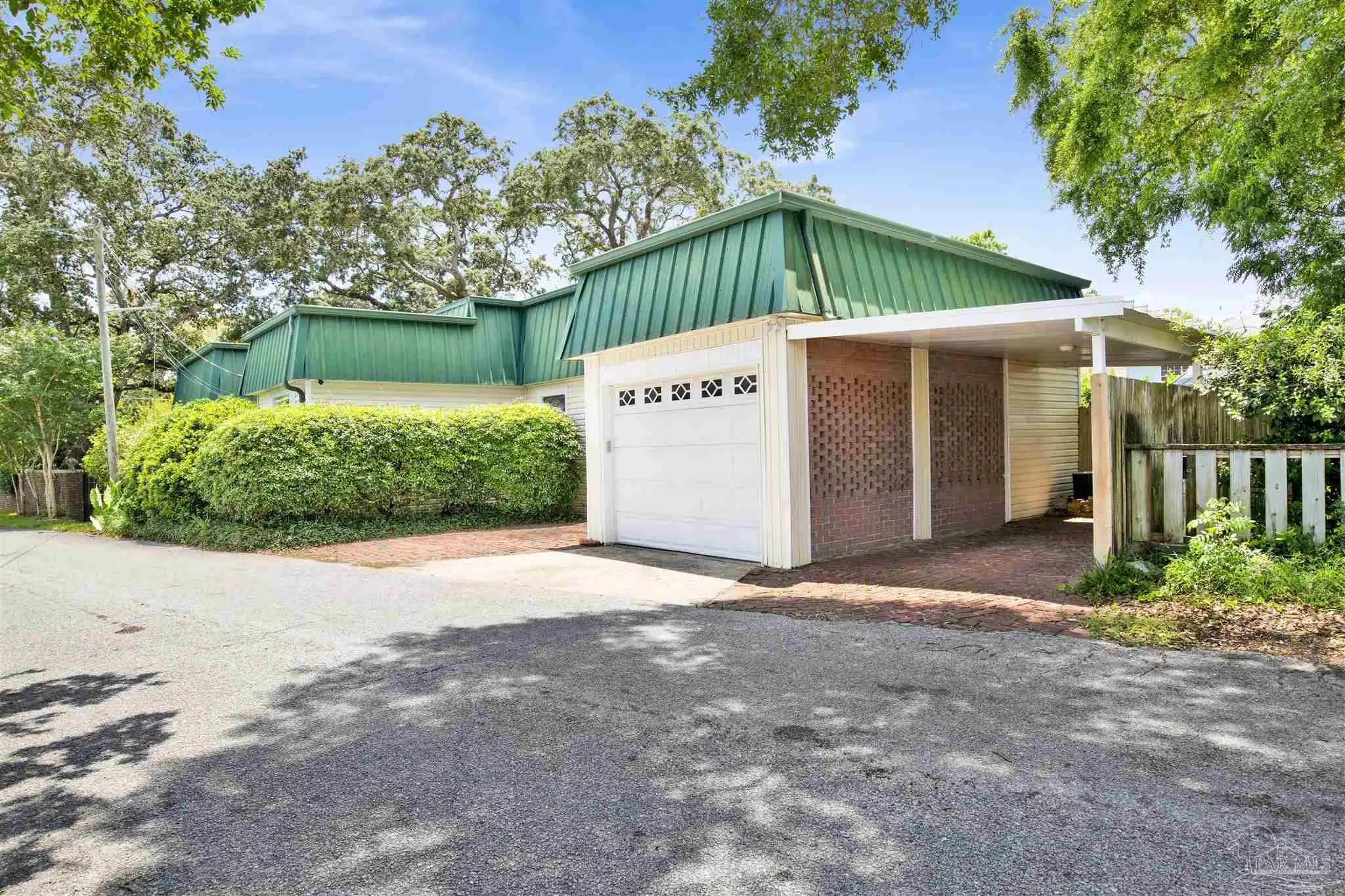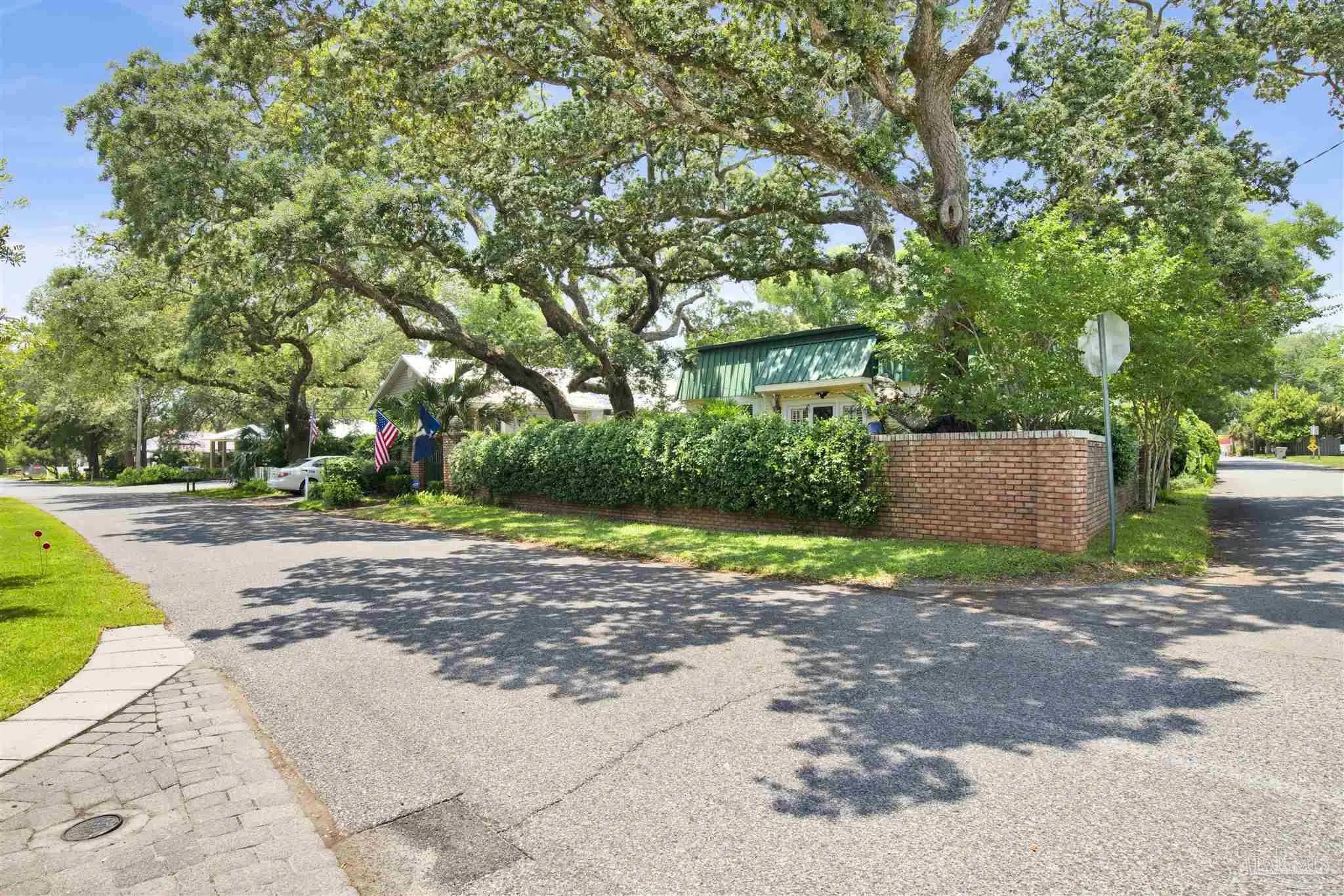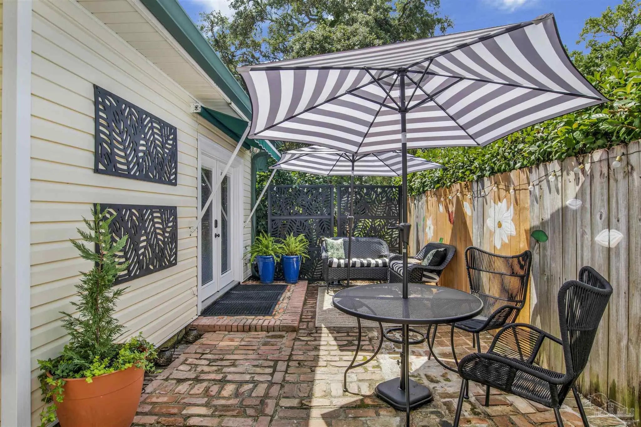 Welcome to this charming Bayshore bungalow, where timeless character meets modern comfort. Behind a private brick courtyard shaded by majestic oaks, you’ll find an inviting outdoor retreat perfect for entertaining or quiet evenings. Inside, a warm brick foyer opens to gleaming Brazilian hardwood floors and spacious living areas, including one with a cozy gas log fireplace. The office features built-in bookshelves, adding both functionality and a sophisticated touch, while modern wallpaper accents bring pops of personality throughout the home. The chef’s kitchen stands out with a Viking range, refrigerator, warming drawer, Bosch dishwasher, custom cabinetry, and a built-in espresso/coffee machine. A formal dining room just off the kitchen is perfect for hosting family and friends. The rear bedroom has been fully renovated with an updated bathroom and French doors leading to a private patio, an ideal spot for morning coffee or catching glimpses of the Blue Angels in practice. Additional features include impact windows, a one-car garage, carport, and detached storage building. Living on Bayshore Drive offers a unique blend of charm and convenience. Take daily walks along Bayshore, where water views provide a peaceful start or finish to your day. Hop on a golf cart and ride less than a mile to the Pensacola Country Club, or take advantage of nearby marinas and the Pensacola Yacht Club, only 1.5 miles away. This home can be sold furnished, making it truly move-in ready. With its flexible layout (including a private 1 bed / 1 bath suite) it also offers rare potential for two Airbnb rentals in one property. Located close to downtown, NAS Pensacola, hospitals, and just a short drive to Pensacola Beach (11 miles) and Perdido Key (14 miles), this home delivers the perfect balance of convenience and Gulf Coast lifestyle.