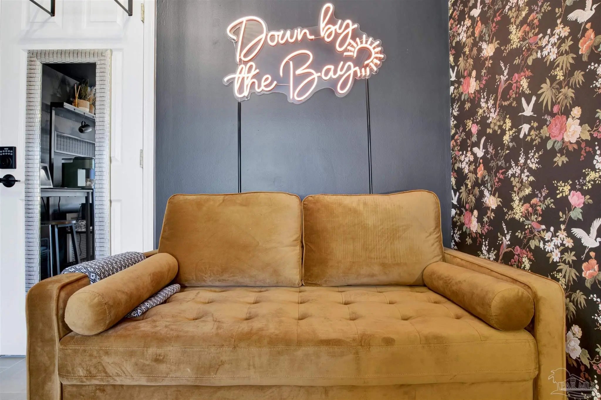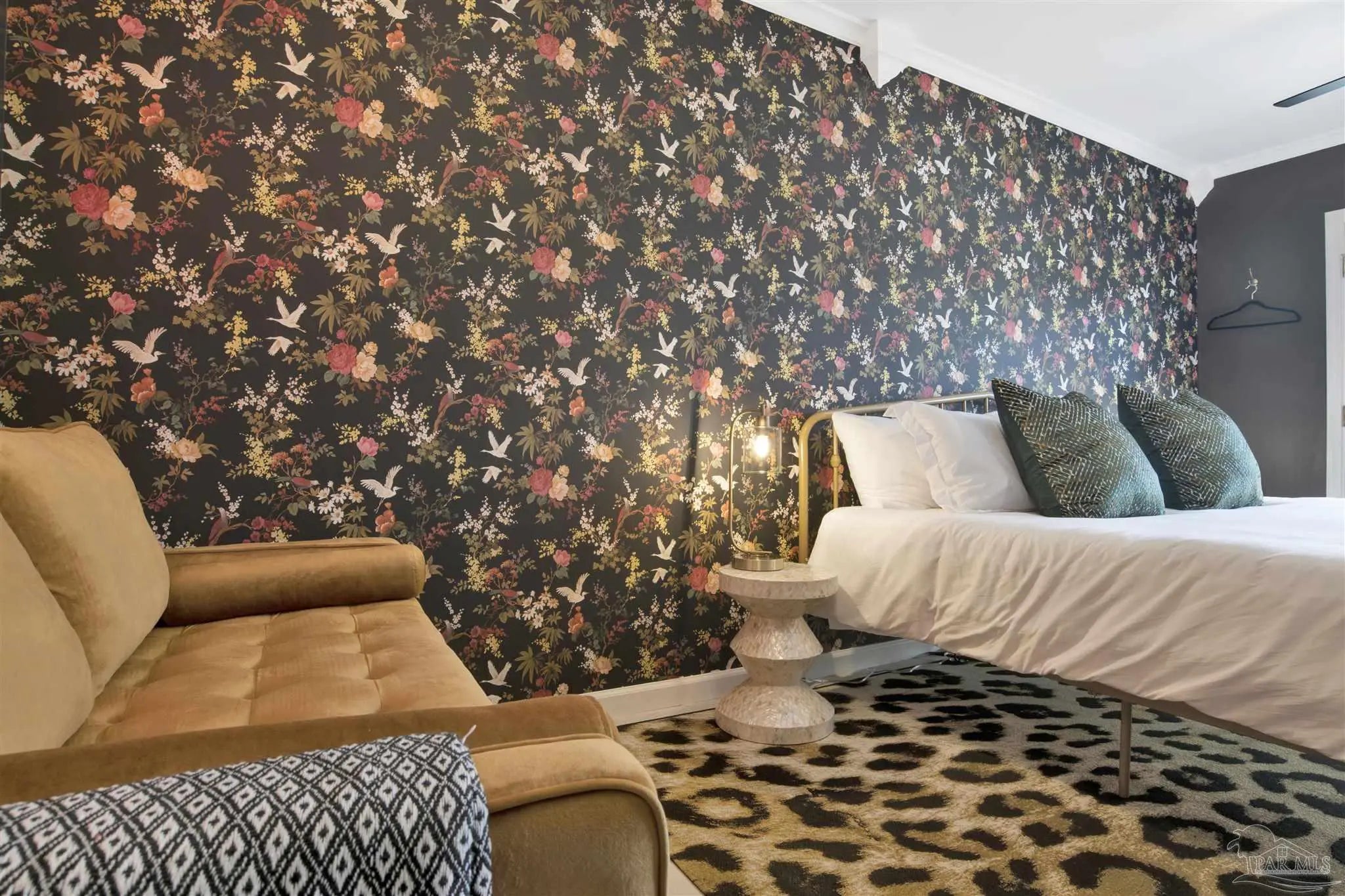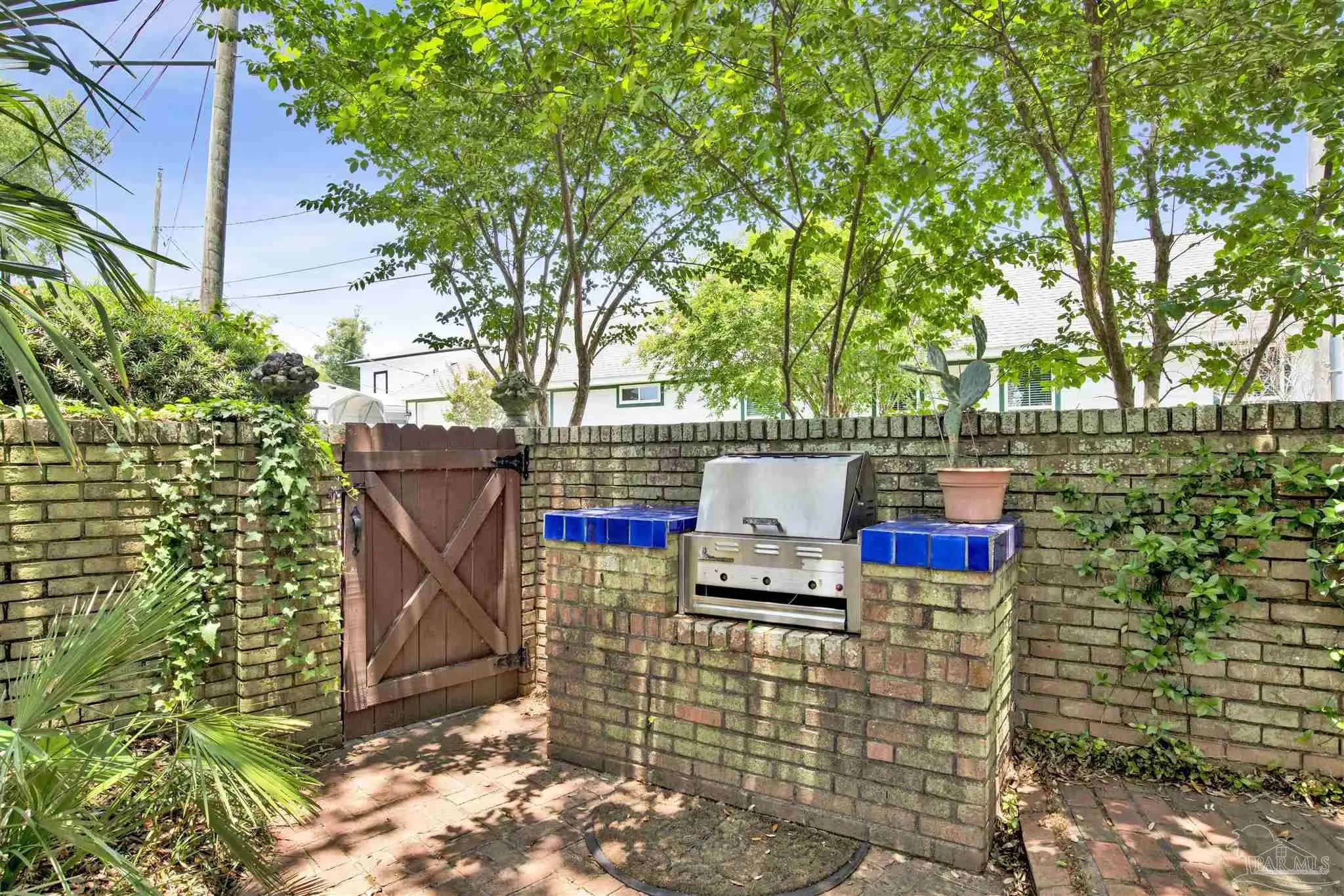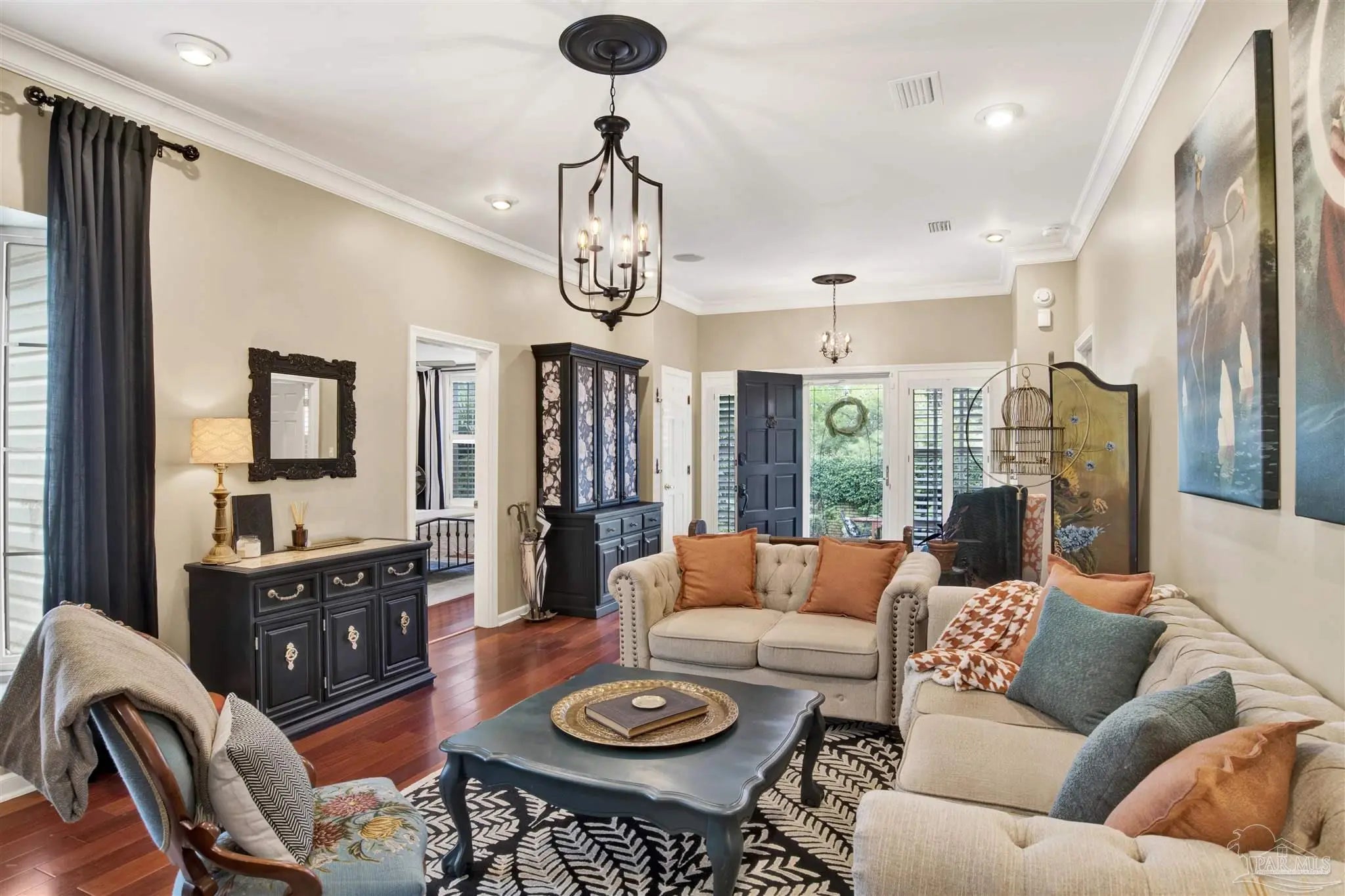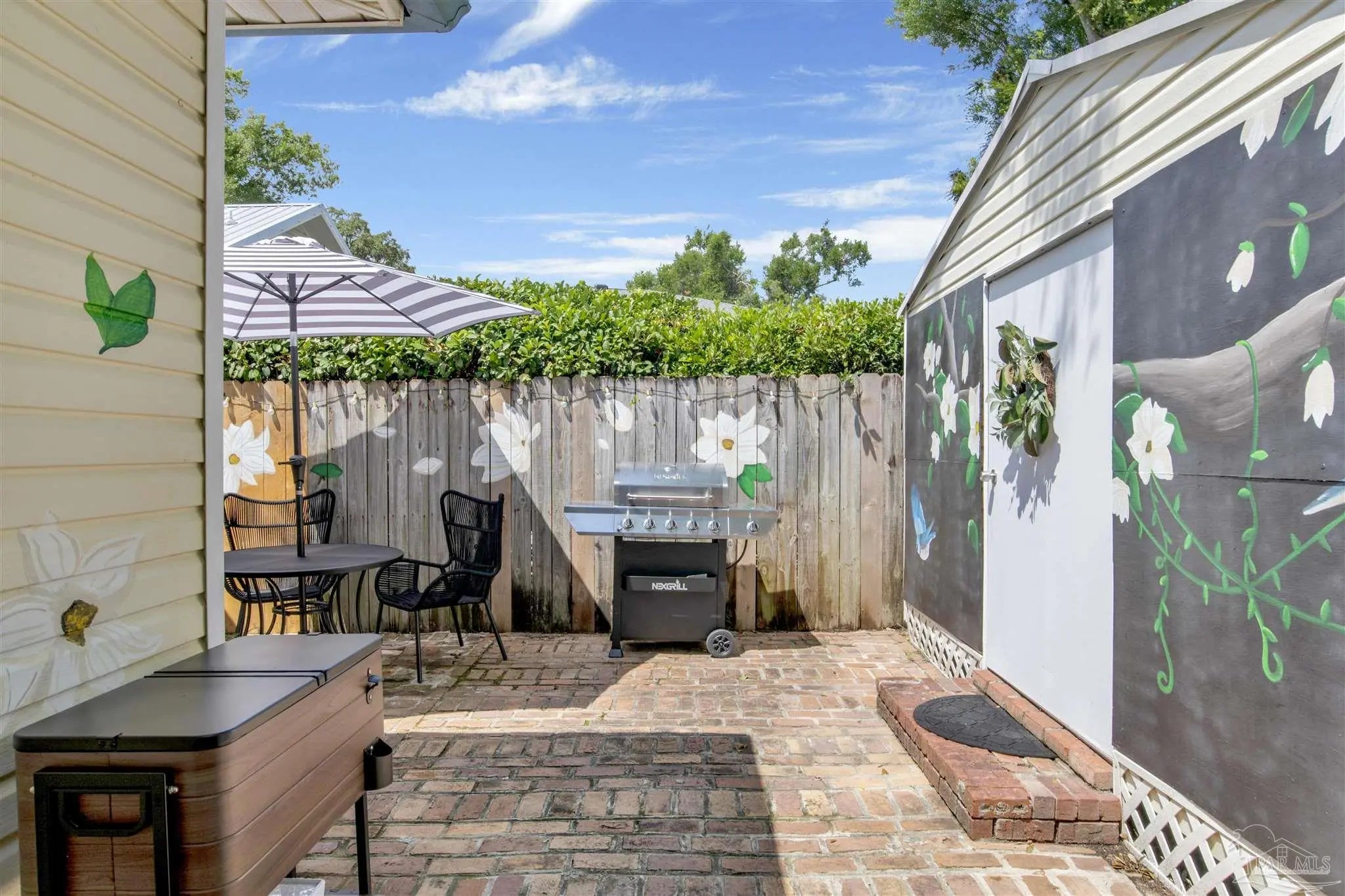 Welcome to this charming Bayshore bungalow, where timeless character meets modern comfort. Behind a private brick courtyard shaded by majestic oaks, you’ll find an inviting outdoor retreat perfect for entertaining or quiet evenings. Inside, a warm brick foyer opens to gleaming Brazilian hardwood floors and spacious living areas, including one with a cozy gas log fireplace. The office features built-in bookshelves, adding both functionality and a sophisticated touch, while modern wallpaper accents bring pops of personality throughout the home. The chef’s kitchen stands out with a Viking range, refrigerator, warming drawer, Bosch dishwasher, custom cabinetry, and a built-in espresso/coffee machine. A formal dining room just off the kitchen is perfect for hosting family and friends. The rear bedroom has been fully renovated with an updated bathroom and French doors leading to a private patio, an ideal spot for morning coffee or catching glimpses of the Blue Angels in practice. Additional features include impact windows, a one-car garage, carport, and detached storage building. Living on Bayshore Drive offers a unique blend of charm and convenience. Take daily walks along Bayshore, where water views provide a peaceful start or finish to your day. Hop on a golf cart and ride less than a mile to the Pensacola Country Club, or take advantage of nearby marinas and the Pensacola Yacht Club, only 1.5 miles away. This home can be sold furnished, making it truly move-in ready. With its flexible layout (including a private 1 bed / 1 bath suite) it also offers rare potential for two Airbnb rentals in one property. Located close to downtown, NAS Pensacola, hospitals, and just a short drive to Pensacola Beach (11 miles) and Perdido Key (14 miles), this home delivers the perfect balance of convenience and Gulf Coast lifestyle.