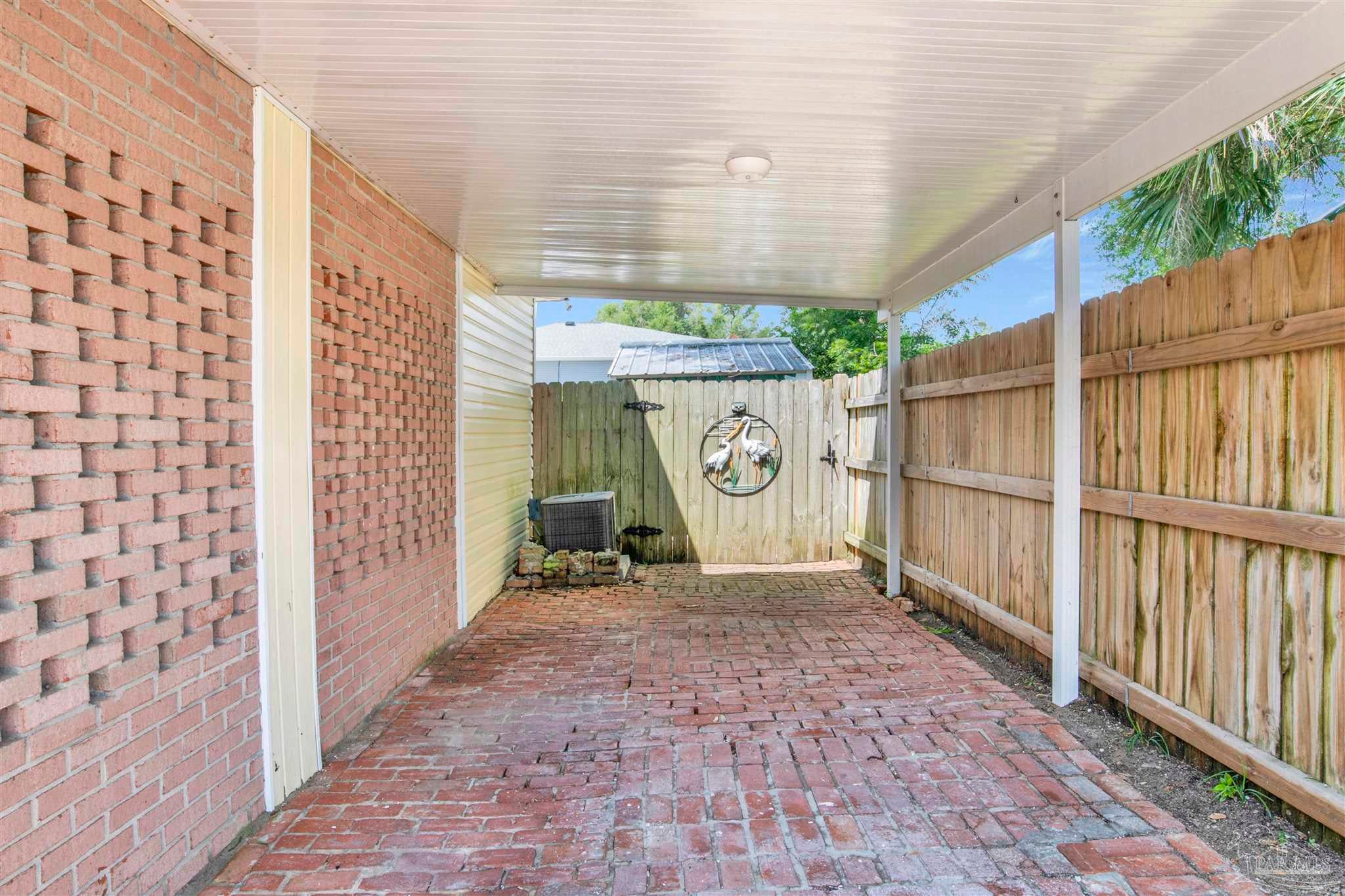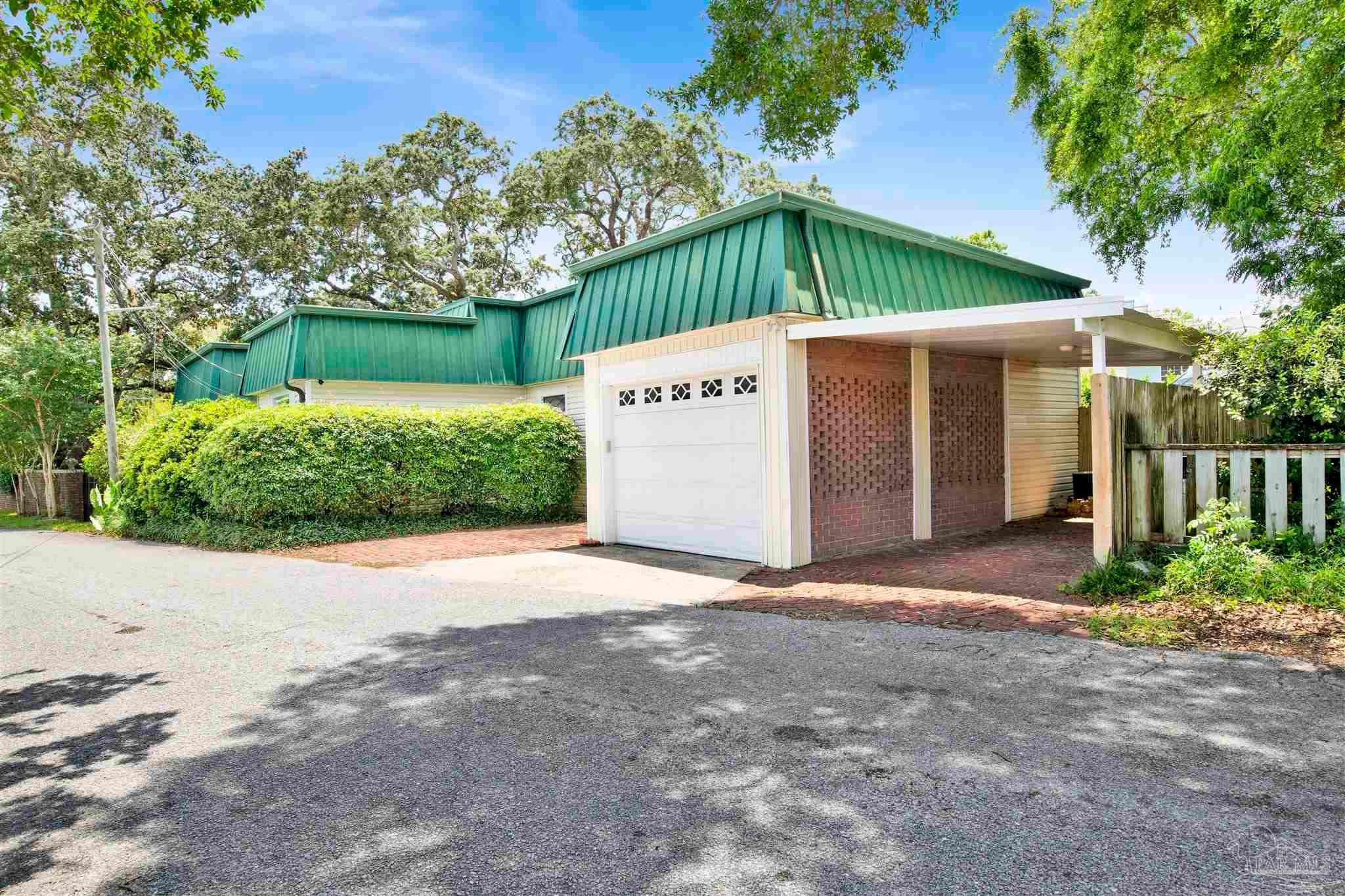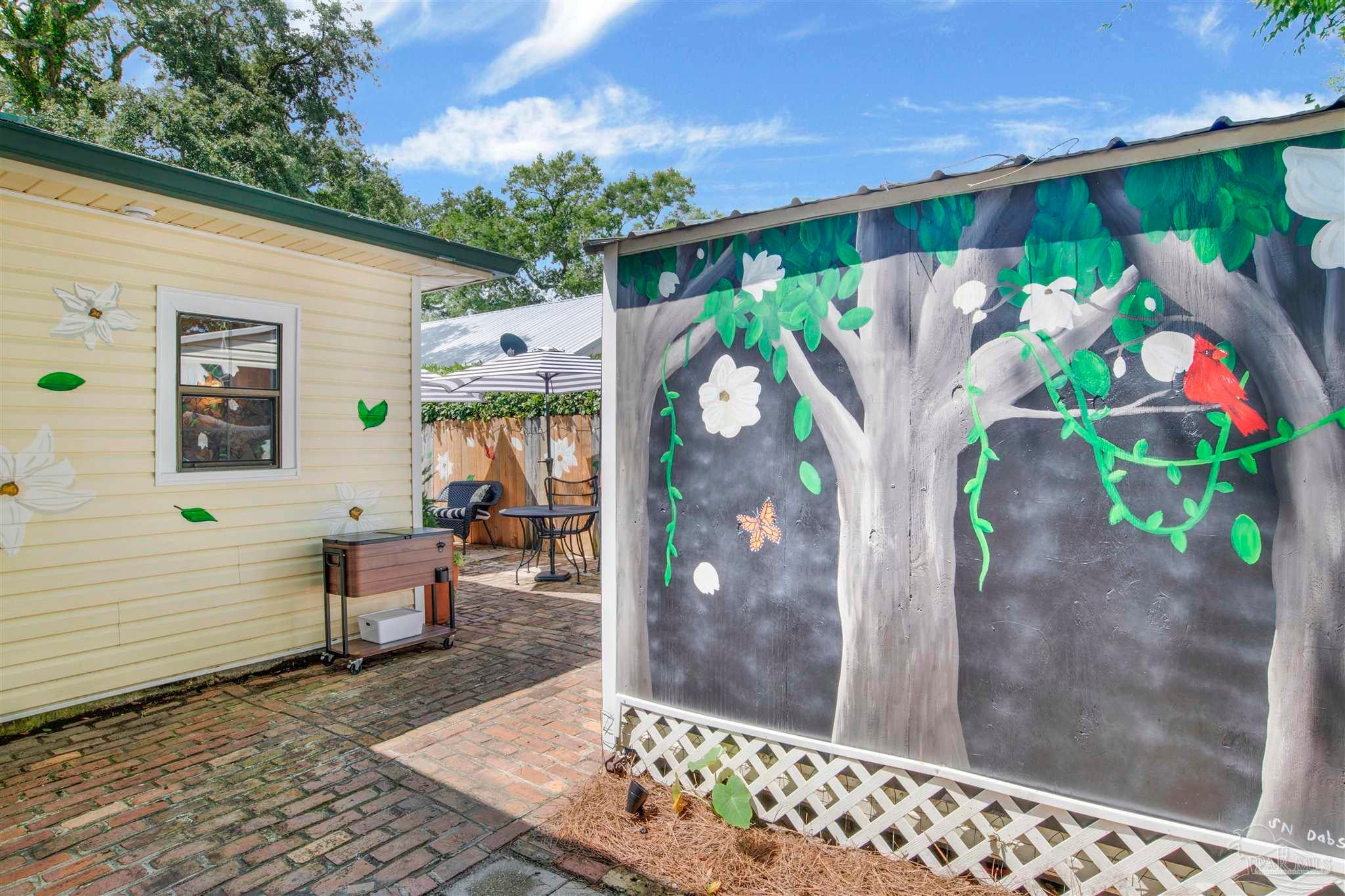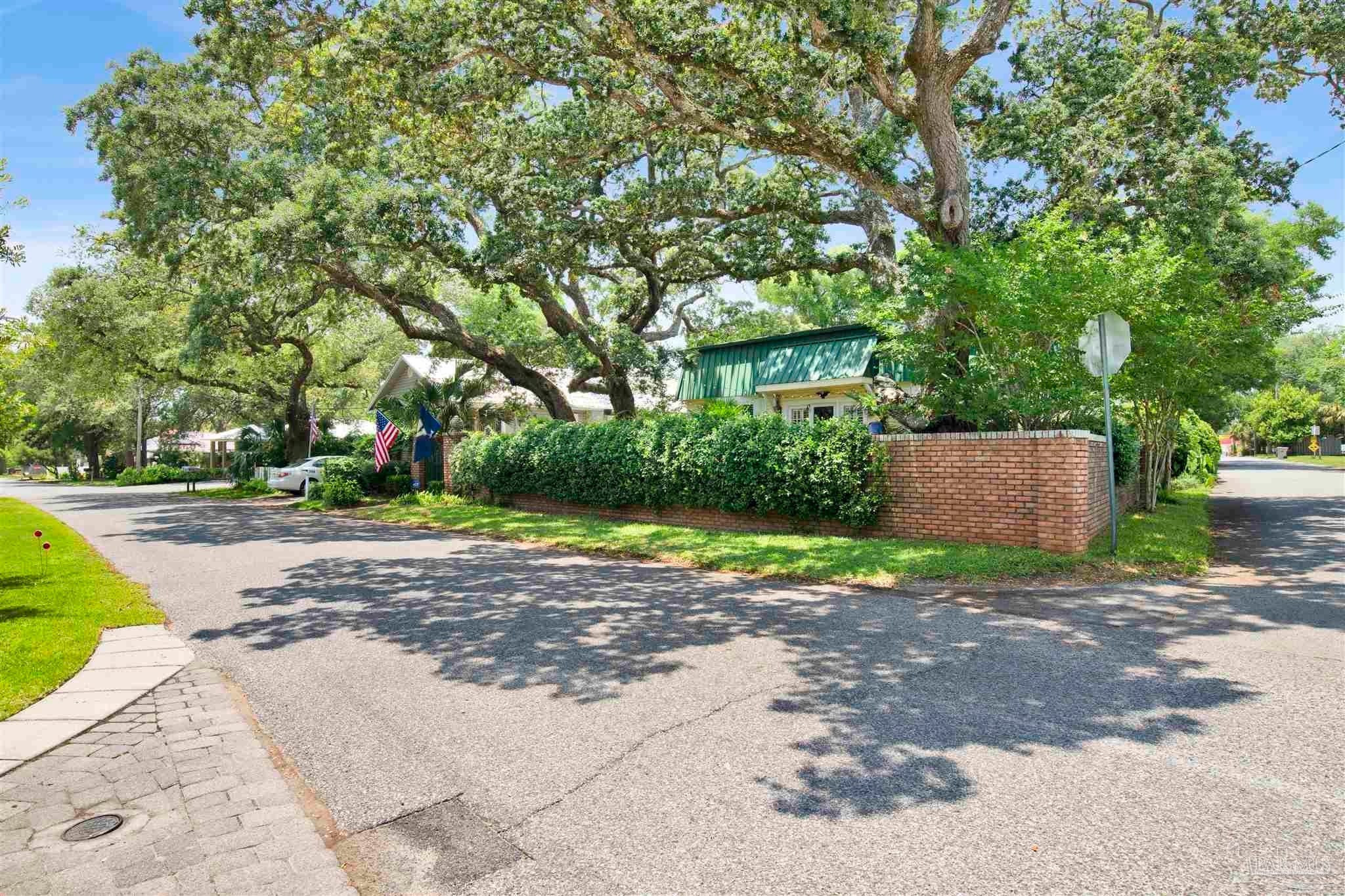 Welcome to this charming Bayshore bungalow, where timeless character meets modern comfort. Behind a private brick courtyard shaded by majestic oaks, you’ll find an inviting outdoor retreat perfect for entertaining or quiet evenings. Inside, a warm brick foyer opens to gleaming Brazilian hardwood floors and spacious living areas, including one with a cozy gas log fireplace. The office features built-in bookshelves, adding both functionality and a sophisticated touch, while modern wallpaper accents bring pops of personality throughout the home. The chef’s kitchen stands out with a Viking range, refrigerator, warming drawer, Bosch dishwasher, custom cabinetry, and a built-in espresso/coffee machine. A formal dining room just off the kitchen is perfect for hosting family and friends. The rear bedroom has been fully renovated with an updated bathroom and French doors leading to a private patio, an ideal spot for morning coffee or catching glimpses of the Blue Angels in practice. Additional features include impact windows, a one-car garage, carport, and detached storage building. Living on Bayshore Drive offers a unique blend of charm and convenience. Take daily walks along Bayshore, where water views provide a peaceful start or finish to your day. Hop on a golf cart and ride less than a mile to the Pensacola Country Club, or take advantage of nearby marinas and the Pensacola Yacht Club, only 1.5 miles away. This home can be sold furnished, making it truly move-in ready. With its flexible layout (including a private 1 bed / 1 bath suite) it also offers rare potential for two Airbnb rentals in one property. Located close to downtown, NAS Pensacola, hospitals, and just a short drive to Pensacola Beach (11 miles) and Perdido Key (14 miles), this home delivers the perfect balance of convenience and Gulf Coast lifestyle.