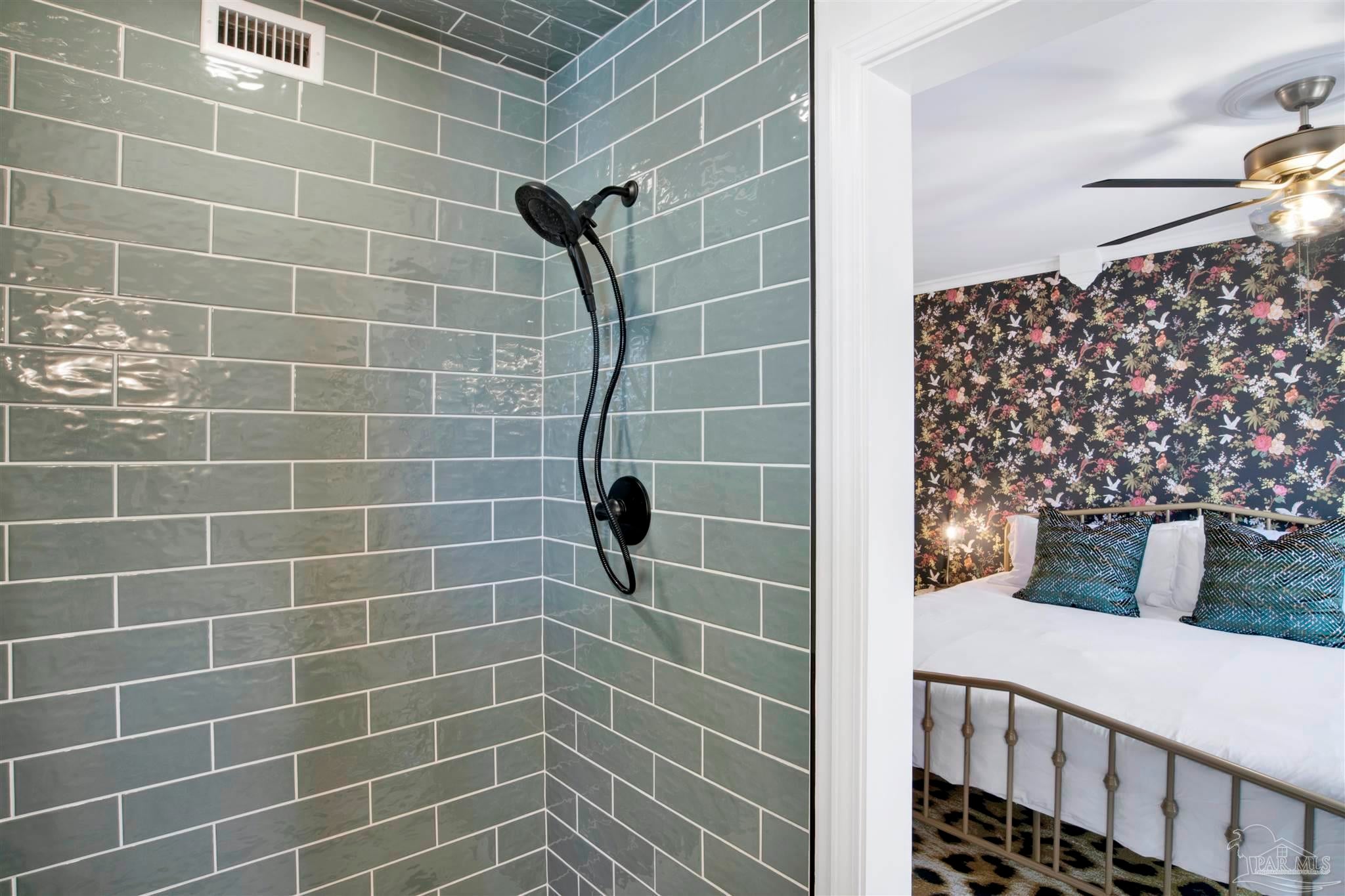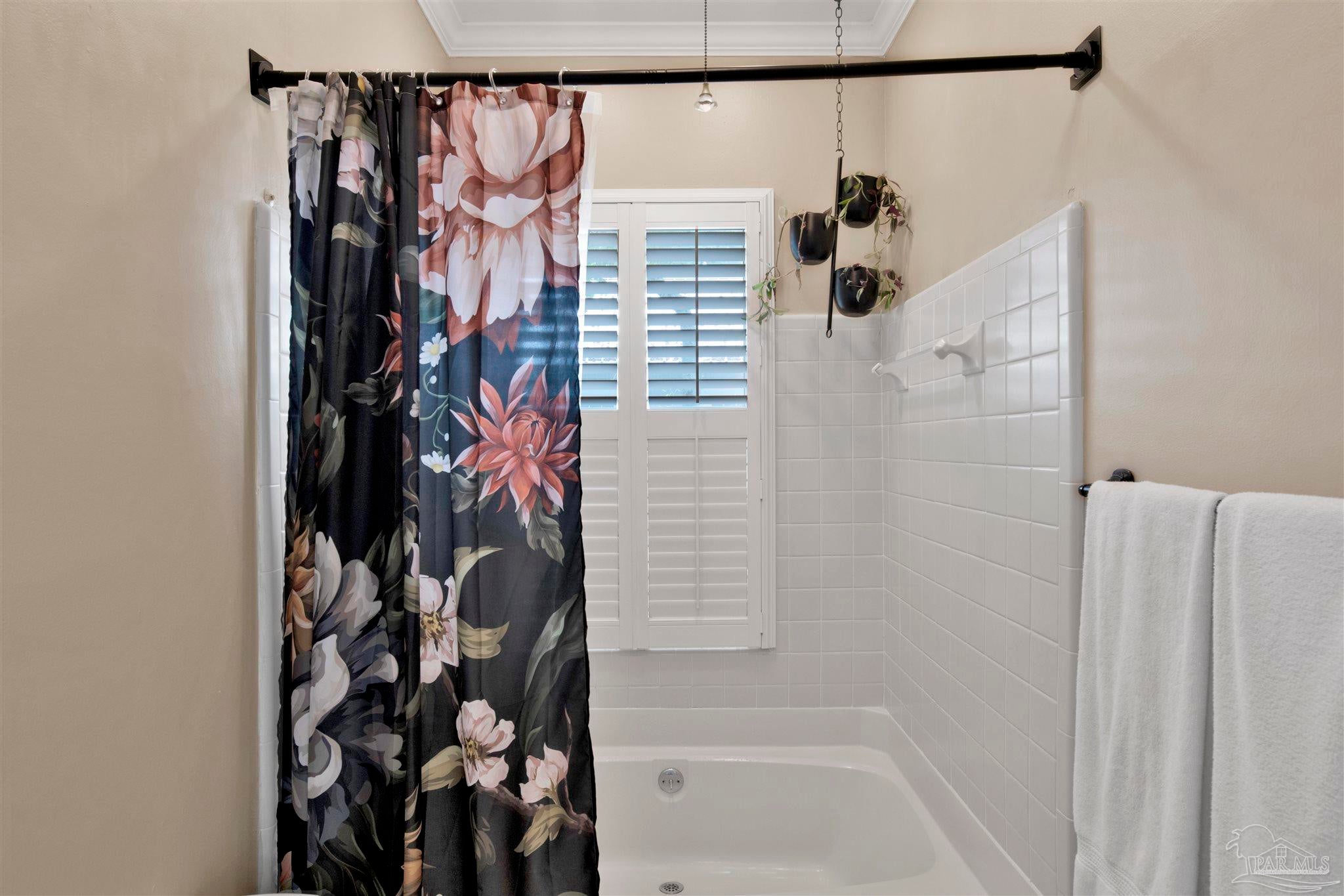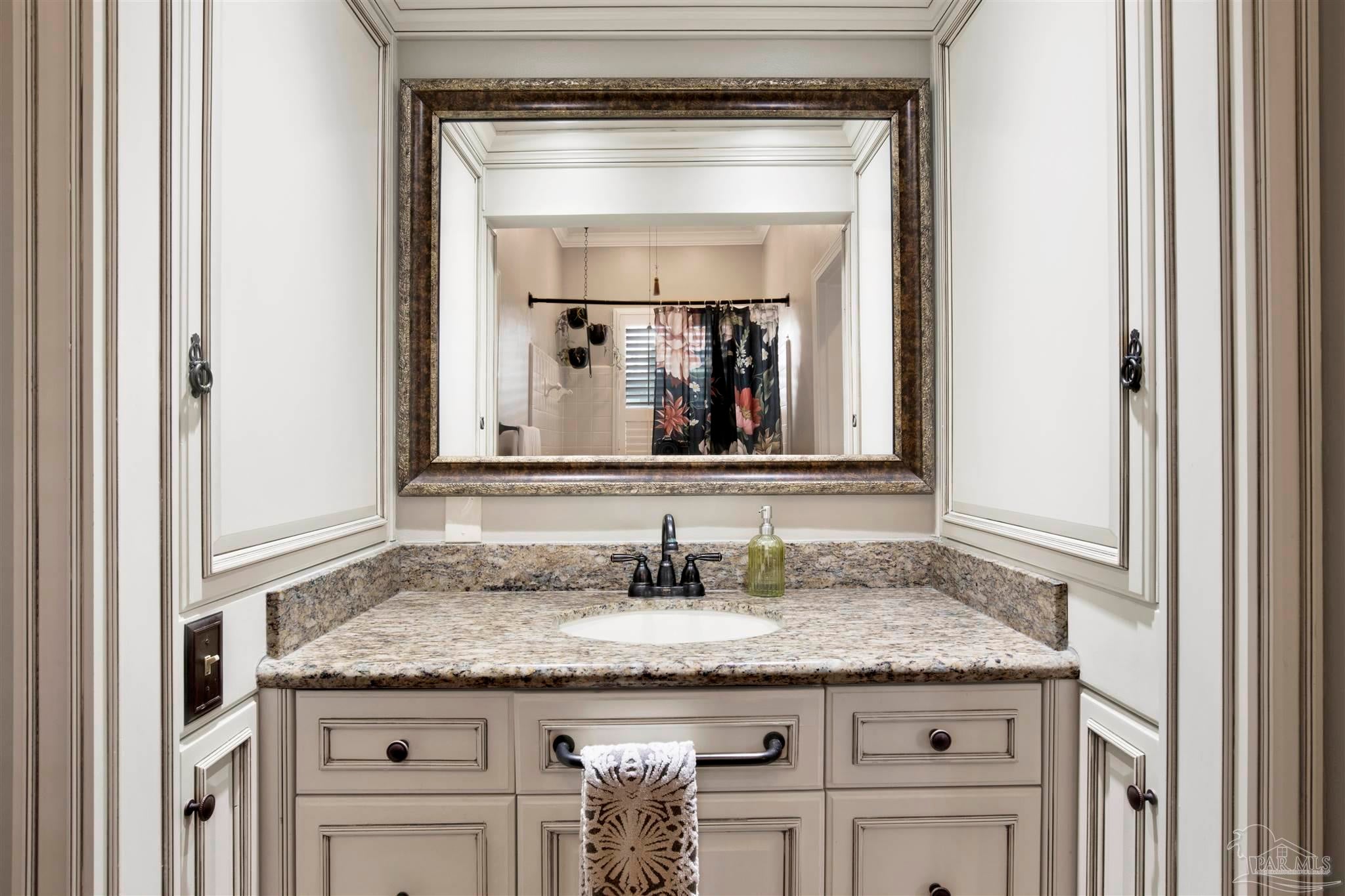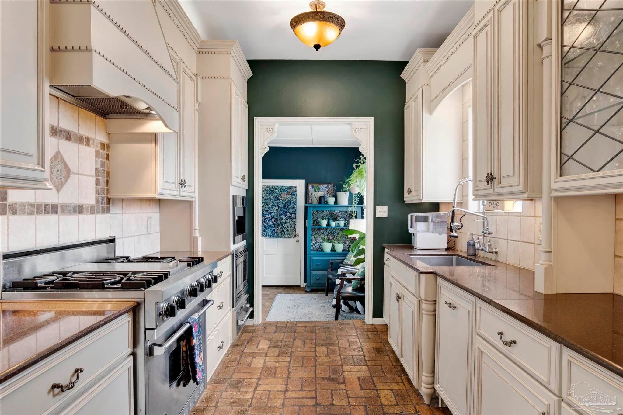 Welcome to this charming Bayshore bungalow, where timeless character meets modern comfort. Behind a private brick courtyard shaded by majestic oaks, you’ll find an inviting outdoor retreat perfect for entertaining or quiet evenings. Inside, a warm brick foyer opens to gleaming Brazilian hardwood floors and spacious living areas, including one with a cozy gas log fireplace. The office features built-in bookshelves, adding both functionality and a sophisticated touch, while modern wallpaper accents bring pops of personality throughout the home. The chef’s kitchen stands out with a Viking range, refrigerator, warming drawer, Bosch dishwasher, custom cabinetry, and a built-in espresso/coffee machine. A formal dining room just off the kitchen is perfect for hosting family and friends. The rear bedroom has been fully renovated with an updated bathroom and French doors leading to a private patio, an ideal spot for morning coffee or catching glimpses of the Blue Angels in practice. Additional features include impact windows, a one-car garage, carport, and detached storage building. Living on Bayshore Drive offers a unique blend of charm and convenience. Take daily walks along Bayshore, where water views provide a peaceful start or finish to your day. Hop on a golf cart and ride less than a mile to the Pensacola Country Club, or take advantage of nearby marinas and the Pensacola Yacht Club, only 1.5 miles away. This home can be sold furnished, making it truly move-in ready. With its flexible layout (including a private 1 bed / 1 bath suite) it also offers rare potential for two Airbnb rentals in one property. Located close to downtown, NAS Pensacola, hospitals, and just a short drive to Pensacola Beach (11 miles) and Perdido Key (14 miles), this home delivers the perfect balance of convenience and Gulf Coast lifestyle.