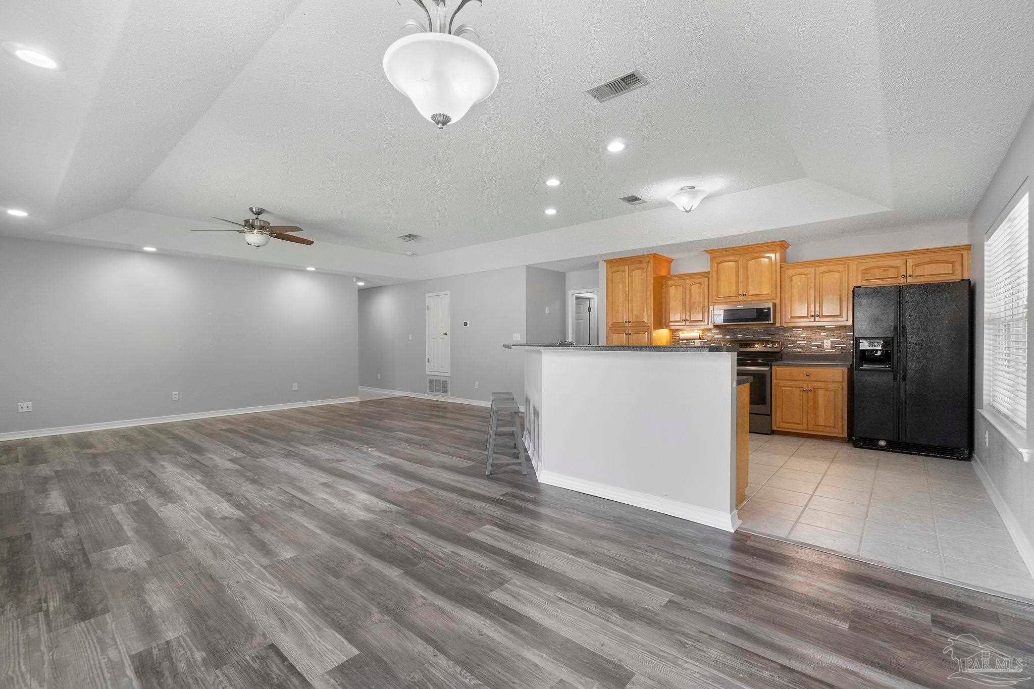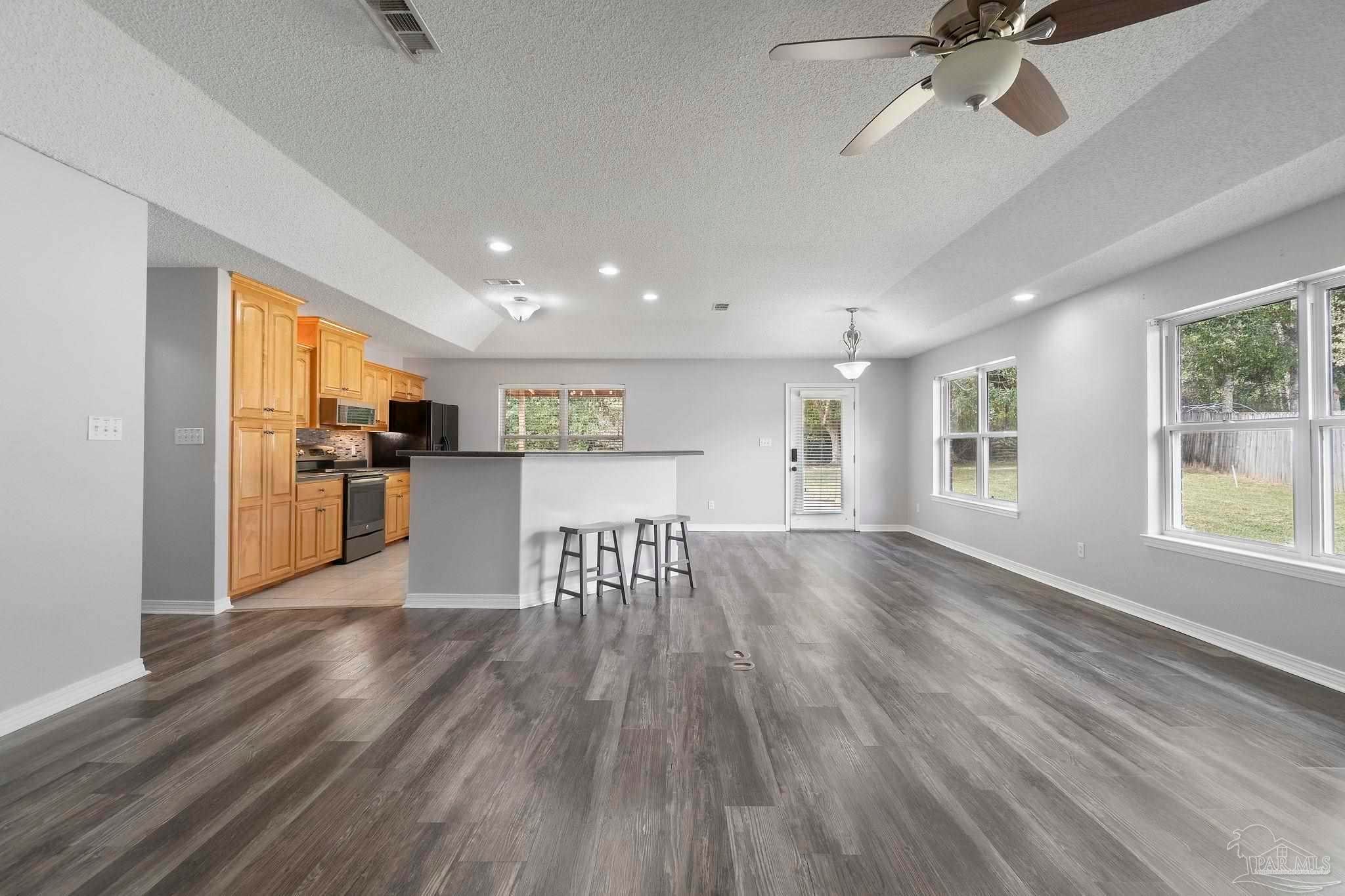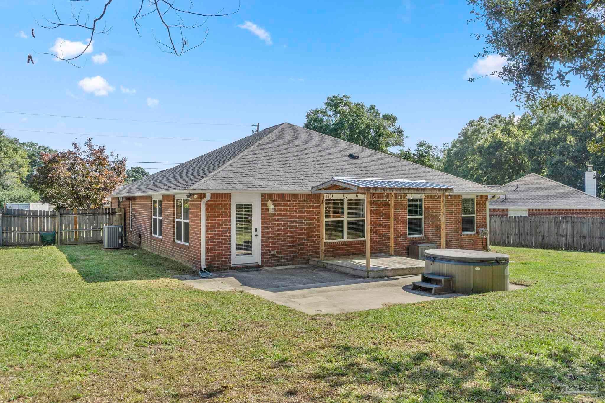 Step inside and be greeted by a great, open living space designed for both relaxation & entertaining. The spacious living room flows seamlessly into the dining area and kitchen, creating the perfect layout for gatherings with family & friends. Features include: trey ceiling in the living room, recessed lighting, tiled kitchen & bathrooms, vinyl plank flooring in the living areas and primary bedroom, 2 car garage, whole house gas Generac generator, sprinkler system, covered patio, hot tub, storage shed and fully fenced yard. Publix, Walmart and many eating places are nearby! This move in ready home offers quick access to everything Pensacola has to offer