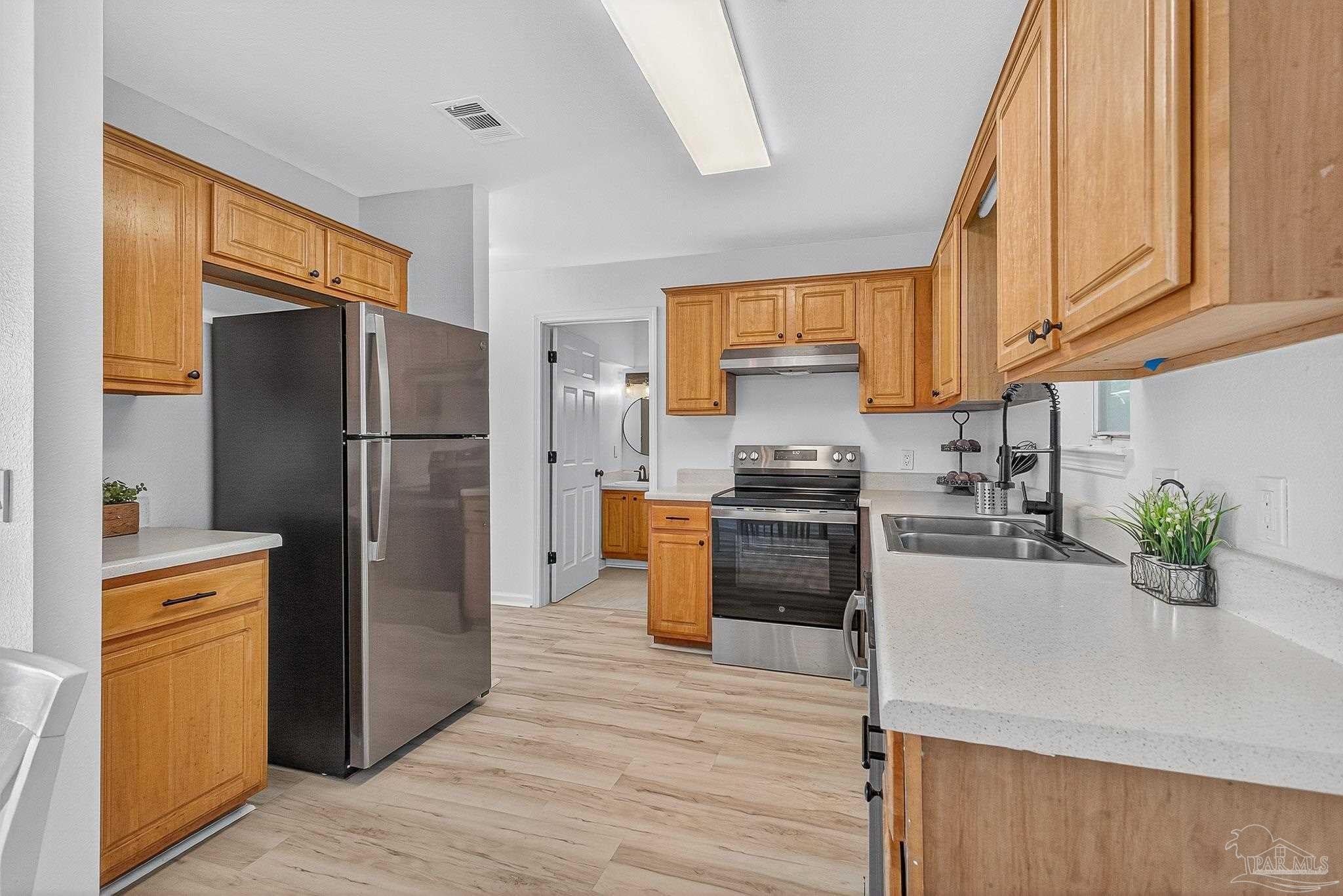 Welcome to this stunning two-story home located in the vibrant city of Pensacola, FL. This property boasts three spacious bedrooms and two full bathrooms, providing ample space for comfortable living. The home has been recently updated with fresh paint and a new roof, ensuring a modern and well-maintained appearance. Inside, you'll find luxury vinyl plank flooring throughout, adding a touch of elegance to the home. The kitchen is equipped with brand-new stainless steel appliances, ready for all your culinary adventures. For your convenience, the home also features washer/dryer hook-ups and a new central HVAC system, ensuring year-round comfort. This home is a perfect blend of style, comfort, and convenience, waiting for you to make it your own.