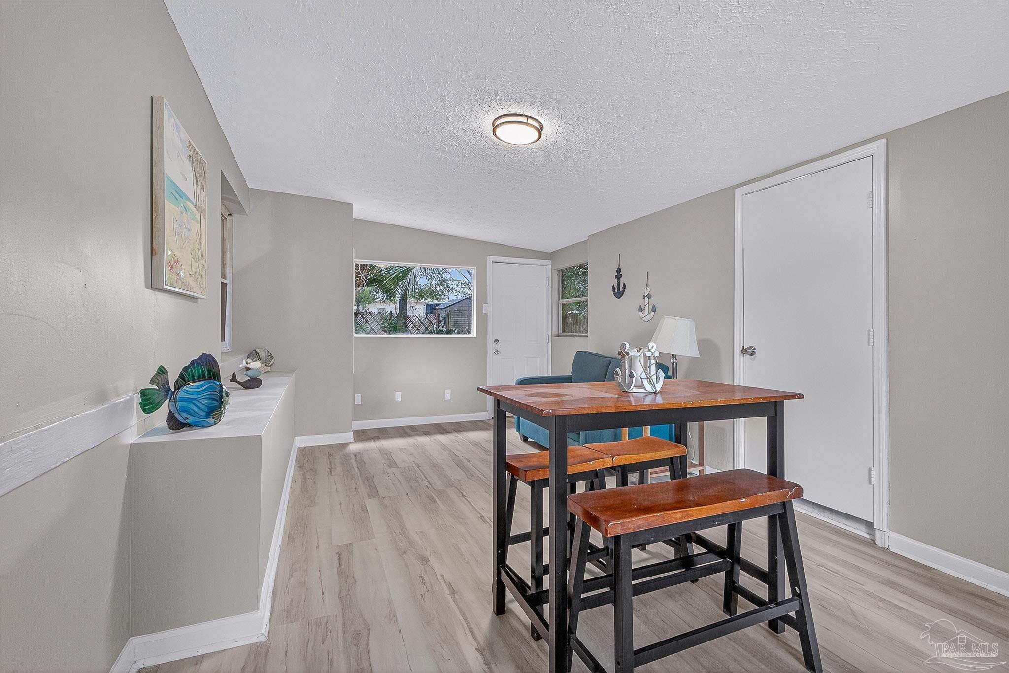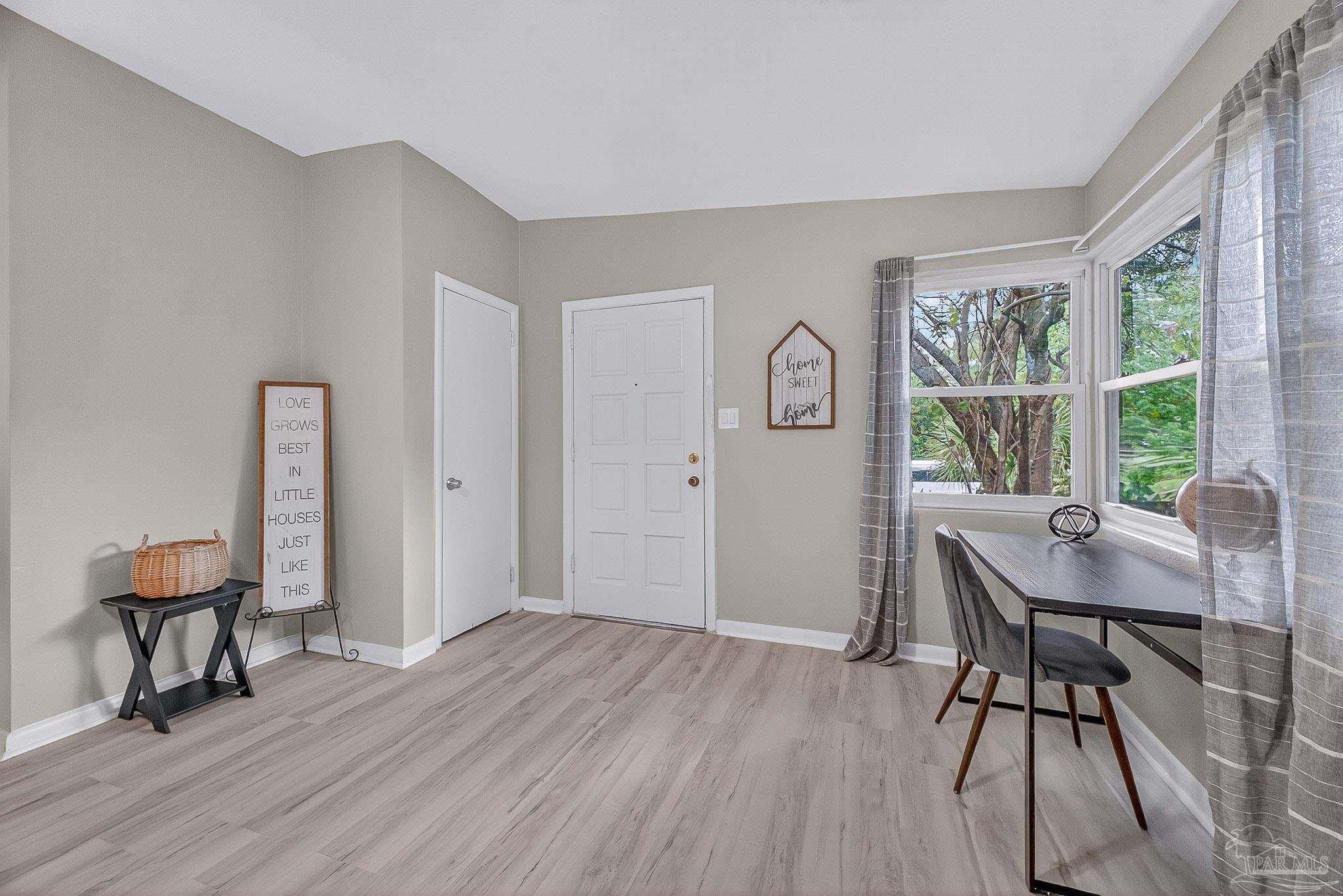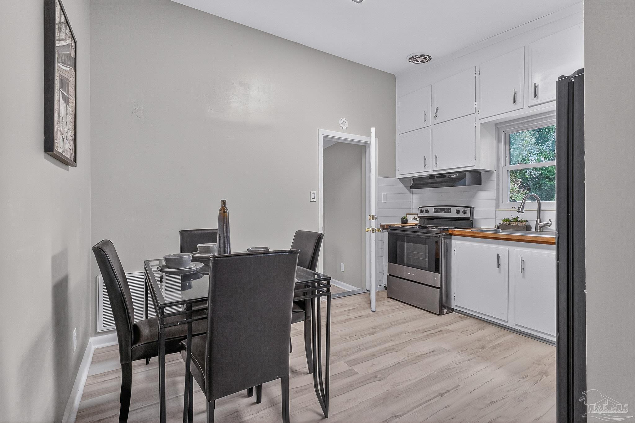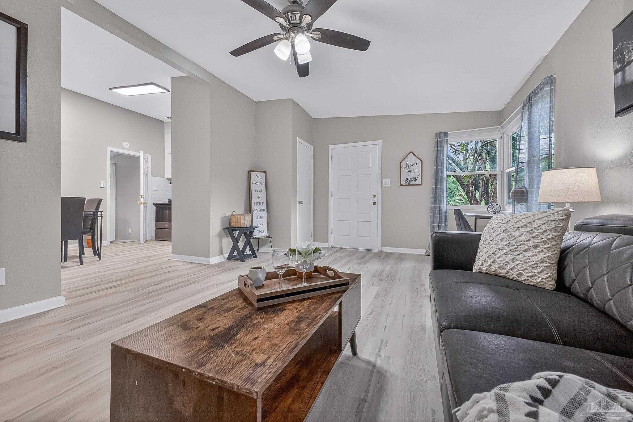 Welcome to this charming 3-bedroom, 1-bathroom home located in the vibrant city of Pensacola, FL. This home boasts a fresh coat of paint and new vinyl floors, creating a clean and modern atmosphere. The kitchen is a cook's dream with its butcher block countertops, offering ample space for meal preparation. The home also features washer/dryer hook-ups for your convenience. The formal dining room is perfect for hosting dinner parties or enjoying a meal with loved ones. Step outside to find a spacious front yard and a fenced-in back yard, providing plenty of room for outdoor activities. This home is a perfect blend of comfort and functionality. Come and see for yourself!