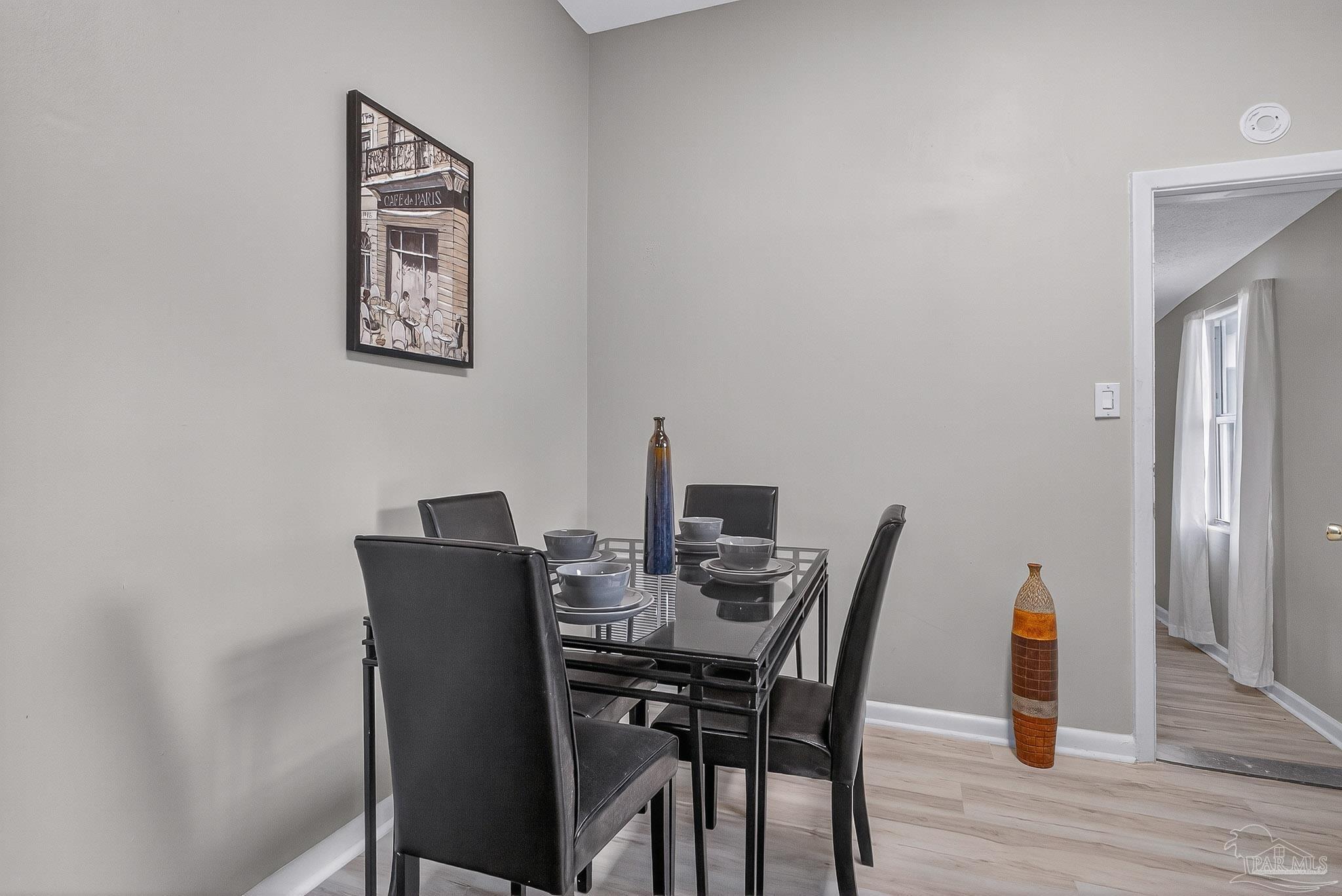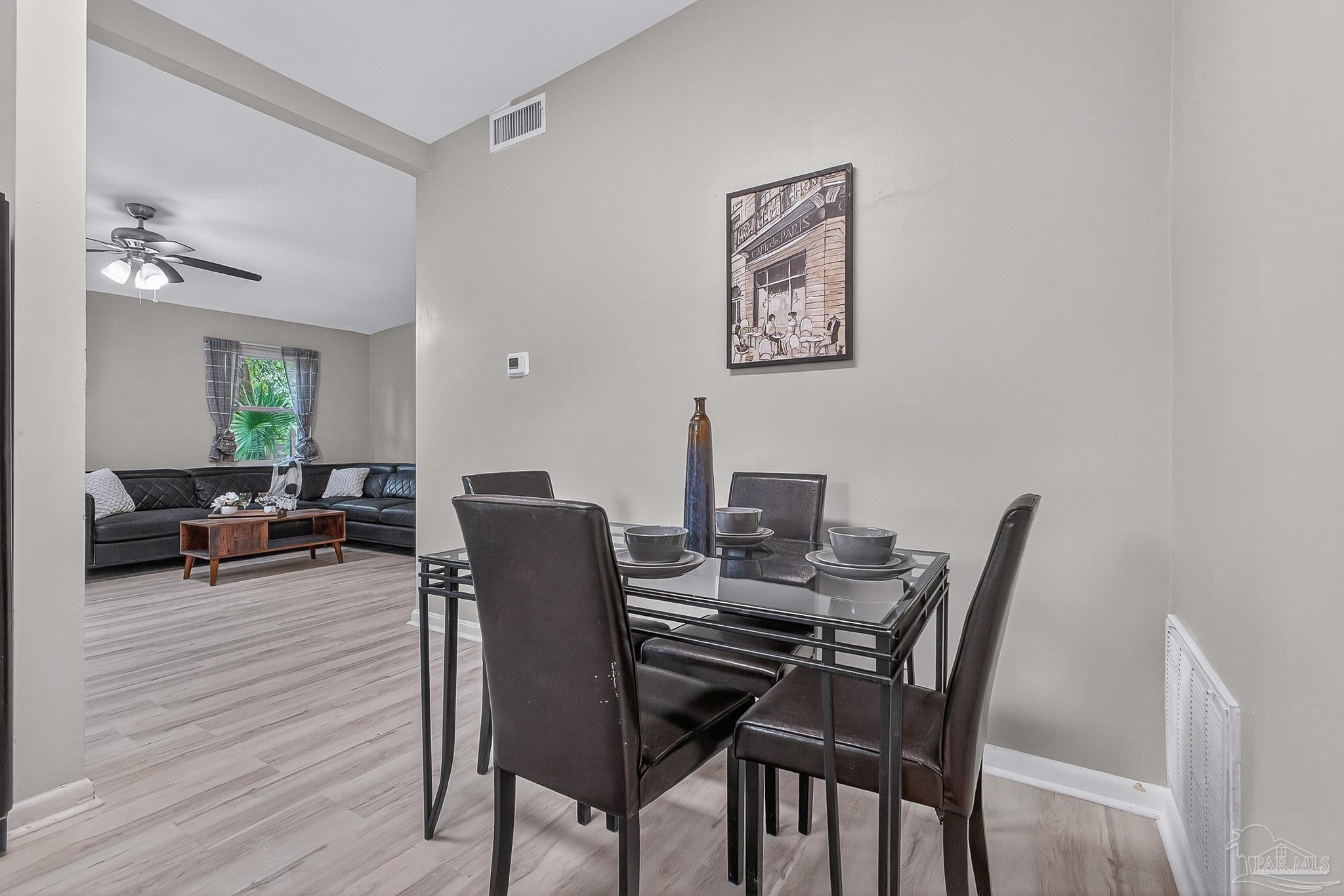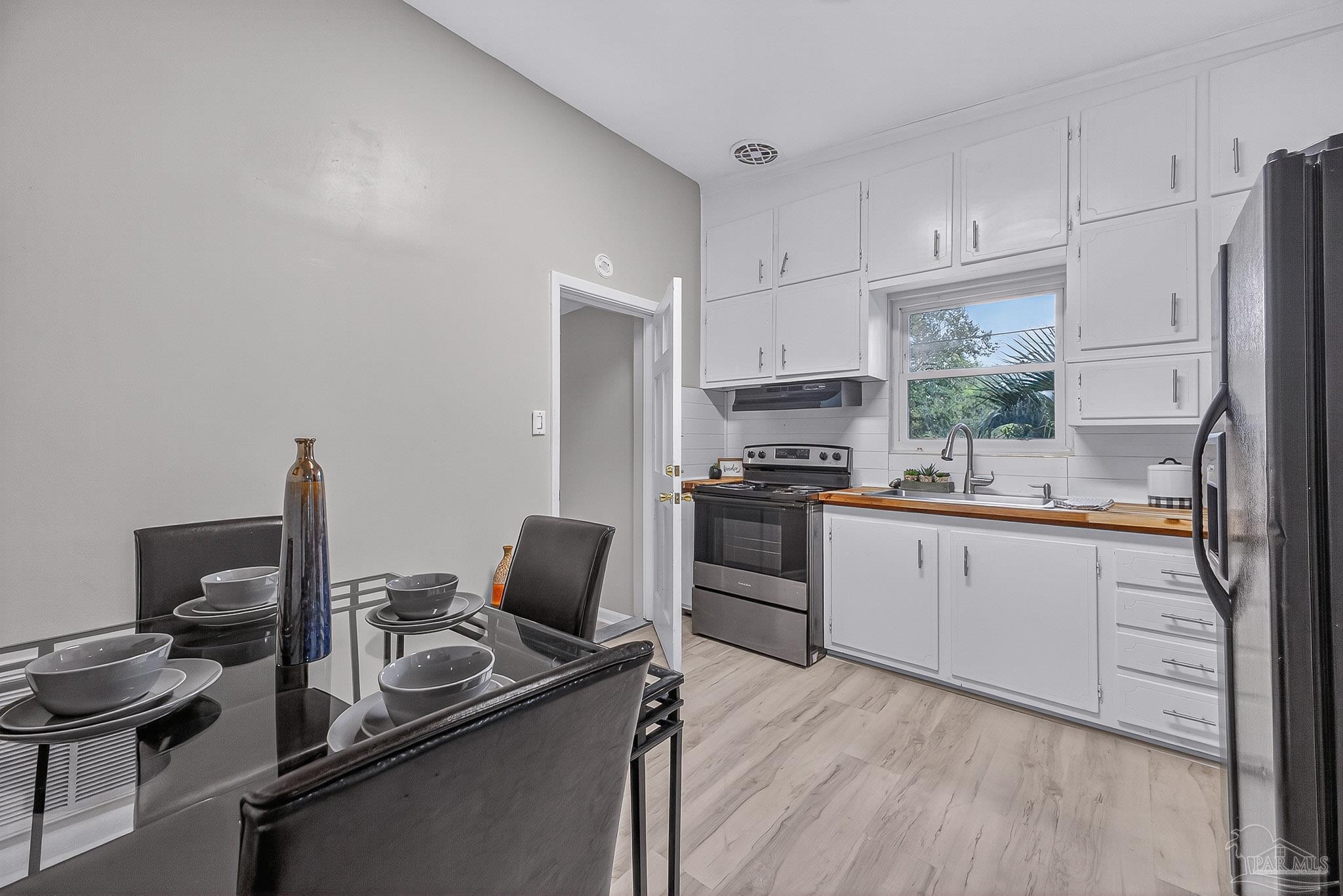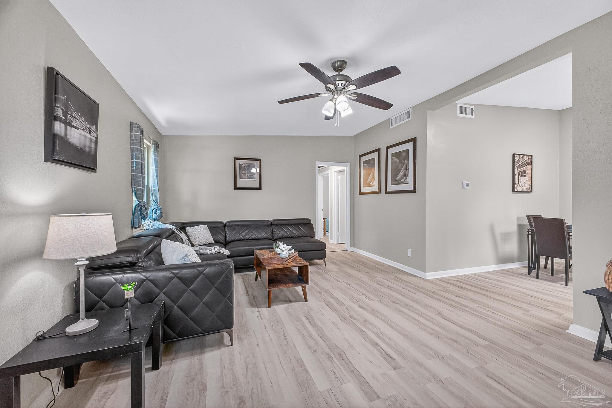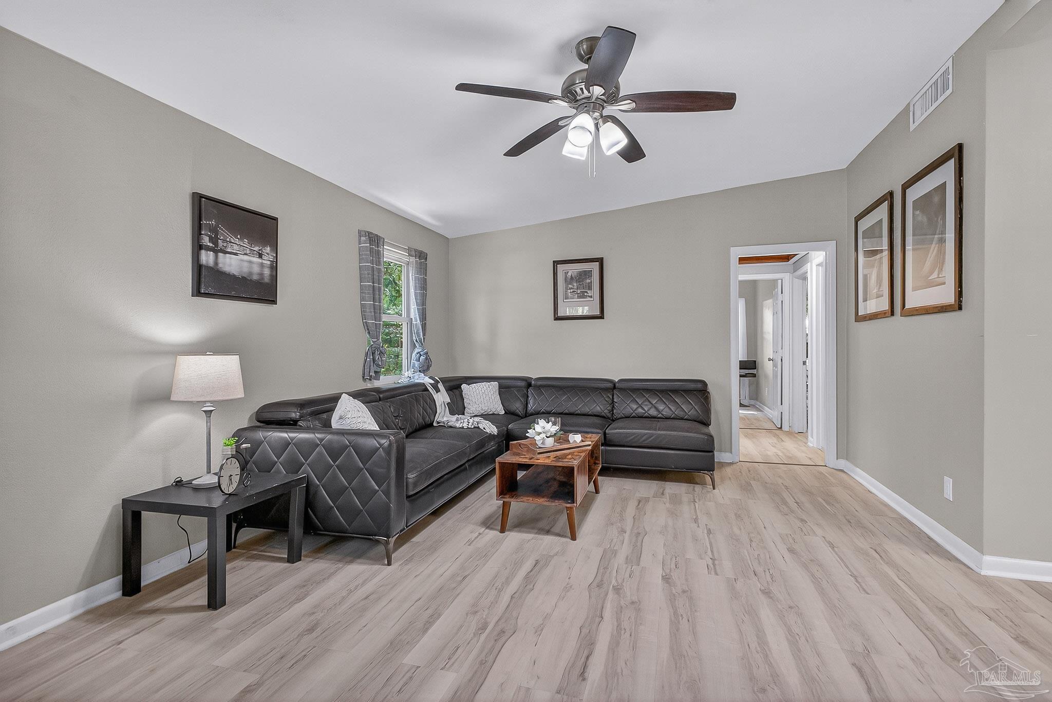 Welcome to this charming 3-bedroom, 1-bathroom home located in the vibrant city of Pensacola, FL. This home boasts a fresh coat of paint and new vinyl floors, creating a clean and modern atmosphere. The kitchen is a cook's dream with its butcher block countertops, offering ample space for meal preparation. The home also features washer/dryer hook-ups for your convenience. The formal dining room is perfect for hosting dinner parties or enjoying a meal with loved ones. Step outside to find a spacious front yard and a fenced-in back yard, providing plenty of room for outdoor activities. This home is a perfect blend of comfort and functionality. Come and see for yourself!