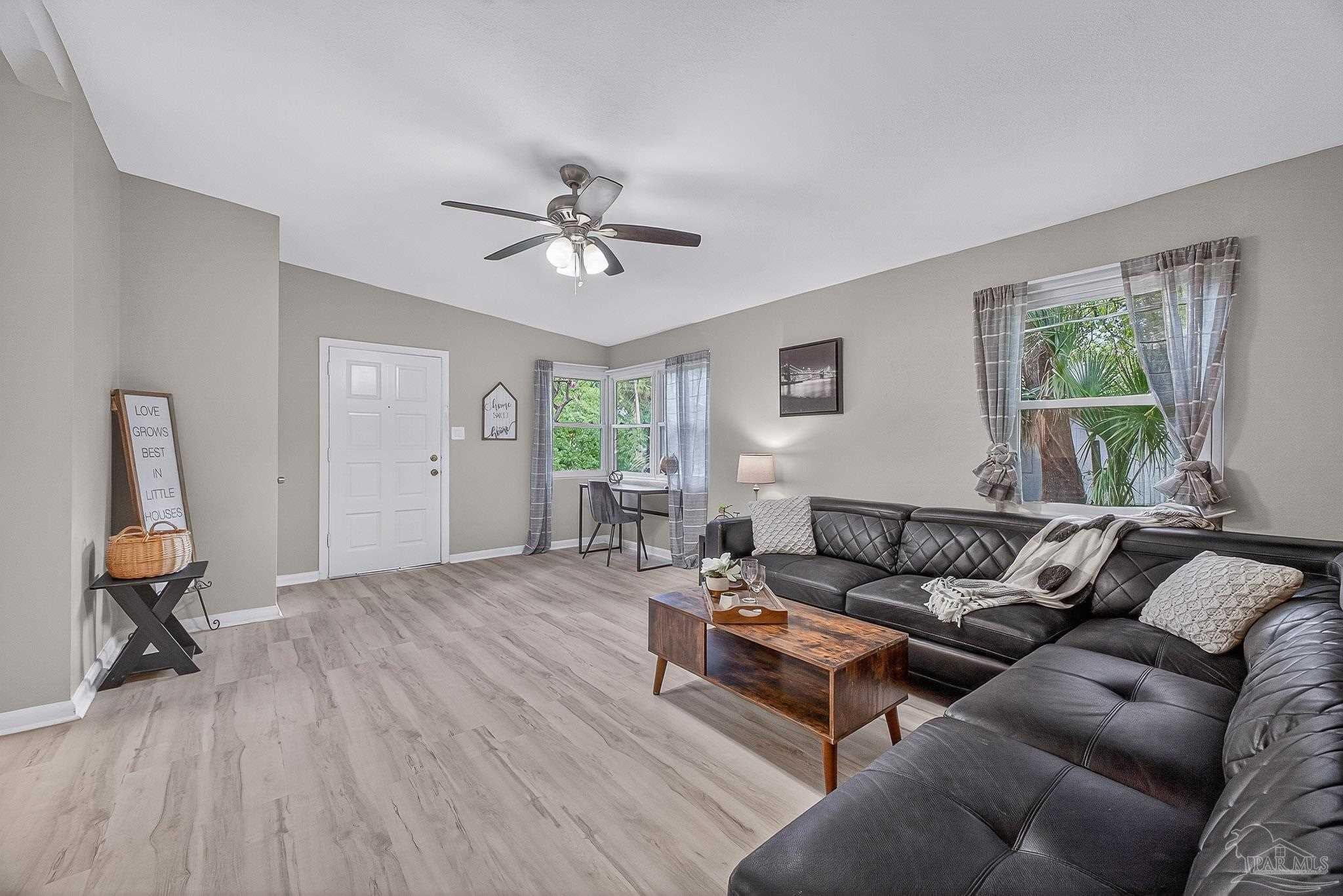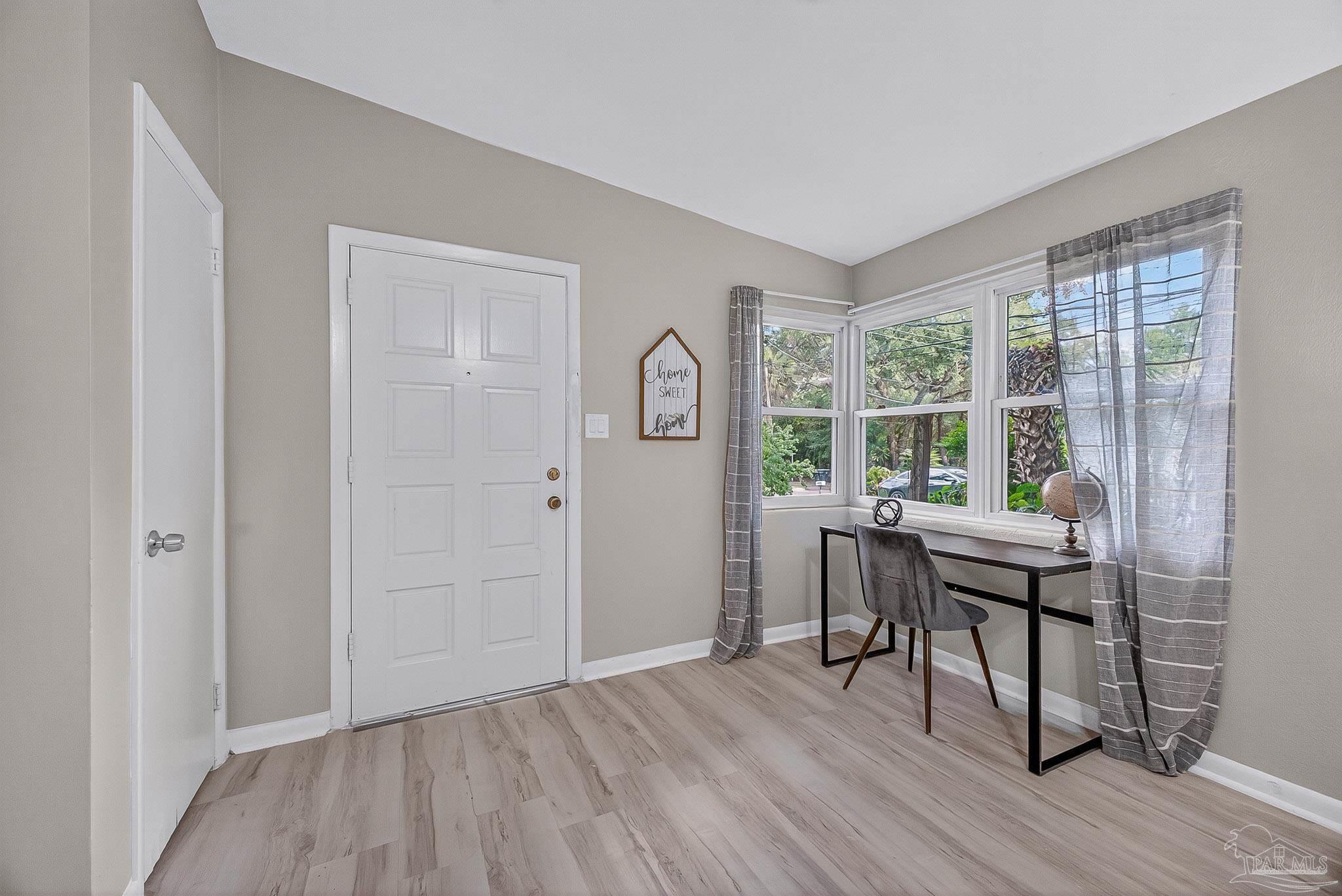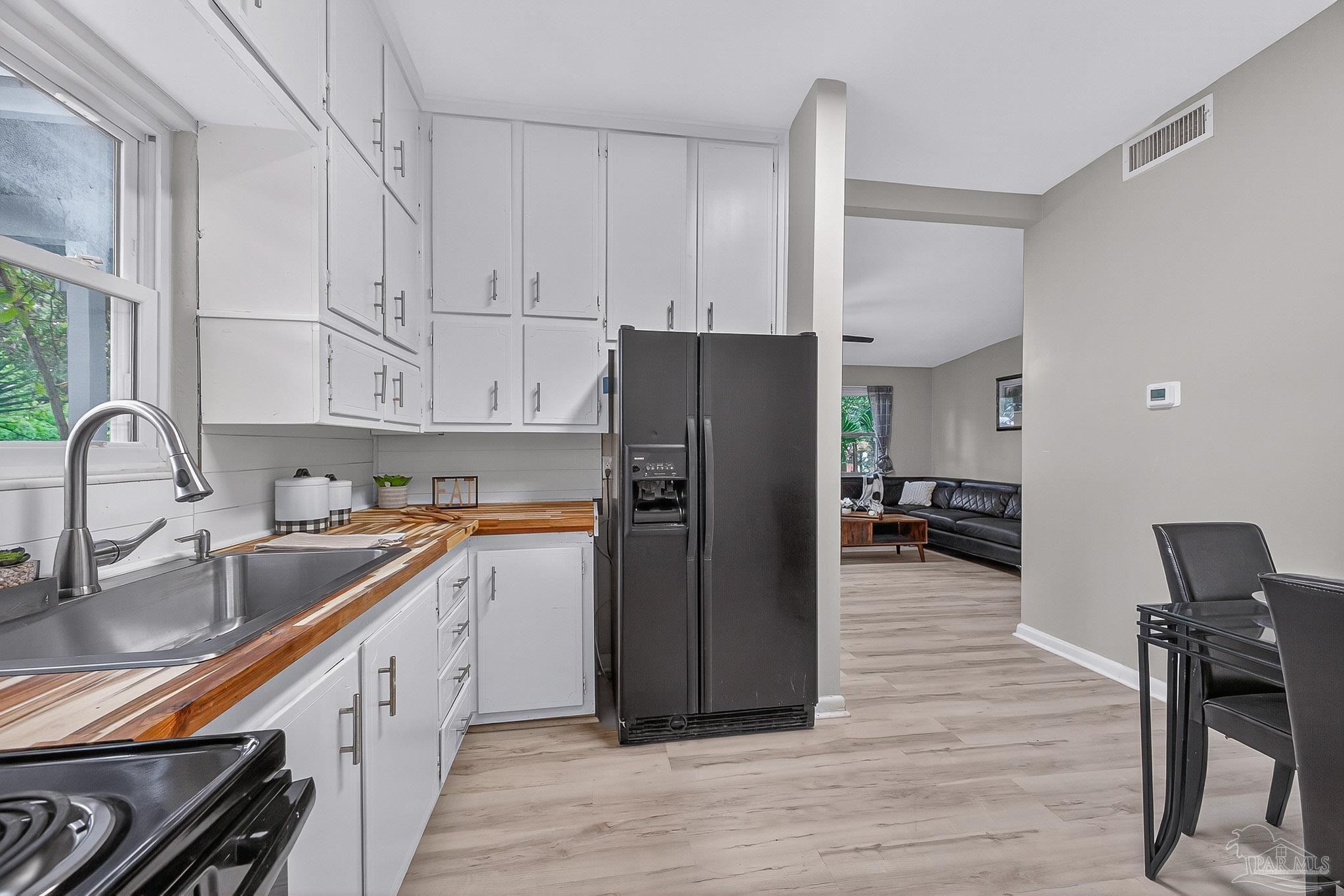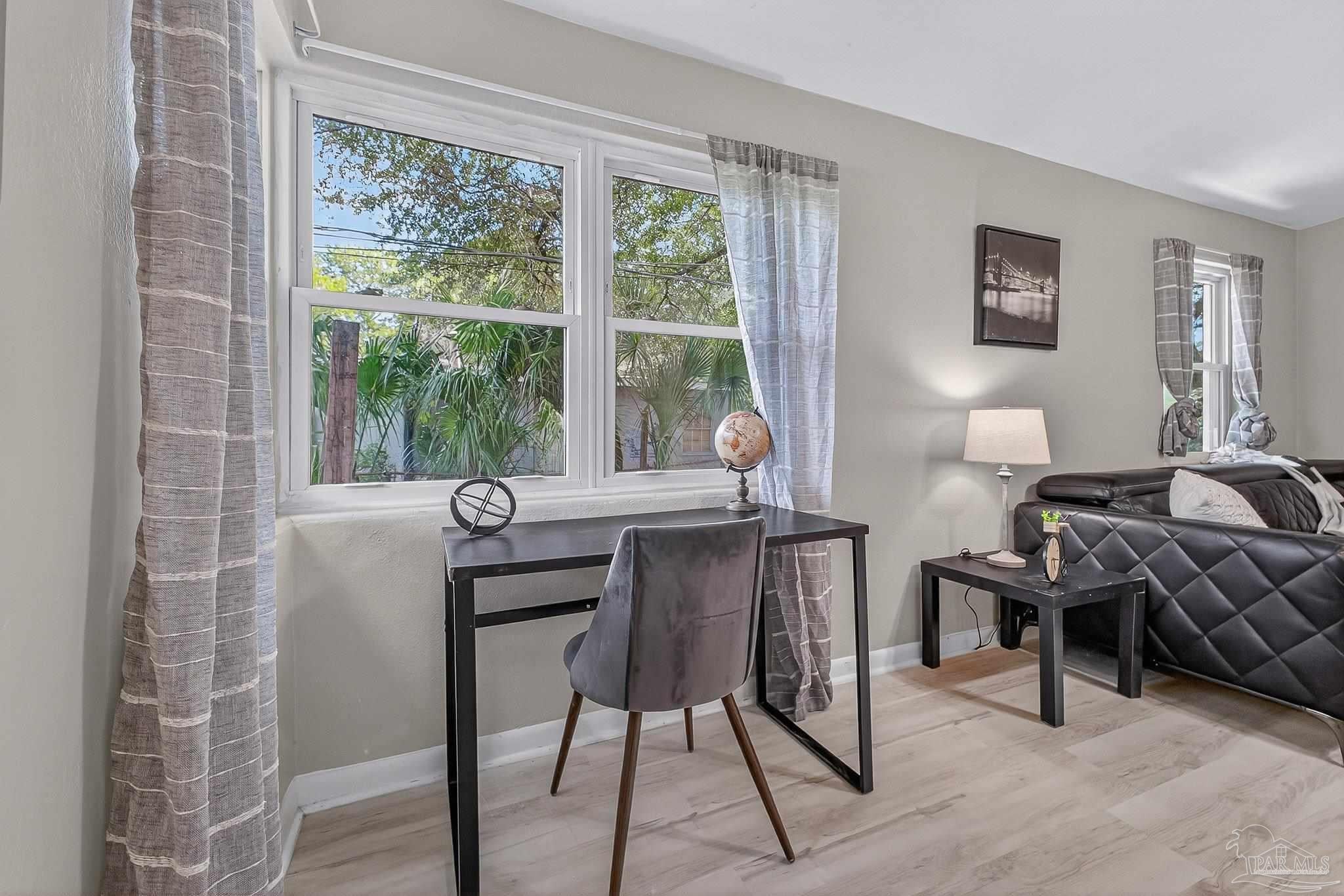 Welcome to this charming 3-bedroom, 1-bathroom home located in the vibrant city of Pensacola, FL. This home boasts a fresh coat of paint and new vinyl floors, creating a clean and modern atmosphere. The kitchen is a cook's dream with its butcher block countertops, offering ample space for meal preparation. The home also features washer/dryer hook-ups for your convenience. The formal dining room is perfect for hosting dinner parties or enjoying a meal with loved ones. Step outside to find a spacious front yard and a fenced-in back yard, providing plenty of room for outdoor activities. This home is a perfect blend of comfort and functionality. Come and see for yourself!