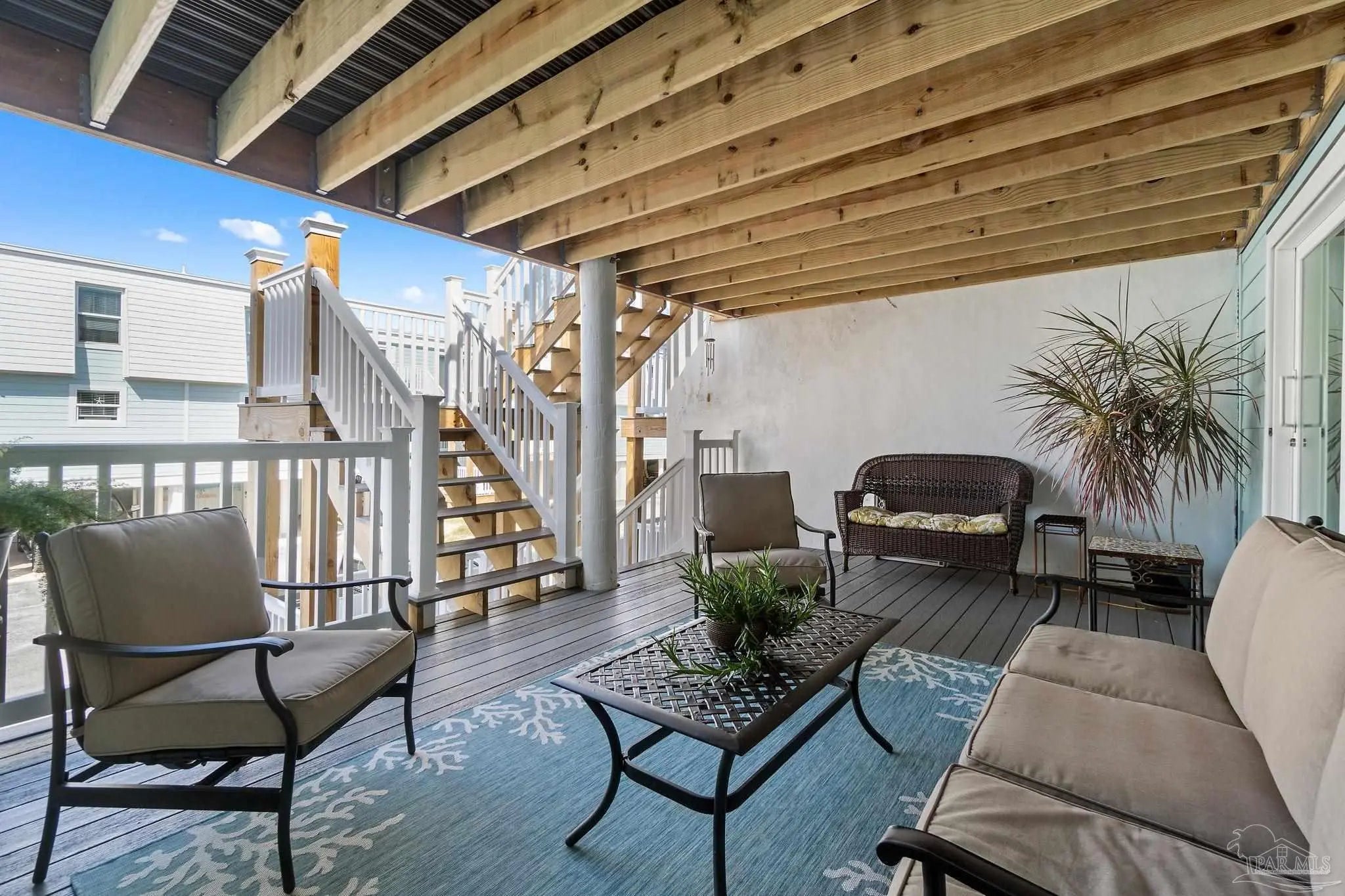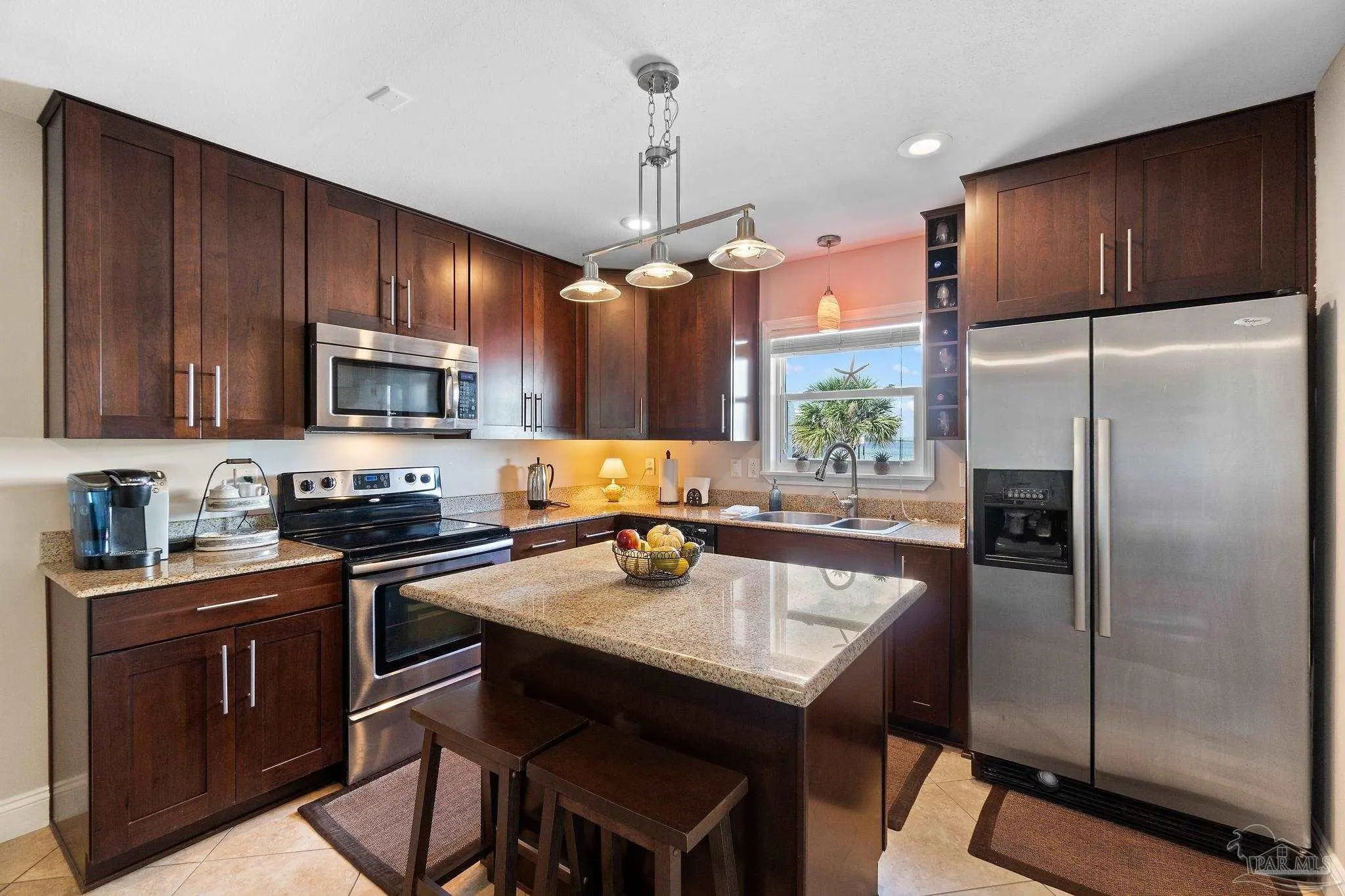 Welcome to this stunning 3-level 2 bedroom 2.5 bathroom fully furnished condo located in the beautiful Pensacola Beach. This charming property features 2 spacious bedrooms, each complete with their own private ensuite bathroom, providing both comfort & convenience to all residents. Upon entering, you are greeted by a foyer that offers ample storage, leading to the second level where the living room is prominently situated. This area flows seamlessly into the well-appointed kitchen, which includes elegant granite countertops, high end kraftmaid soft-close cabinets, & stainless steel appliances, perfect for culinary enthusiasts. Adjacent to the kitchen, a half bath and laundry area provide additional functionality for daily living. The third level is dedicated entirely to rest and relaxation, featuring 2 sizable bedrooms, each designed to serve as a primary bedroom, thanks to the individual ensuite bathrooms. The bathrooms are thoughtfully designed with granite countertops and luxurious travertine tile, creating a spa-like atmosphere. Both bedrooms offer direct access to the spacious third-level balcony , where residents can enjoy breathtaking views of the water—a perfect spot for morning coffee or evening sunsets. The upper 2 decks have been fitted with low-maintenance Trek decking. The community amenities enhance the living experience further, featuring a pool, direct beach access, a community room, fishing areas, picnic spots, and a pier, allowing for a vibrant lifestyle centered around outdoor activities. In addition to the interior features, the property includes an outdoor shower on the first level—ideal for rinsing off after a day at the beach. This exceptional condo not only offers a comfortable living space but also provides an abundance of recreational opportunities in one of Florida’s most sought-after coastal locations. With its thoughtful design and prime location, this property is an ideal choice for those looking to enjoy the best of beachside living.