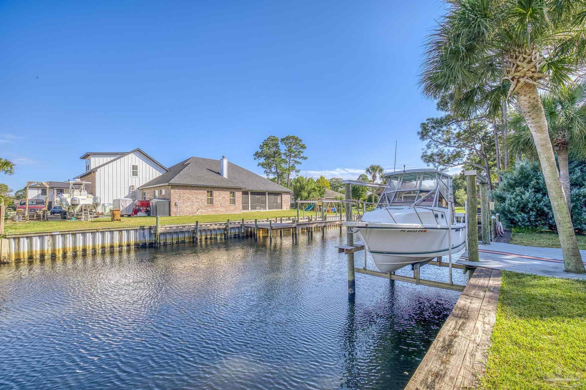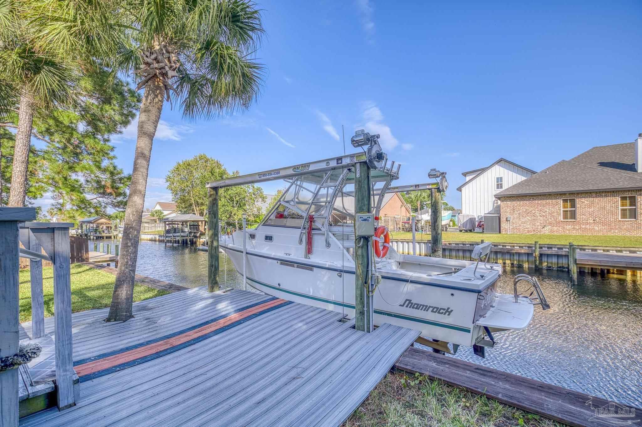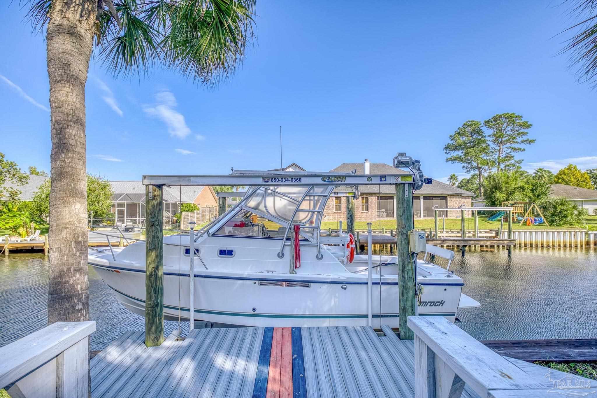 4/3 canal home is Move-in Ready for your family and guests! Enjoy water views from the Living areas and all four Bedrooms in this lovingly maintained and updated home. Master on the Main includes bamboo flooring, walk-in closet, tiled en suite shower and slider to the porch. Greet the day sipping your morning coffee in the large screened porch. East-facing porch and generous deck are delightfully shaded in the afternoon, making cookouts and cocktails a breeze. Bring your boat! The Seawall and 7500# Boat Lift were installed in 2018. You’ll find Quartz Countertops in Kitchen and all Baths and a new Cultured Marble Soaking Tub w/handicap bars (2019). There’s a remote-controlled Gas Log Fireplace bringing extra coziness on a chilly evening. You’ll appreciate the Energy-Saving Tankless Hot Water Heater (2018), many New Windows (2019), 3 New Sliding Glass Doors (2019 & 2020) and New Roof (2021). The whole-house Generac Gas Generator (2019), Fabric Shield for Windows (2020), Bahama Shutters, and 155mph-rated Hurricane Garage Door (2021) bring peace of mind during storm season. New SimpliSafe Security System in June 2025. The adjacent lot, 55’ x 120’, is an investment or extra space for children and pets and is being sold separately MLS# 672506! Hot Tub and Washer & Dryer convey as is. See the many extras packed into this luscious property! Hot tub works great, conveys as is.