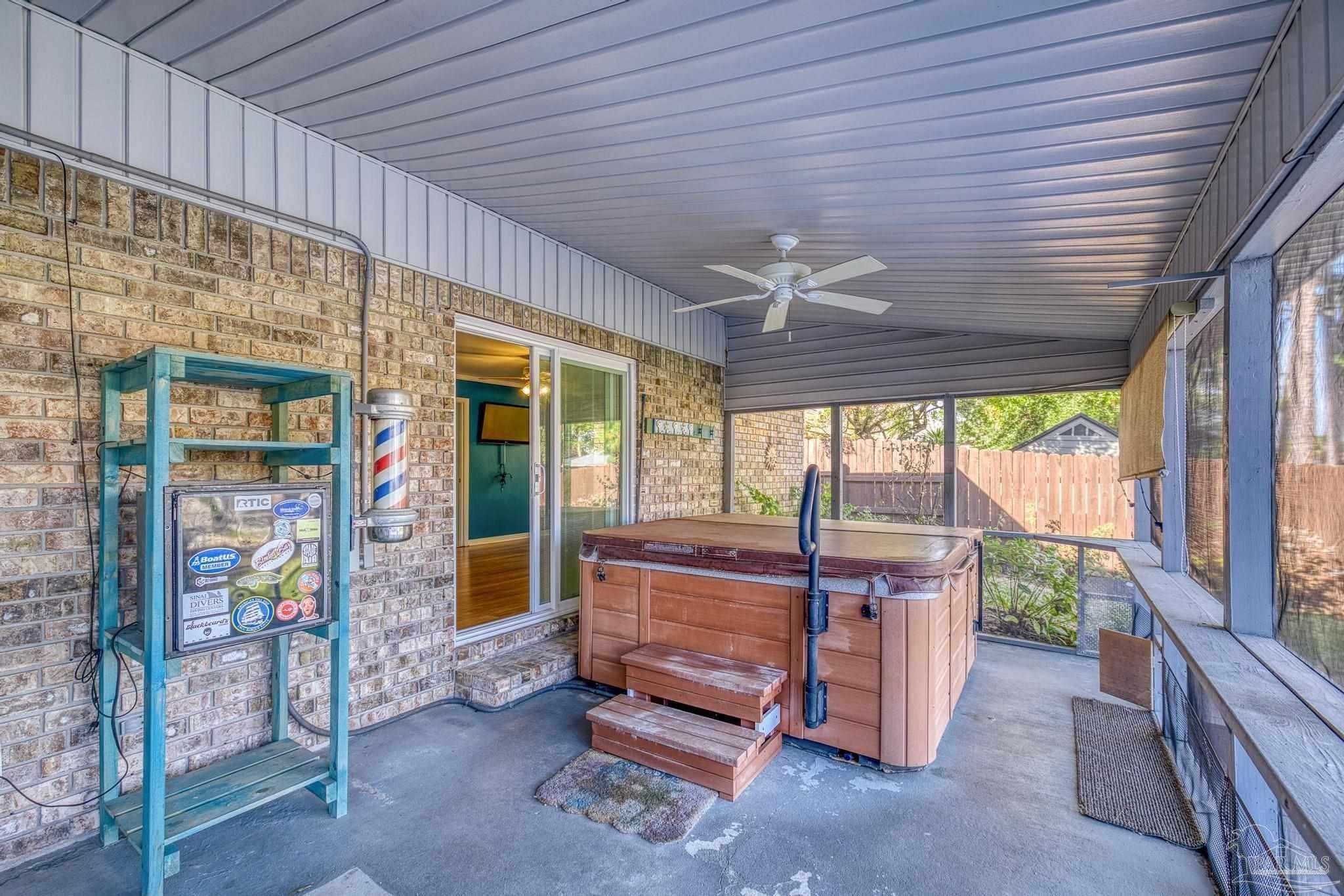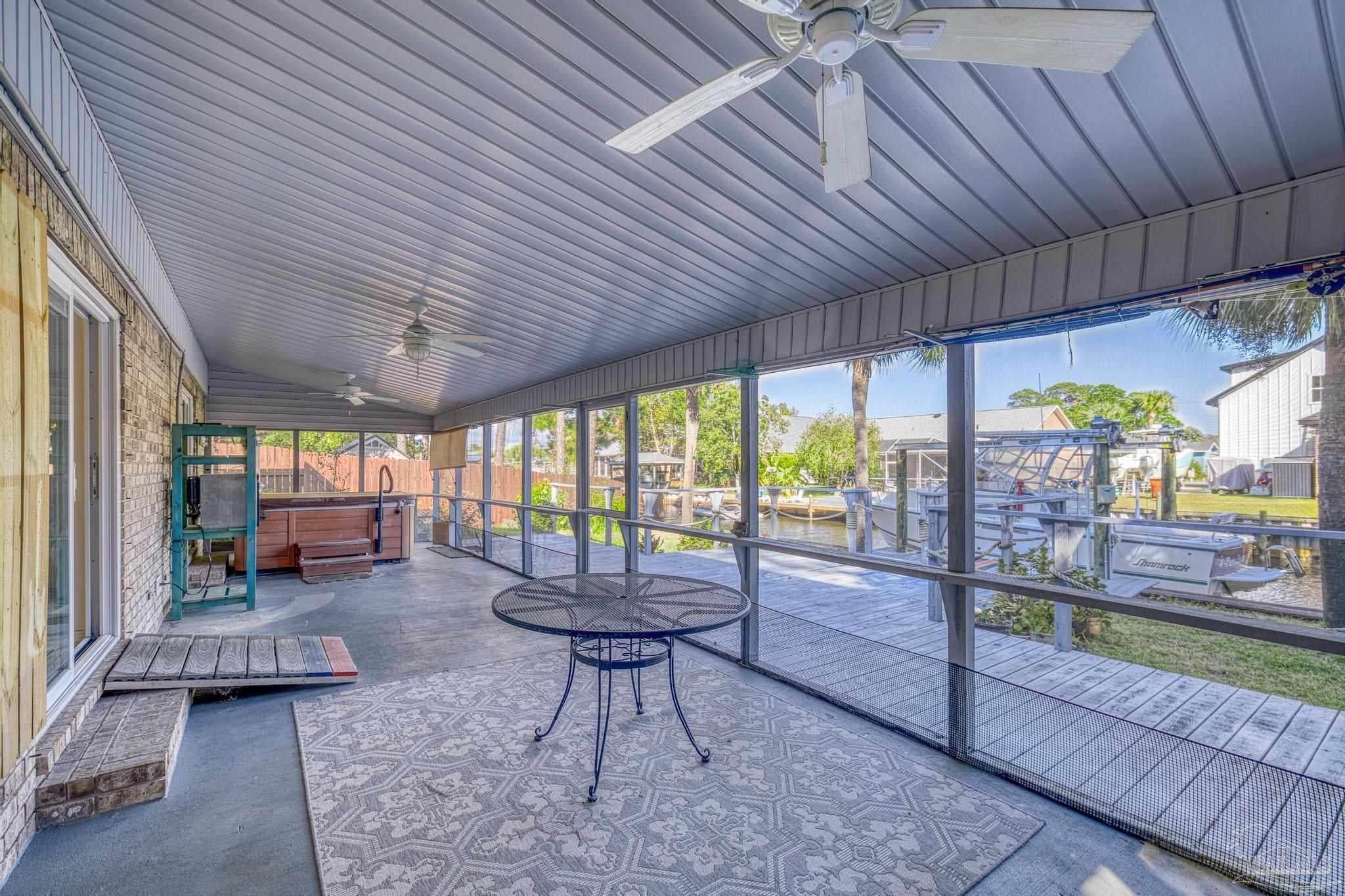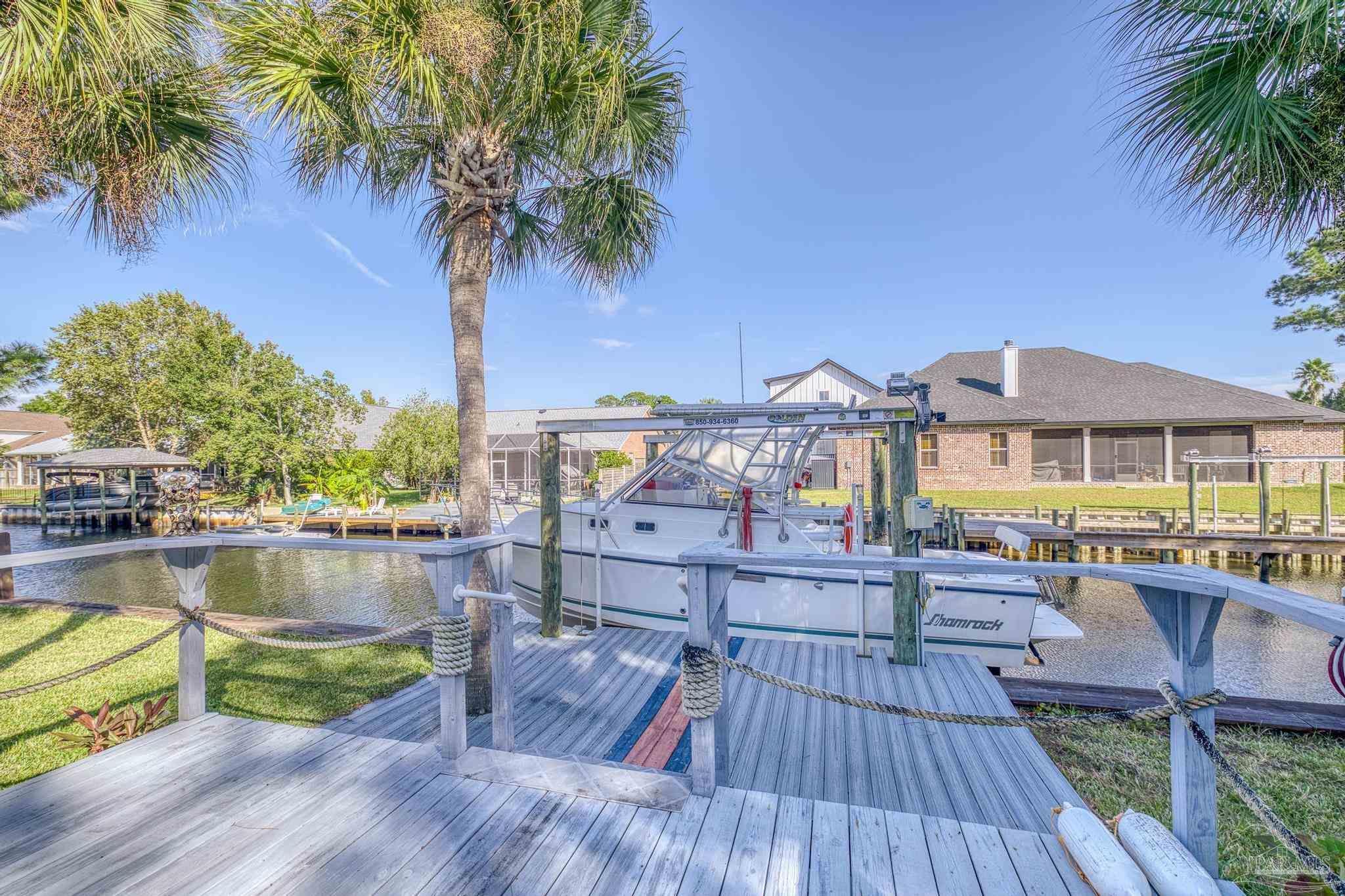 4/3 canal home is Move-in Ready for your family and guests! Enjoy water views from the Living areas and all four Bedrooms in this lovingly maintained and updated home. Master on the Main includes bamboo flooring, walk-in closet, tiled en suite shower and slider to the porch. Greet the day sipping your morning coffee in the large screened porch. East-facing porch and generous deck are delightfully shaded in the afternoon, making cookouts and cocktails a breeze. Bring your boat! The Seawall and 7500# Boat Lift were installed in 2018. You’ll find Quartz Countertops in Kitchen and all Baths and a new Cultured Marble Soaking Tub w/handicap bars (2019). There’s a remote-controlled Gas Log Fireplace bringing extra coziness on a chilly evening. You’ll appreciate the Energy-Saving Tankless Hot Water Heater (2018), many New Windows (2019), 3 New Sliding Glass Doors (2019 & 2020) and New Roof (2021). The whole-house Generac Gas Generator (2019), Fabric Shield for Windows (2020), Bahama Shutters, and 155mph-rated Hurricane Garage Door (2021) bring peace of mind during storm season. New SimpliSafe Security System in June 2025. The adjacent lot, 55’ x 120’, is an investment or extra space for children and pets and is being sold separately MLS# 672506! Hot Tub and Washer & Dryer convey as is. See the many extras packed into this luscious property! Hot tub works great, conveys as is.